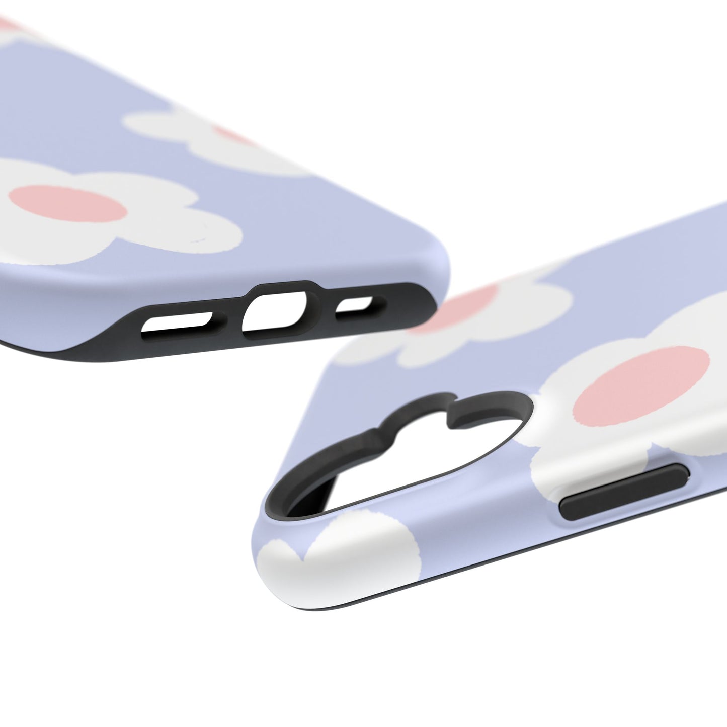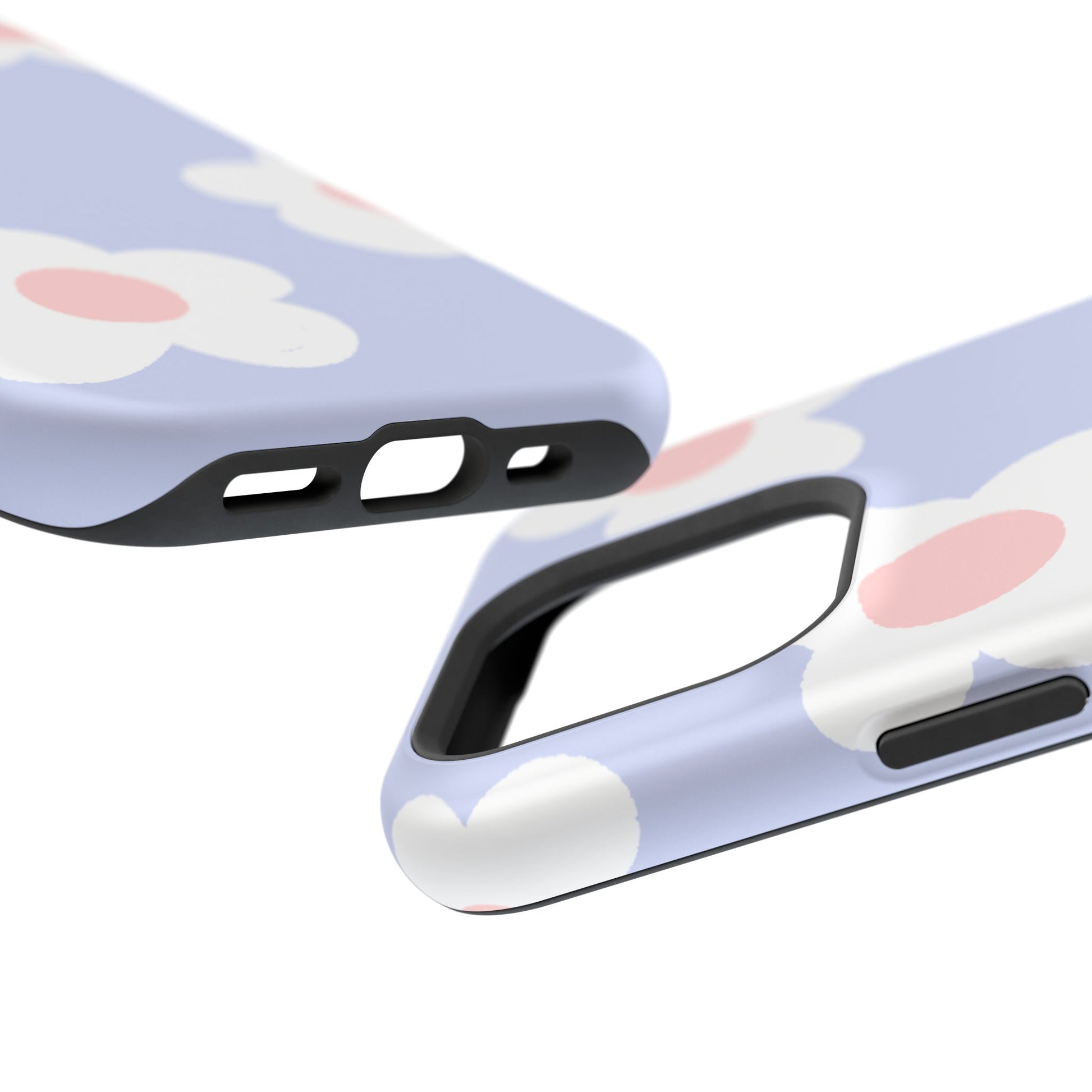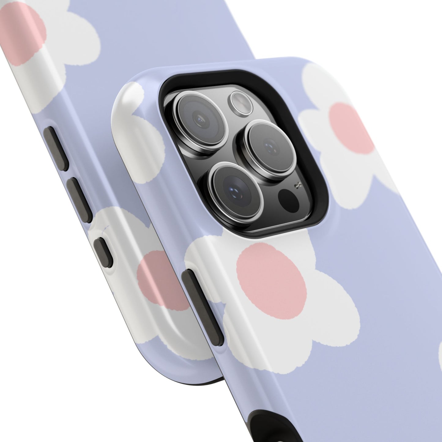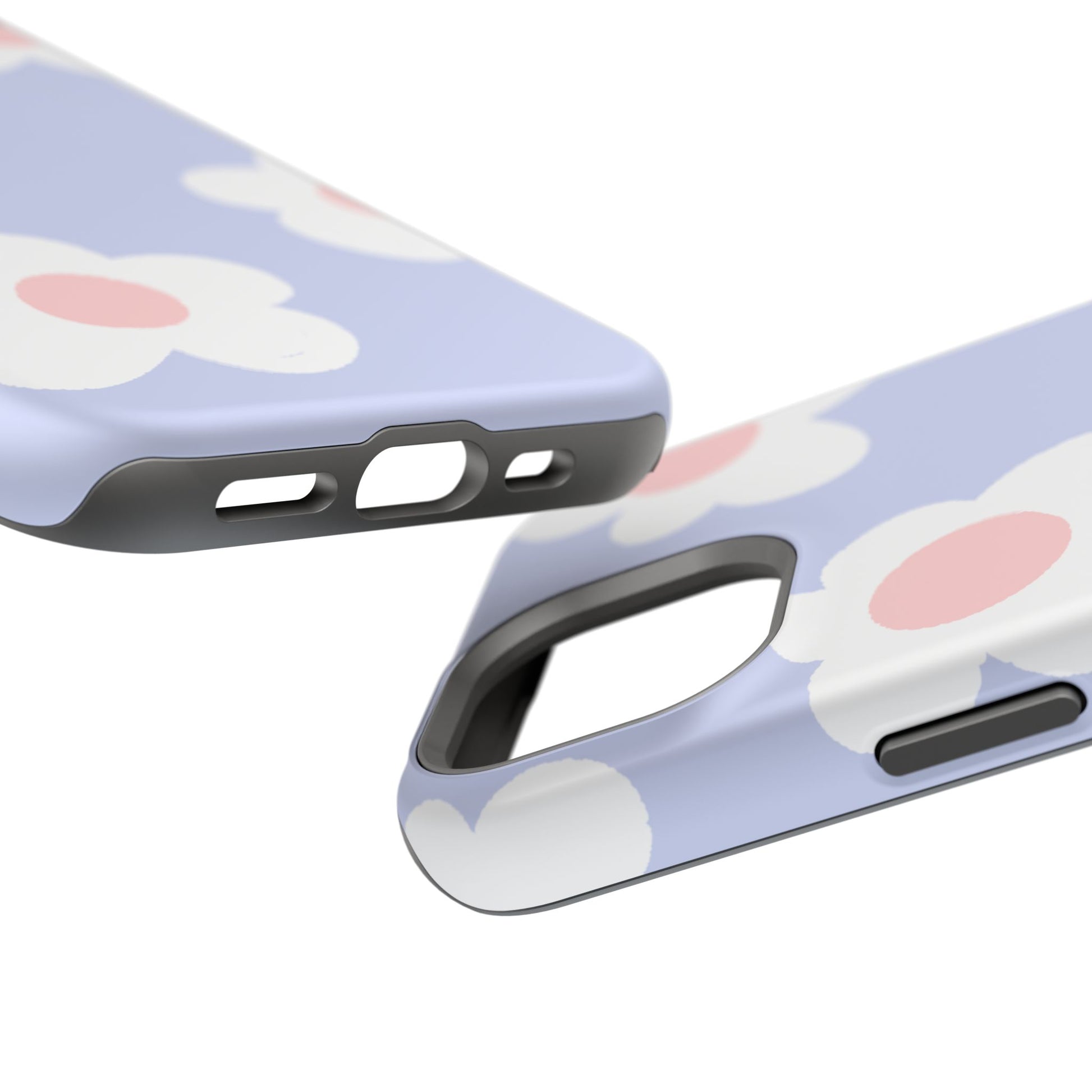 Add a playful retro vibe to your phone with our Retro Daisy Pastel Tough MagSafe iPhone Case. Featuring a charming pattern of hand-drawn white daisies with soft pink centers on a periwinkle blue background, this case evokes a sweet, nostalgic feel. Perfect for lovers of vintage-inspired design...