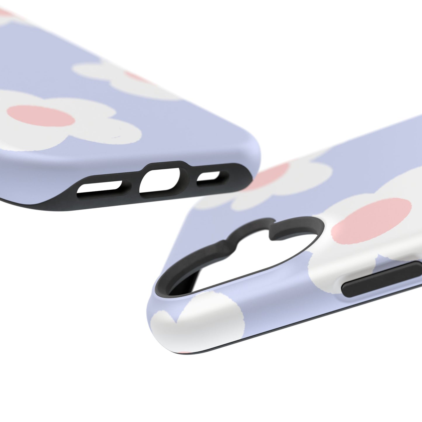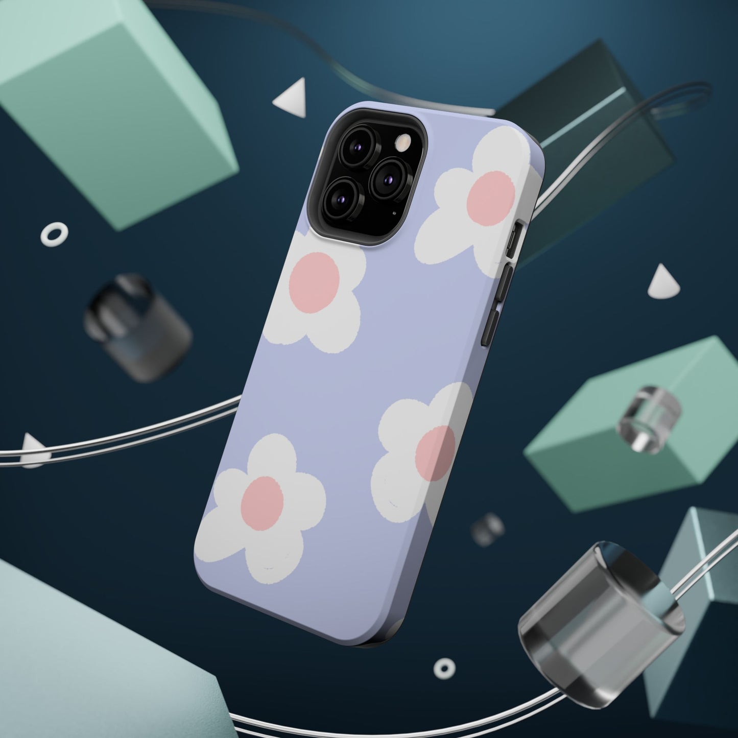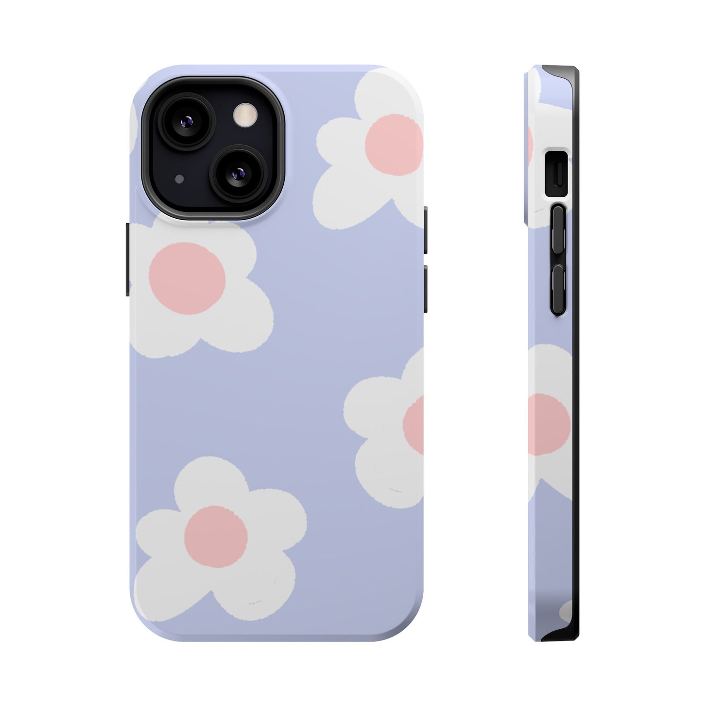 Add a playful retro vibe to your phone with our Retro Daisy Pastel Tough MagSafe iPhone Case. Featuring a charming pattern of hand-drawn white daisies with soft pink centers on a periwinkle blue background, this case evokes a sweet, nostalgic feel. Perfect for lovers of vintage-inspired design...