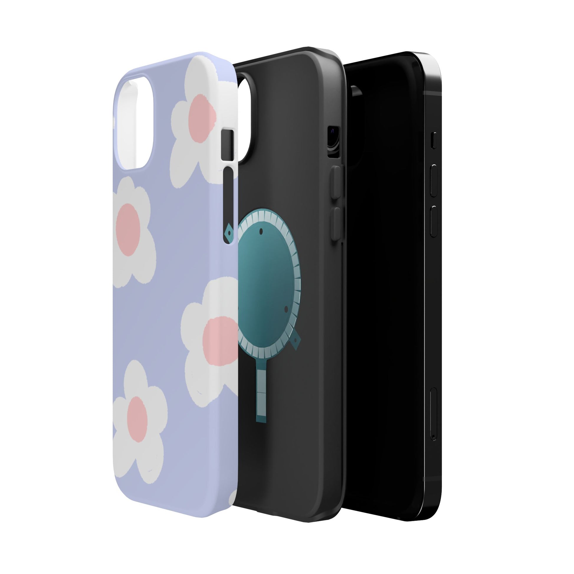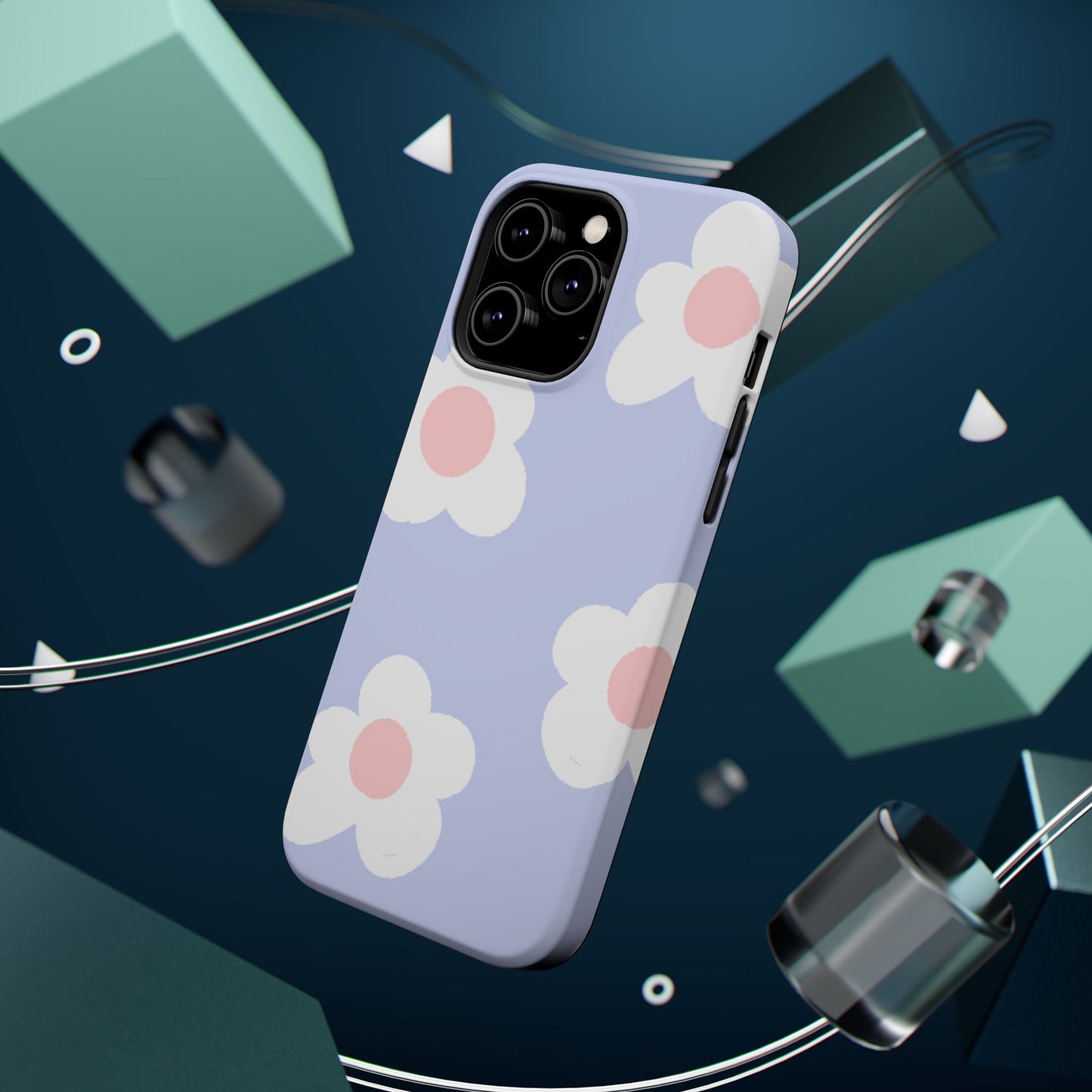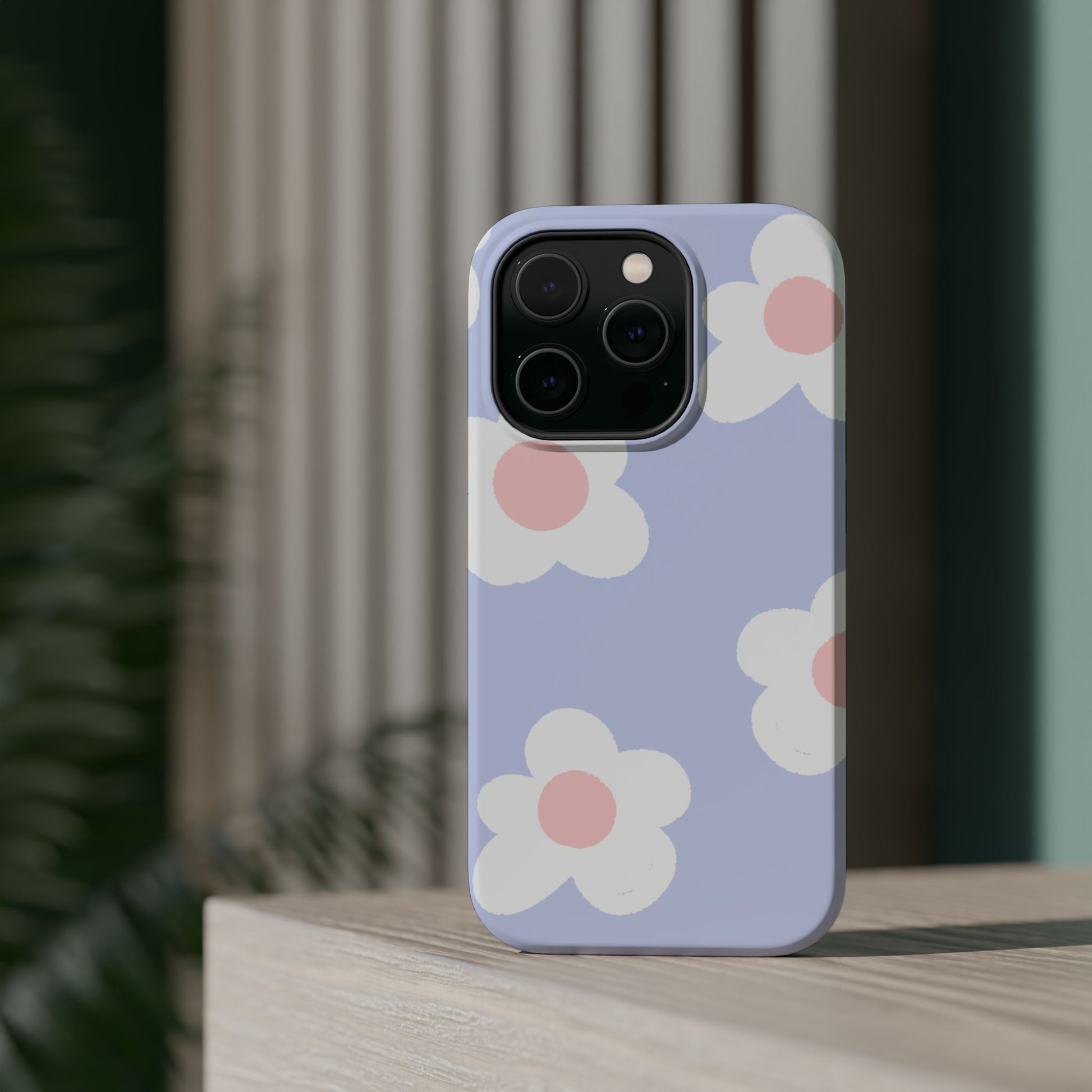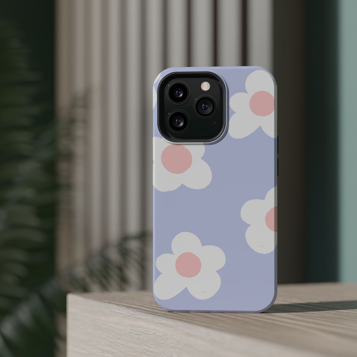 Add a playful retro vibe to your phone with our Retro Daisy Pastel Tough MagSafe iPhone Case. Featuring a charming pattern of hand-drawn white daisies with soft pink centers on a periwinkle blue background, this case evokes a sweet, nostalgic feel. Perfect for lovers of vintage-inspired design...