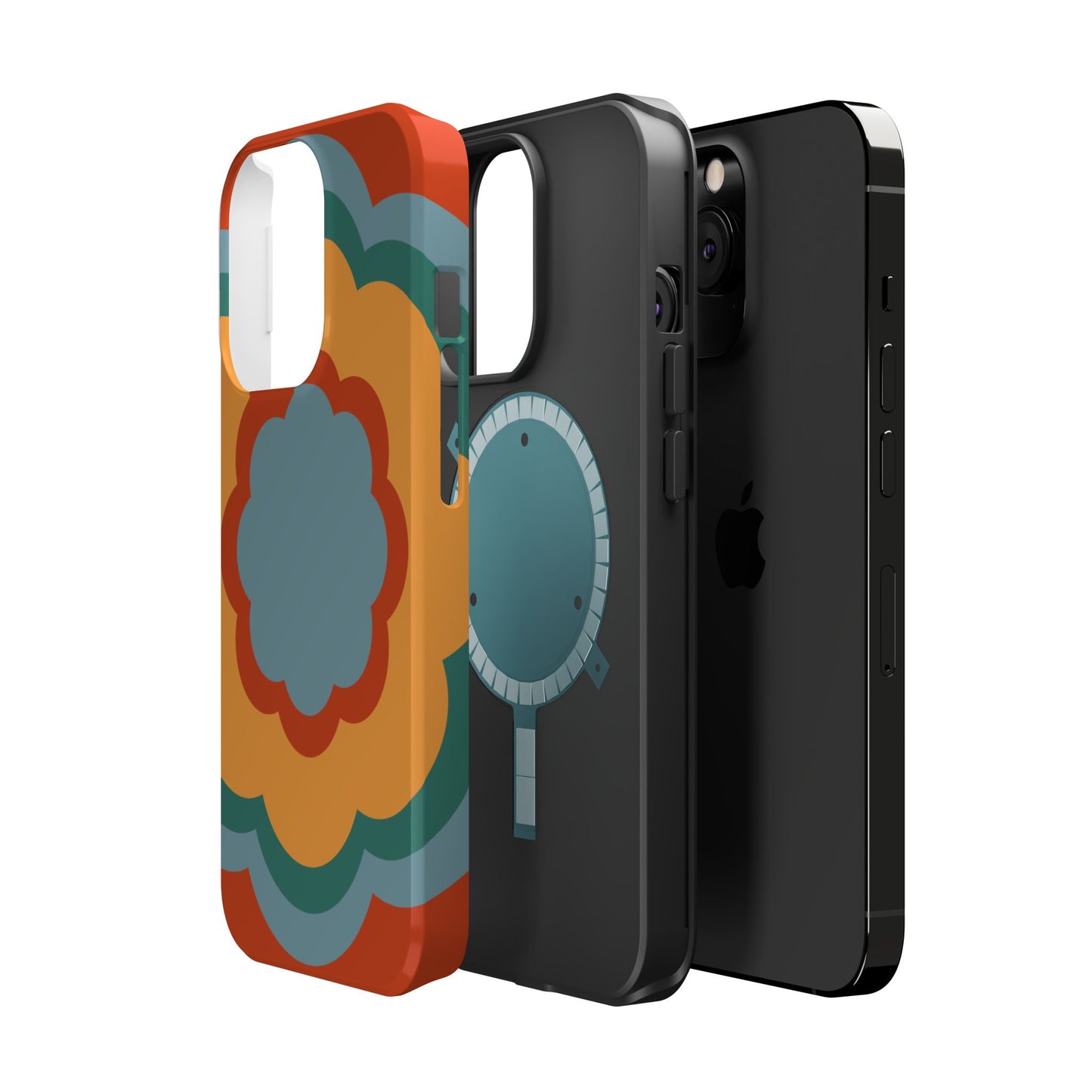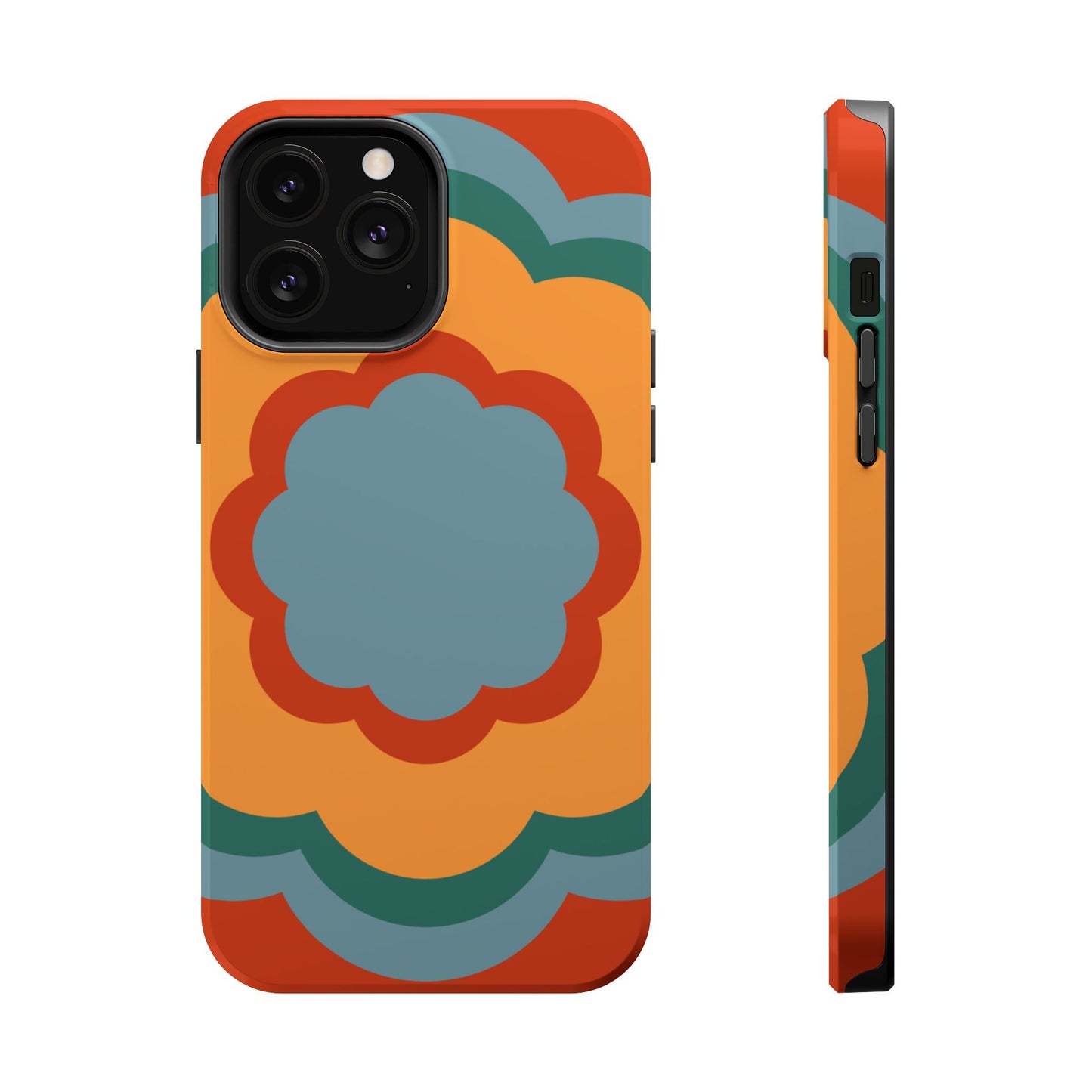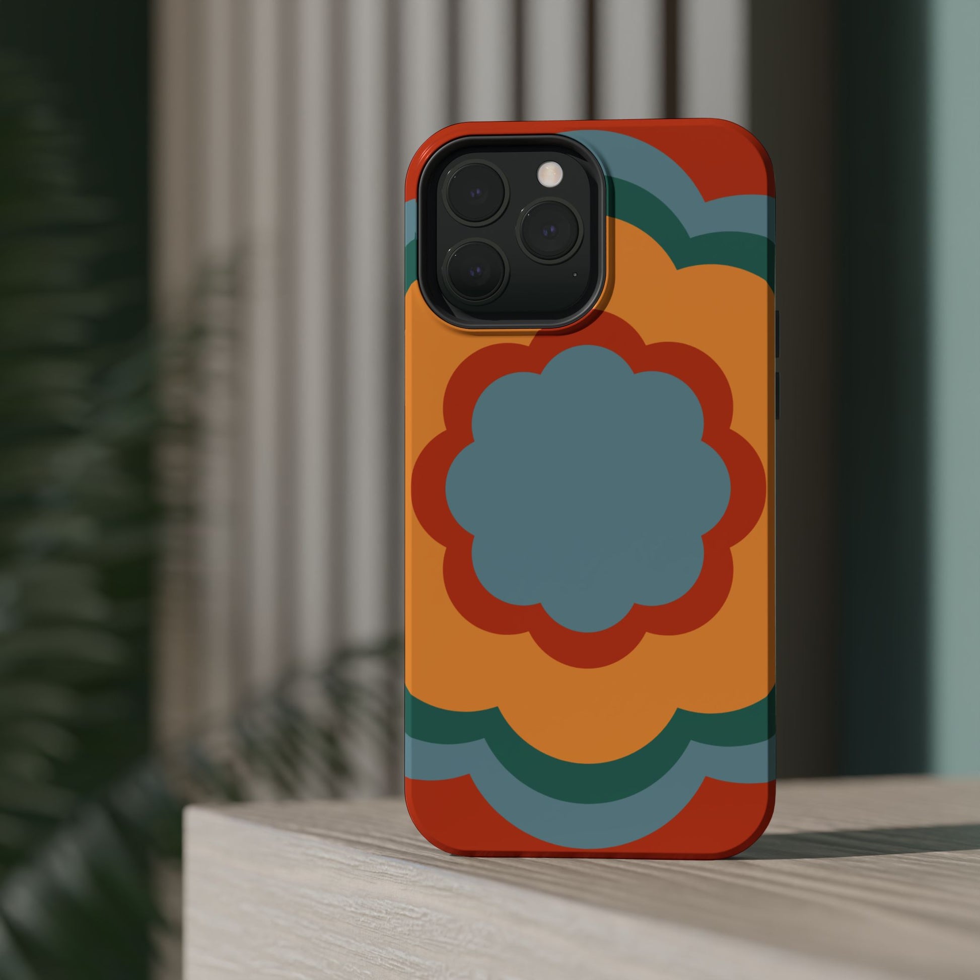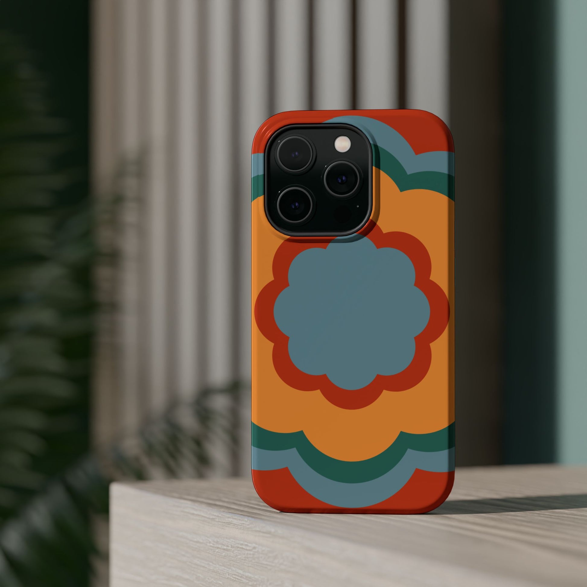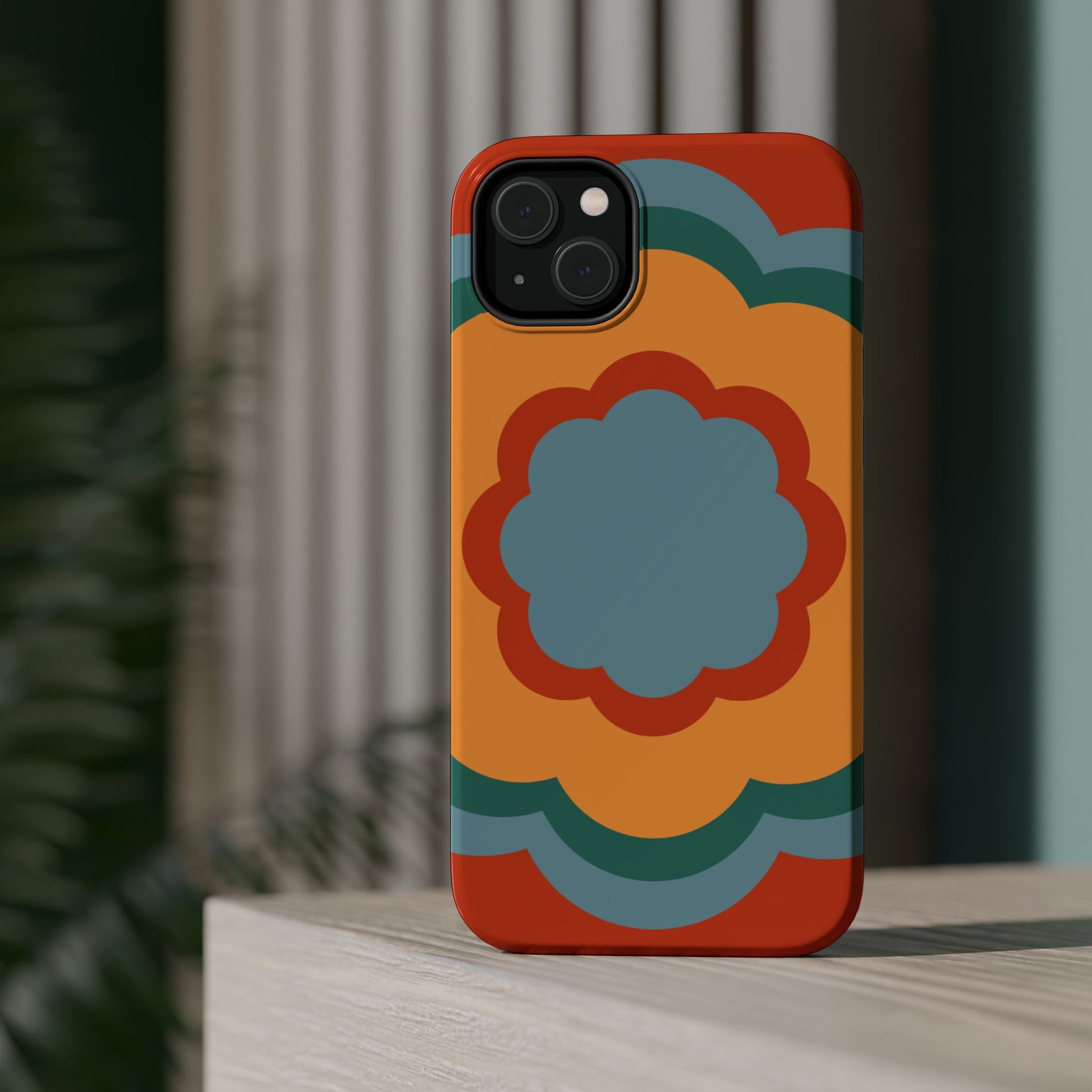 Embrace vintage vibes with our Retro Flower Power MagSafe  iPhone Case, featuring a vibrant, layered flower design in warm tones of burnt orange, mustard yellow, sage green, and muted teal. Inspired by classic 70s aesthetics, this case adds a playful and nostalgic touch to your phone while keeping it protected. Crafted with a dual-layer construction, it combines a hard polycarbonate outer shell with a shock-absorbent TPU layer for reliable protection against drops and everyday wear.