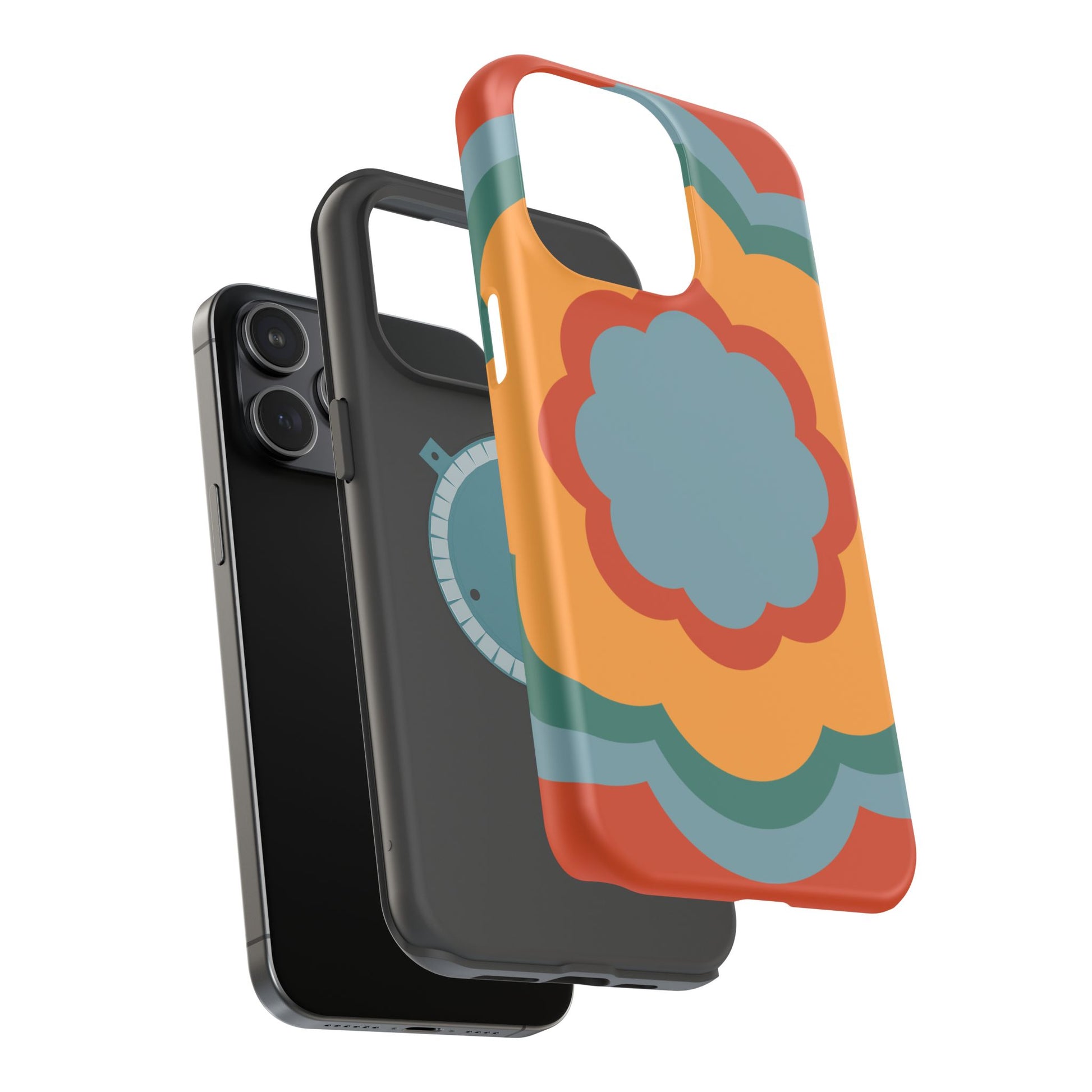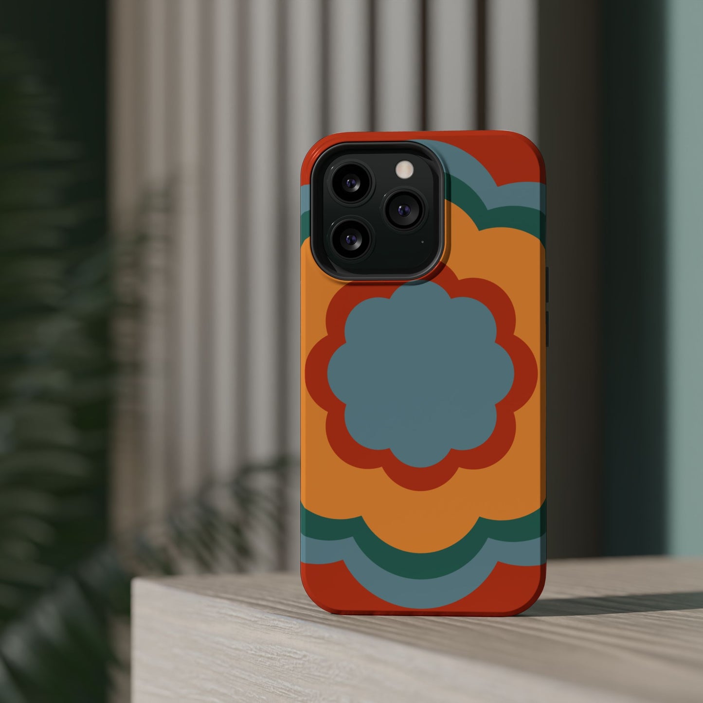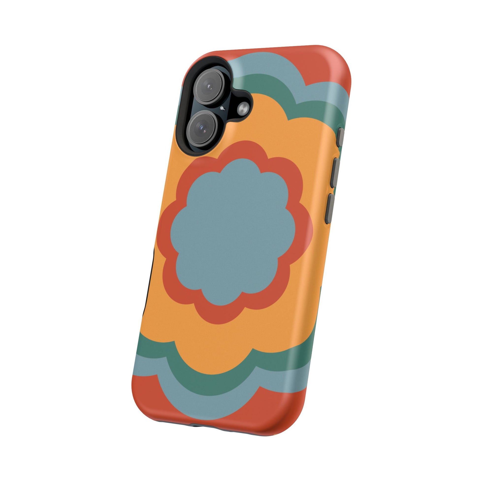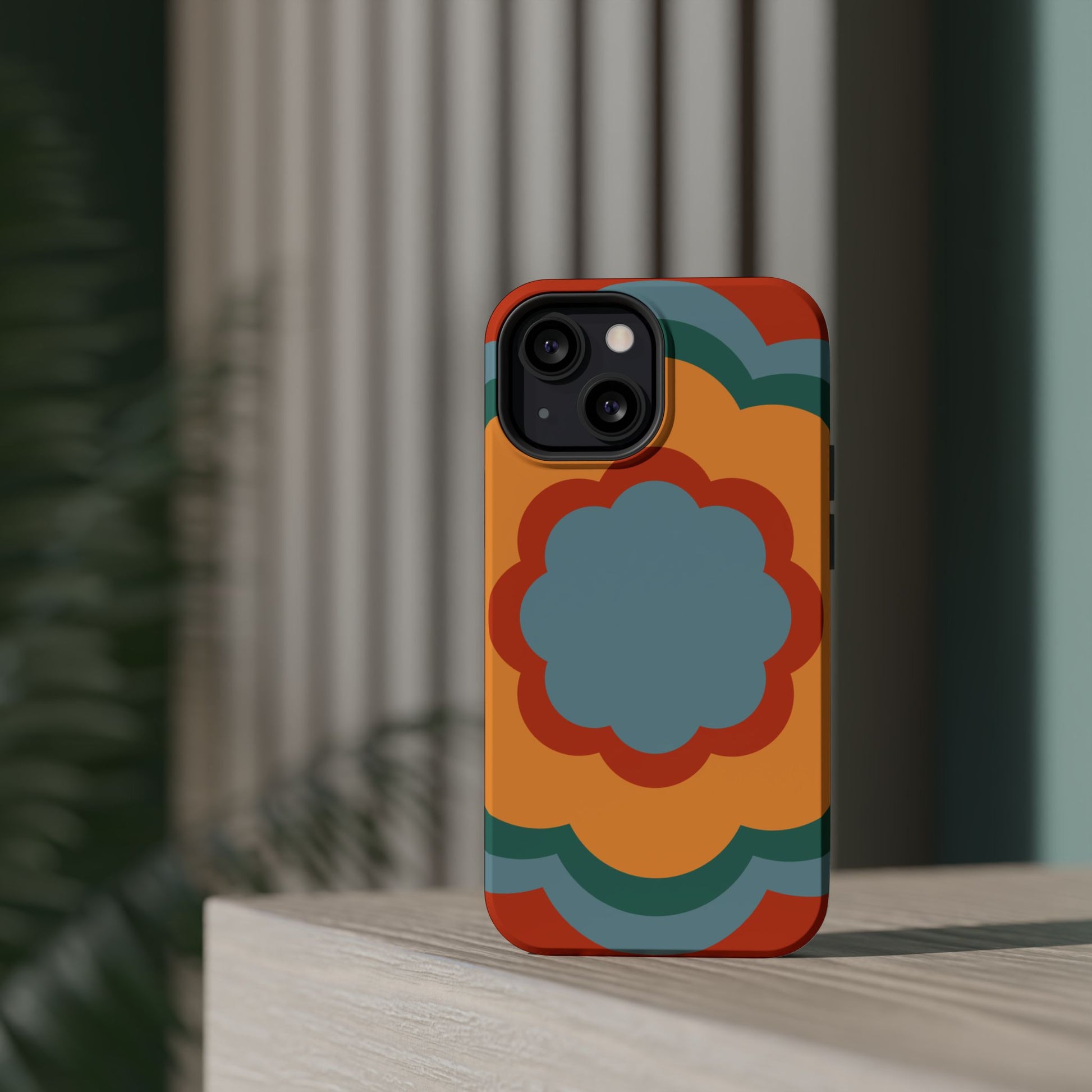 Embrace vintage vibes with our Retro Flower Power MagSafe  iPhone Case, featuring a vibrant, layered flower design in warm tones of burnt orange, mustard yellow, sage green, and muted teal. Inspired by classic 70s aesthetics, this case adds a playful and nostalgic touch to your phone while keeping it protected. Crafted with a dual-layer construction, it combines a hard polycarbonate outer shell with a shock-absorbent TPU layer for reliable protection against drops and everyday wear.