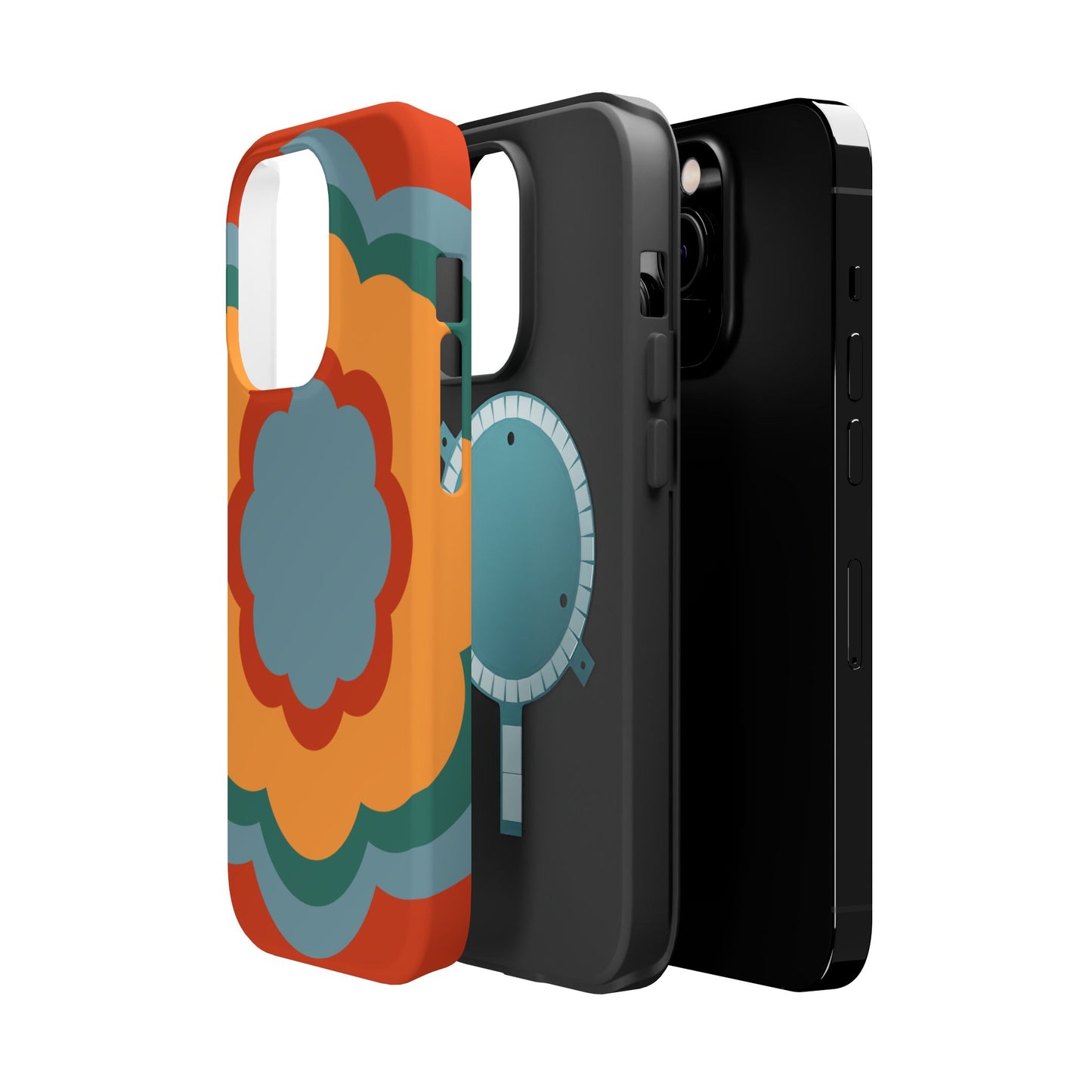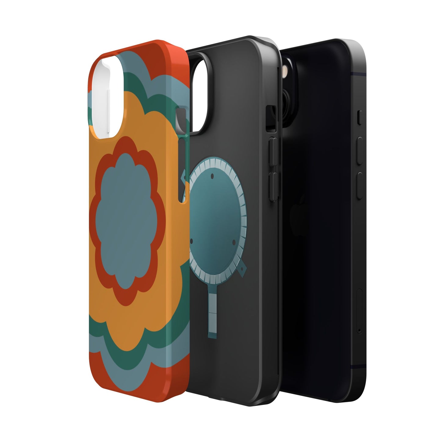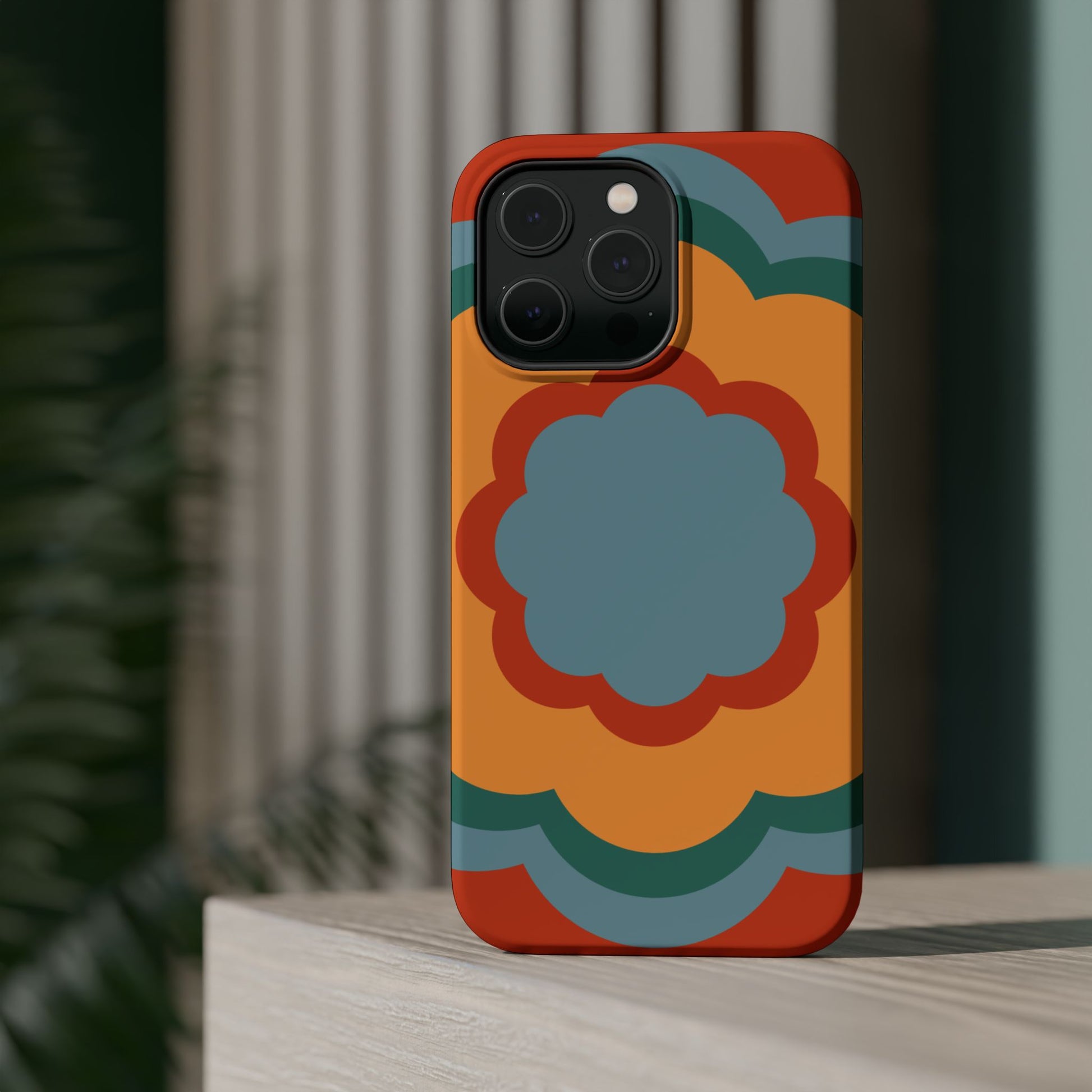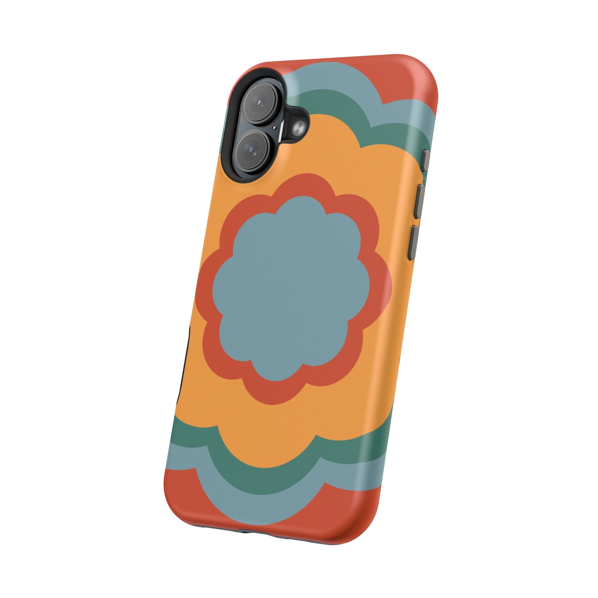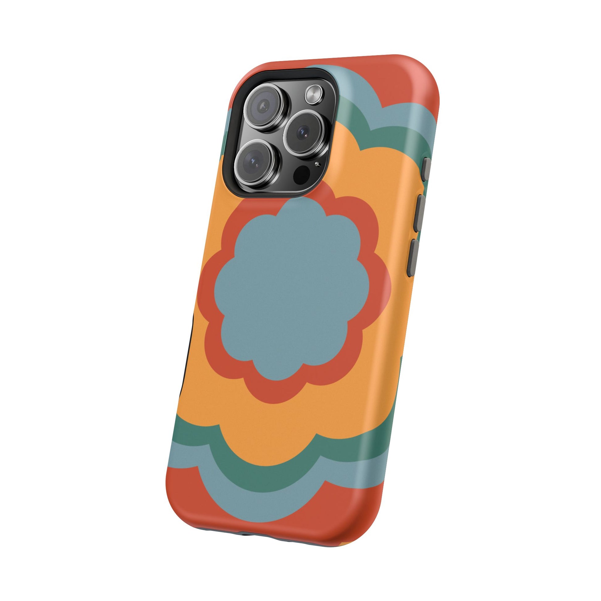 Embrace vintage vibes with our Retro Flower Power MagSafe  iPhone Case, featuring a vibrant, layered flower design in warm tones of burnt orange, mustard yellow, sage green, and muted teal. Inspired by classic 70s aesthetics, this case adds a playful and nostalgic touch to your phone while keeping it protected. Crafted with a dual-layer construction, it combines a hard polycarbonate outer shell with a shock-absorbent TPU layer for reliable protection against drops and everyday wear.