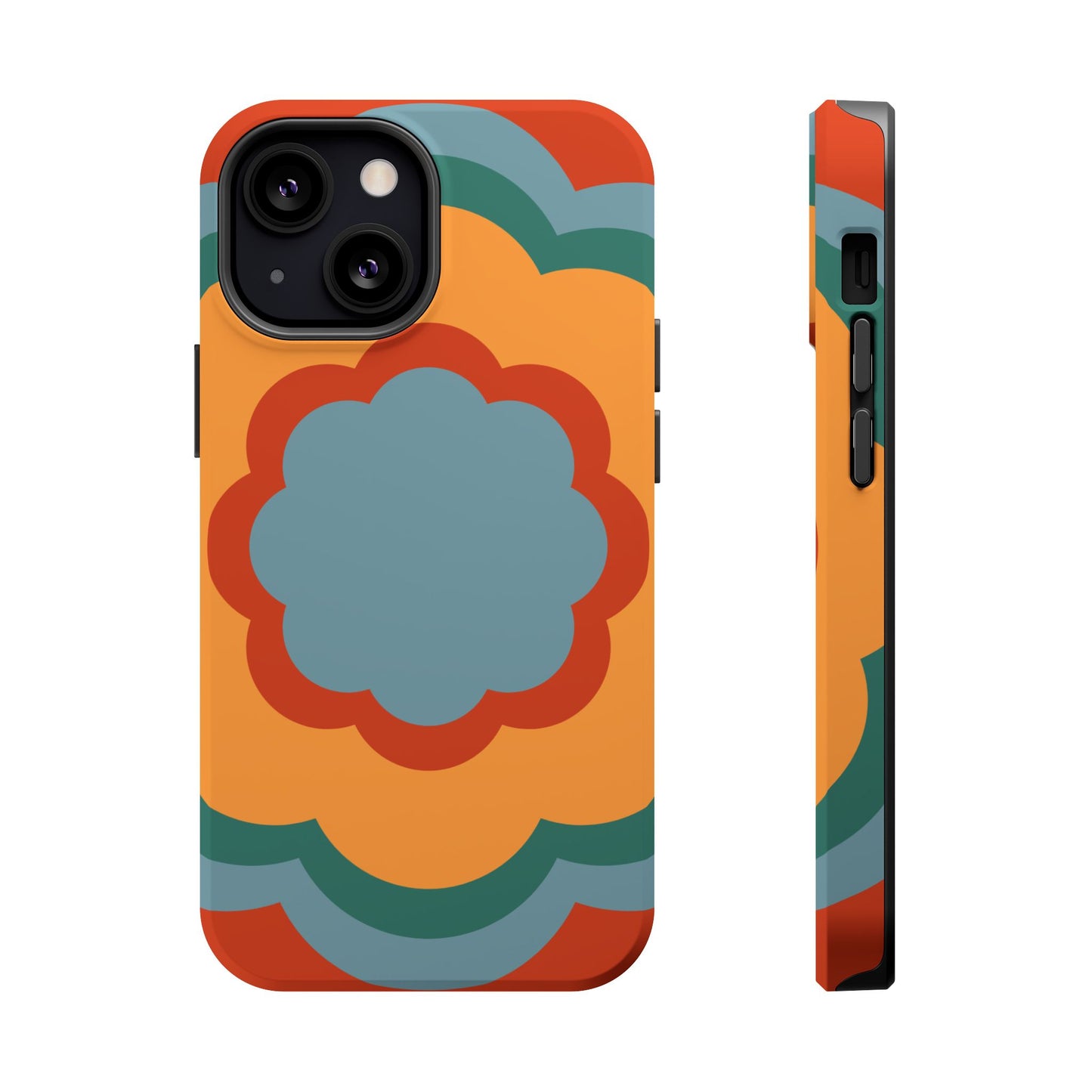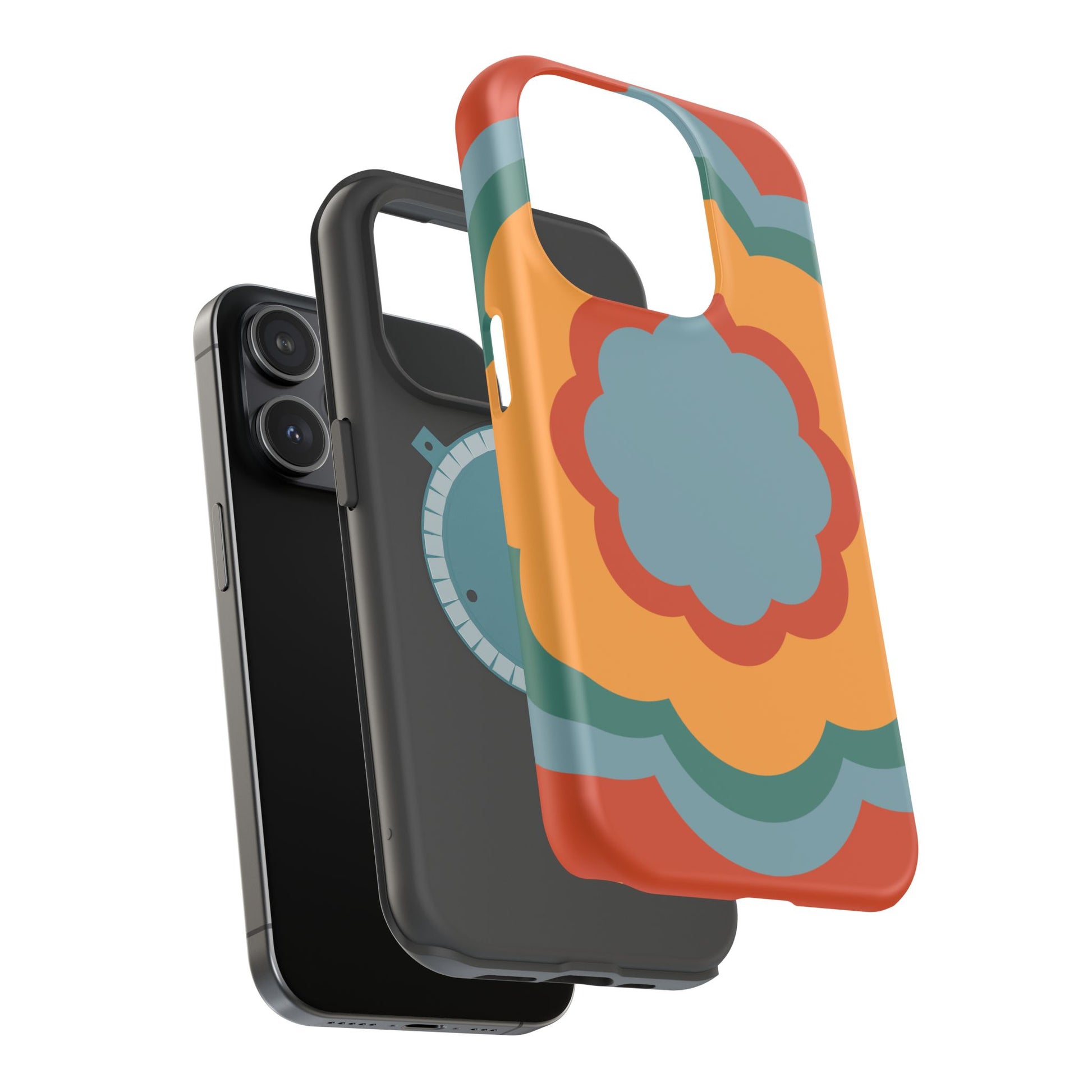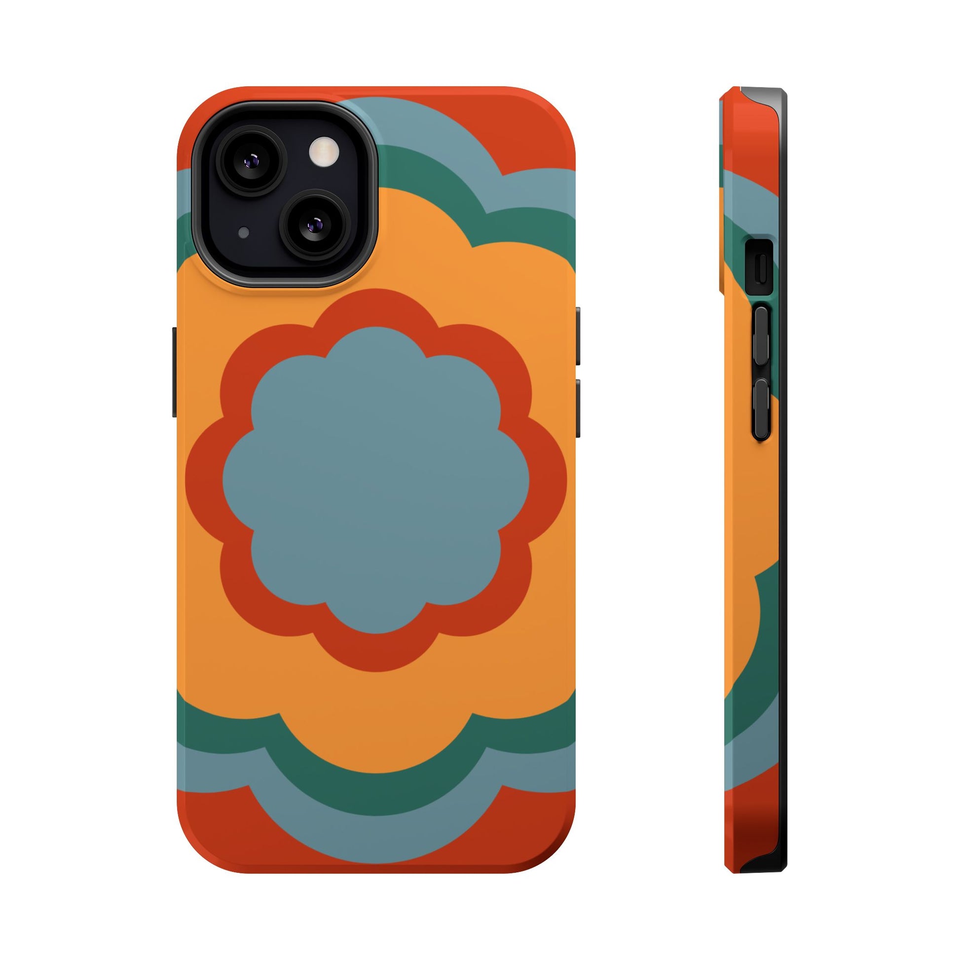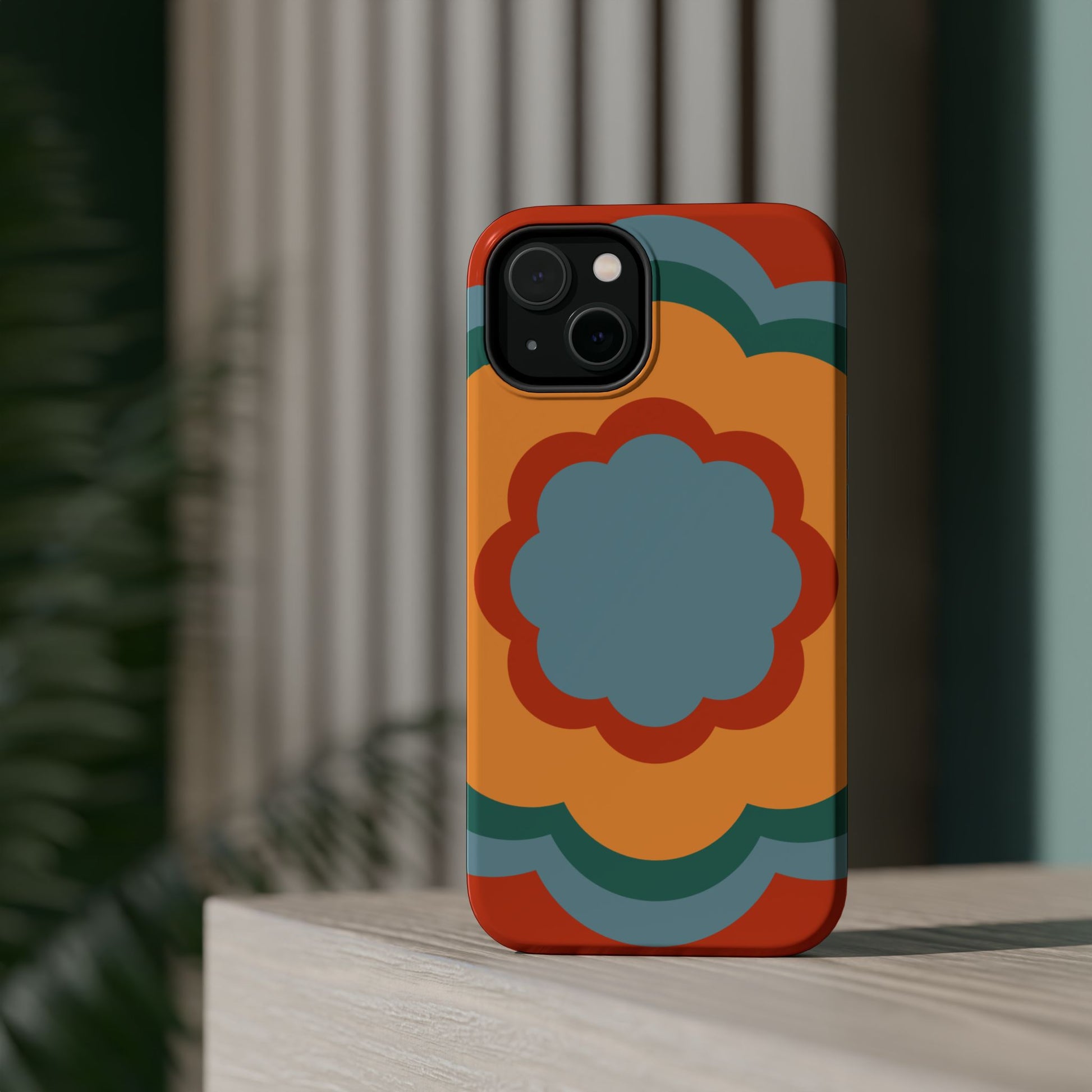 Embrace vintage vibes with our Retro Flower Power MagSafe  iPhone Case, featuring a vibrant, layered flower design in warm tones of burnt orange, mustard yellow, sage green, and muted teal. Inspired by classic 70s aesthetics, this case adds a playful and nostalgic touch to your phone while keeping it protected. Crafted with a dual-layer construction, it combines a hard polycarbonate outer shell with a shock-absorbent TPU layer for reliable protection against drops and everyday wear.