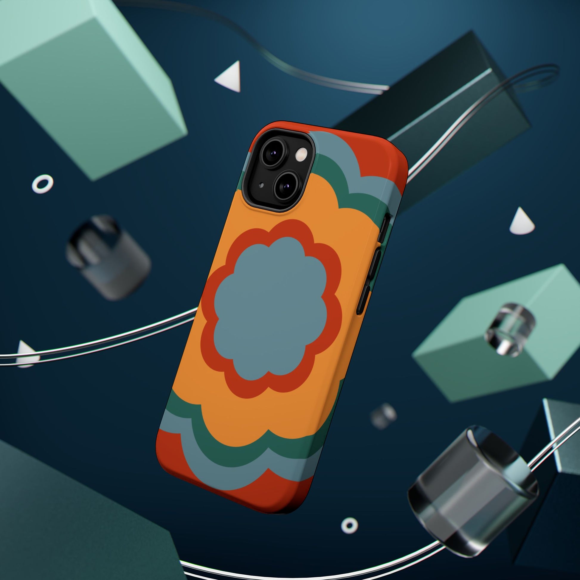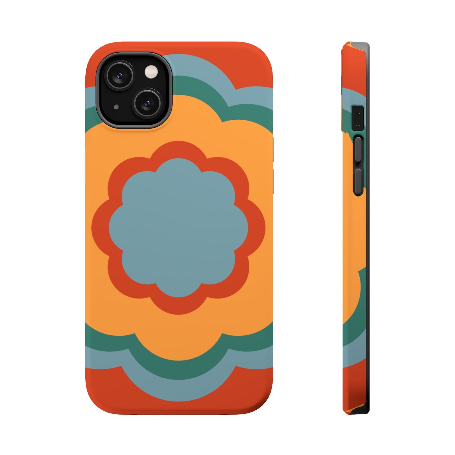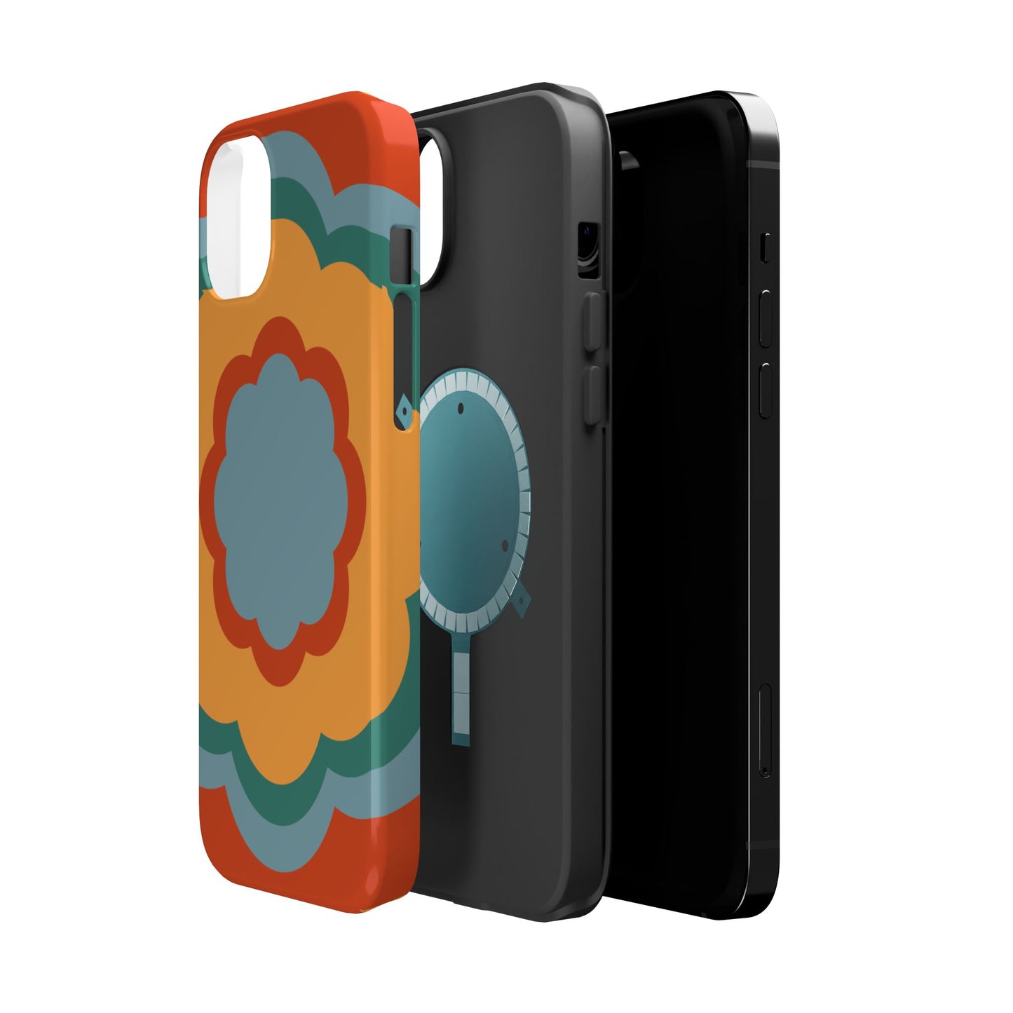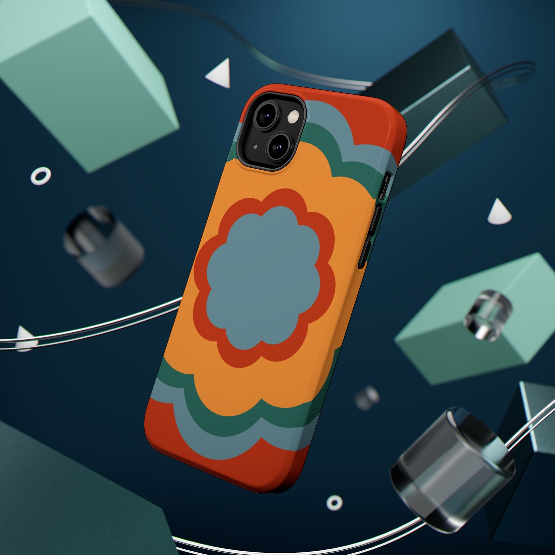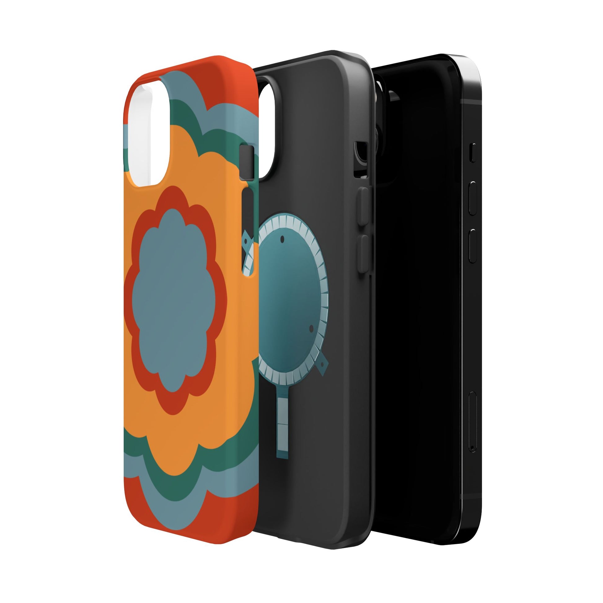 Embrace vintage vibes with our Retro Flower Power MagSafe  iPhone Case, featuring a vibrant, layered flower design in warm tones of burnt orange, mustard yellow, sage green, and muted teal. Inspired by classic 70s aesthetics, this case adds a playful and nostalgic touch to your phone while keeping it protected. Crafted with a dual-layer construction, it combines a hard polycarbonate outer shell with a shock-absorbent TPU layer for reliable protection against drops and everyday wear.