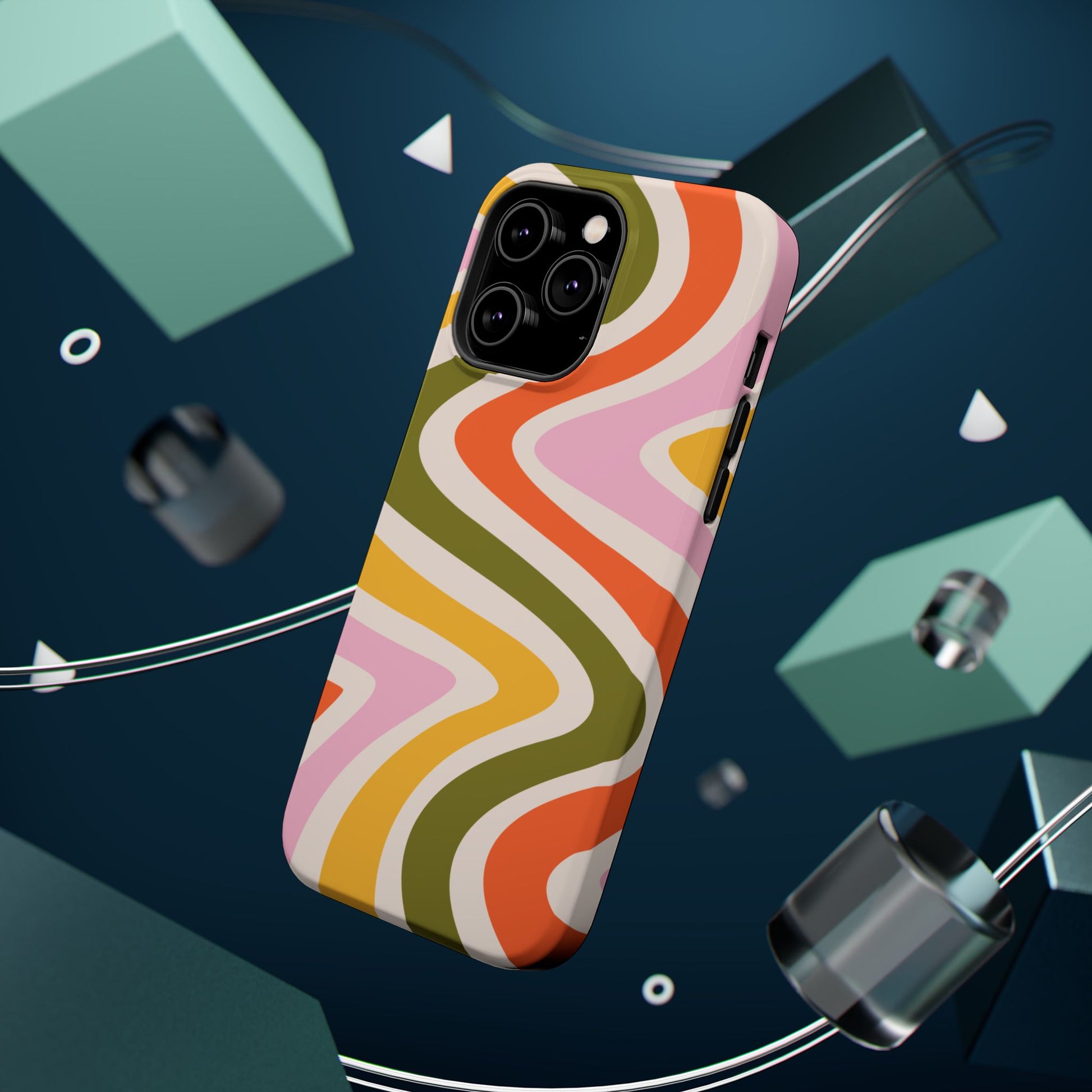 Groove in style with our Retro Groove MagSafe  iPhone Case, featuring a wavy, free-flowing design in warm orange, mustard yellow, olive green, and soft pink tones. This 70s-inspired pattern exudes nostalgic vibes, making it the perfect accessory for those who love vintage style with a modern t...