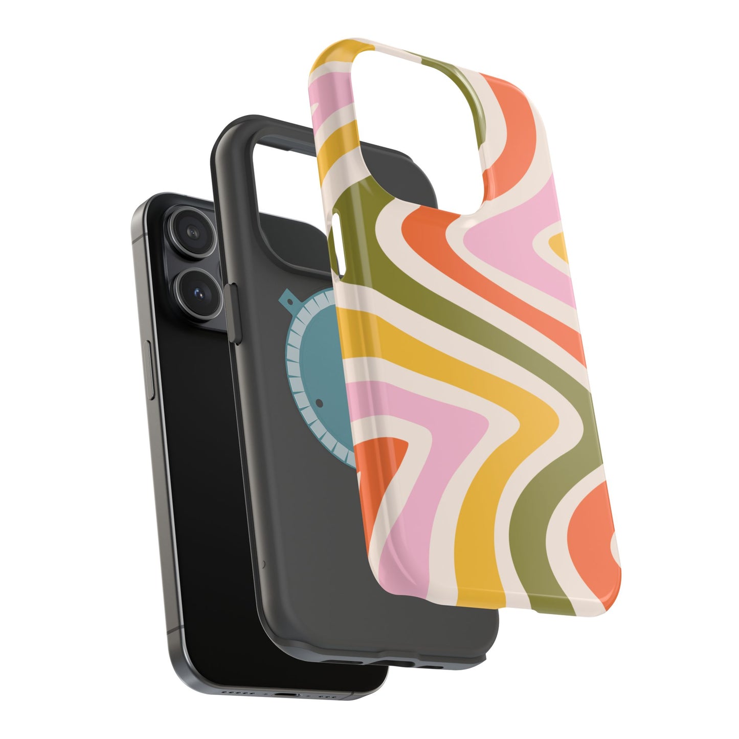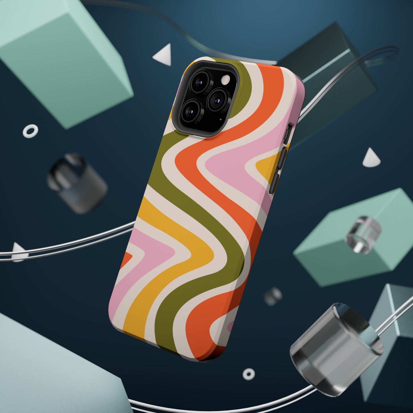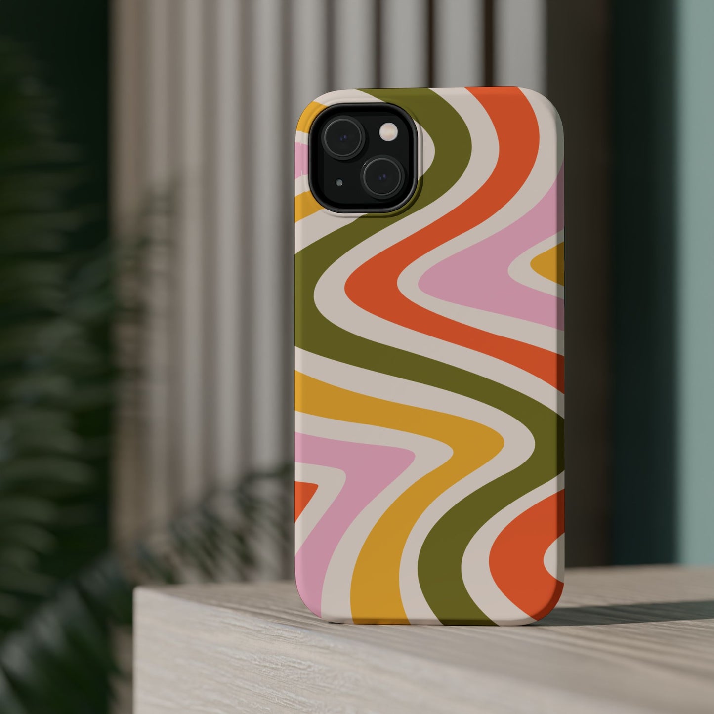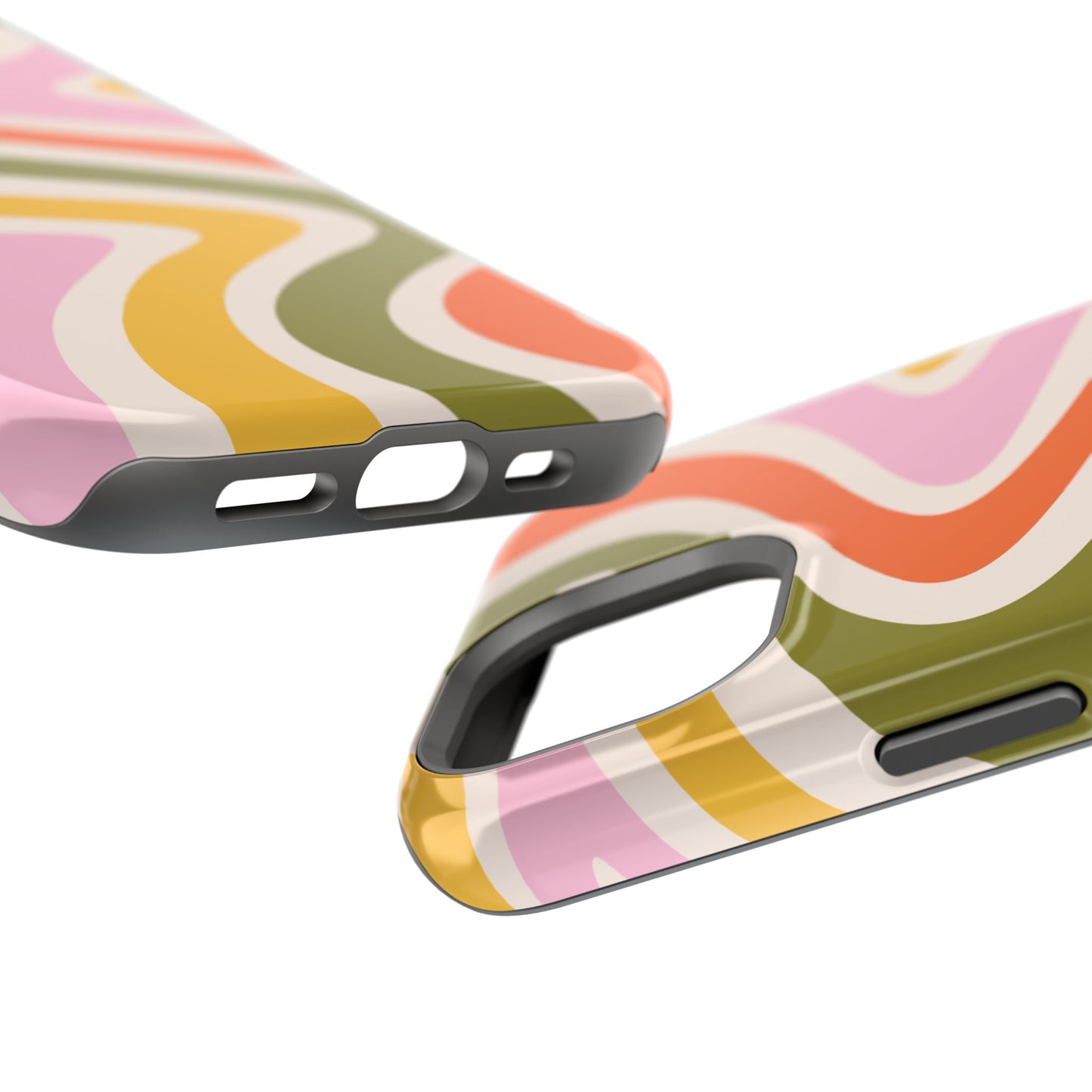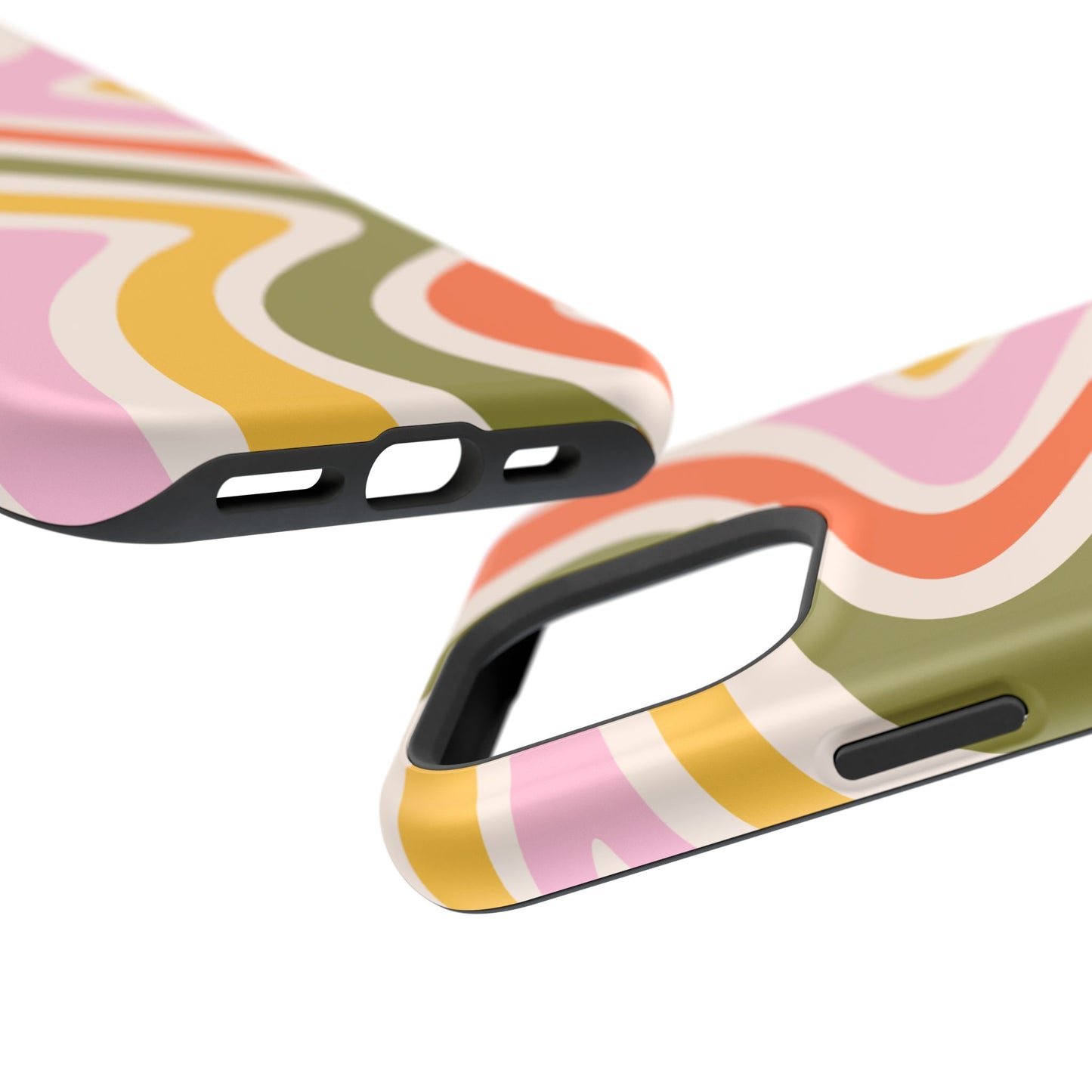 Groove in style with our Retro Groove MagSafe iPhone Case, featuring a wavy, free-flowing design in warm orange, mustard yellow, olive green, and soft pink tones. This 70s-inspired pattern exudes nostalgic vibes, making it the perfect accessory for those who love vintage style with a modern twist. Built with dual-layer protection, this case combines a sturdy polycarbonate outer shell with a shock-absorbent TPU layer to keep your phone safe from drops and everyday wear.