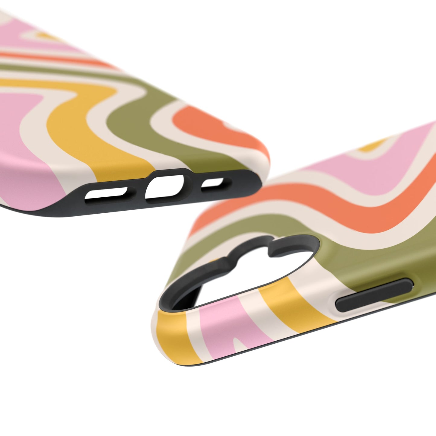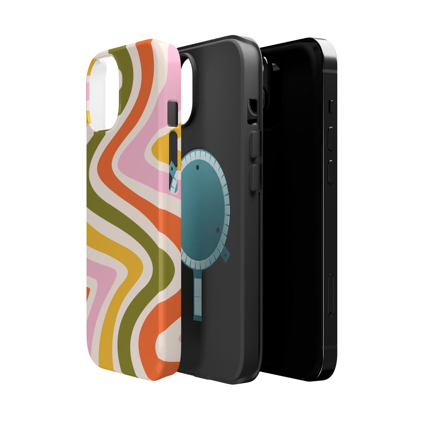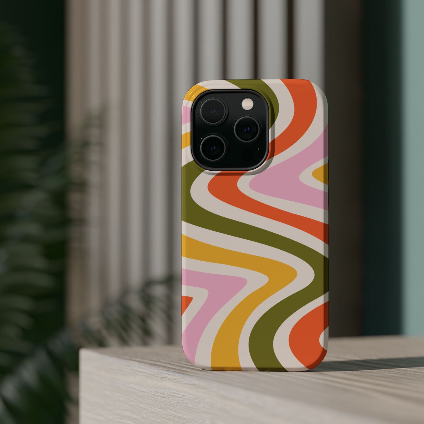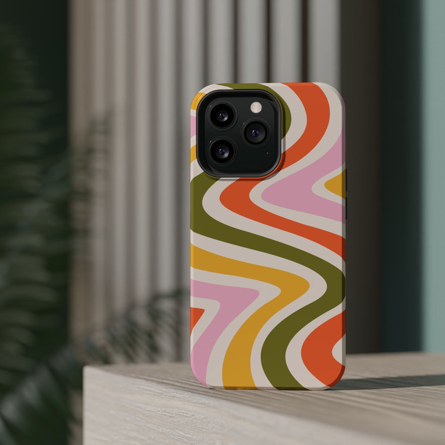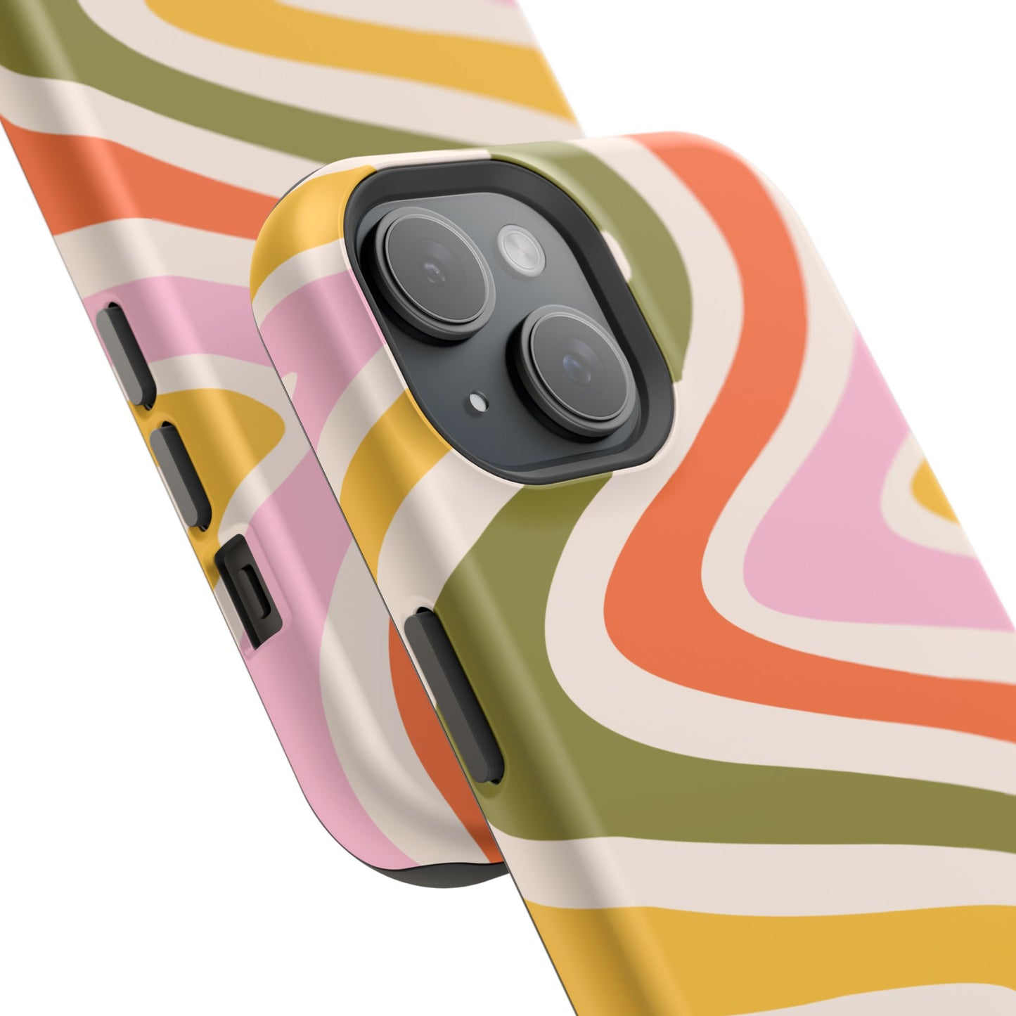 Groove in style with our Retro Groove MagSafe iPhone Case, featuring a wavy, free-flowing design in warm orange, mustard yellow, olive green, and soft pink tones. This 70s-inspired pattern exudes nostalgic vibes, making it the perfect accessory for those who love vintage style with a modern twist. Built with dual-layer protection, this case combines a sturdy polycarbonate outer shell with a shock-absorbent TPU layer to keep your phone safe from drops and everyday wear.