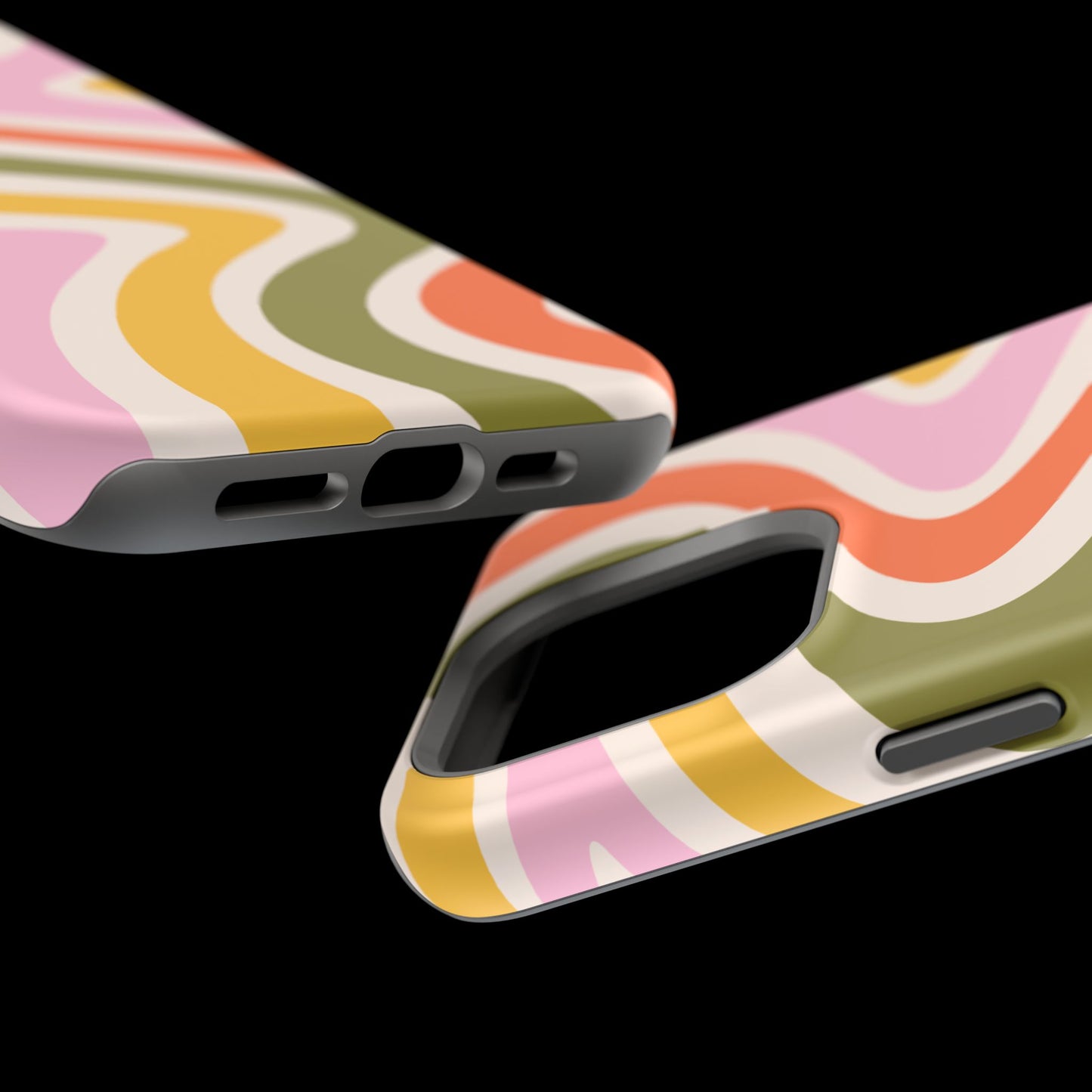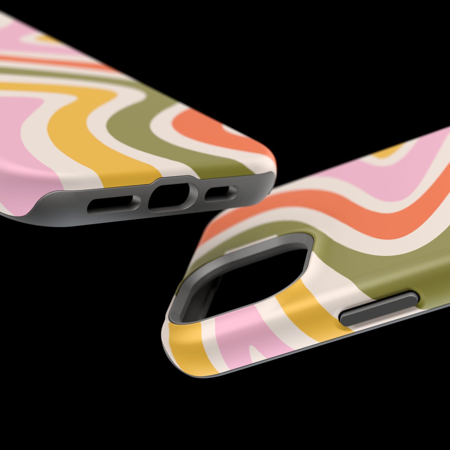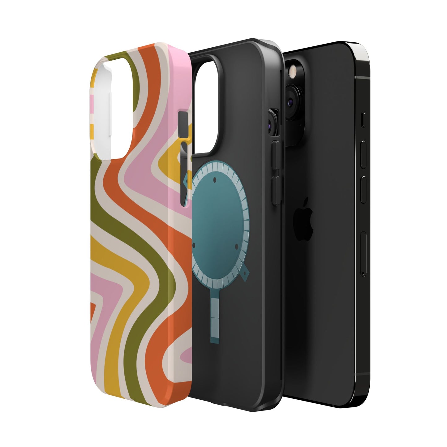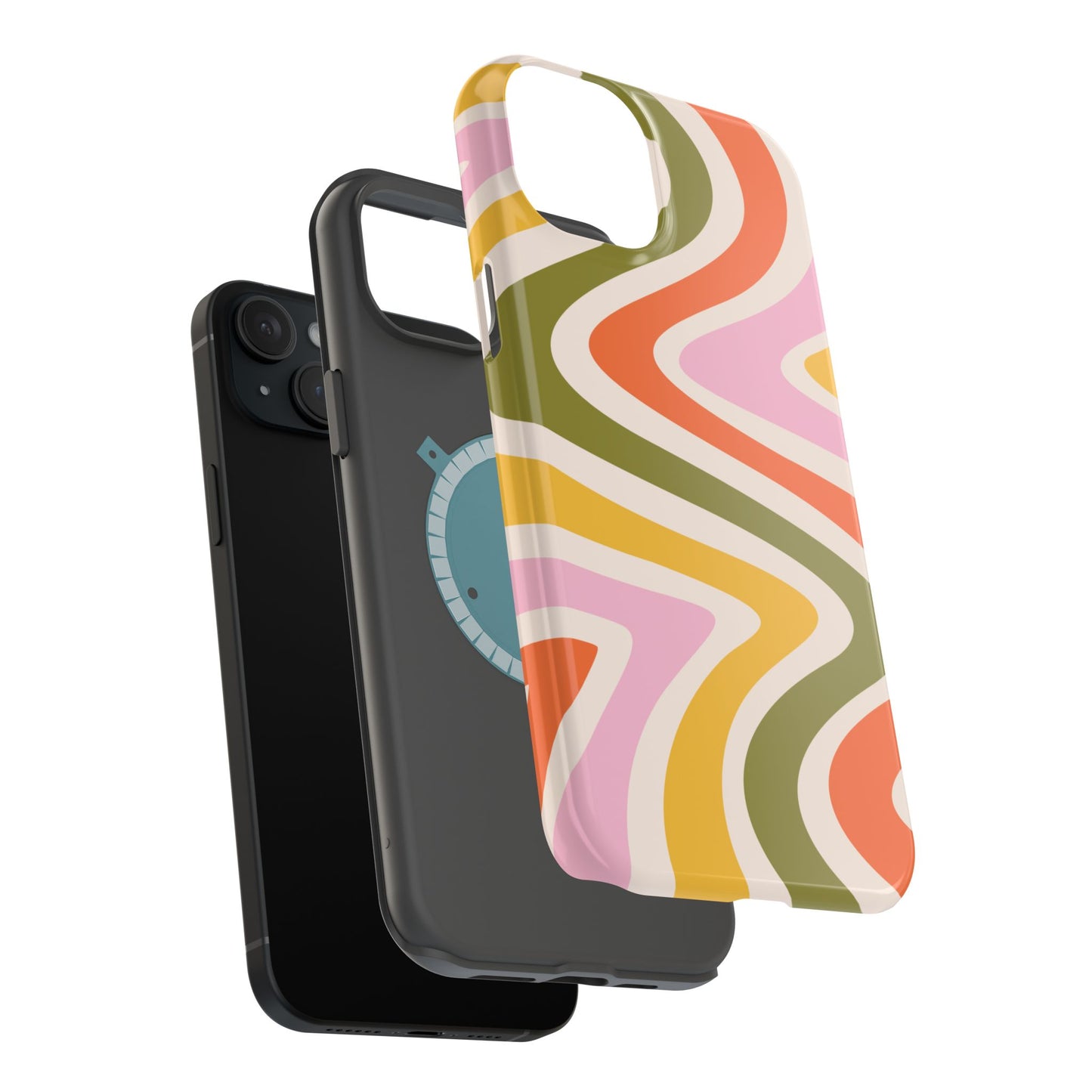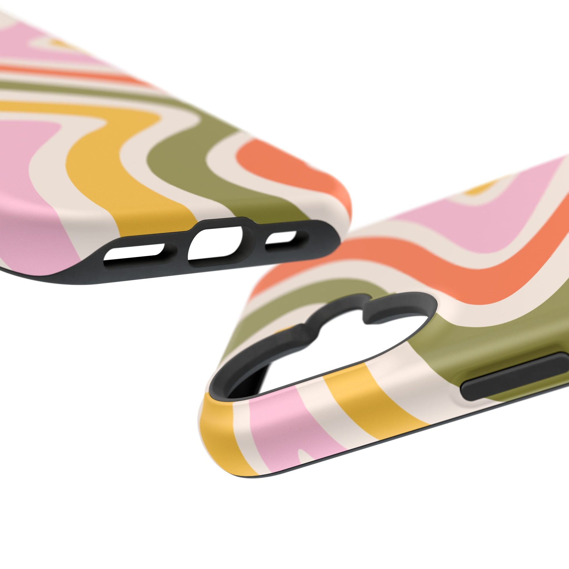 Groove in style with our Retro Groove MagSafe iPhone Case, featuring a wavy, free-flowing design in warm orange, mustard yellow, olive green, and soft pink tones. This 70s-inspired pattern exudes nostalgic vibes, making it the perfect accessory for those who love vintage style with a modern twist. Built with dual-layer protection, this case combines a sturdy polycarbonate outer shell with a shock-absorbent TPU layer to keep your phone safe from drops and everyday wear.