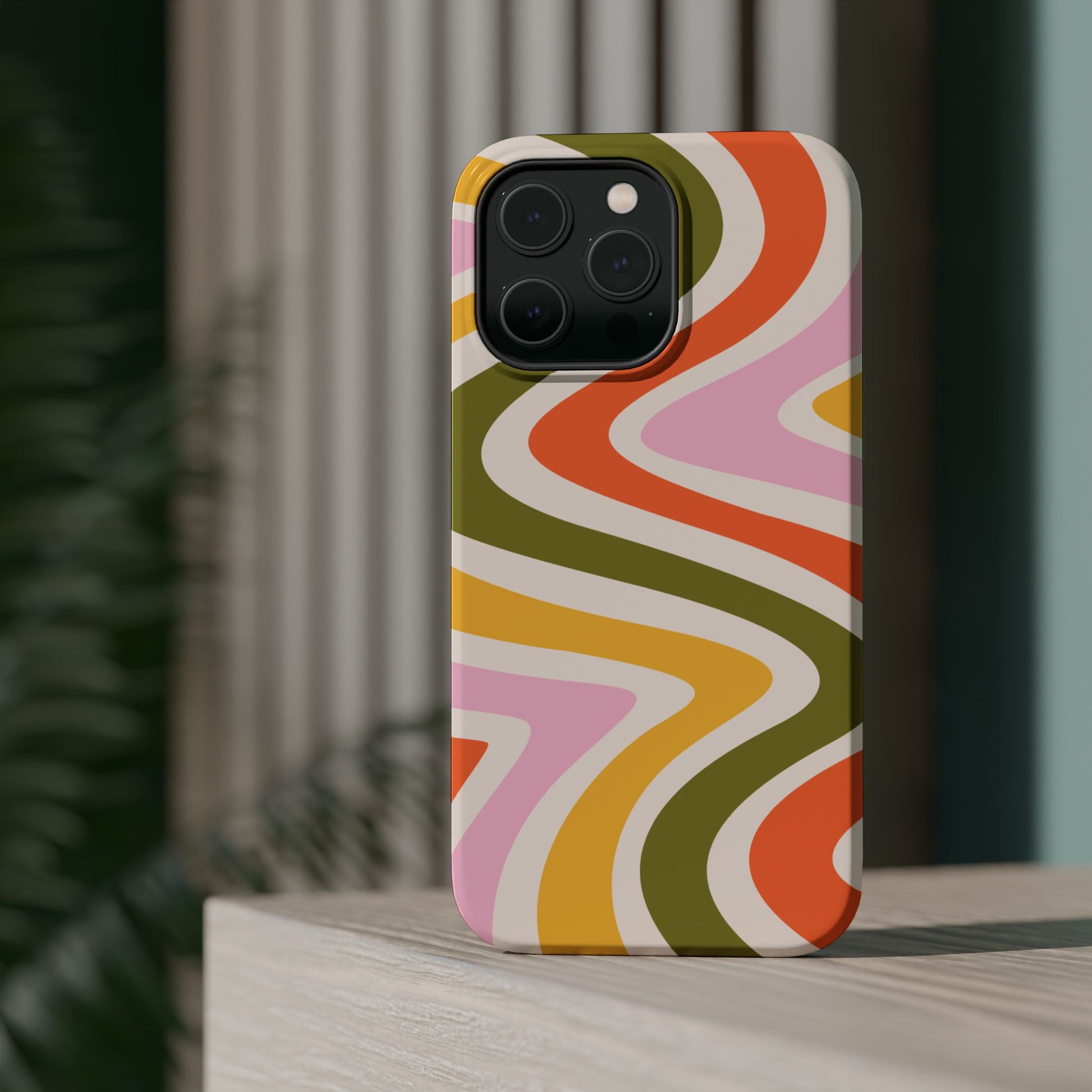 Groove in style with our Retro Groove MagSafe iPhone Case, featuring a wavy, free-flowing design in warm orange, mustard yellow, olive green, and soft pink tones. This 70s-inspired pattern exudes nostalgic vibes, making it the perfect accessory for those who love vintage style with a modern tw...