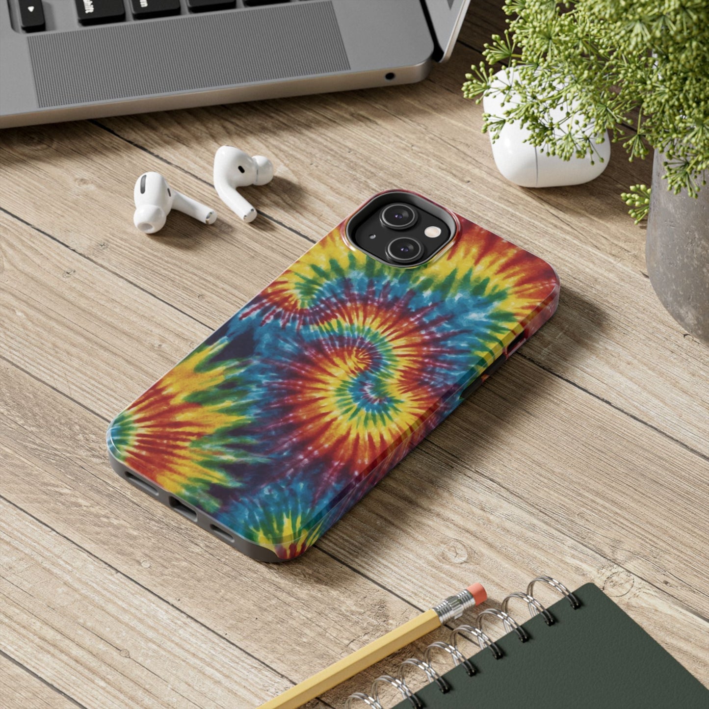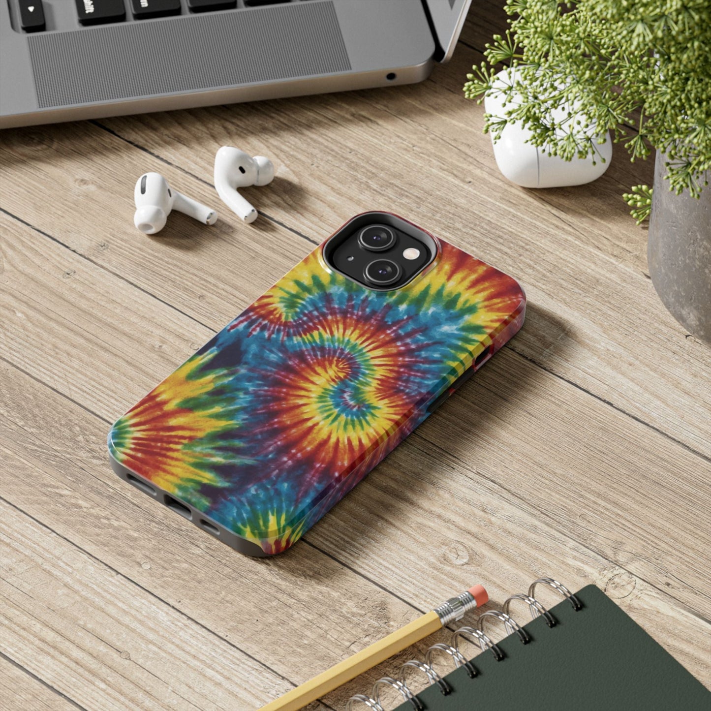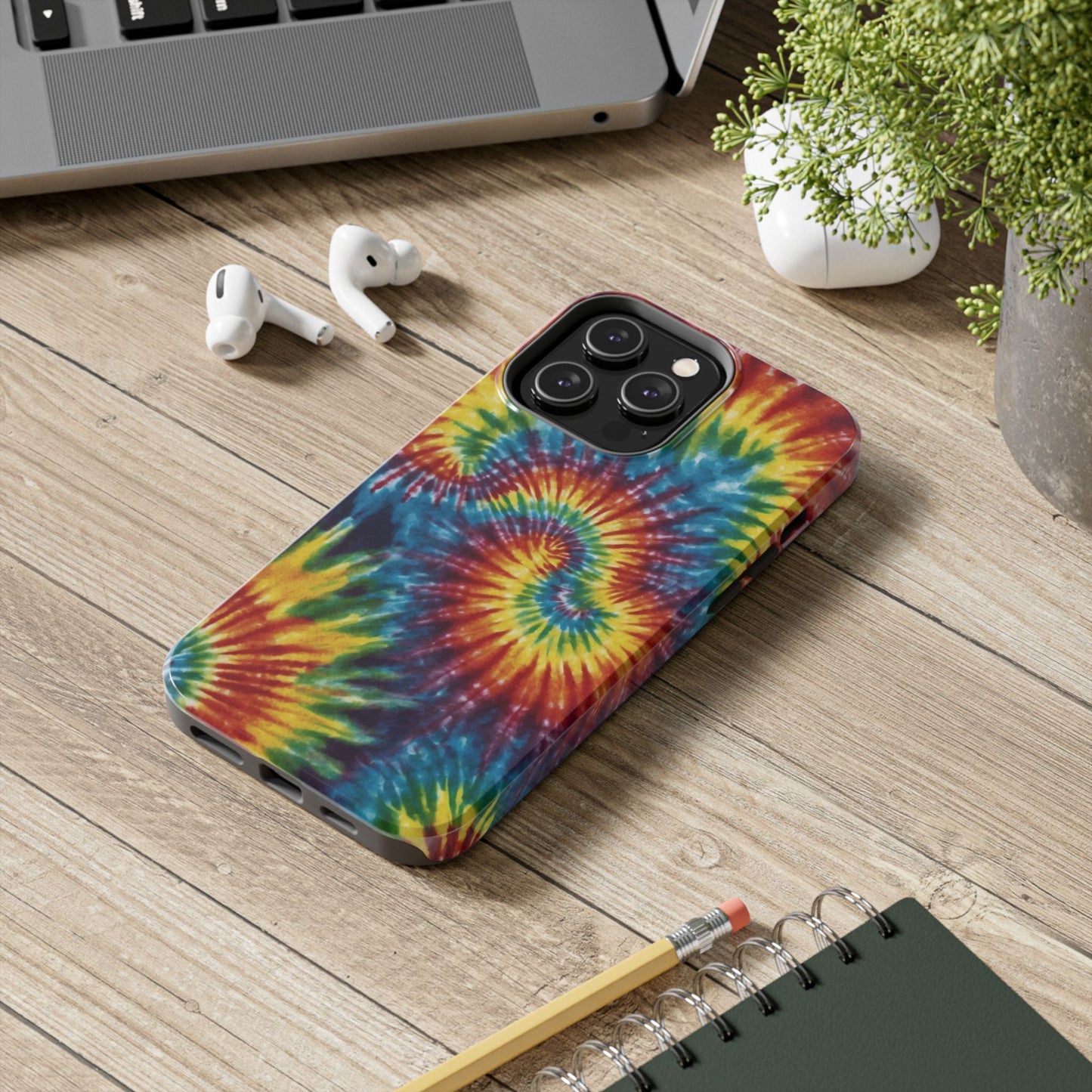Retro Tie-Dye Swirl iPhone Case – Rainbow Spiral Design