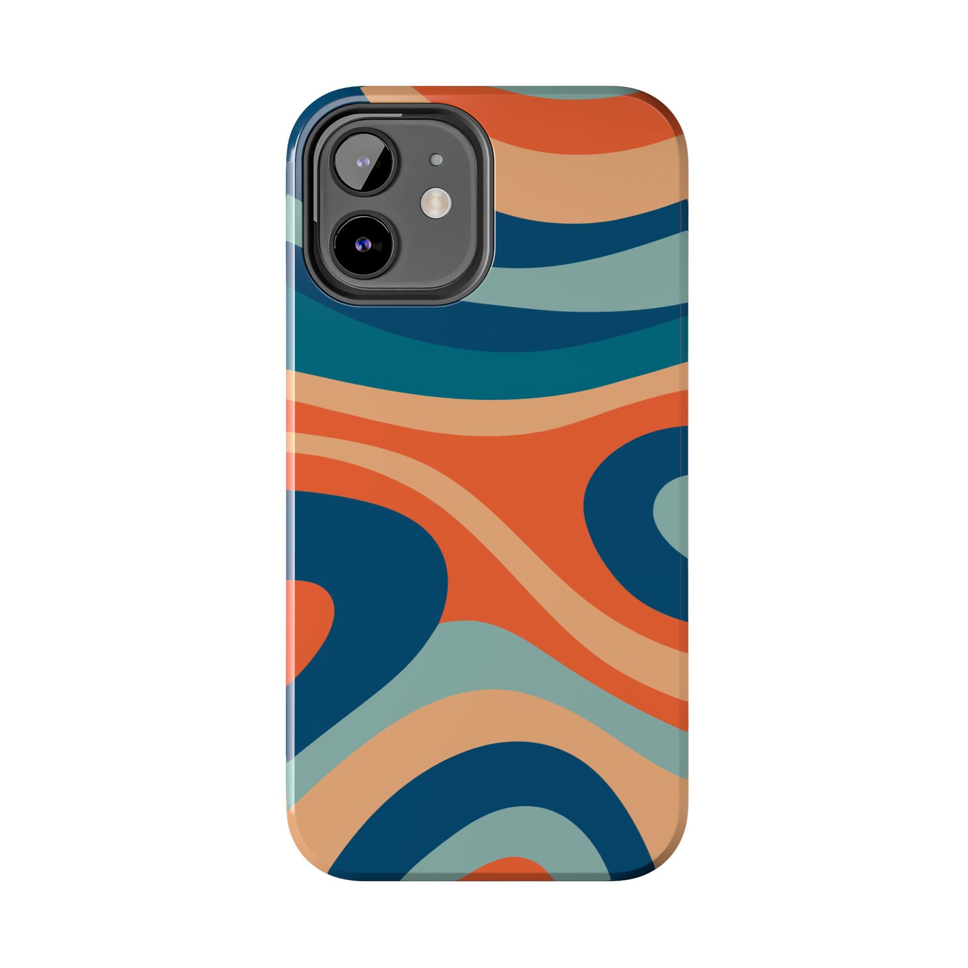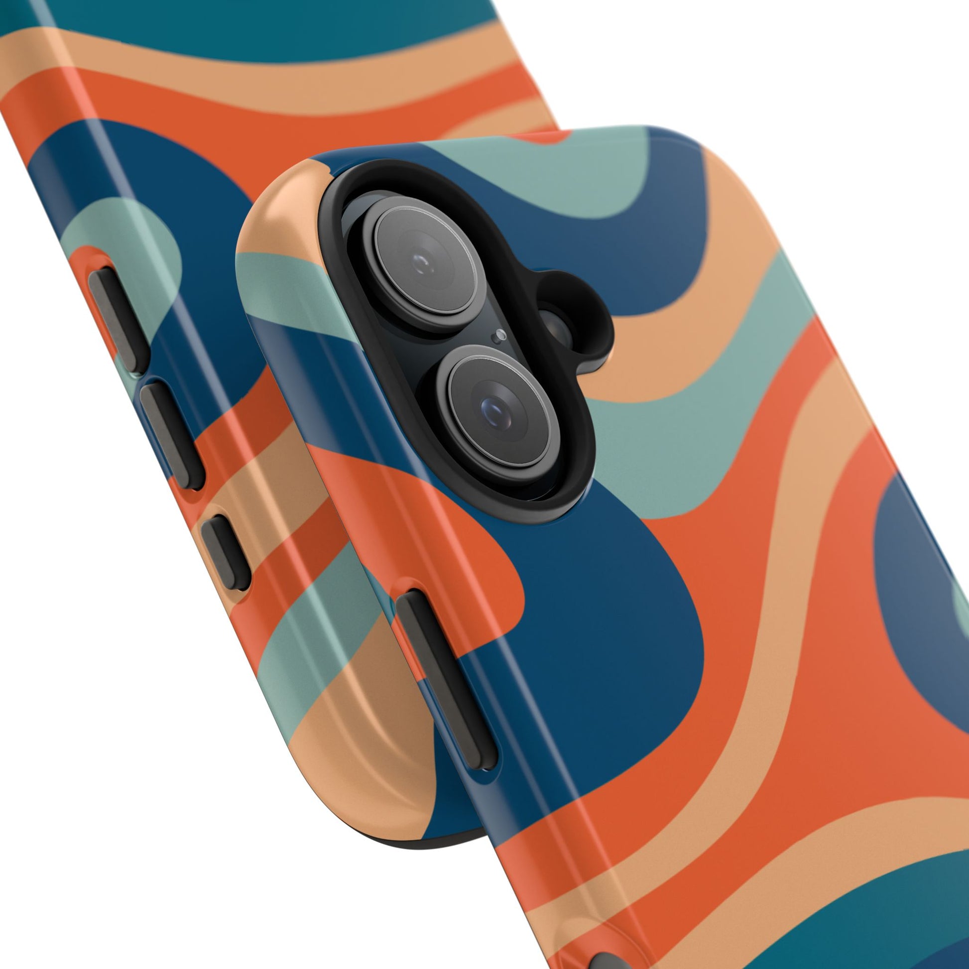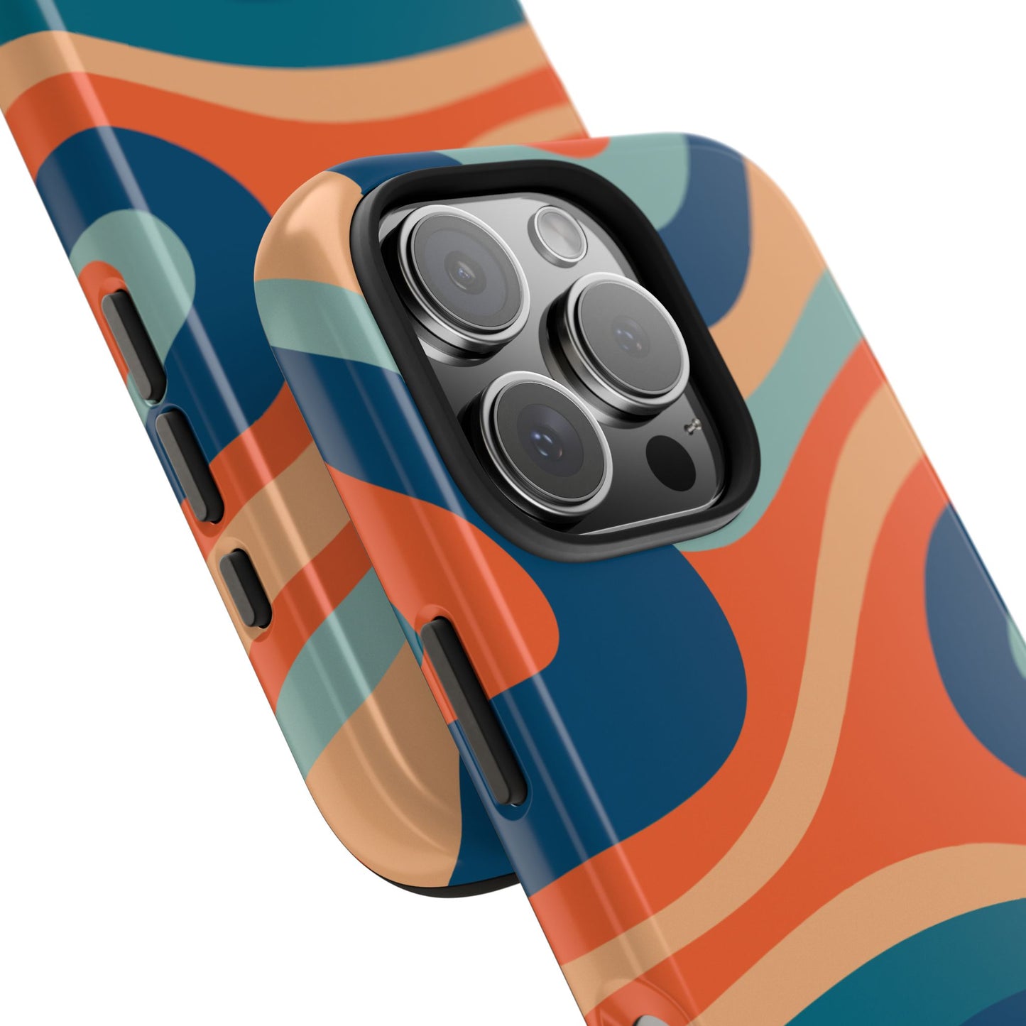 Retro Vibe Wavy Stripes iPhone Case – 70s-Inspired in Teal, Orange, and Rust