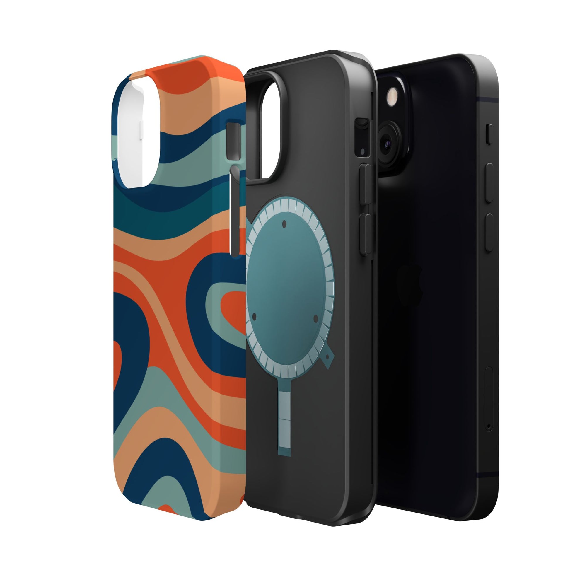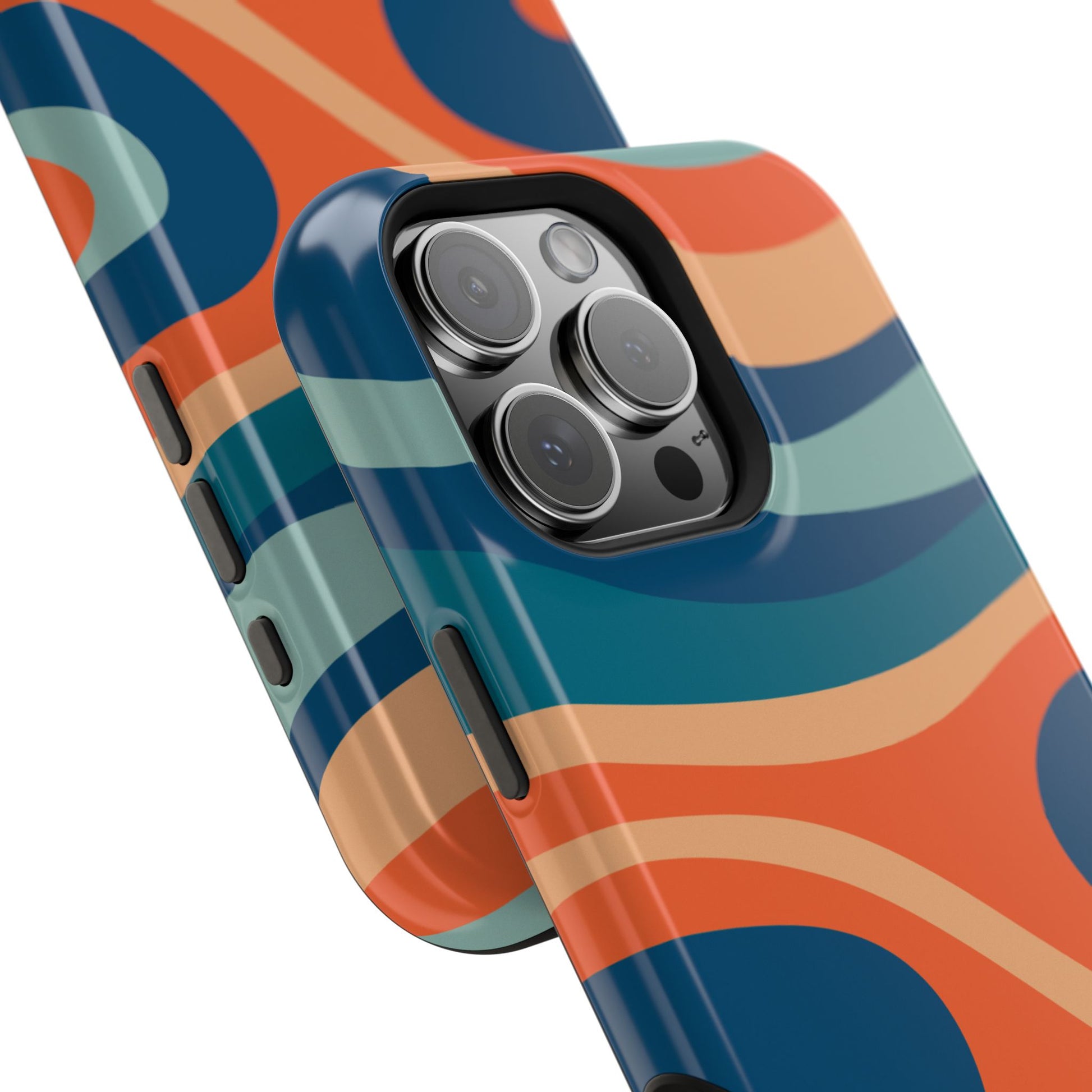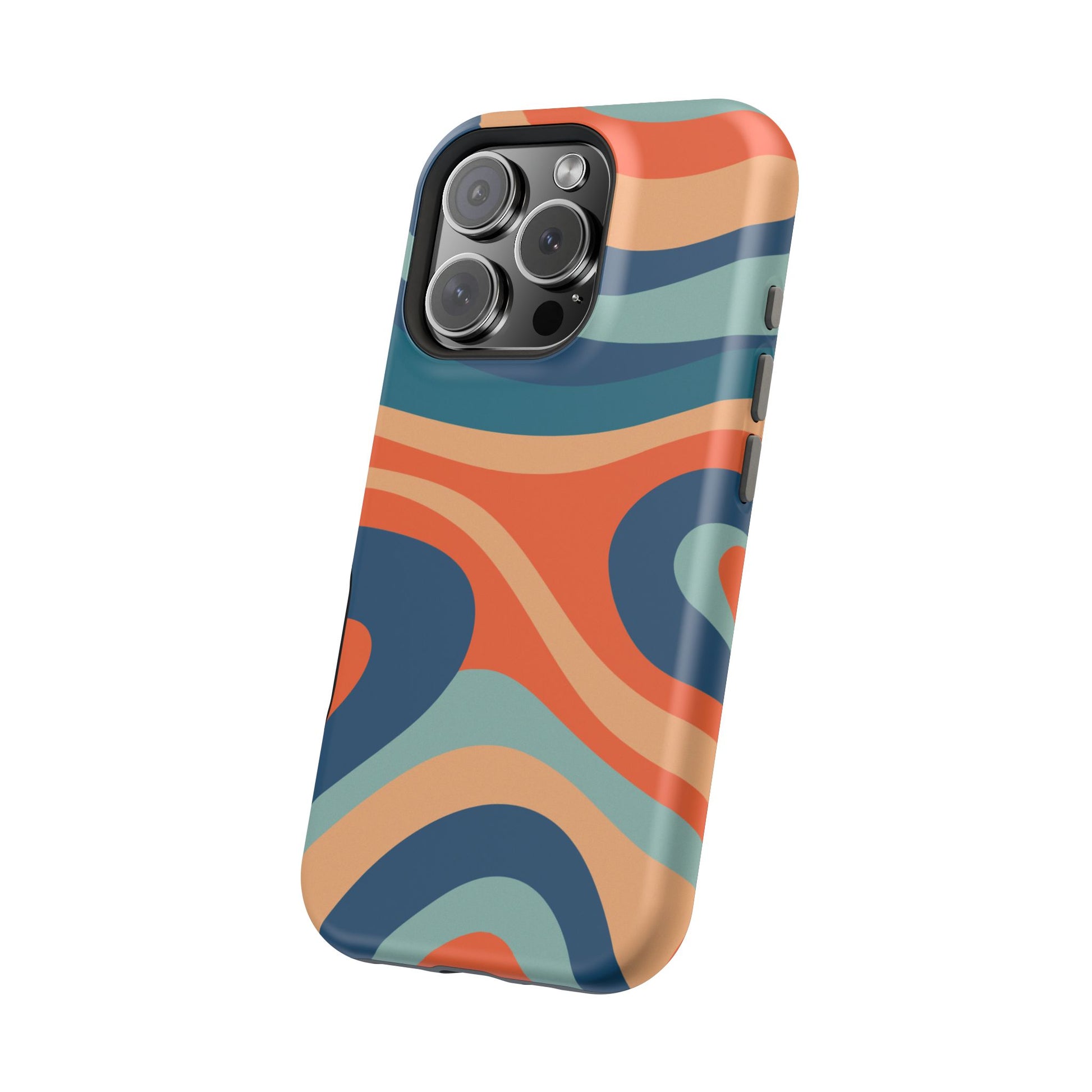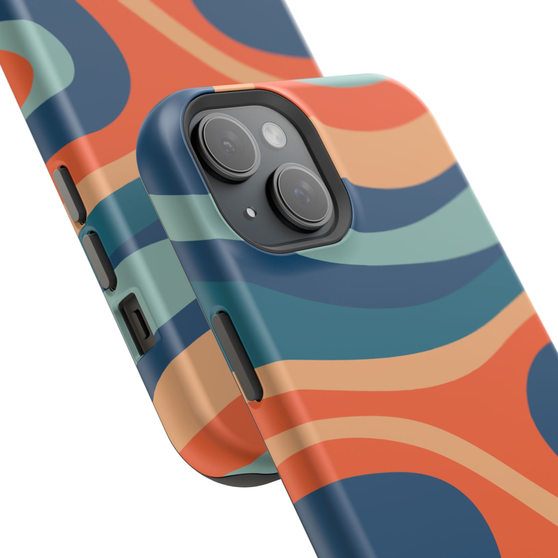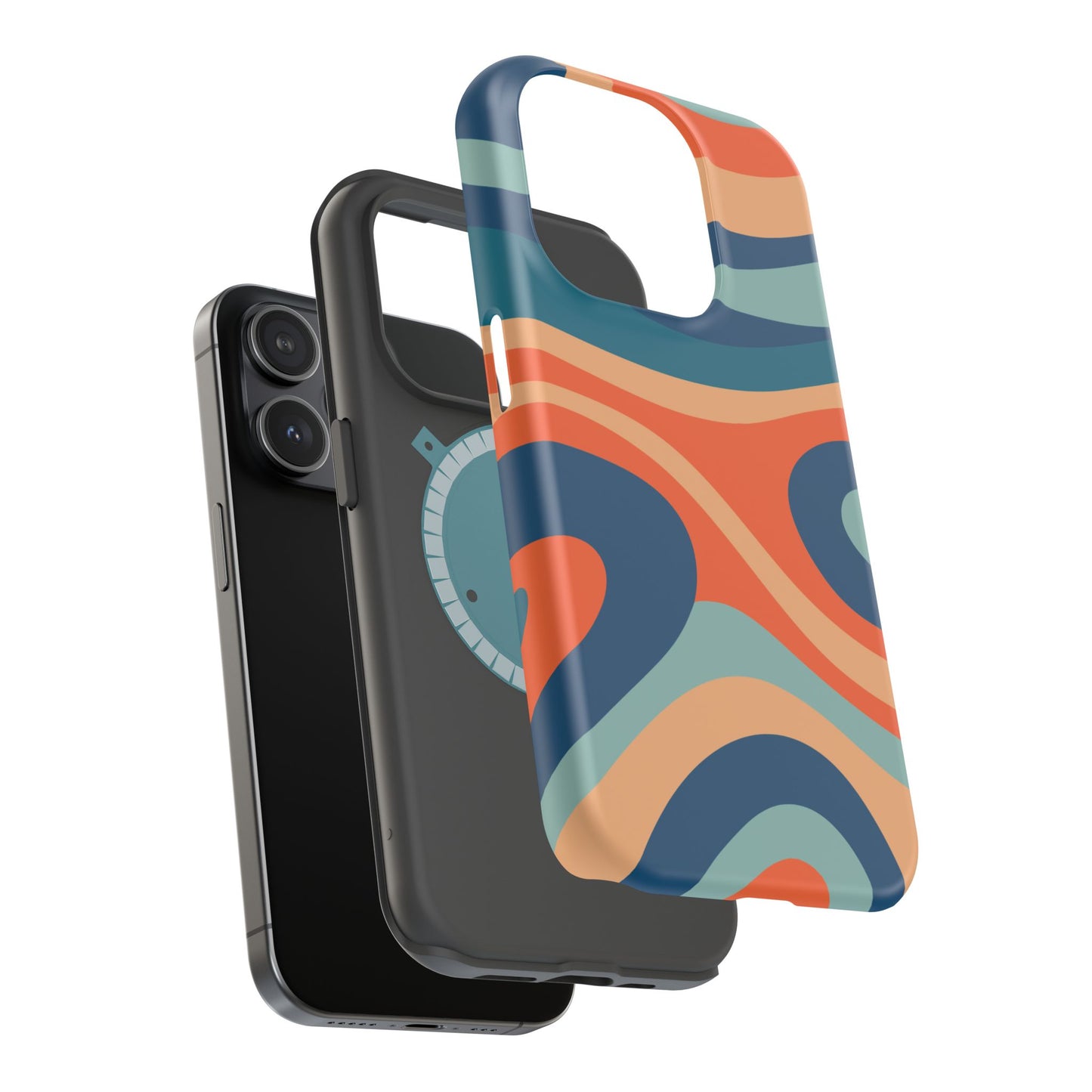 Retro Vibe Wavy Stripes MagSafe iPhone Case – 70s-Inspired in Teal, Orange, and Rust