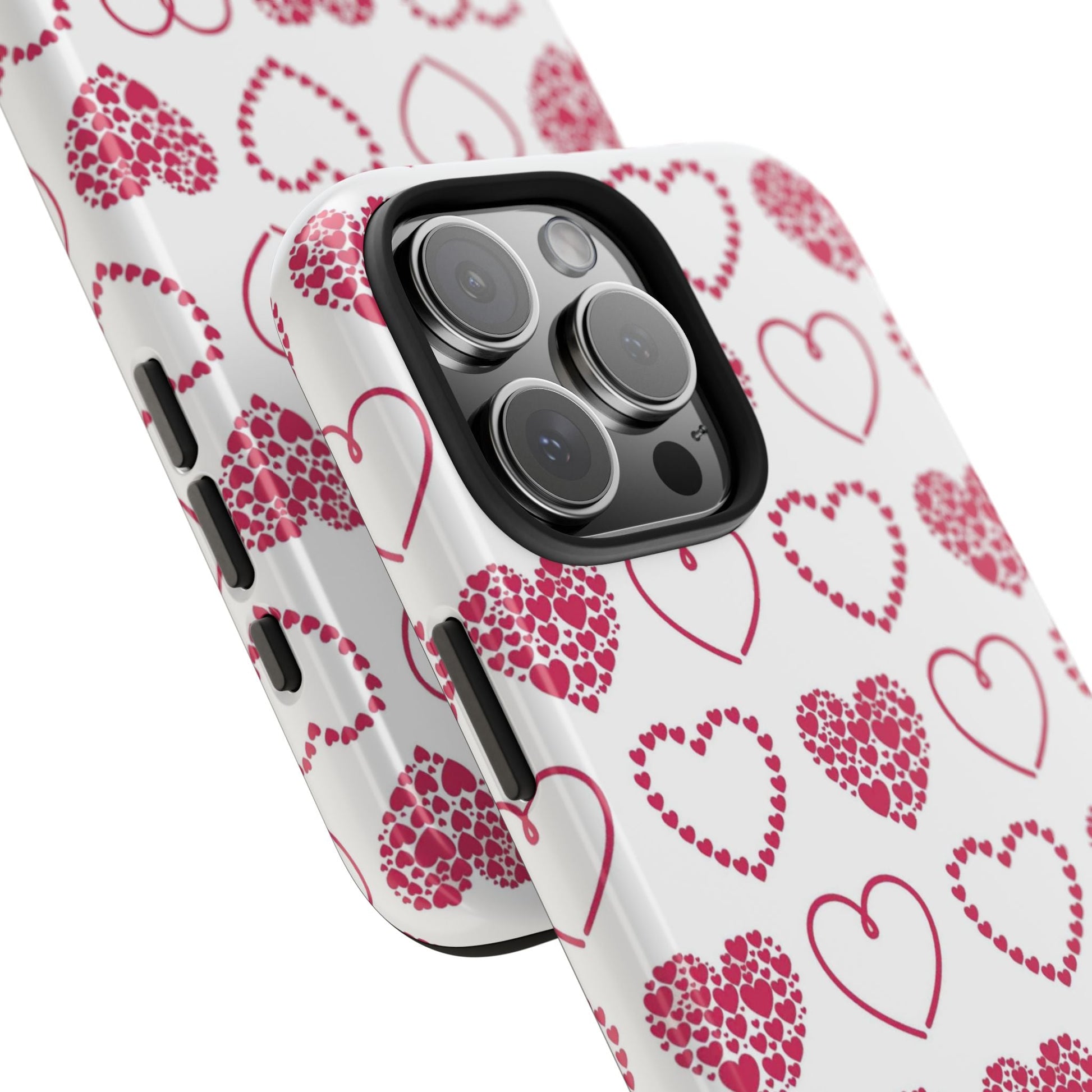 Spread the love with our Romantic Heart Cluster iPhone Case! This eye-catching design features playful pink hearts encircled by tiny heart clusters on a clean white base, perfect for a cheerful, romantic vibe. Built with dual-layer construction, it provides reliable protection while stayin...