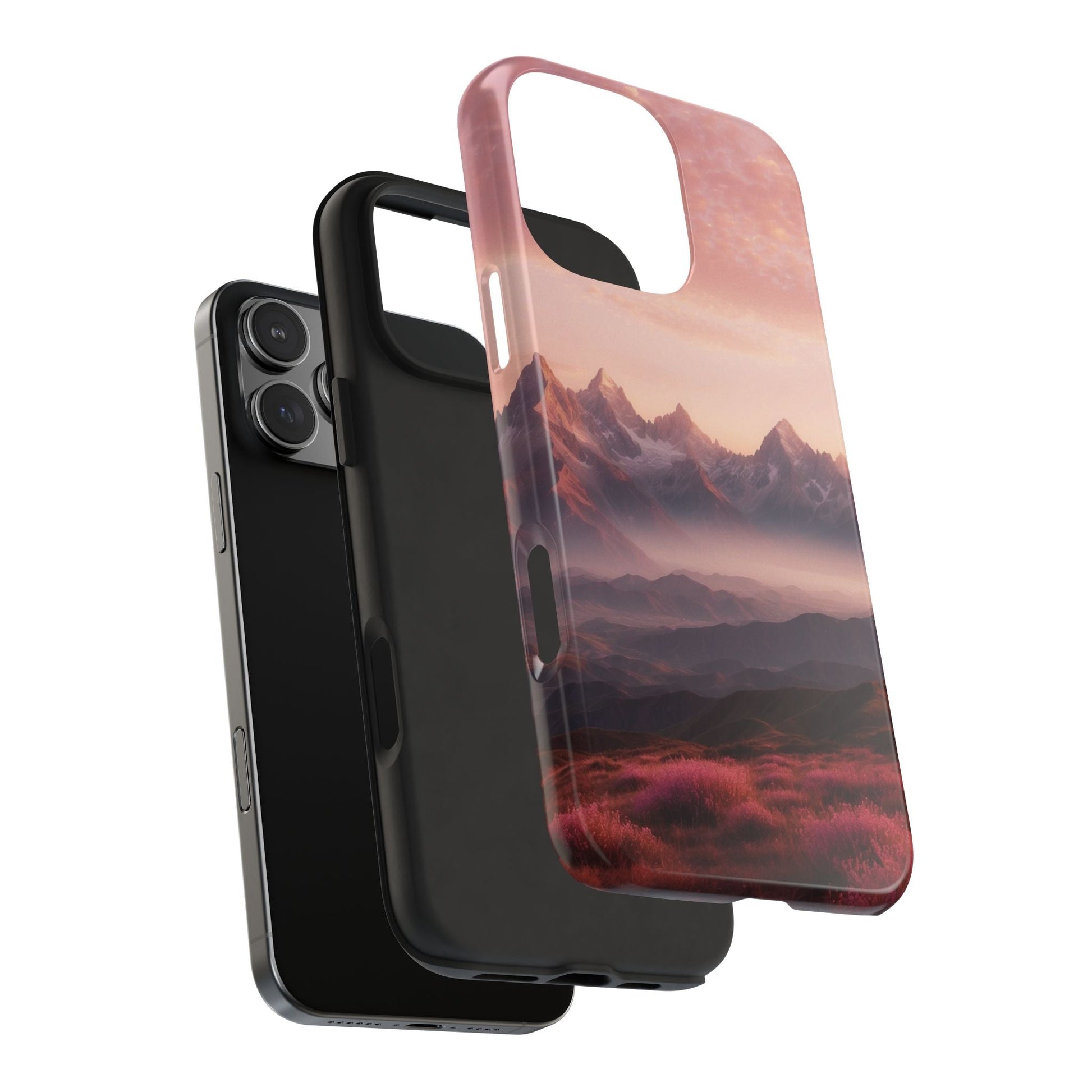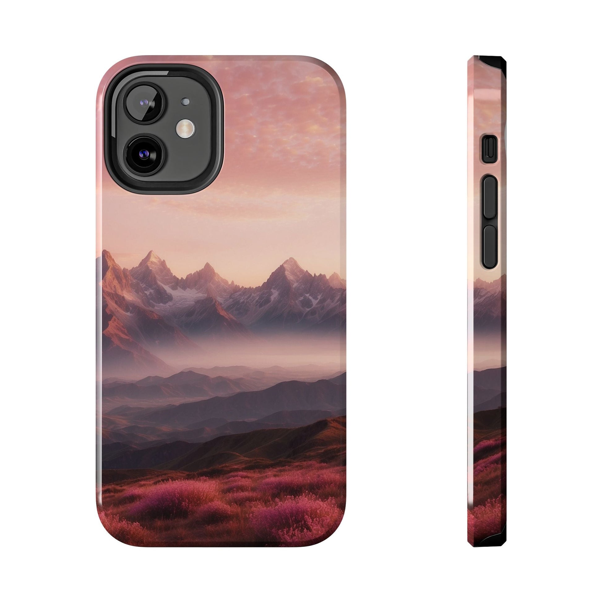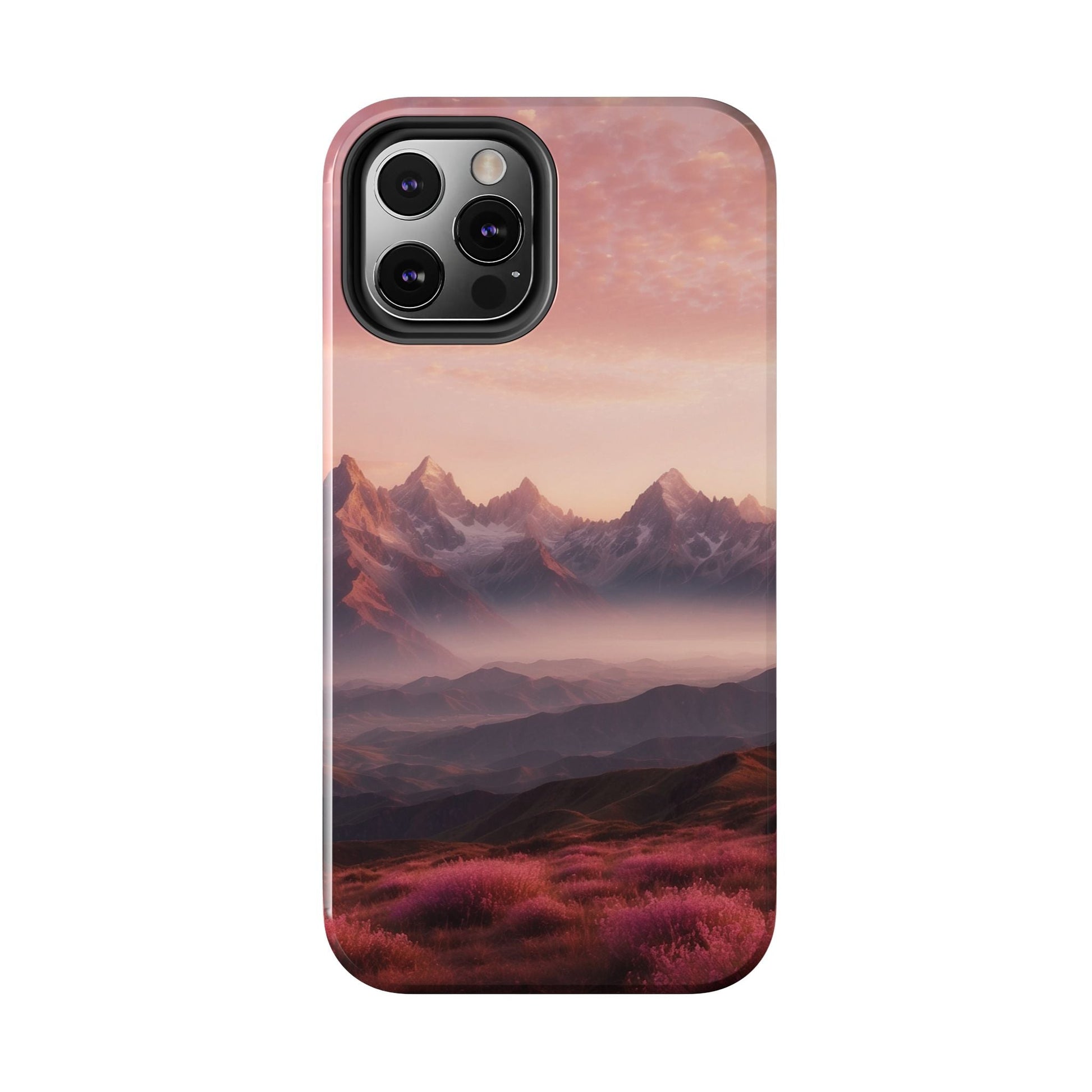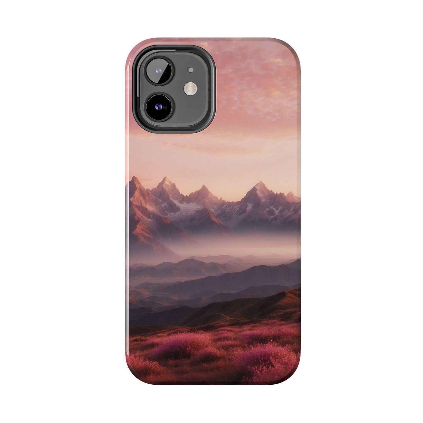 Embrace the serenity of sunrise with our Rosy Dawn iPhone Case! This breathtaking design captures the magic of a dawn sky painting the mountains in hues of pink and purple, while a field of wildflowers blooms below. It's a captivating scene that brings the tranquility of nature to your phone. Crafted with a dual-layer design, combining a shock-absorbing TPU inner layer and a sturdy polycarbonate outer shell, this case provides reliable protection against everyday bumps and drops. With its slim and lightweight design, it's easy to slip in and out of your pocket, while still offering robust protection.