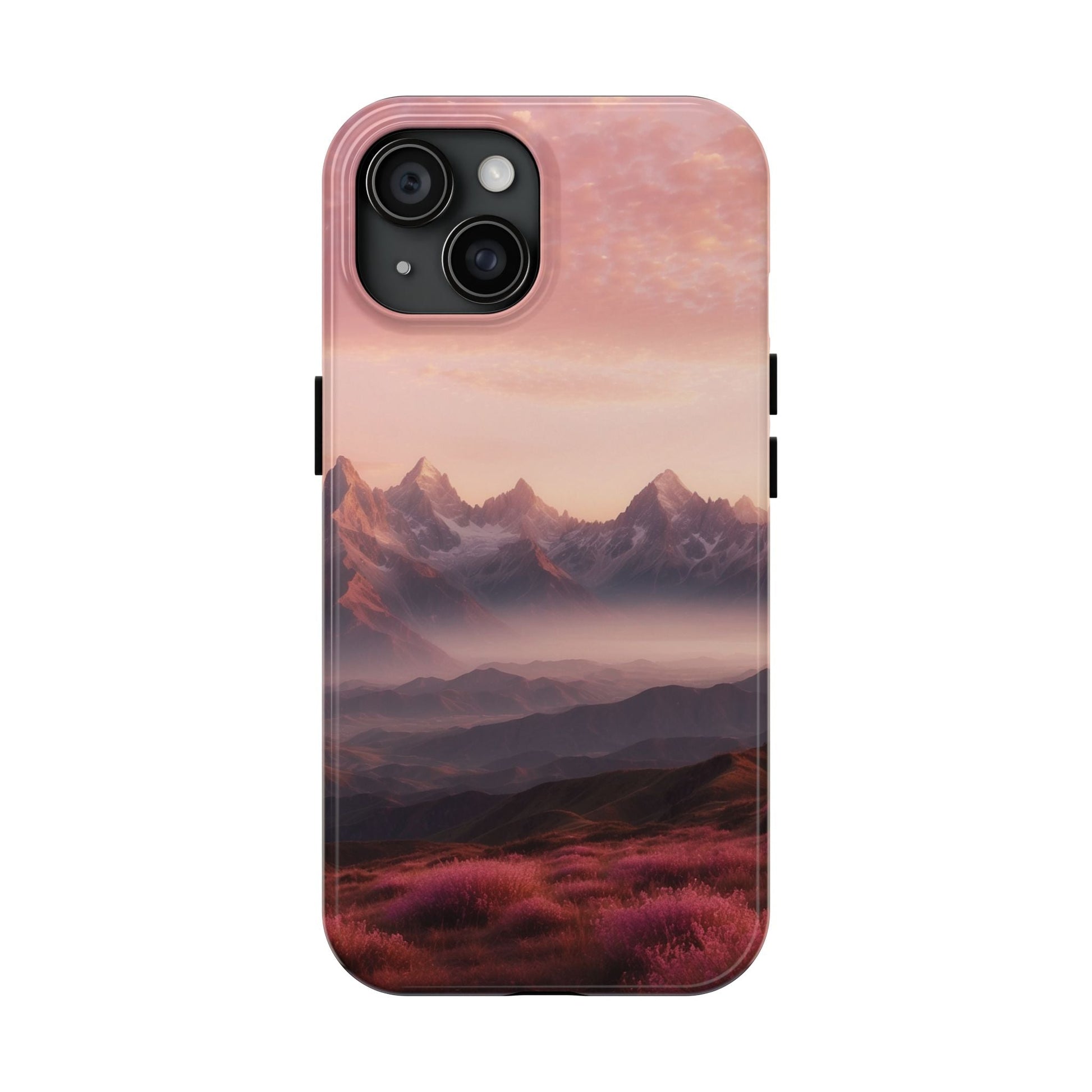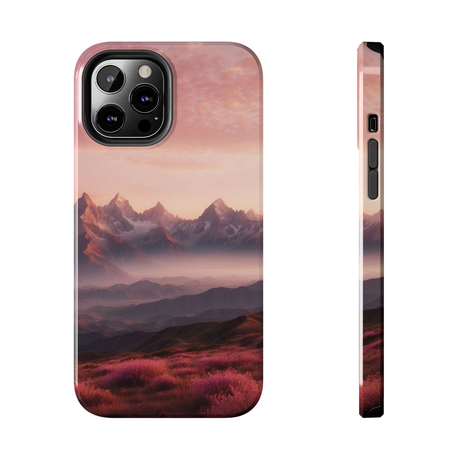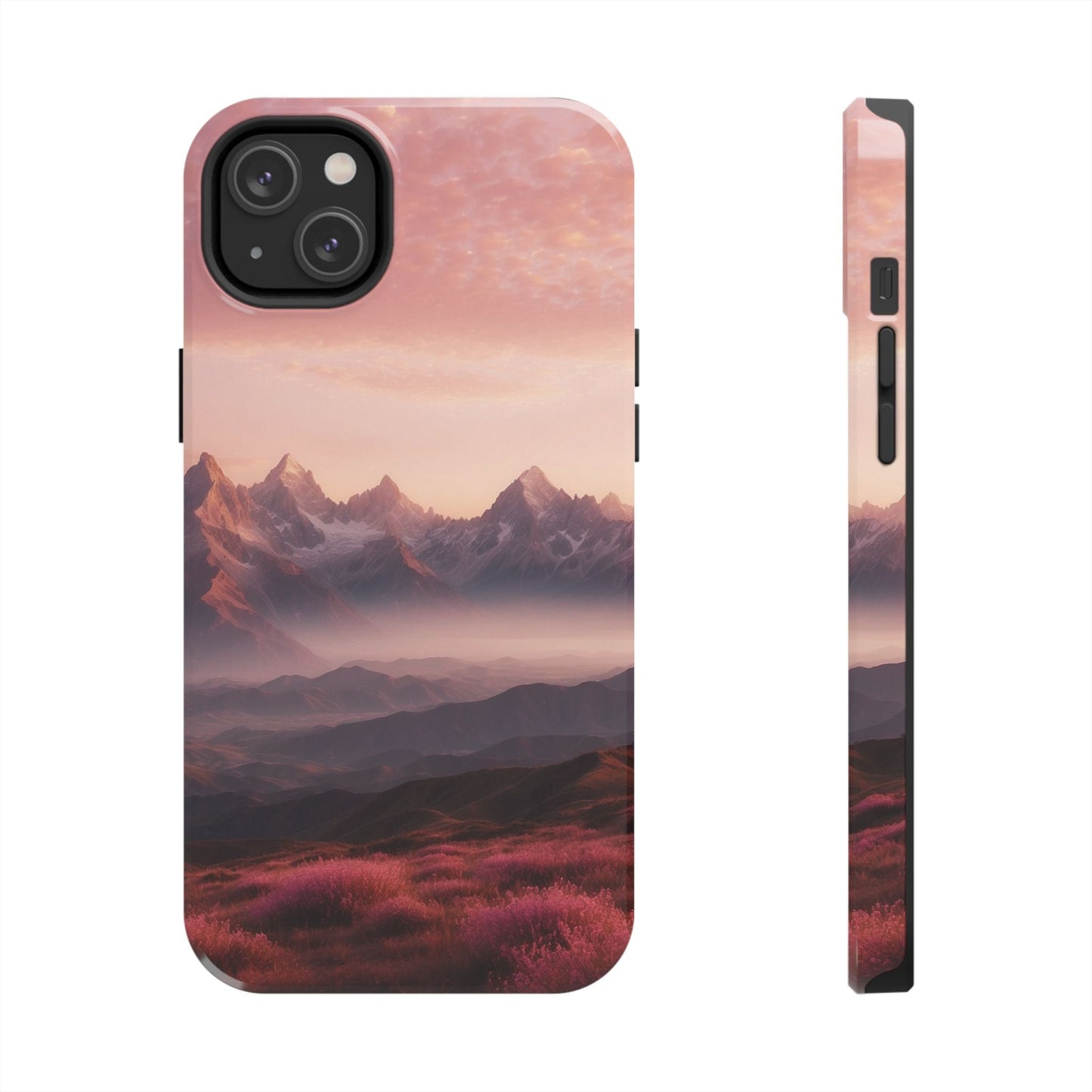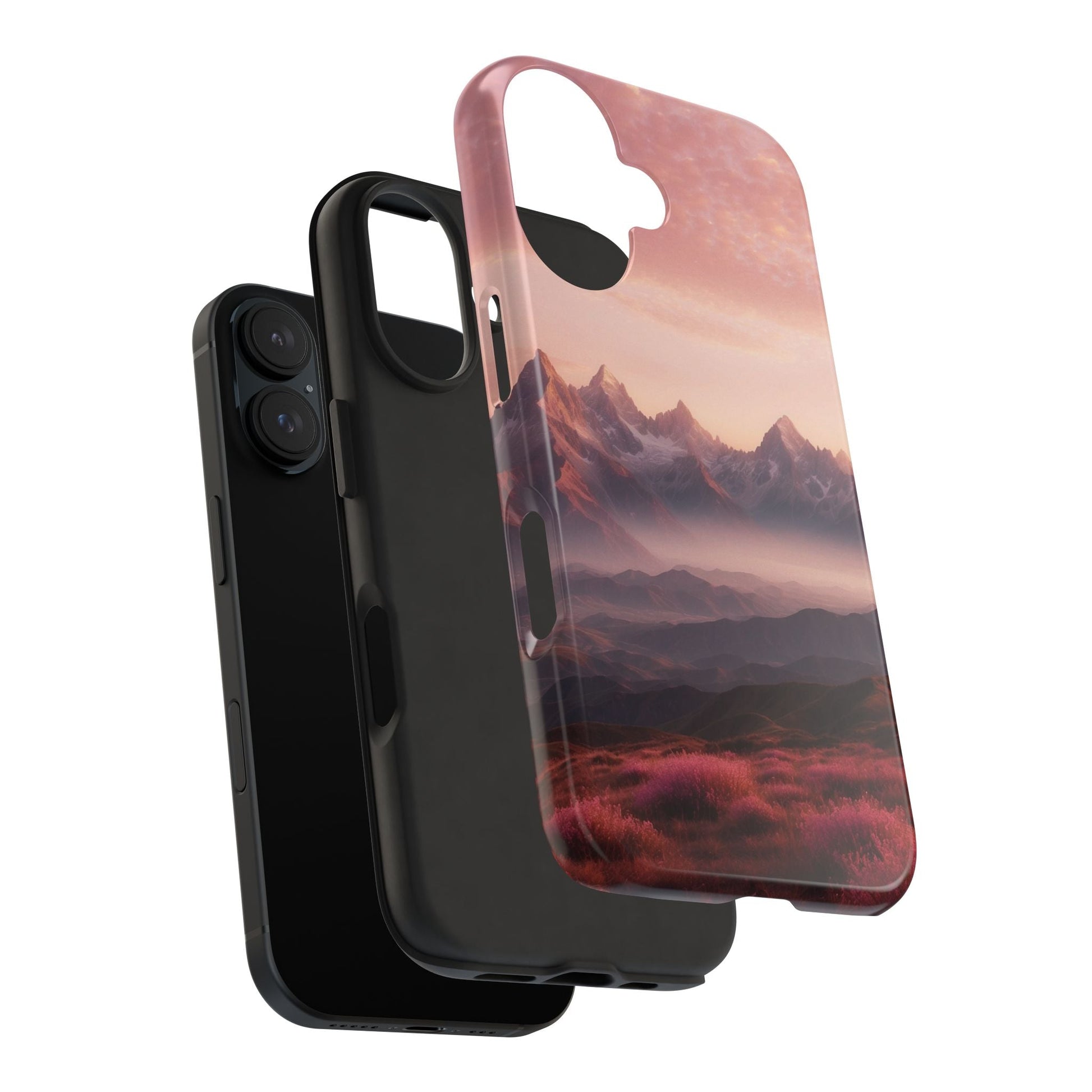 Embrace the serenity of sunrise with our Rosy Dawn iPhone Case! This breathtaking design captures the magic of a dawn sky painting the mountains in hues of pink and purple, while a field of wildflowers blooms below. It's a captivating scene that brings the tranquility of nature to your phone. Crafted with a dual-layer design, combining a shock-absorbing TPU inner layer and a sturdy polycarbonate outer shell, this case provides reliable protection against everyday bumps and drops. With its slim and lightweight design, it's easy to slip in and out of your pocket, while still offering robust protection.