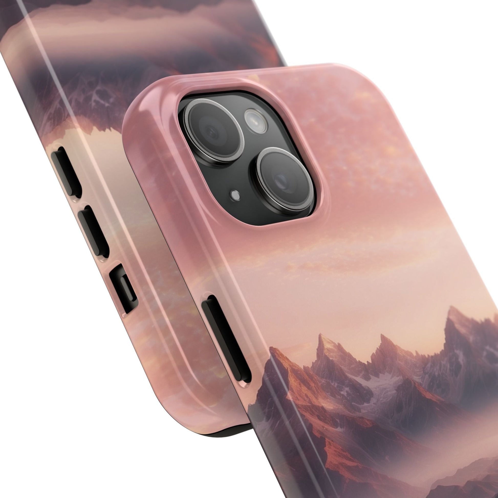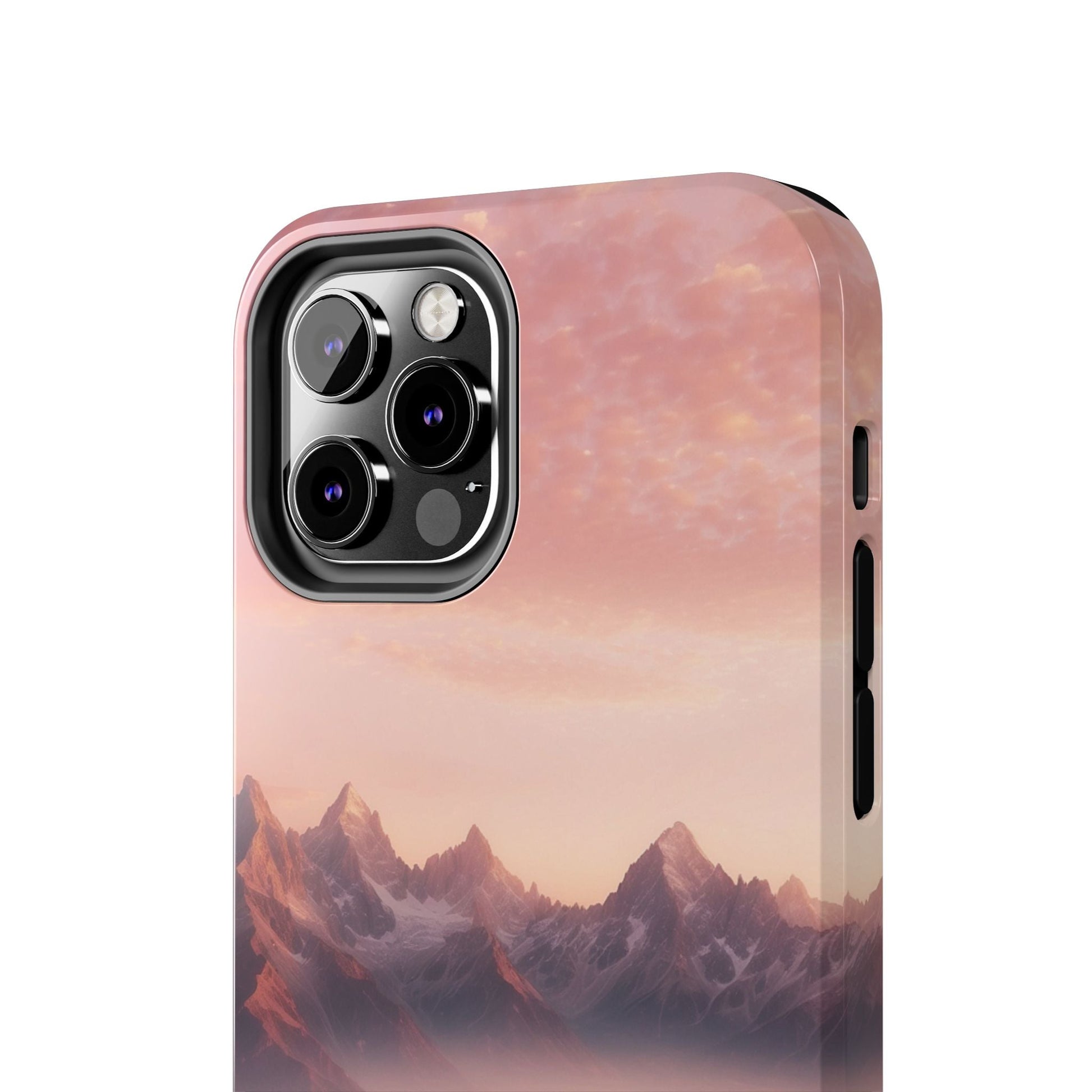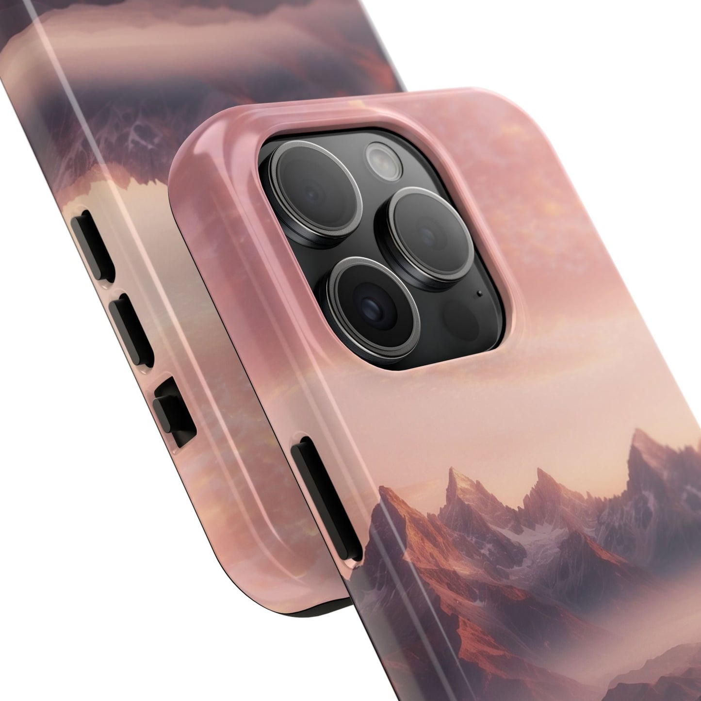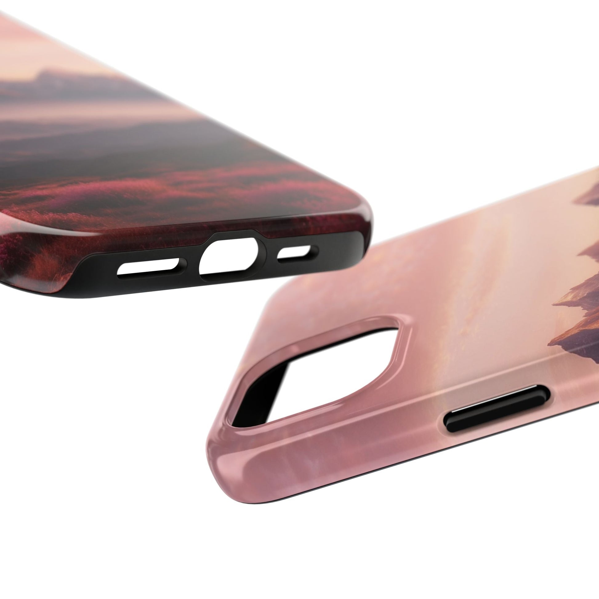Embrace the serenity of sunrise with our Rosy Dawn iPhone Case! This breathtaking design captures the magic of a dawn sky painting the mountains in hues of pink and purple, while a field of wildflowers blooms below. It's a captivating scene that brings the tranquility of nature to your phone. Crafted with a dual-layer design, combining a shock-absorbing TPU inner layer and a sturdy polycarbonate outer shell, this case provides reliable protection against everyday bumps and drops. With its slim and lightweight design, it's easy to slip in and out of your pocket, while still offering robust protection.