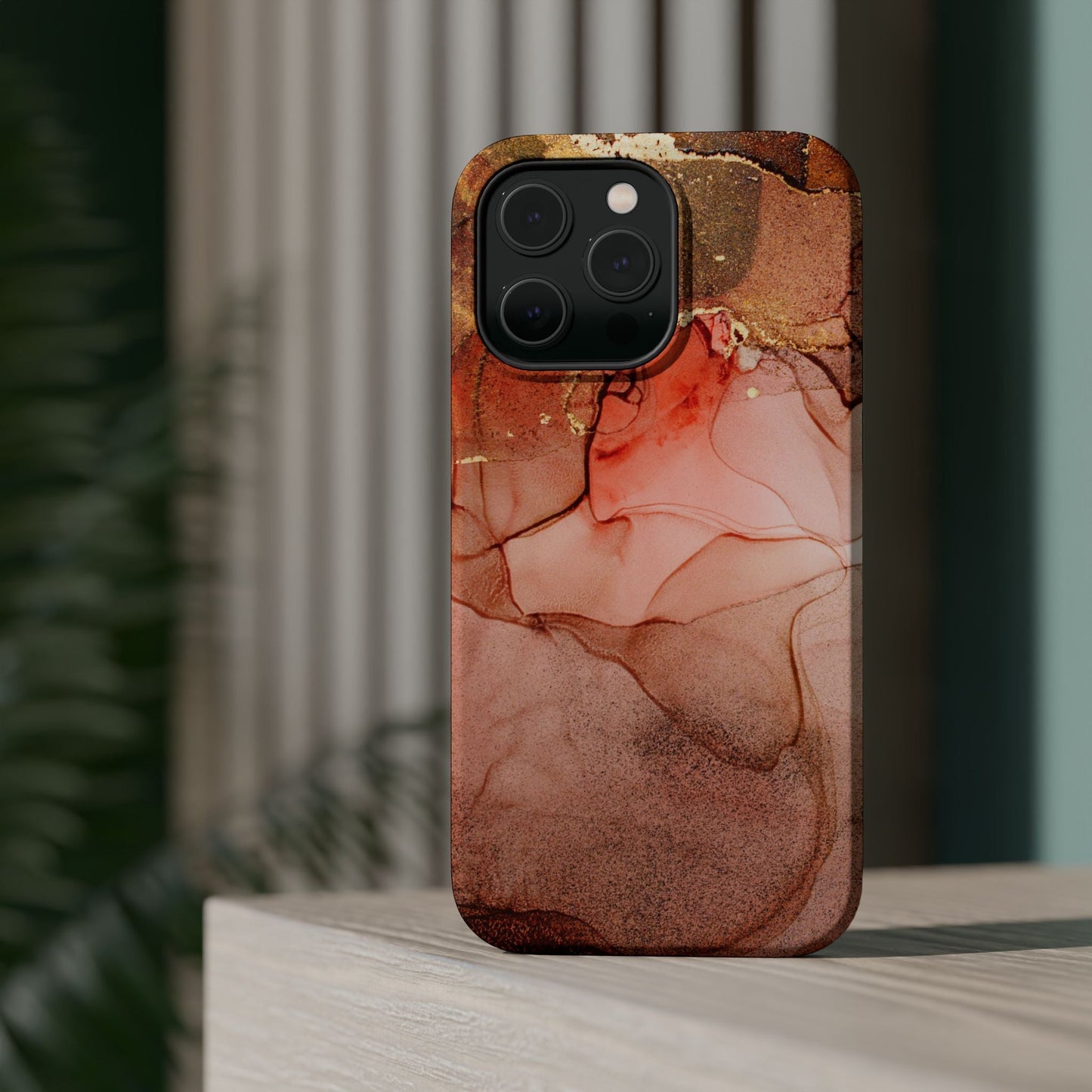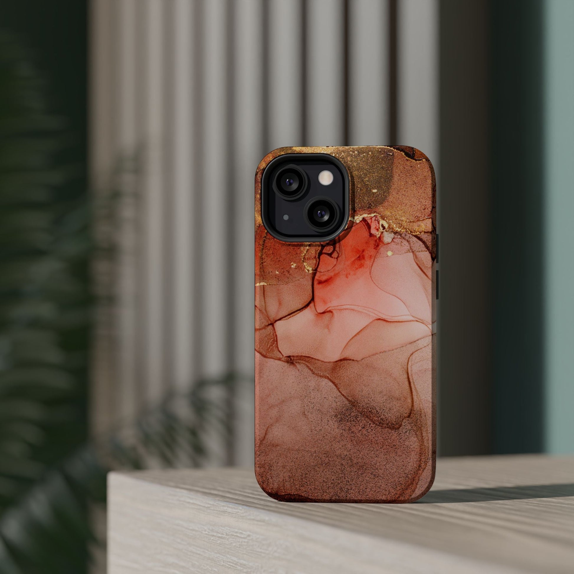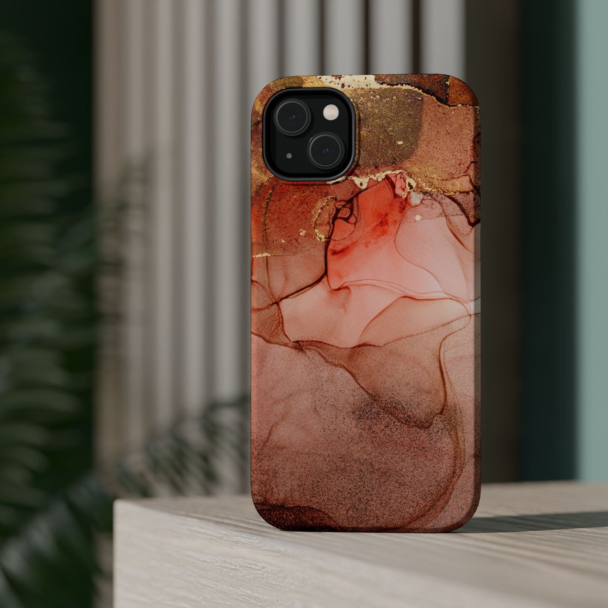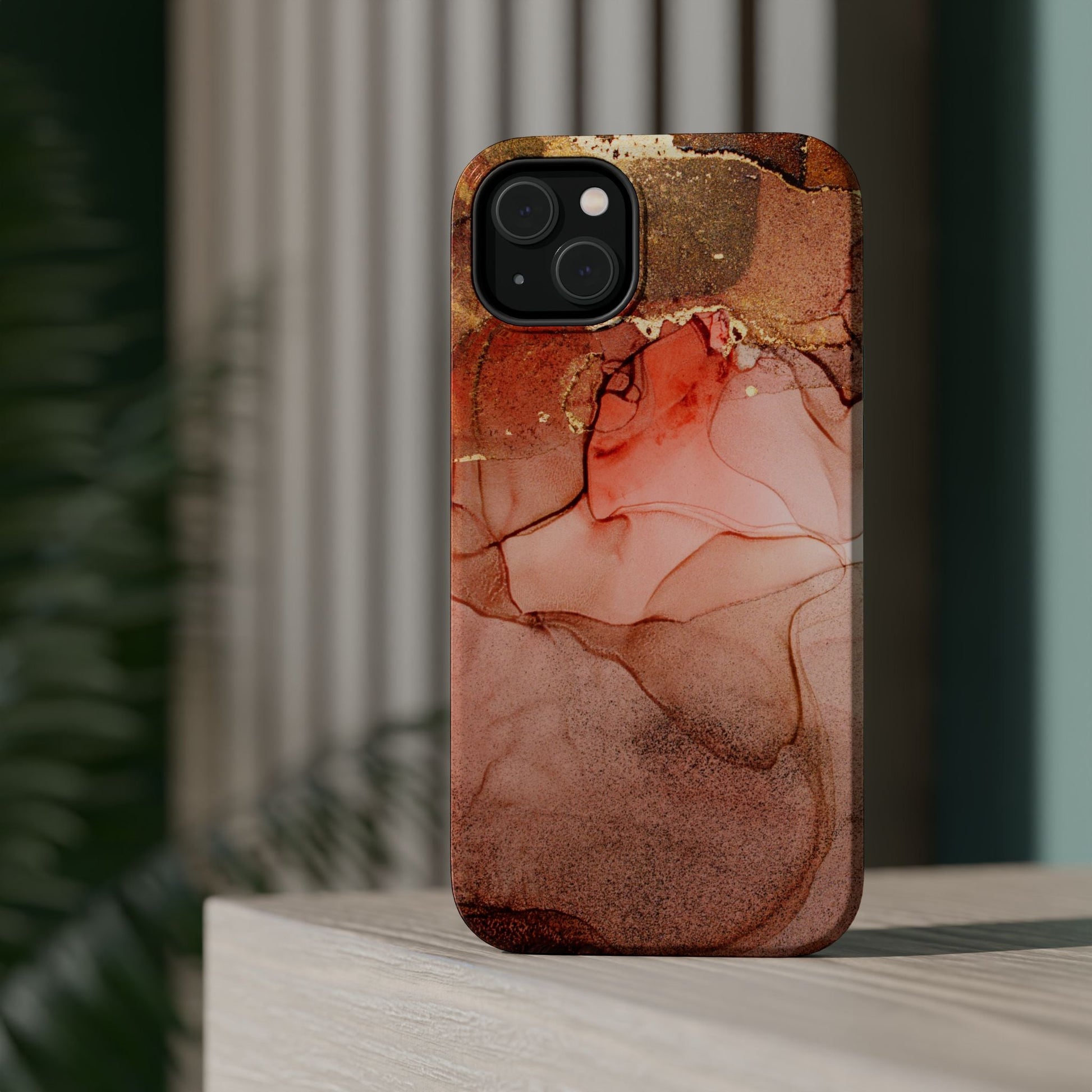 Description: Transform your iPhone into a luxurious masterpiece with the Ruby Red Marble MagSafe Case. Designed with built-in MagSafe compatibility, it offers a seamless charging experience while showcasing a stunning red marble pattern adorned with subtle gold veining.