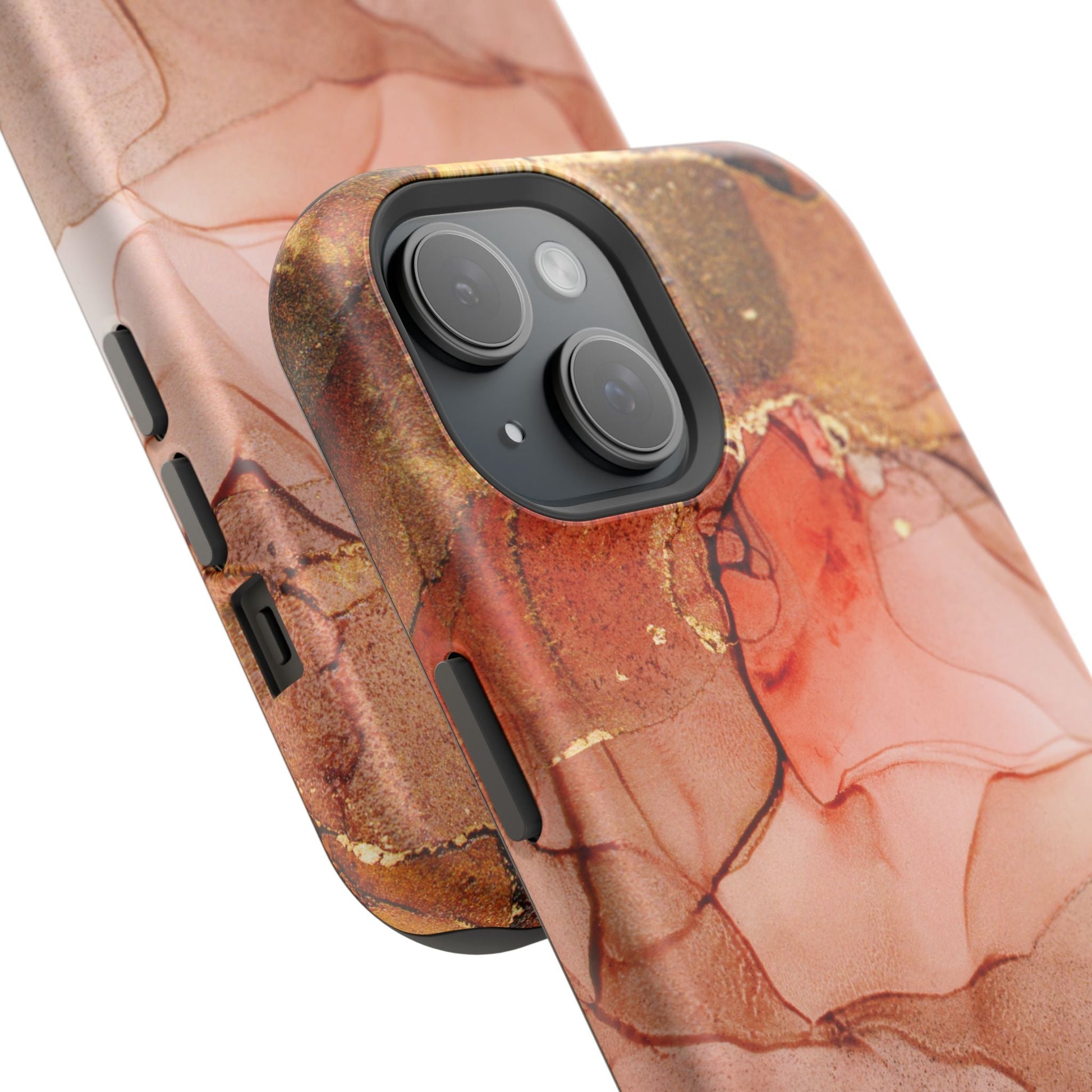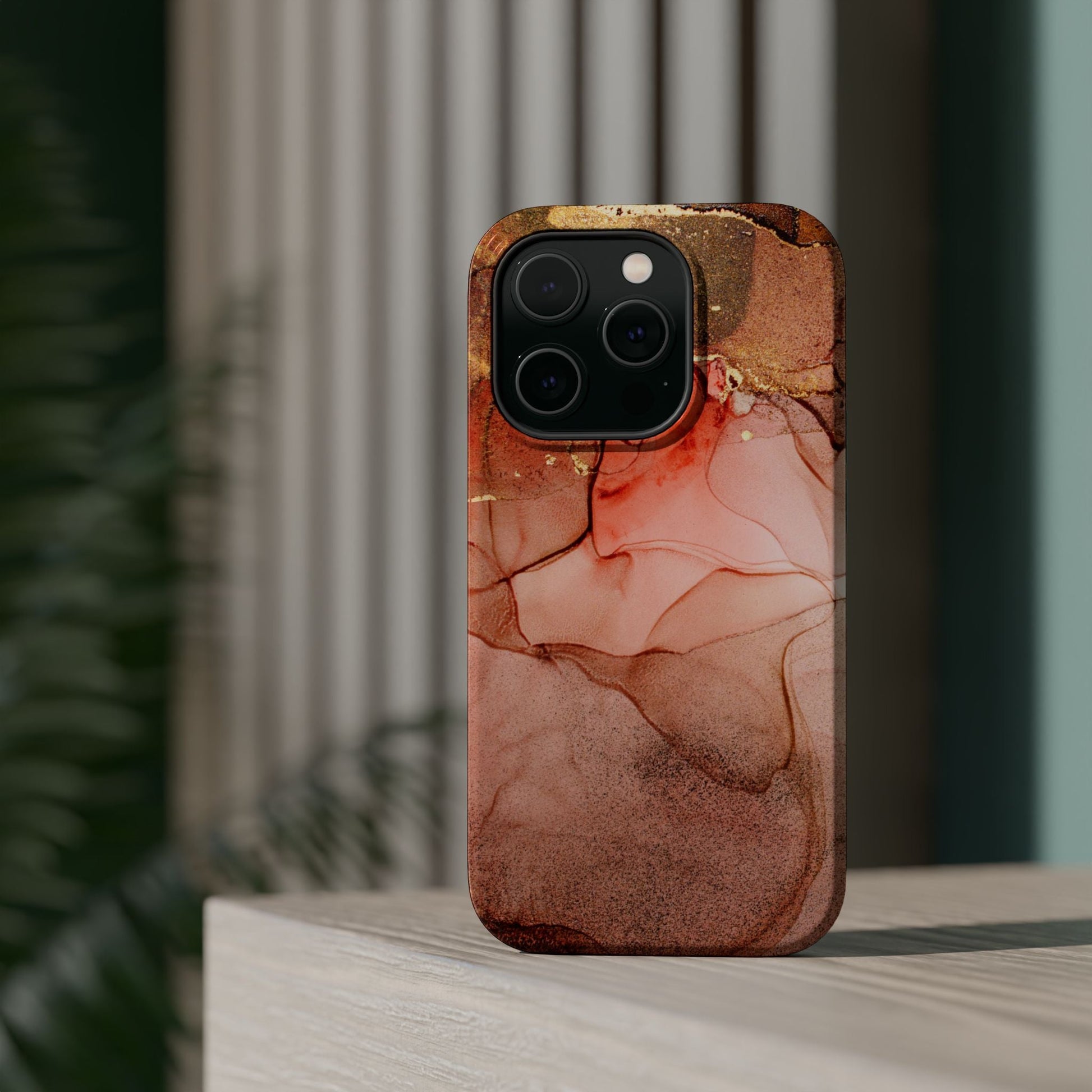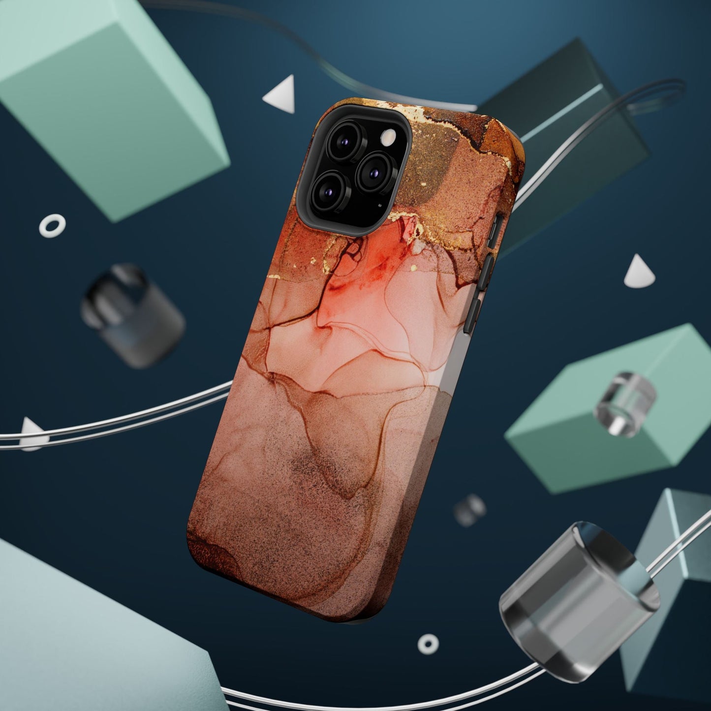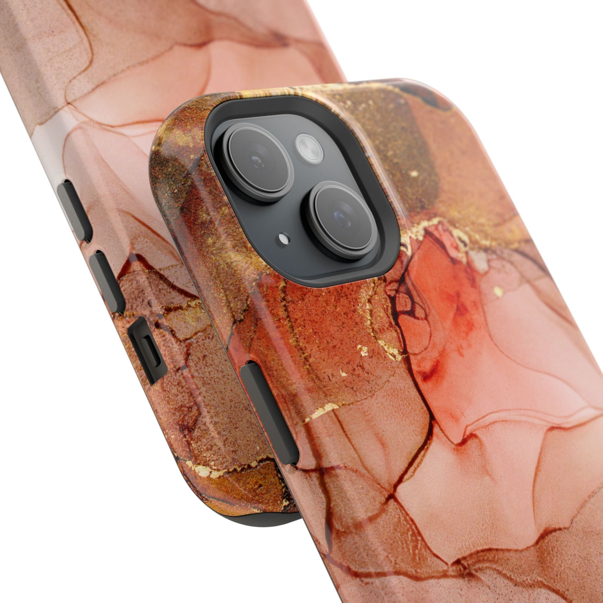 Description: Transform your iPhone into a luxurious masterpiece with the Ruby Red Marble MagSafe Case. Designed with built-in MagSafe compatibility, it offers a seamless charging experience while showcasing a stunning red marble pattern adorned with subtle gold veining.