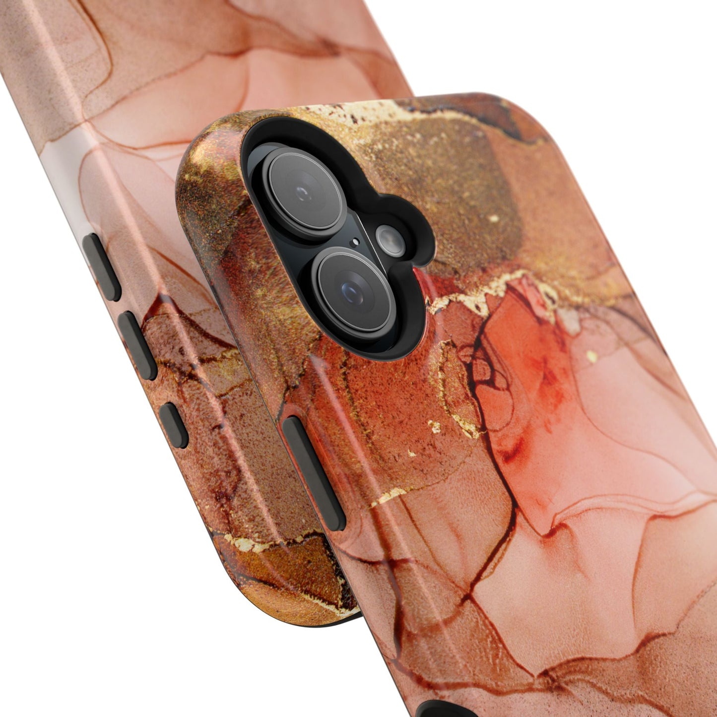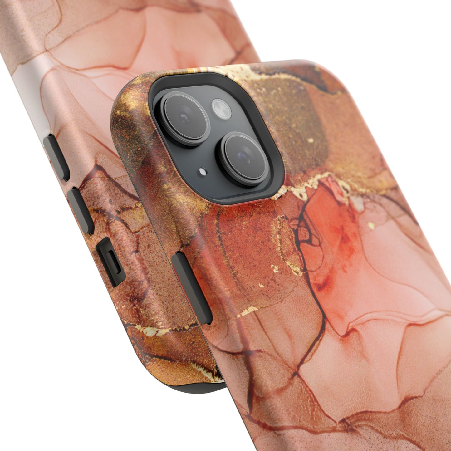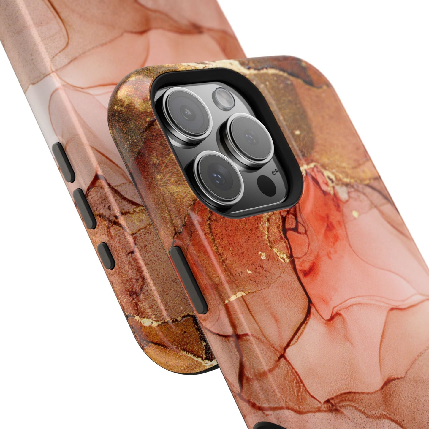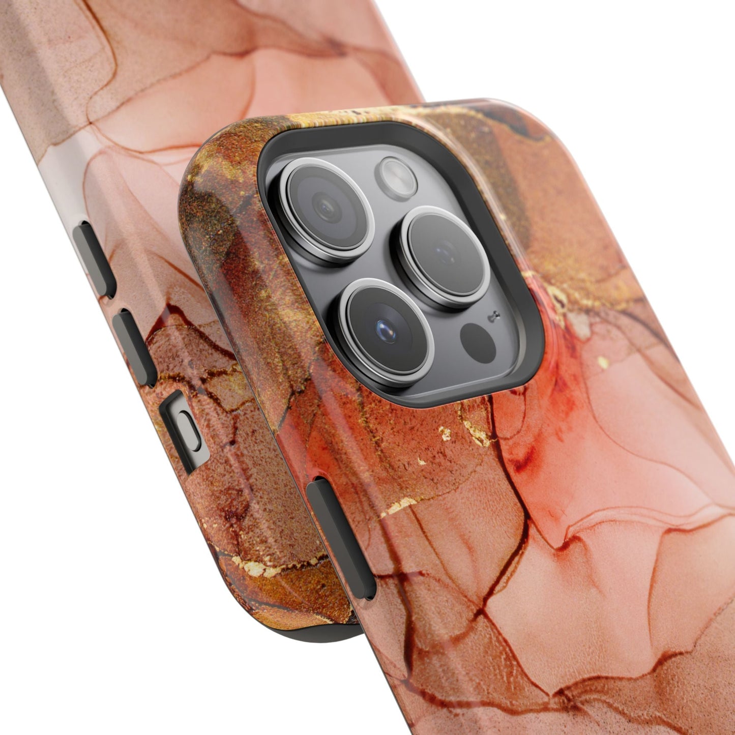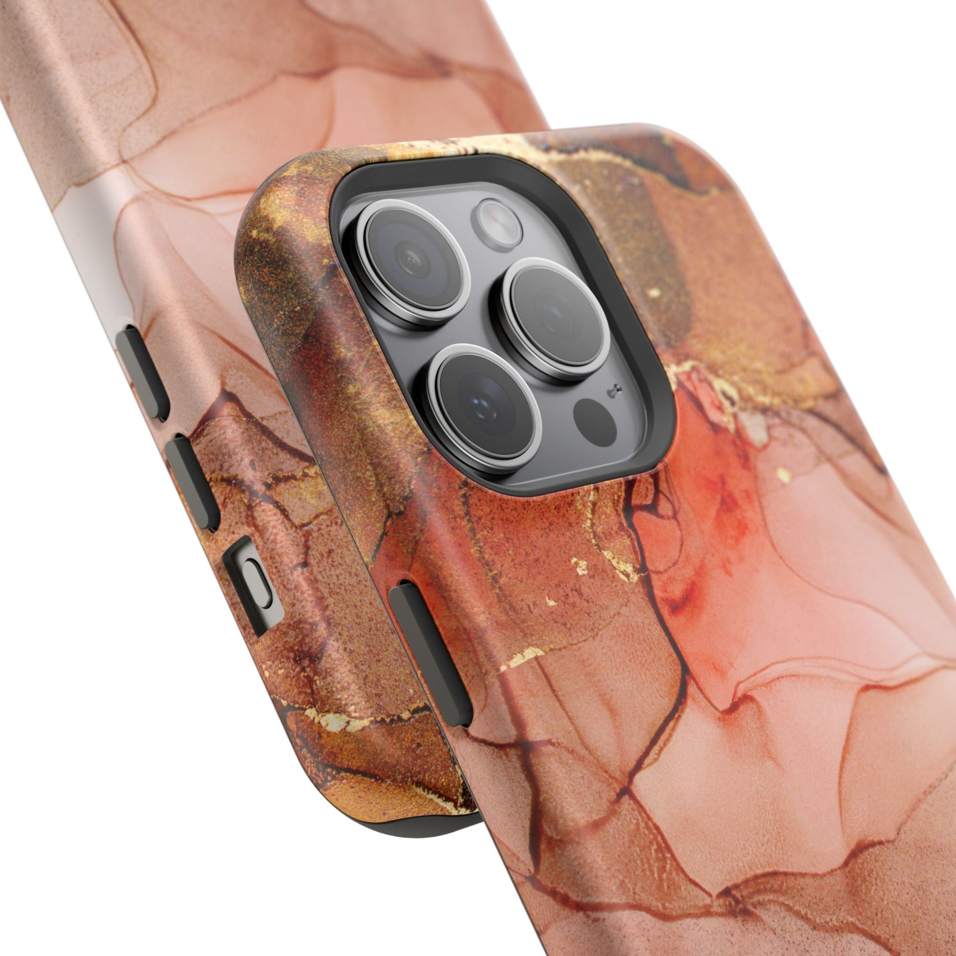 Description: Transform your iPhone into a luxurious masterpiece with the Ruby Red Marble MagSafe Case. Designed with built-in MagSafe compatibility, it offers a seamless charging experience while showcasing a stunning red marble pattern adorned with subtle gold veining.