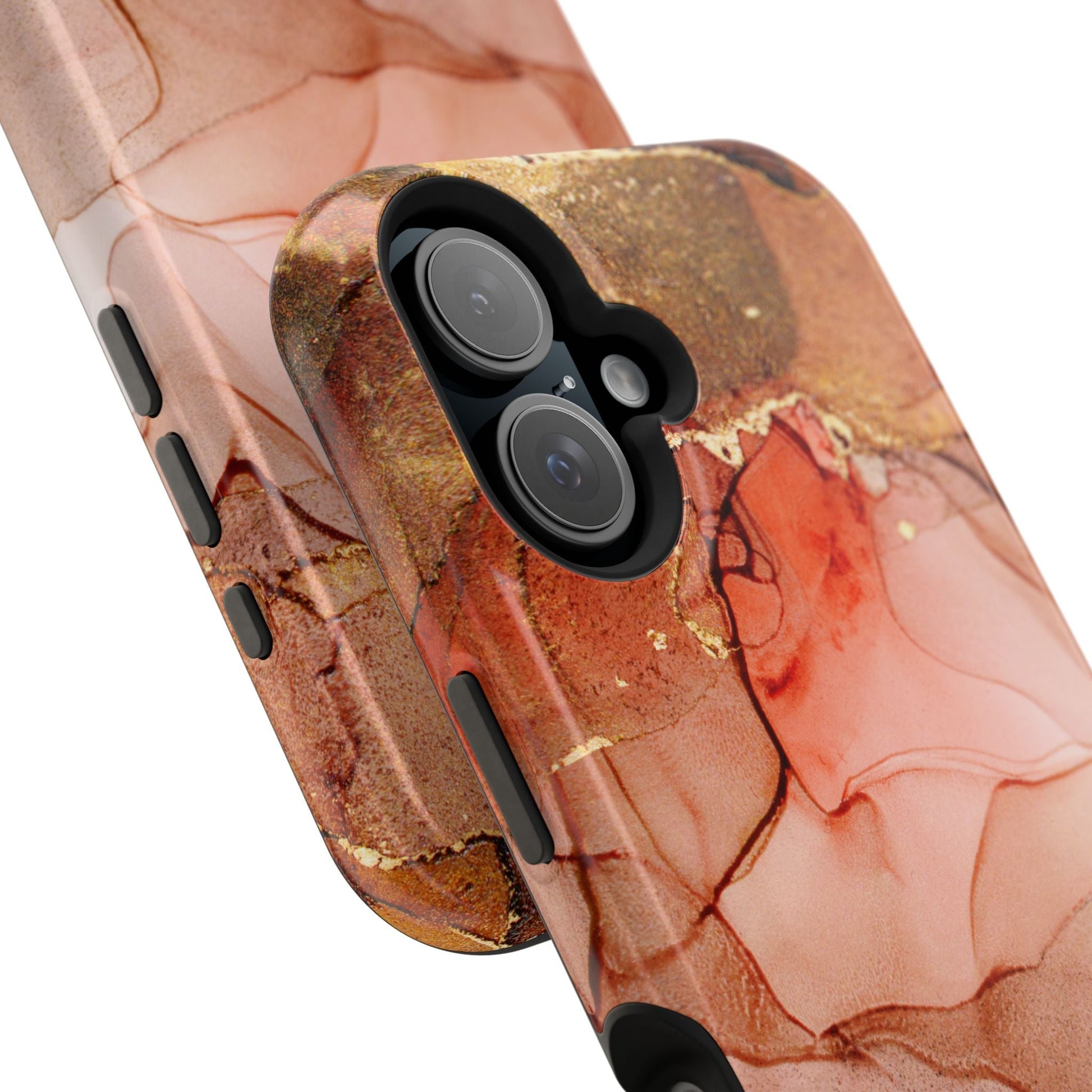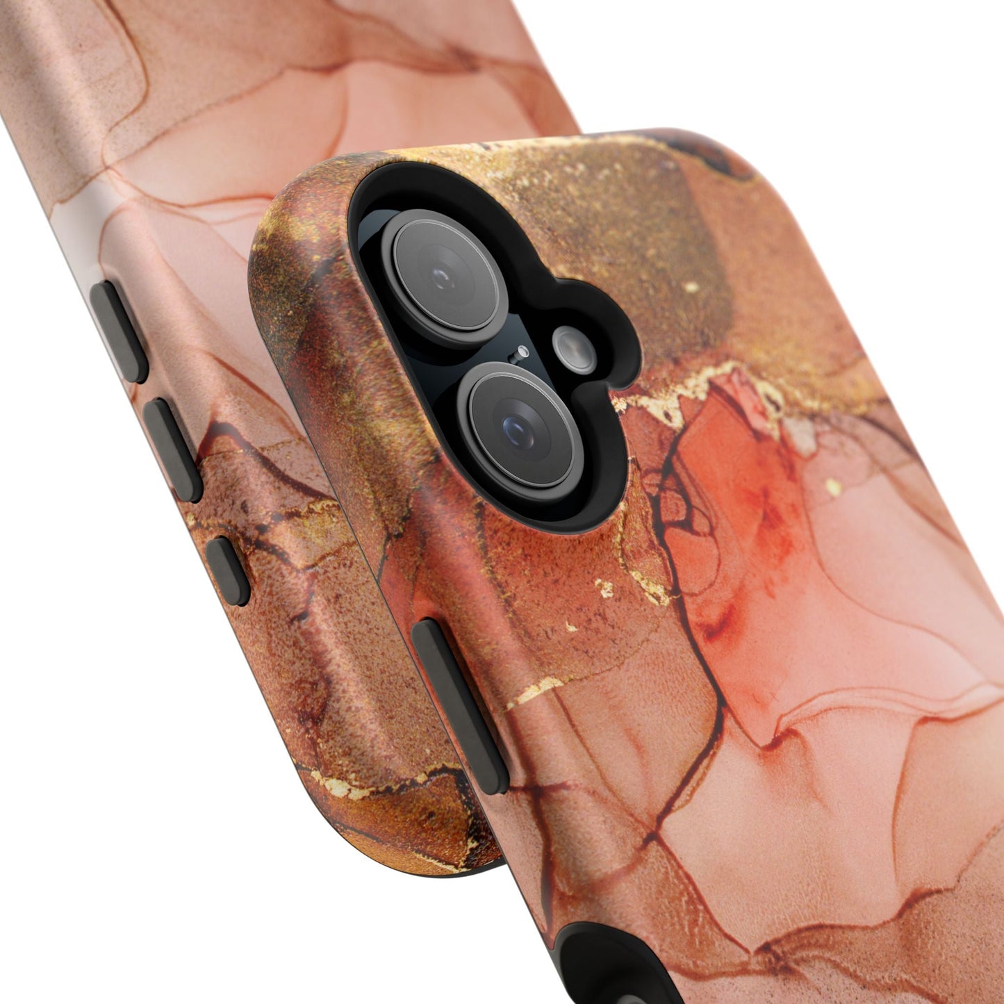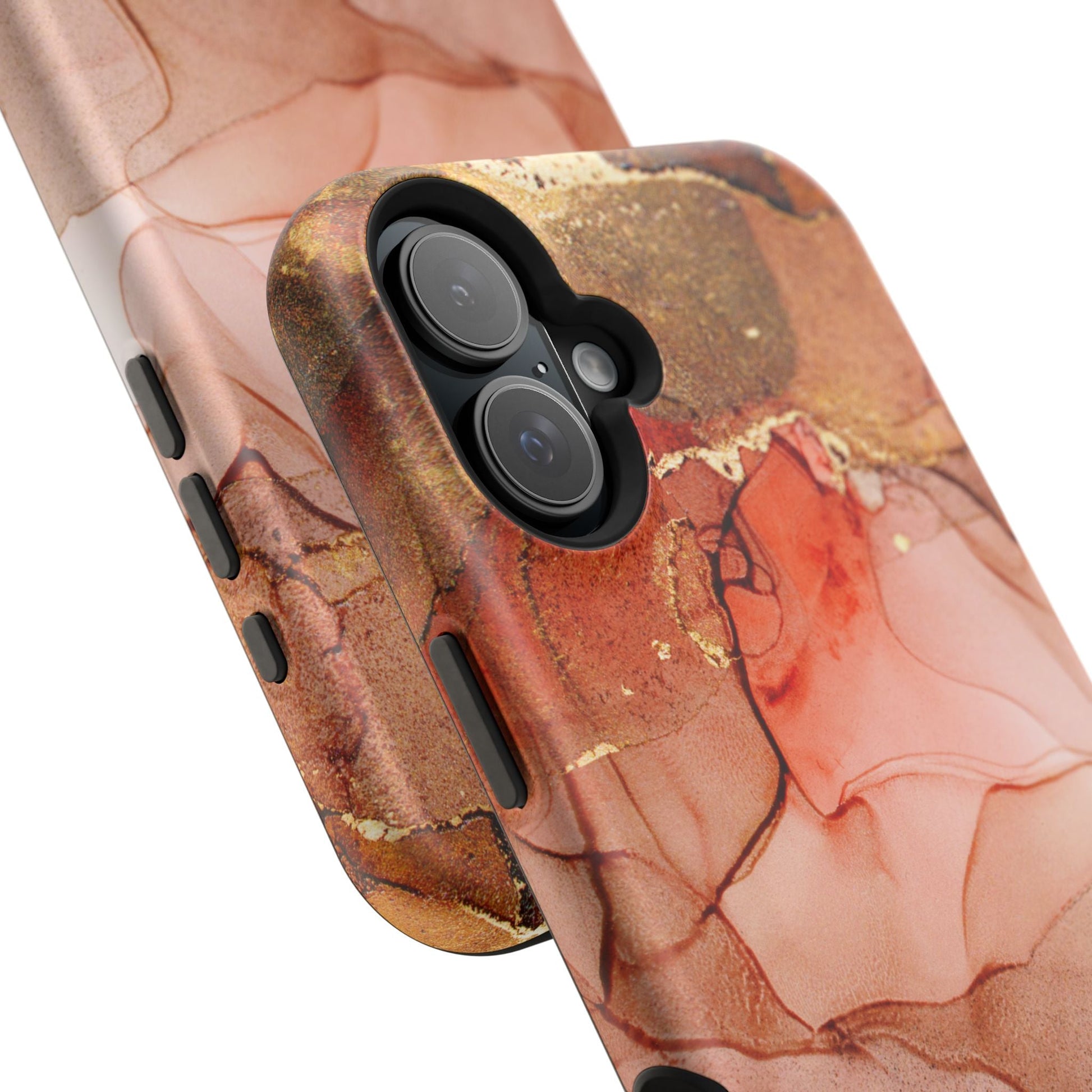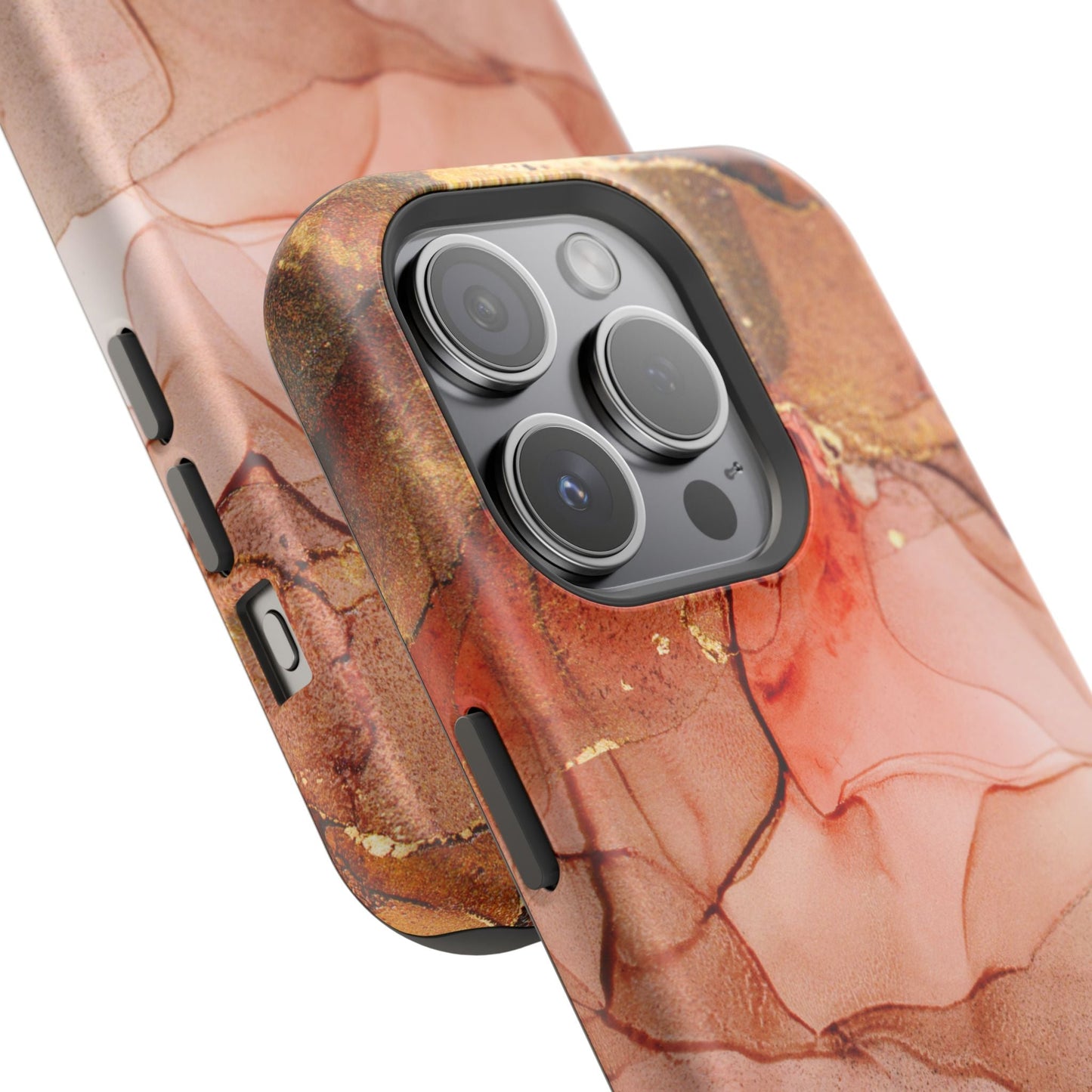 Description: Transform your iPhone into a luxurious masterpiece with the Ruby Red Marble MagSafe Case. Designed with built-in MagSafe compatibility, it offers a seamless charging experience while showcasing a stunning red marble pattern adorned with subtle gold veining.