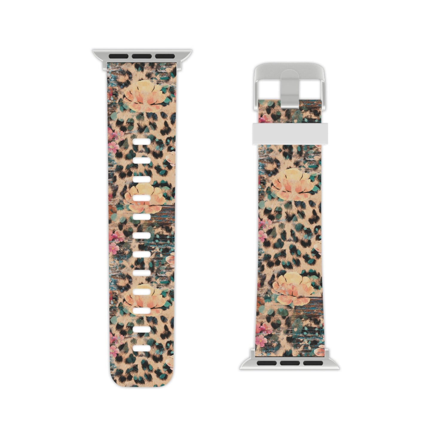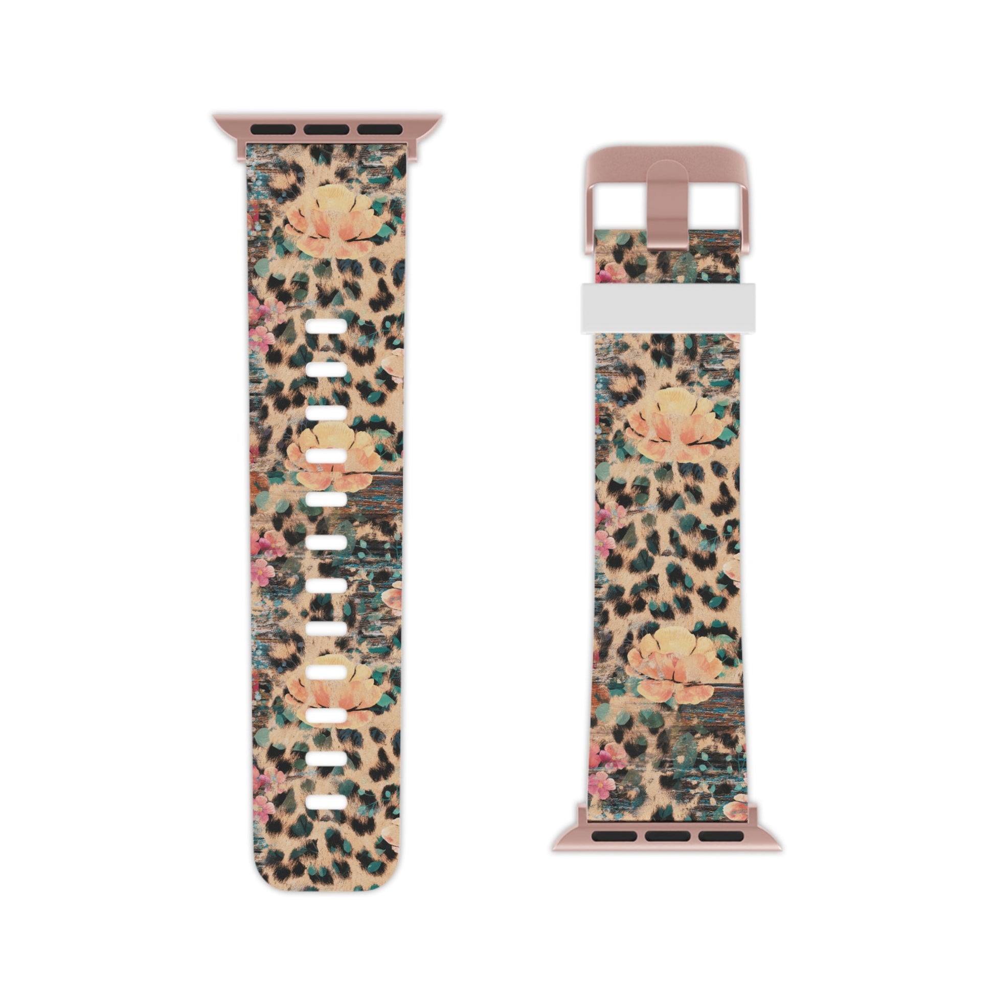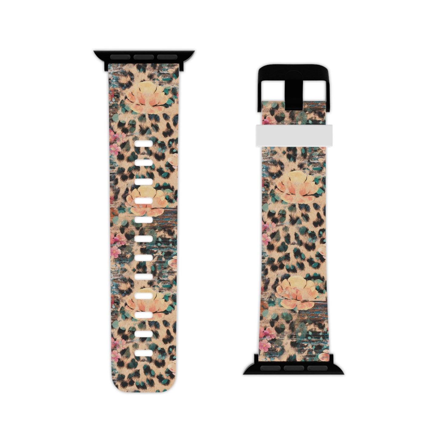 Embrace your wild side with a touch of rustic charm with the Rustic Floral Leopard Apple Watch Band! This unique band features a captivating leopard print pattern adorned with delicate watercolor floral accents, adding a touch of ar...