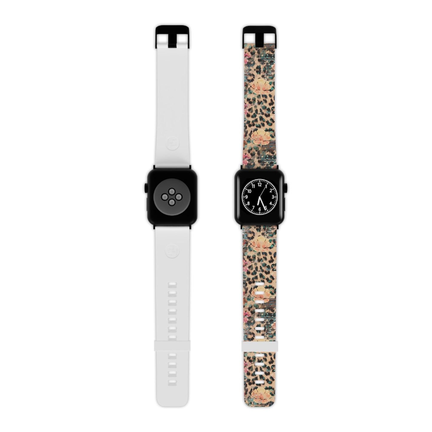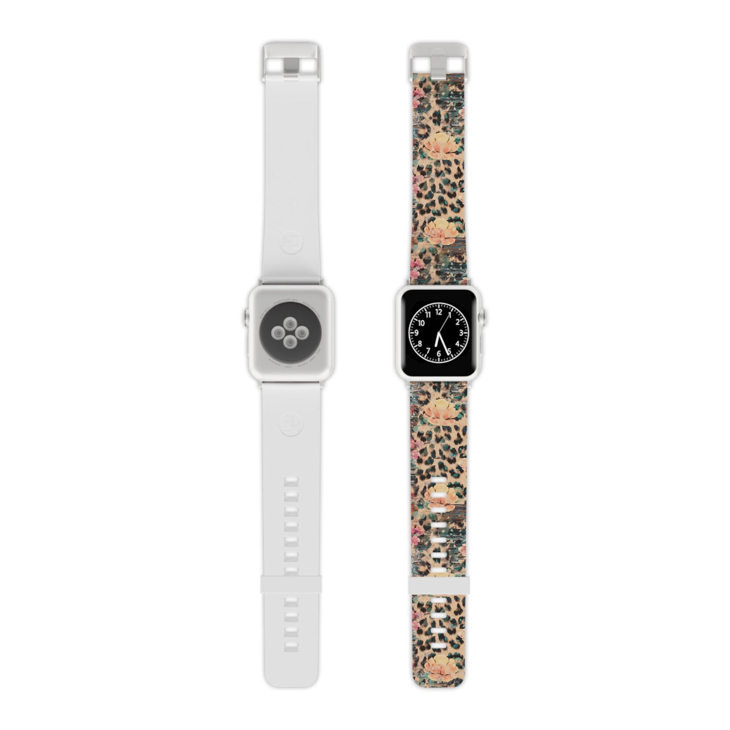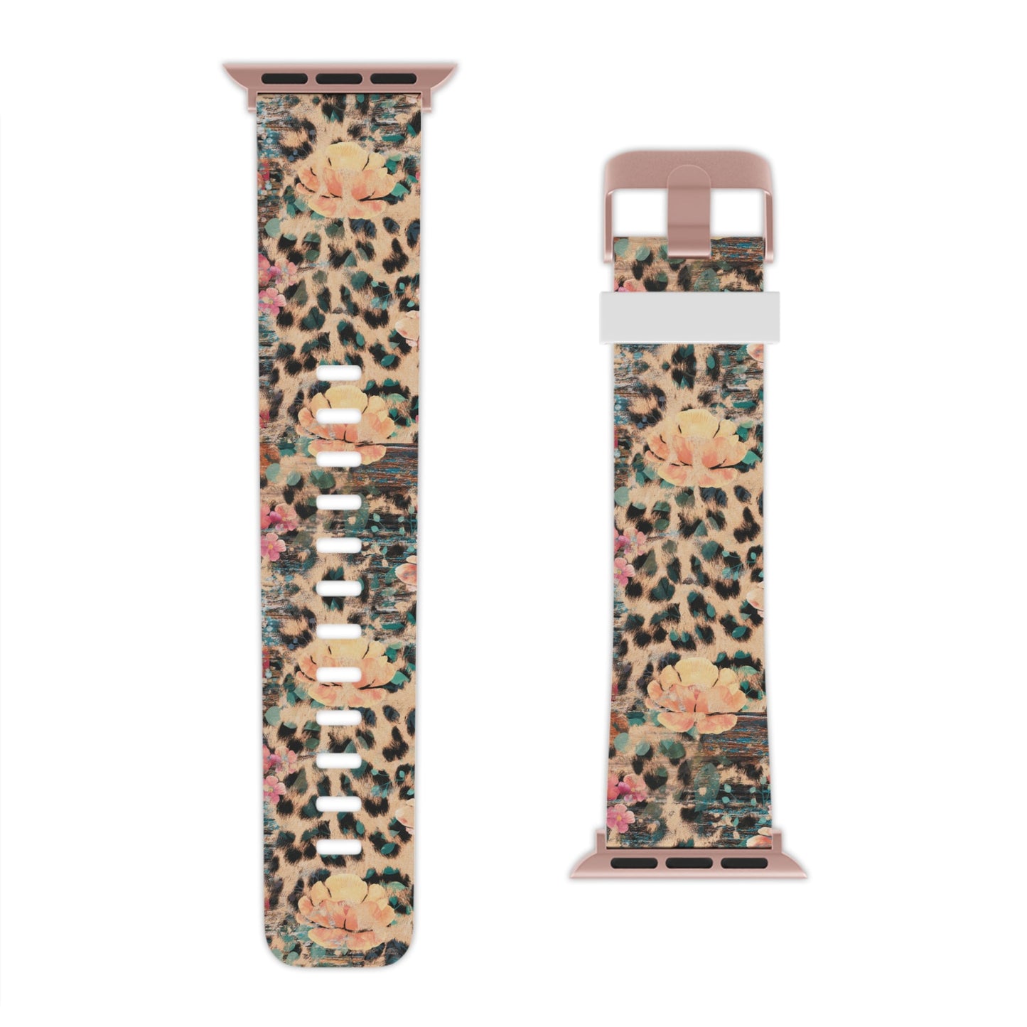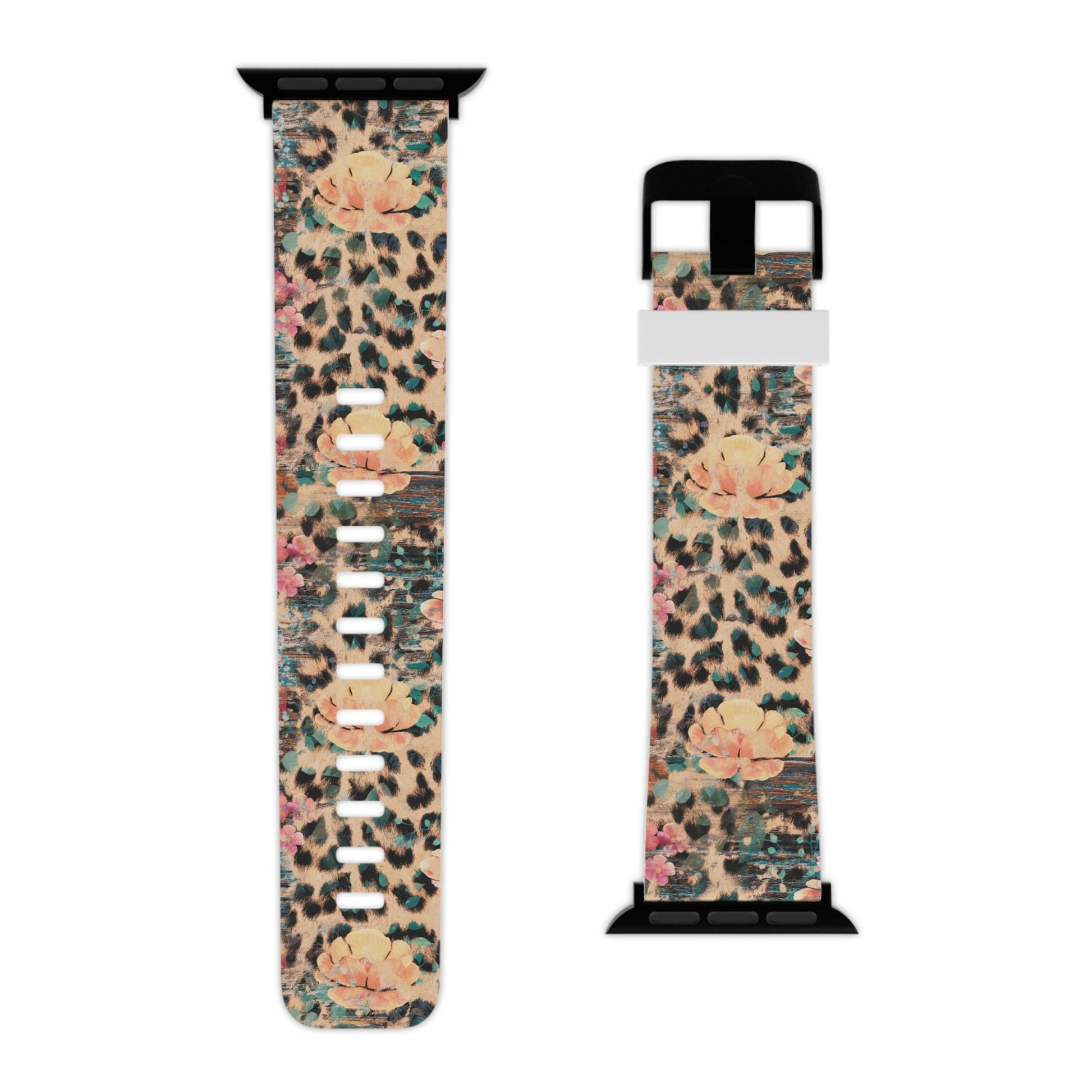 Embrace your wild side with a touch of rustic charm with the Rustic Floral Leopard Apple Watch Band! This unique band features a captivating leopard print pattern adorned with delicate watercolor floral accents, adding a touch of ar...