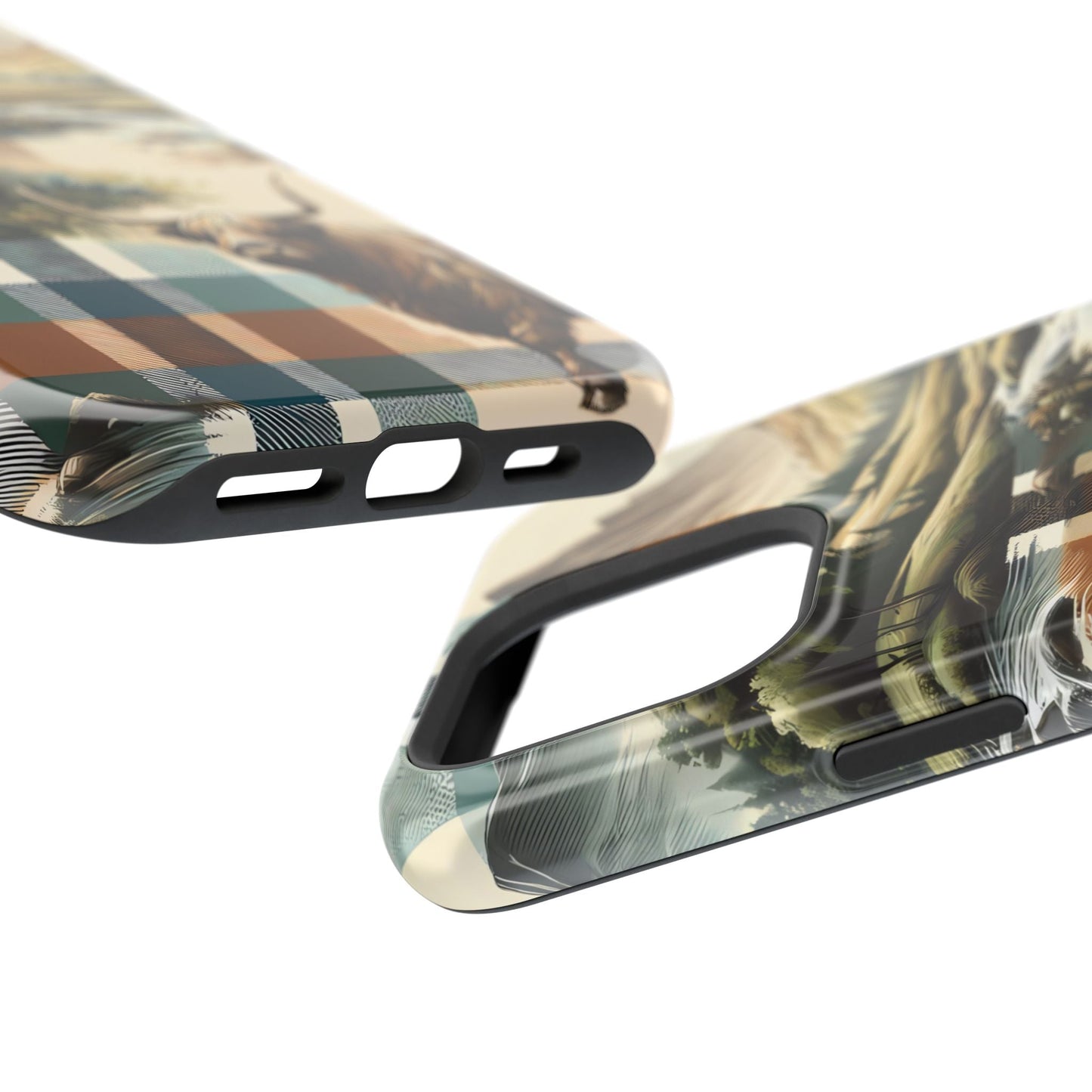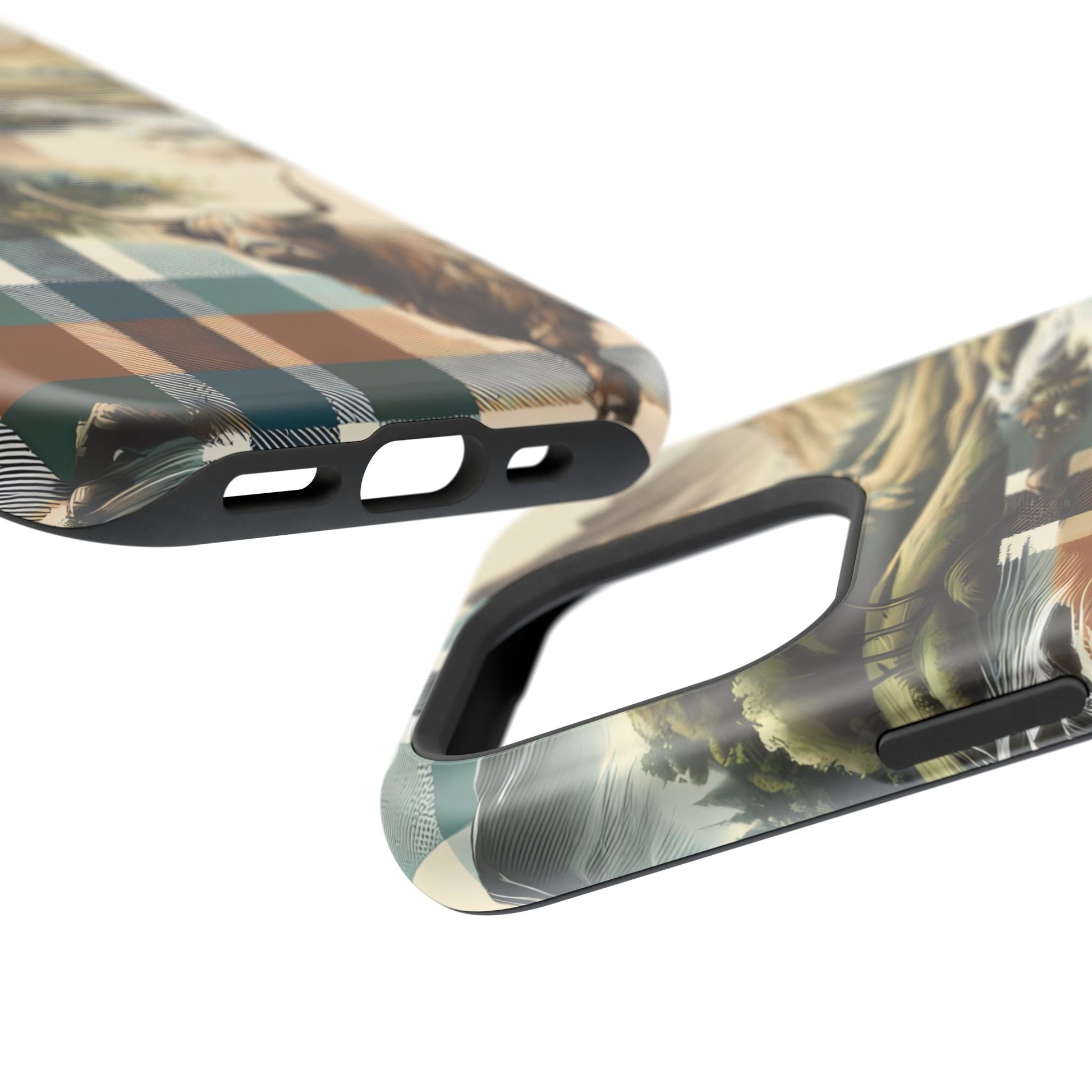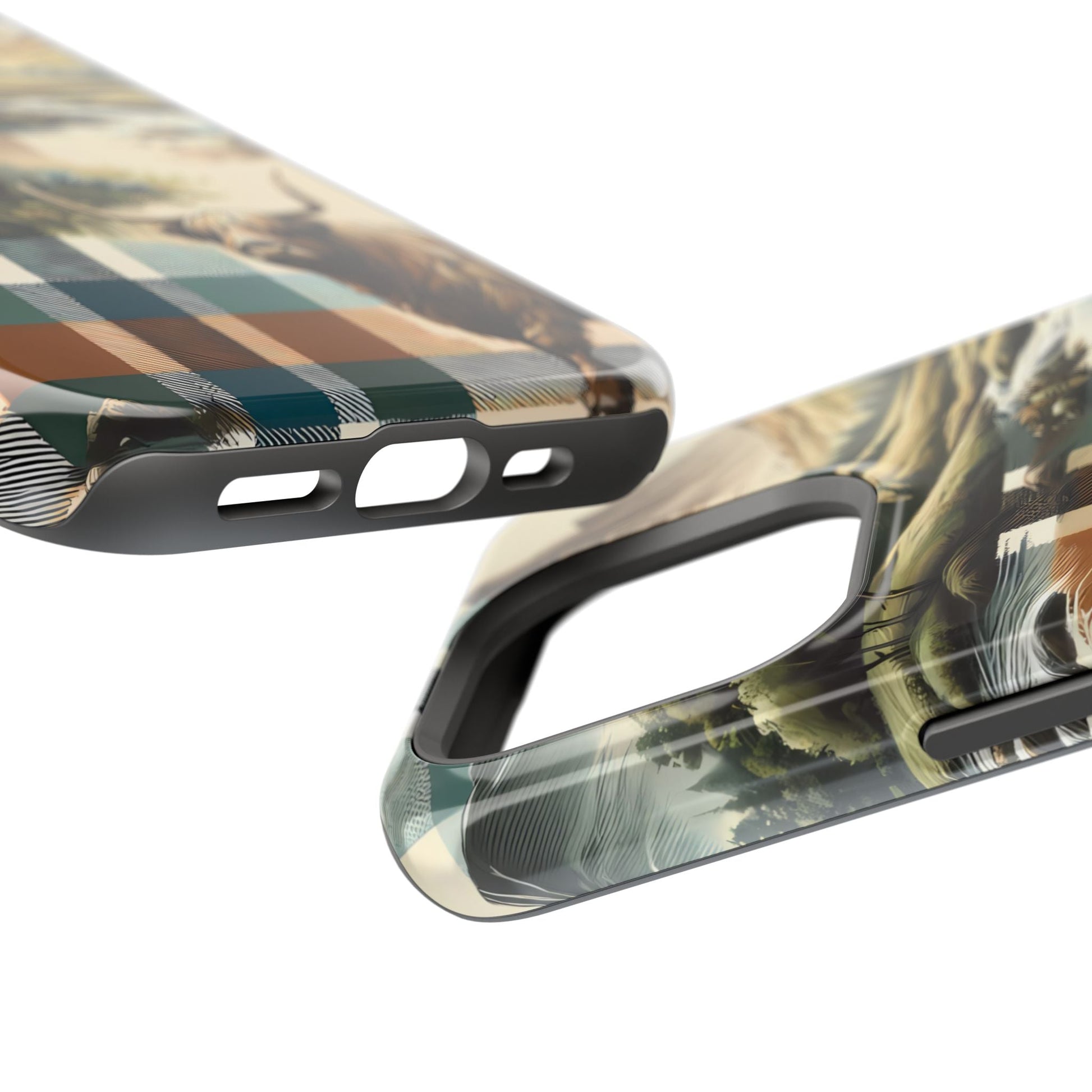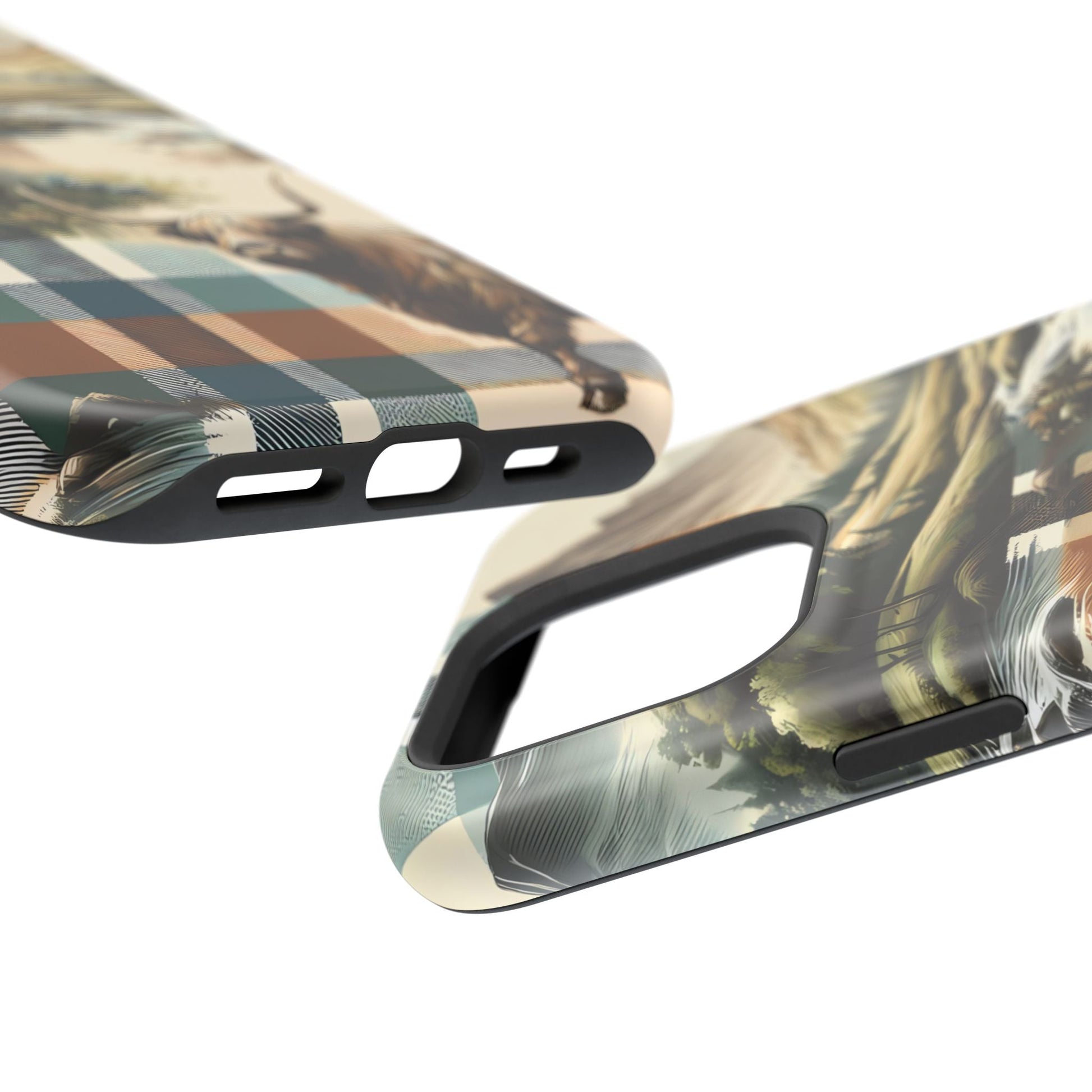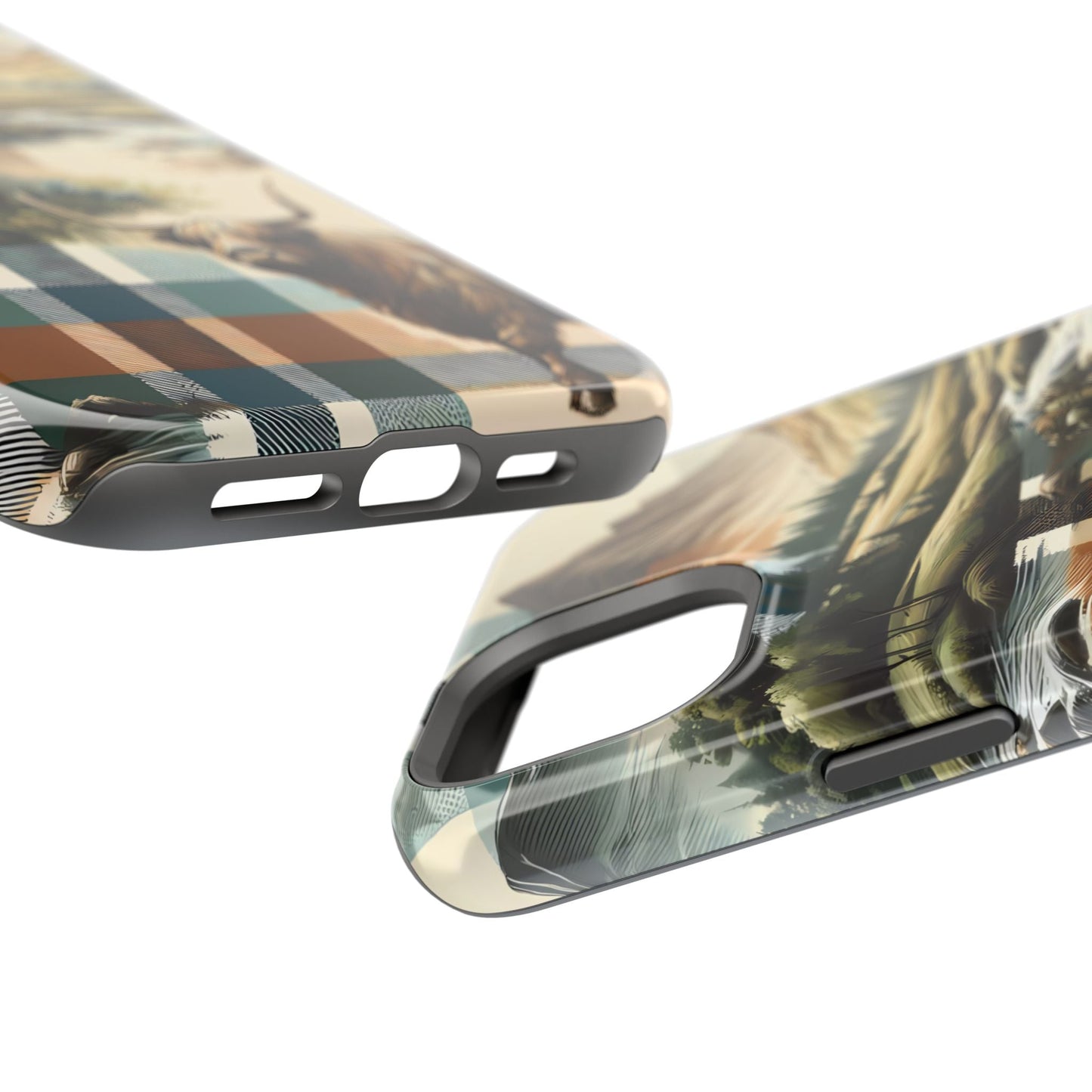 Rustic Highland Cow In Plaid - MagSafe Compatible Case