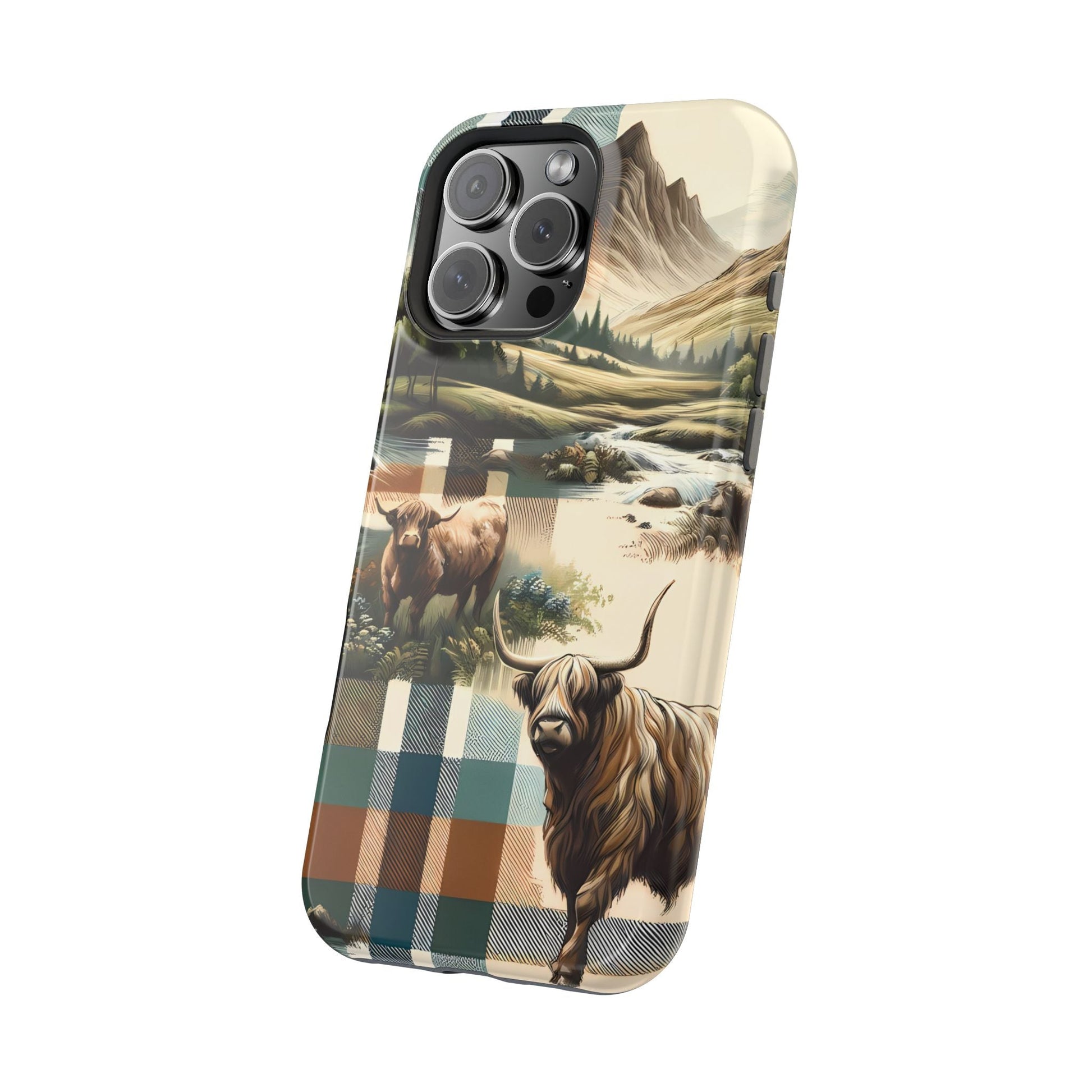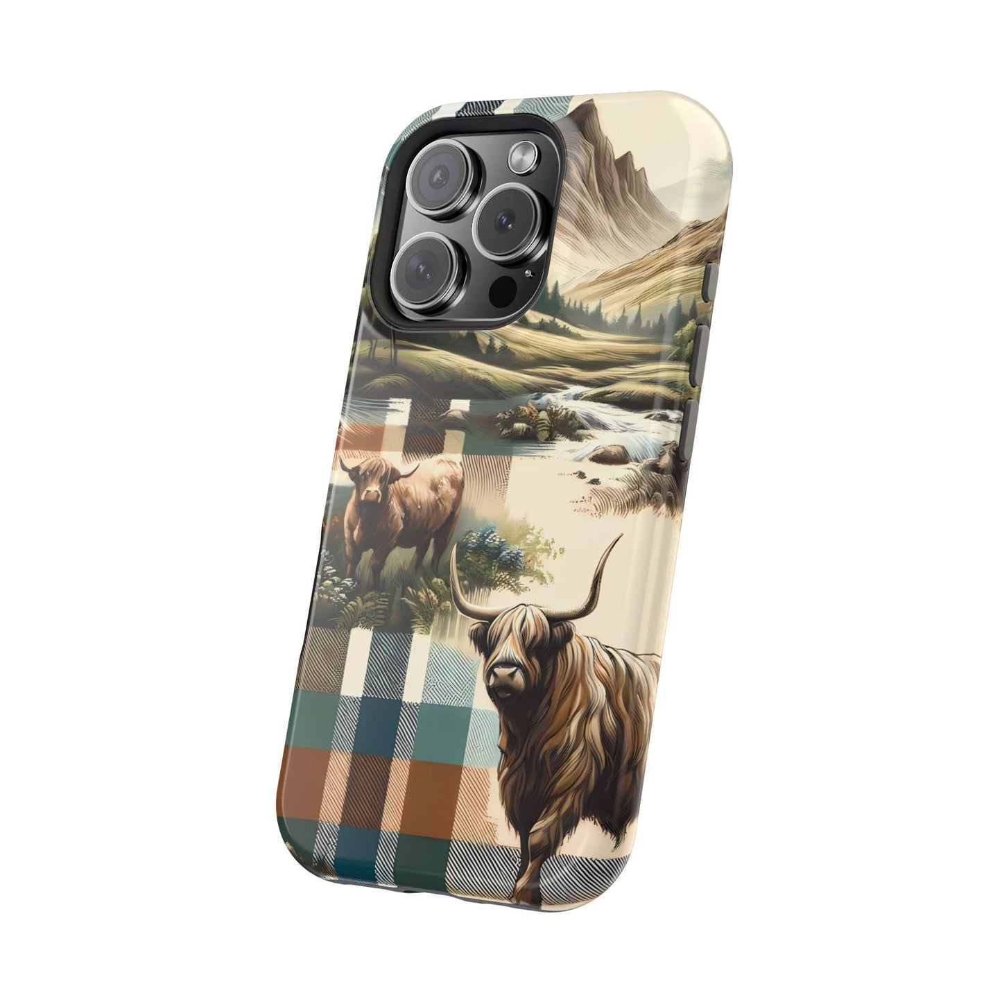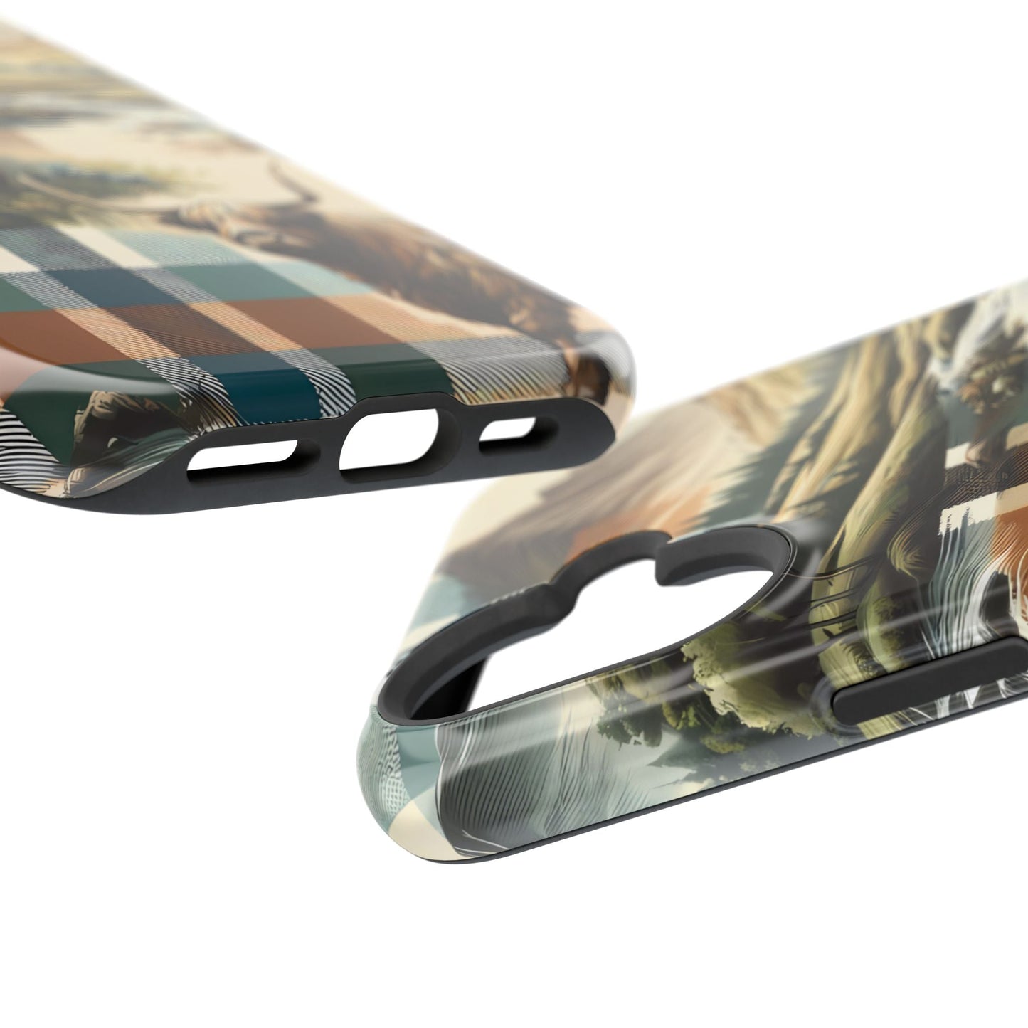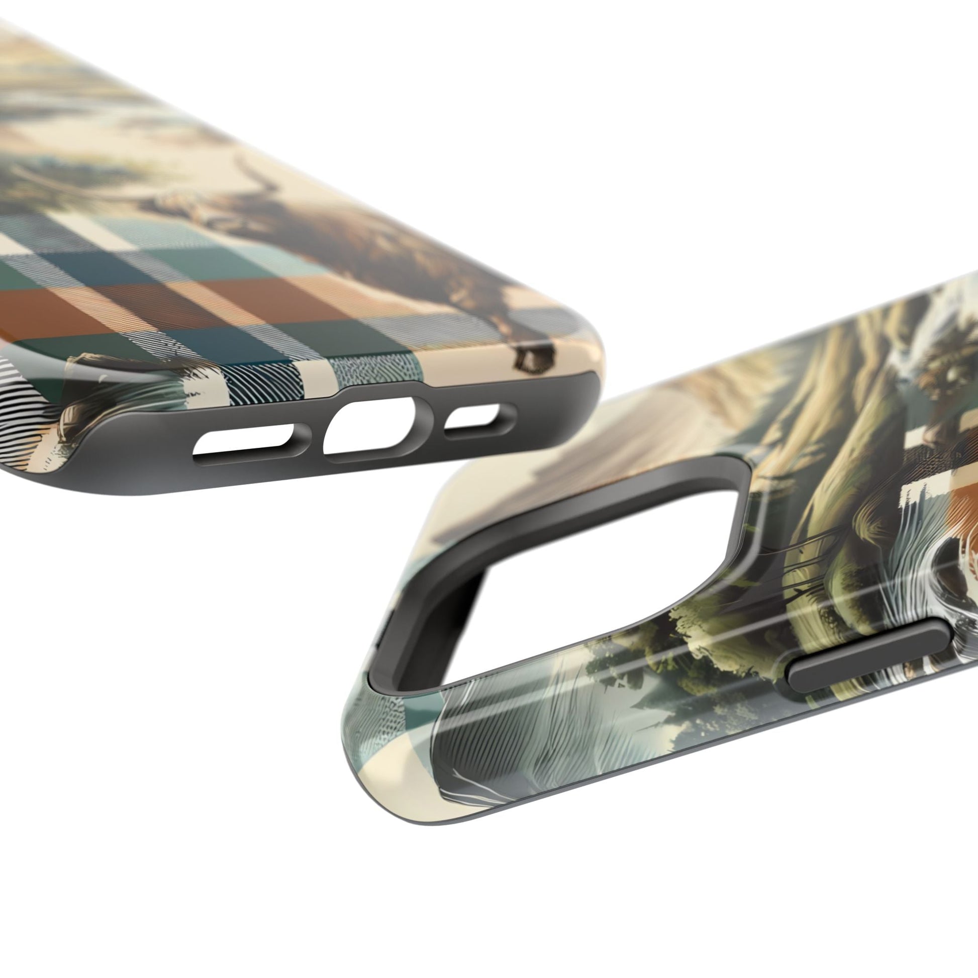 Rustic Highland Cow In Plaid - MagSafe Compatible Case