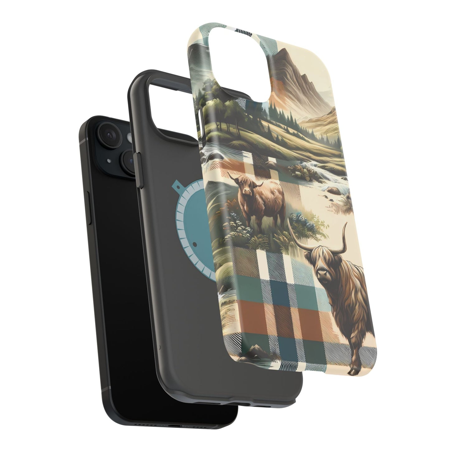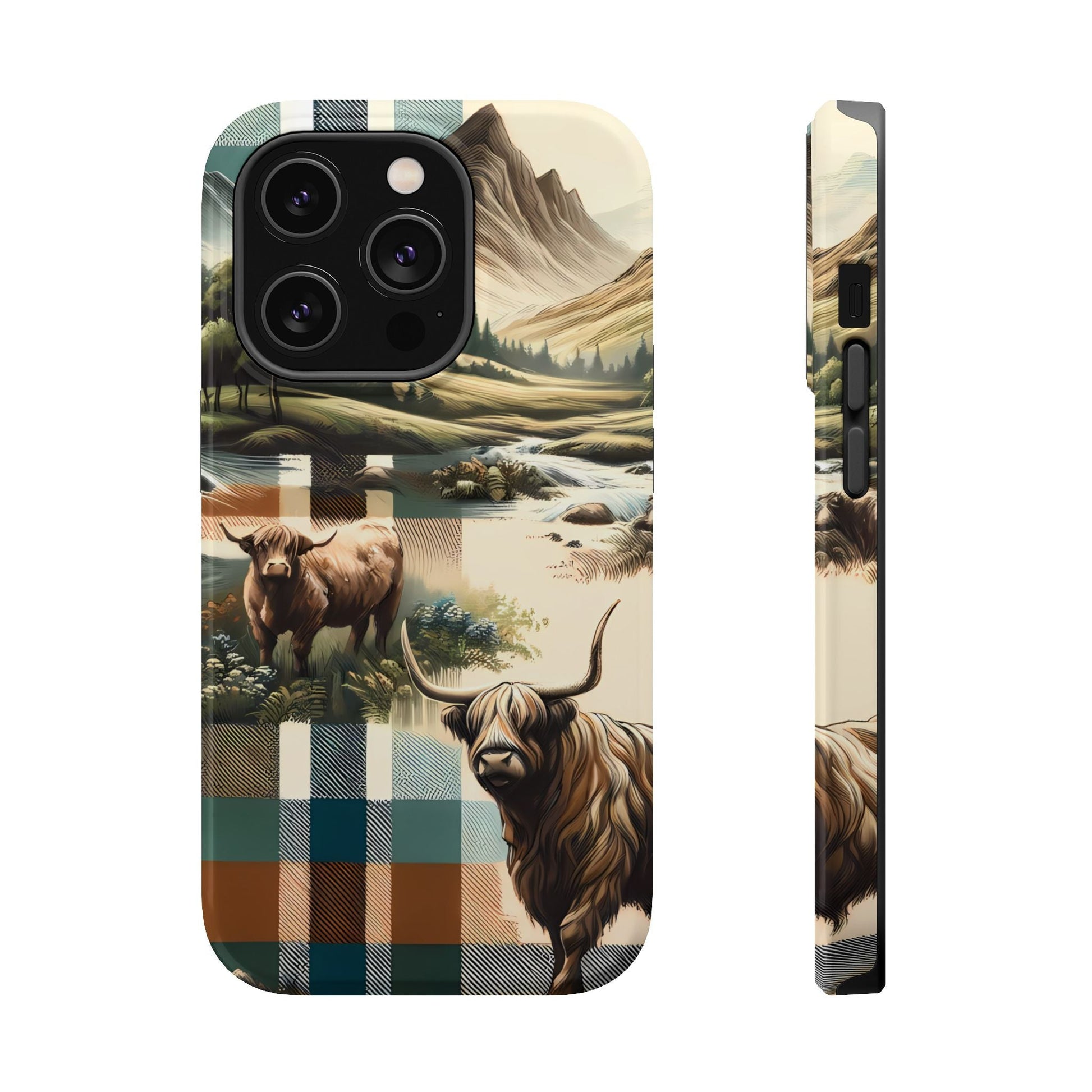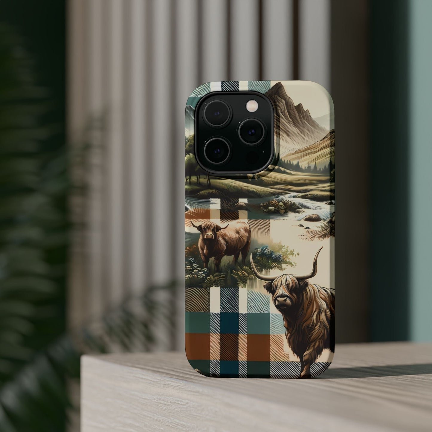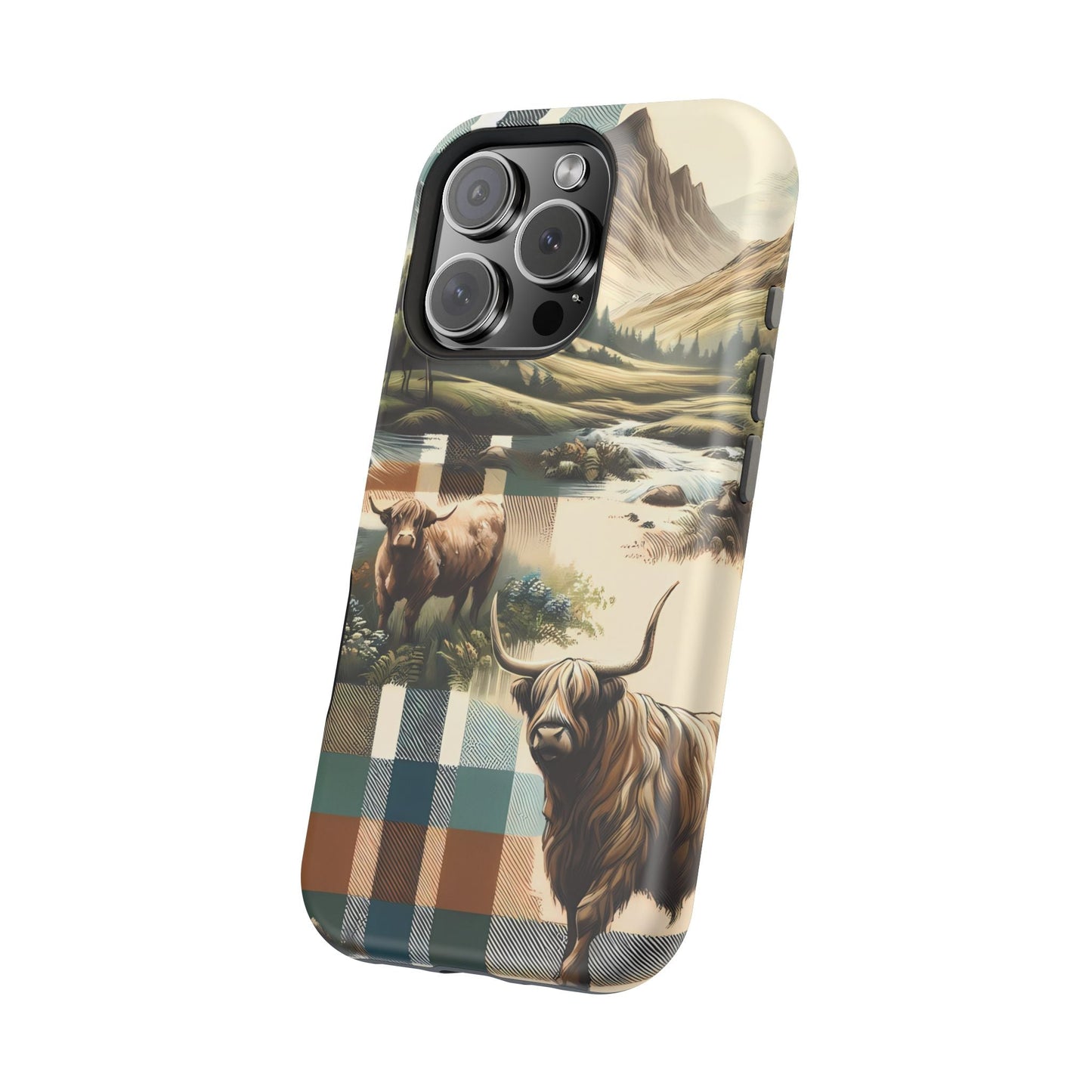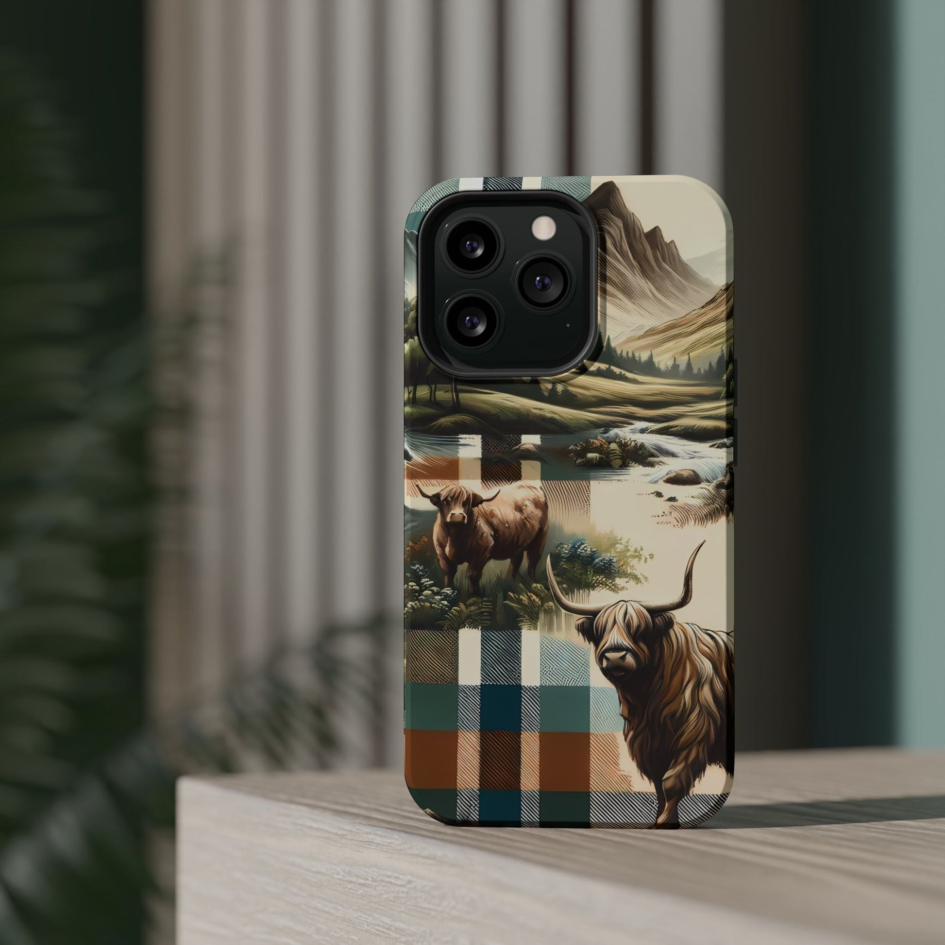 Rustic Highland Cow In Plaid - MagSafe Compatible Case