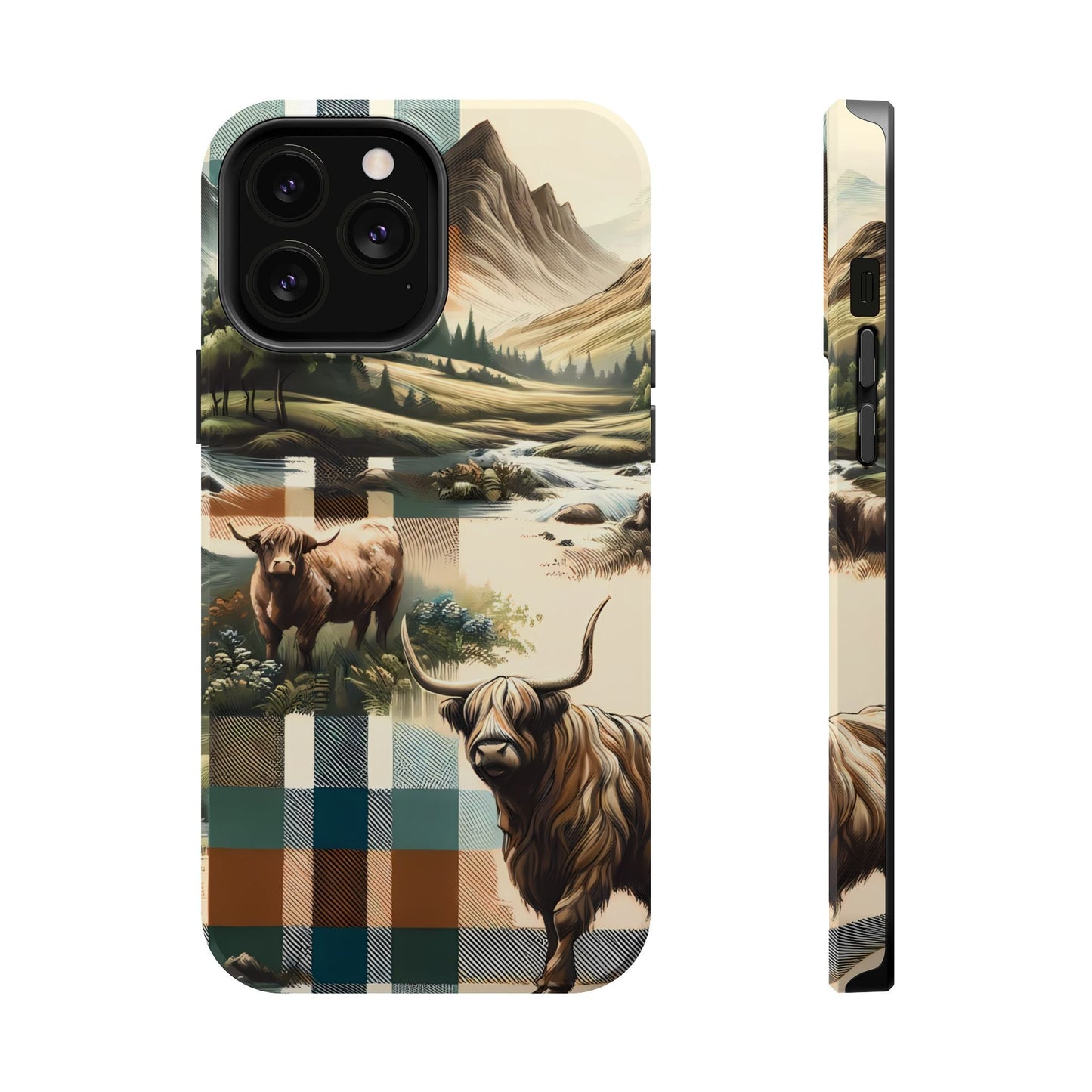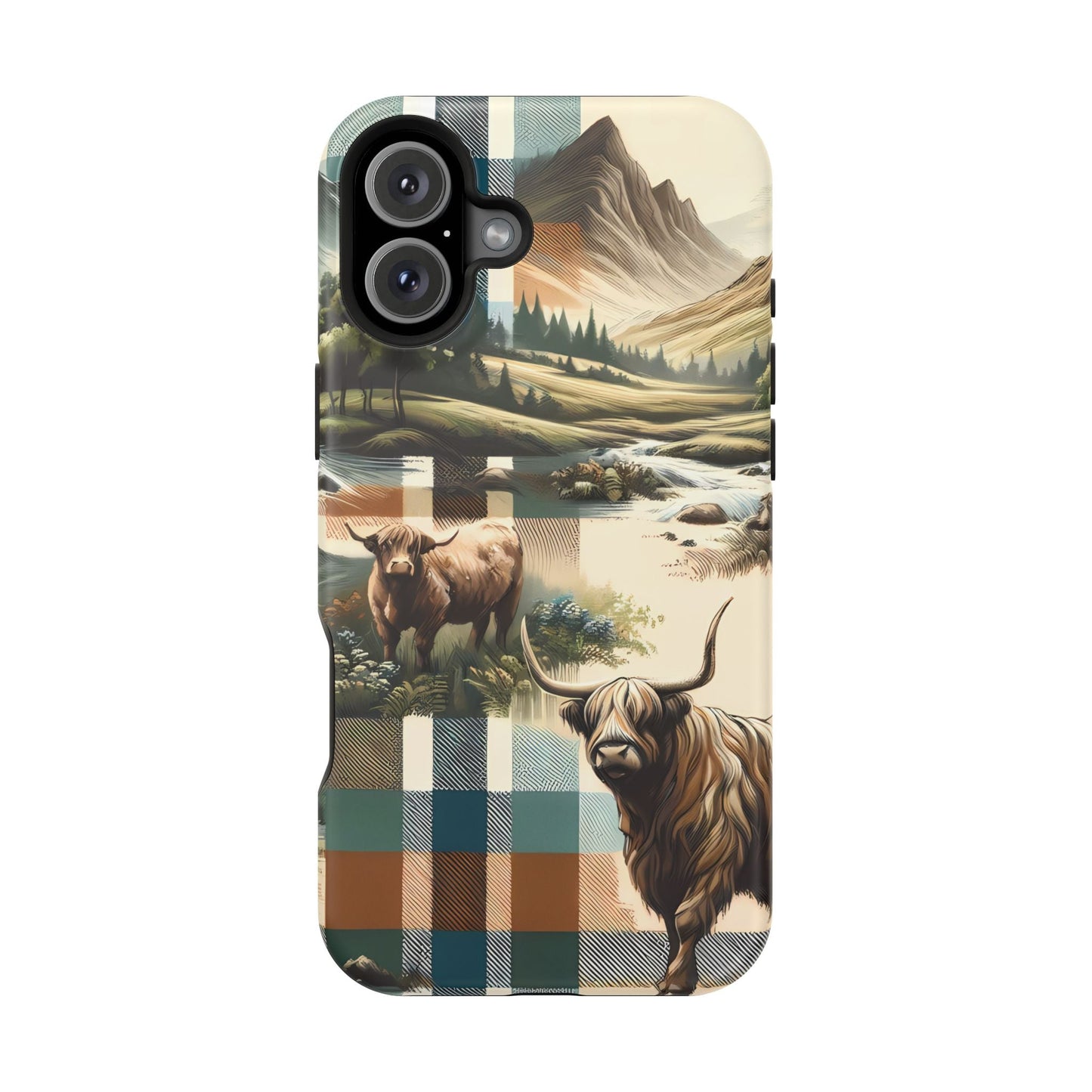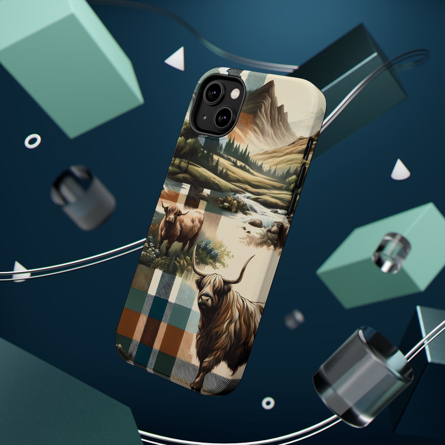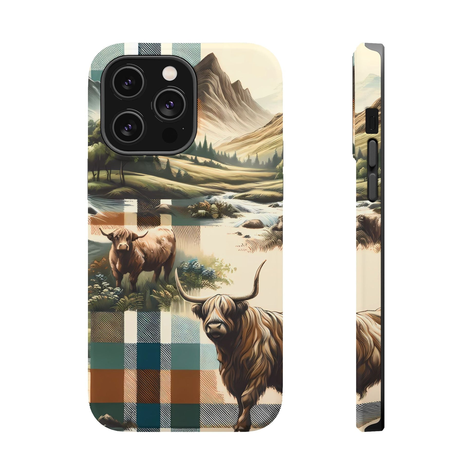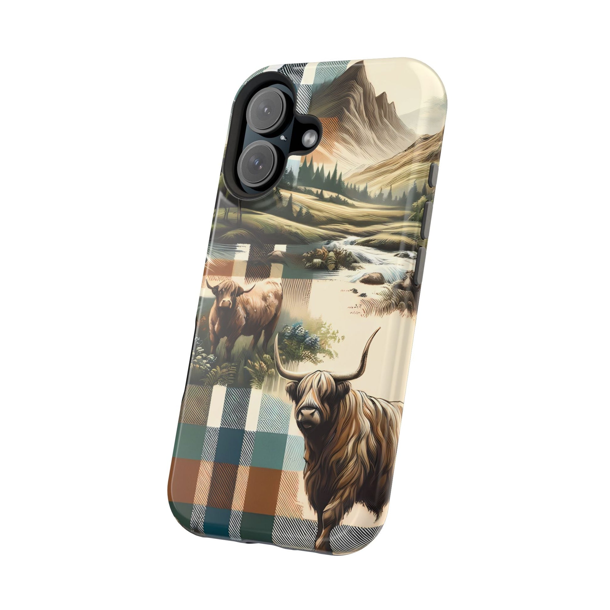 Rustic Highland Cow In Plaid - MagSafe Compatible Case