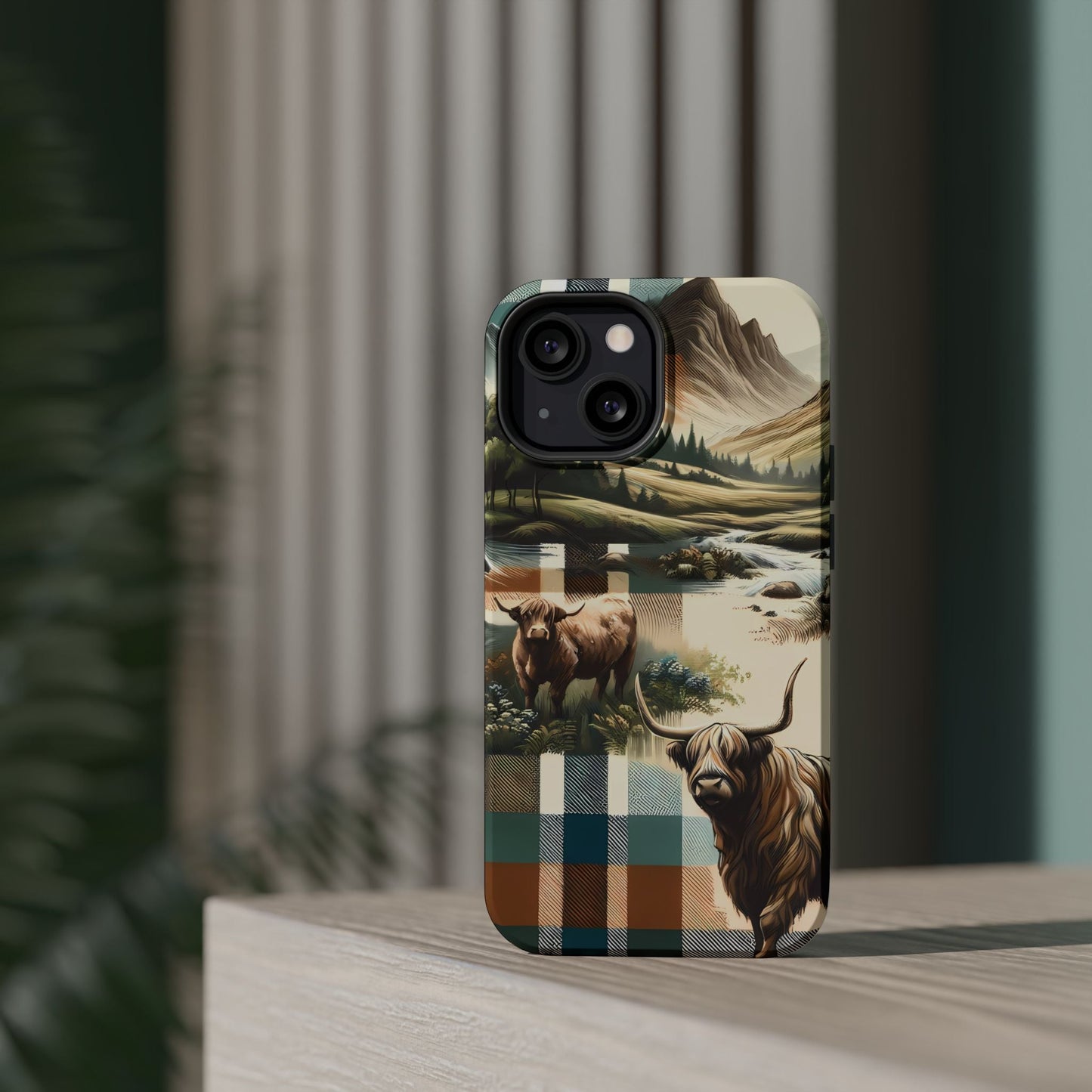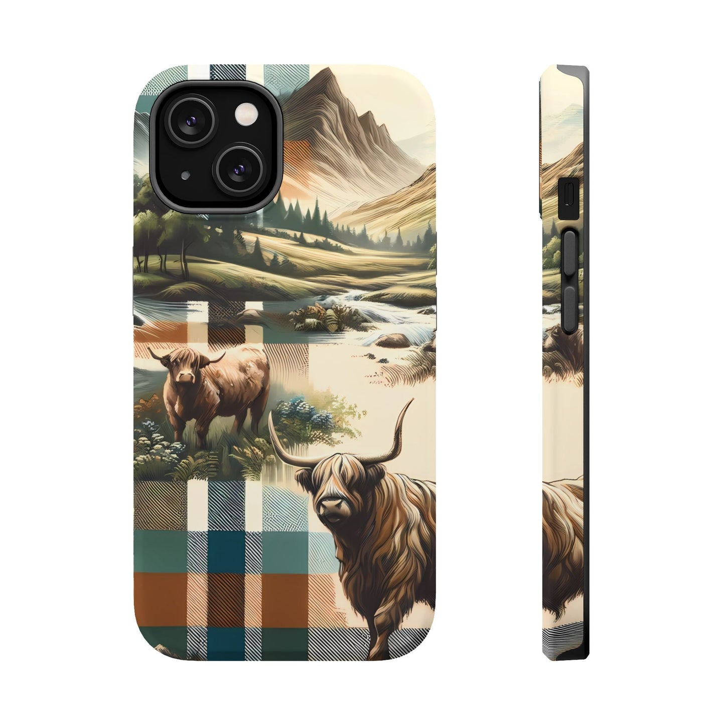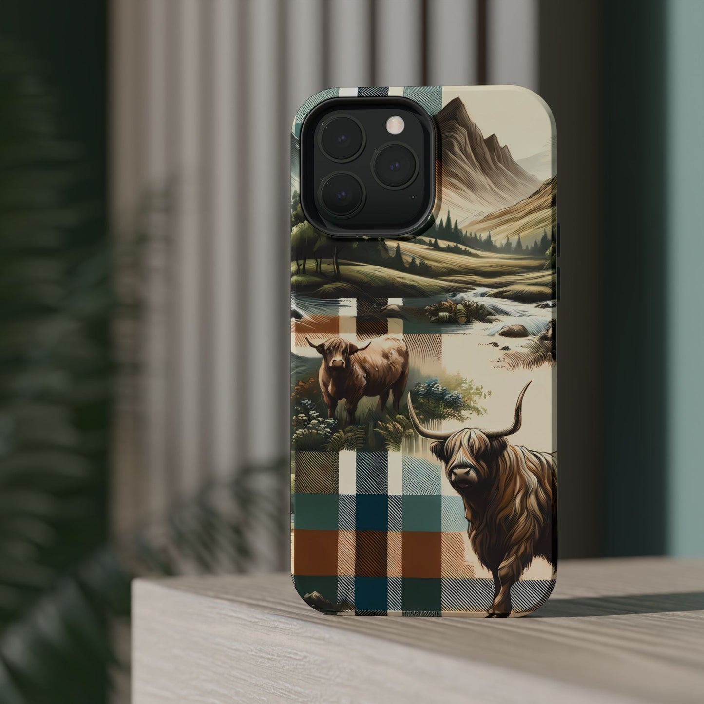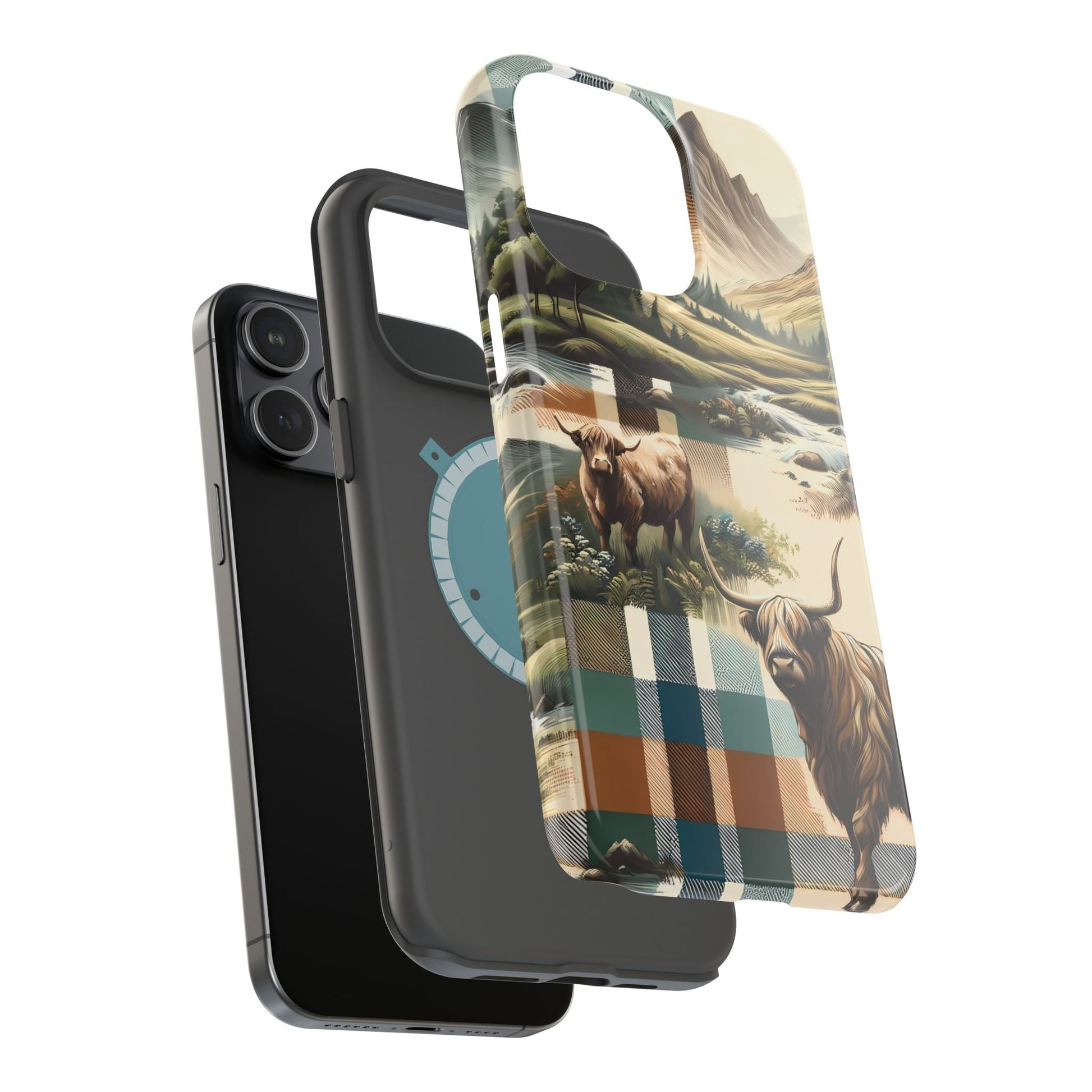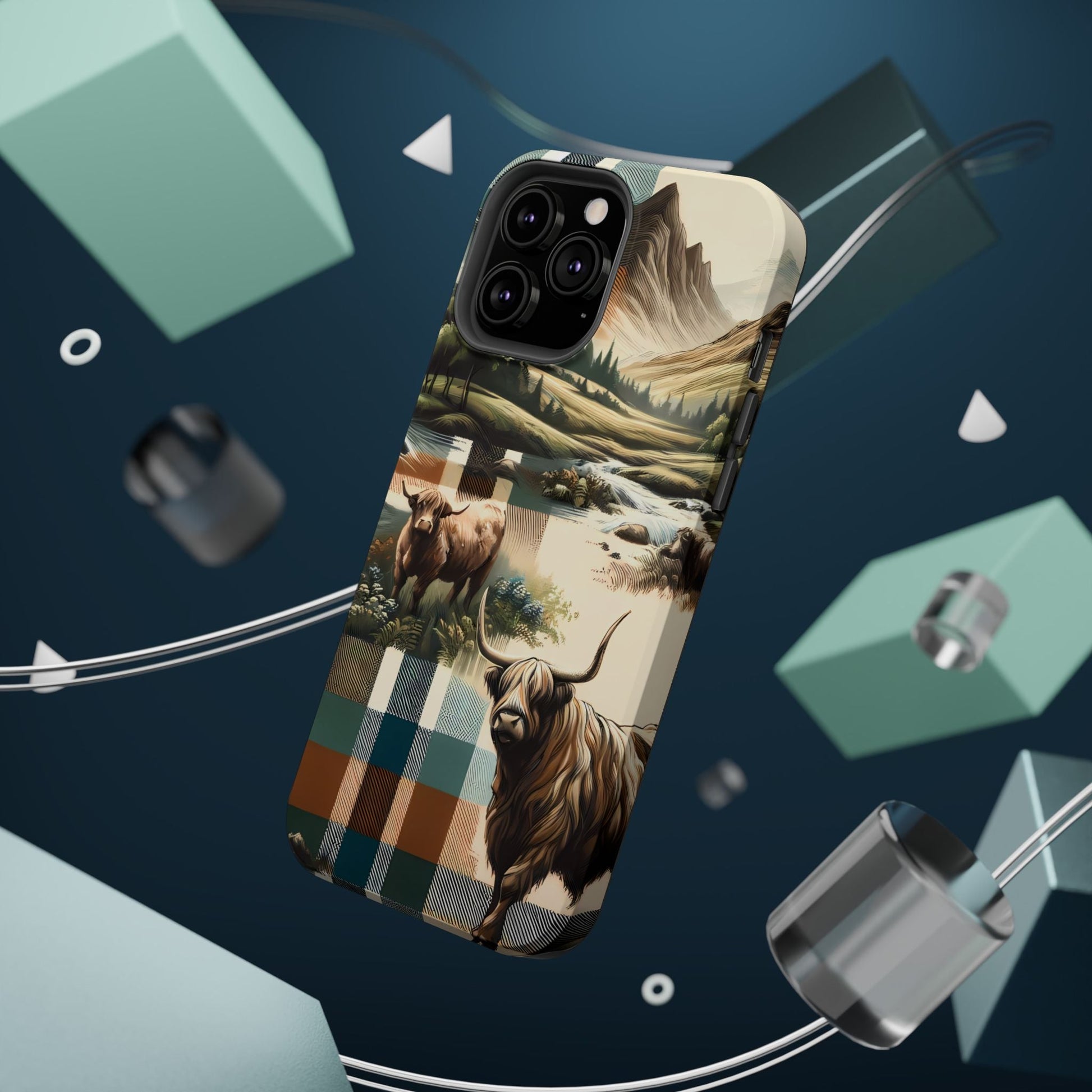 Rustic Highland Cow In Plaid - MagSafe Compatible Case