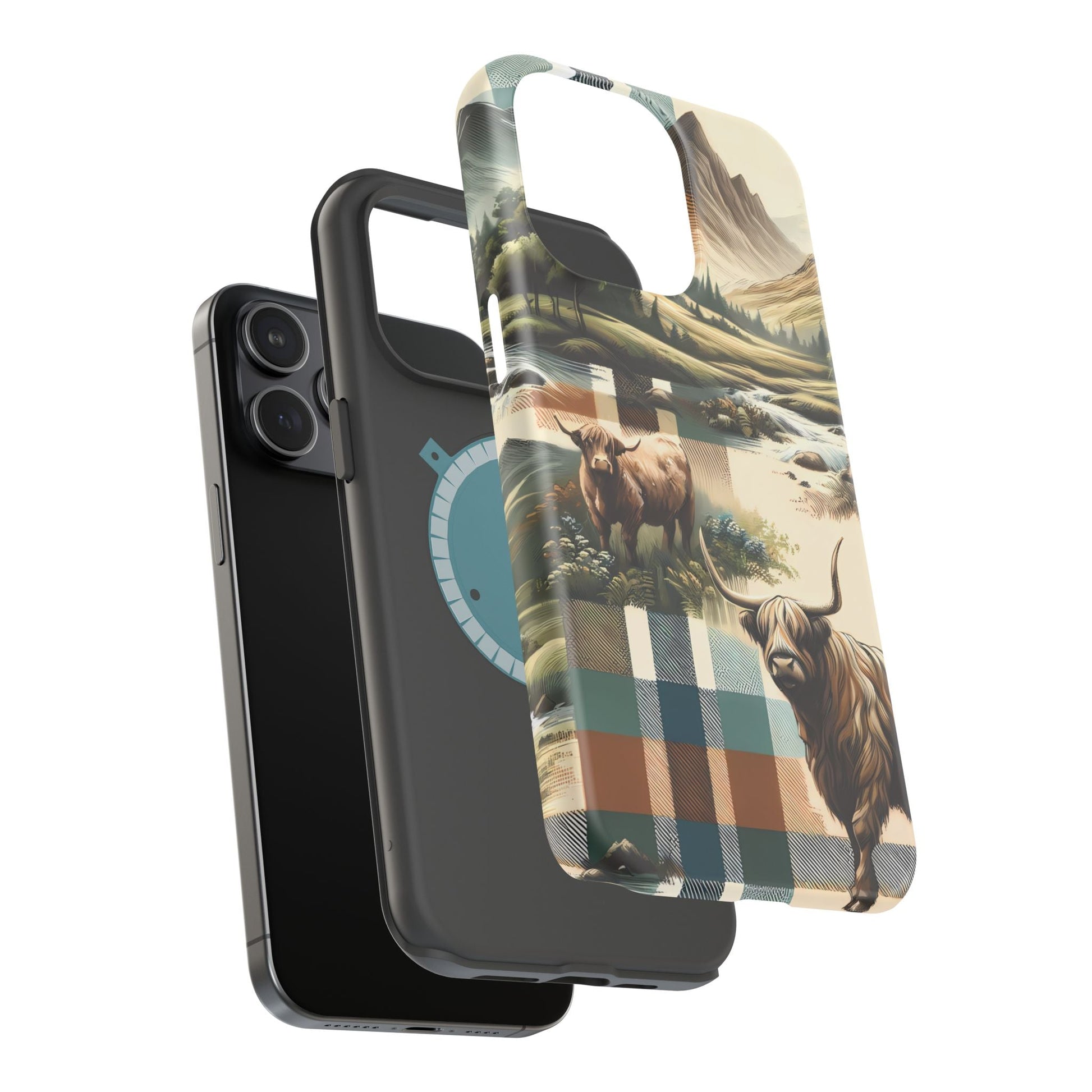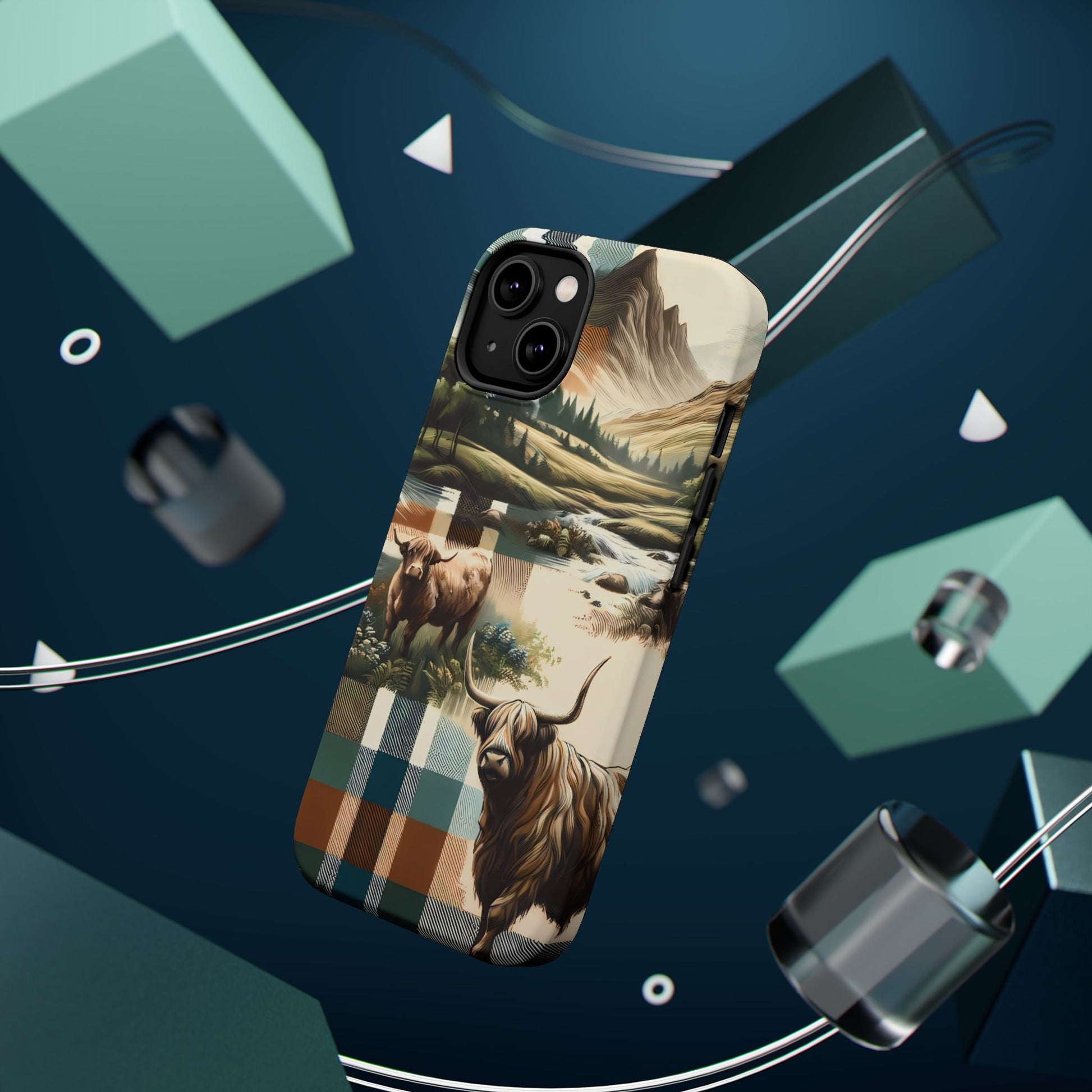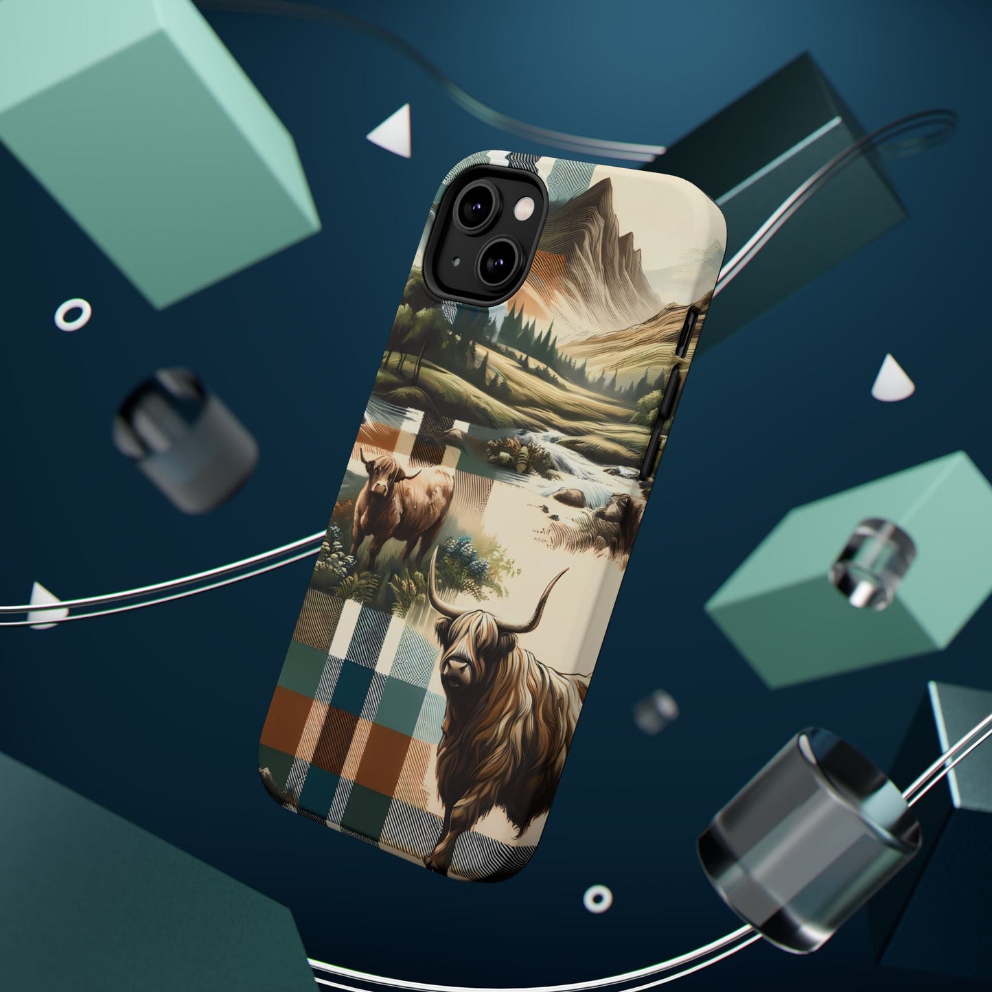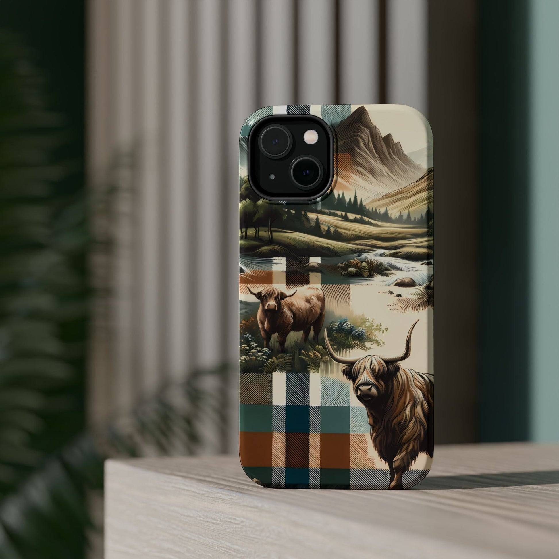 Rustic Highland Cow In Plaid - MagSafe Compatible Case