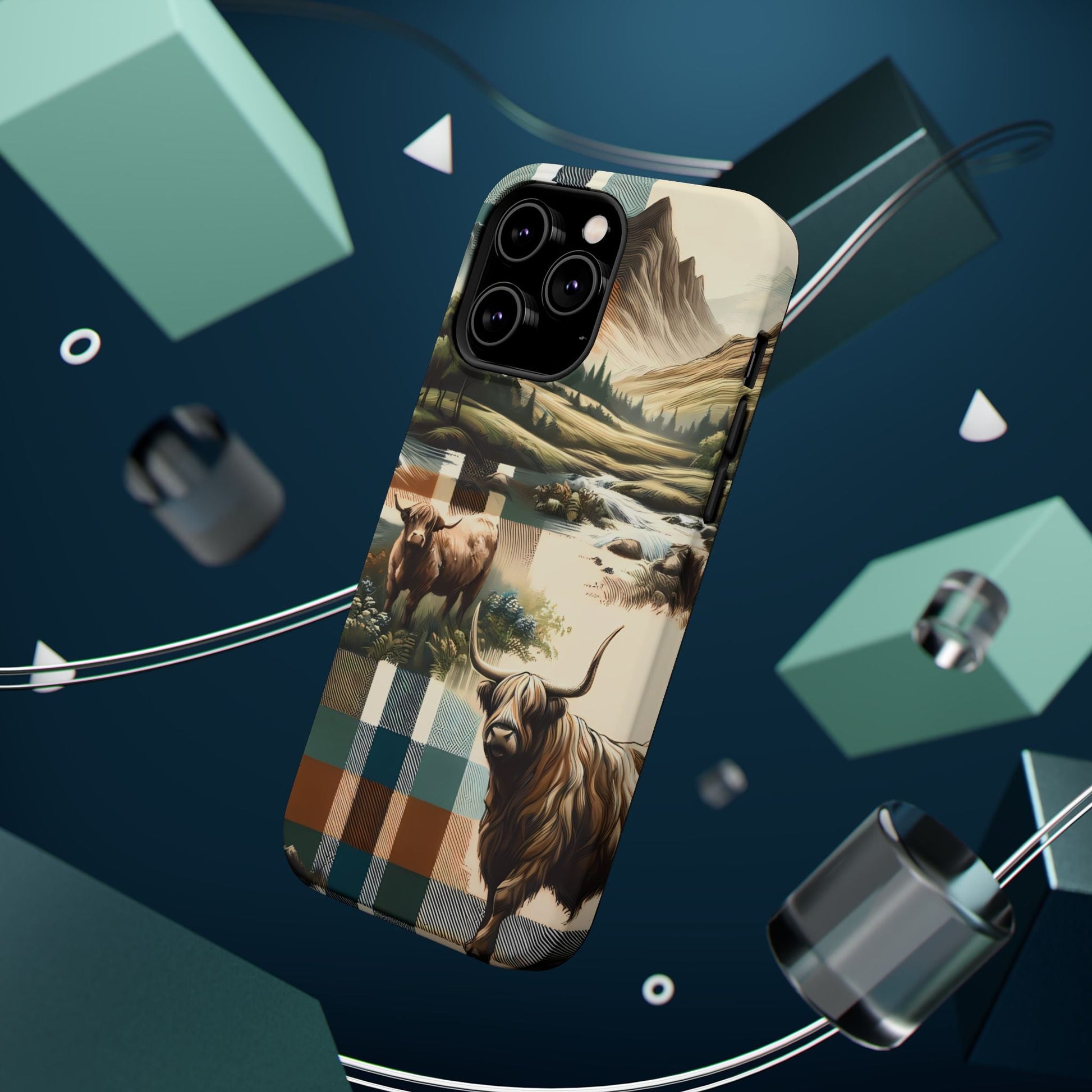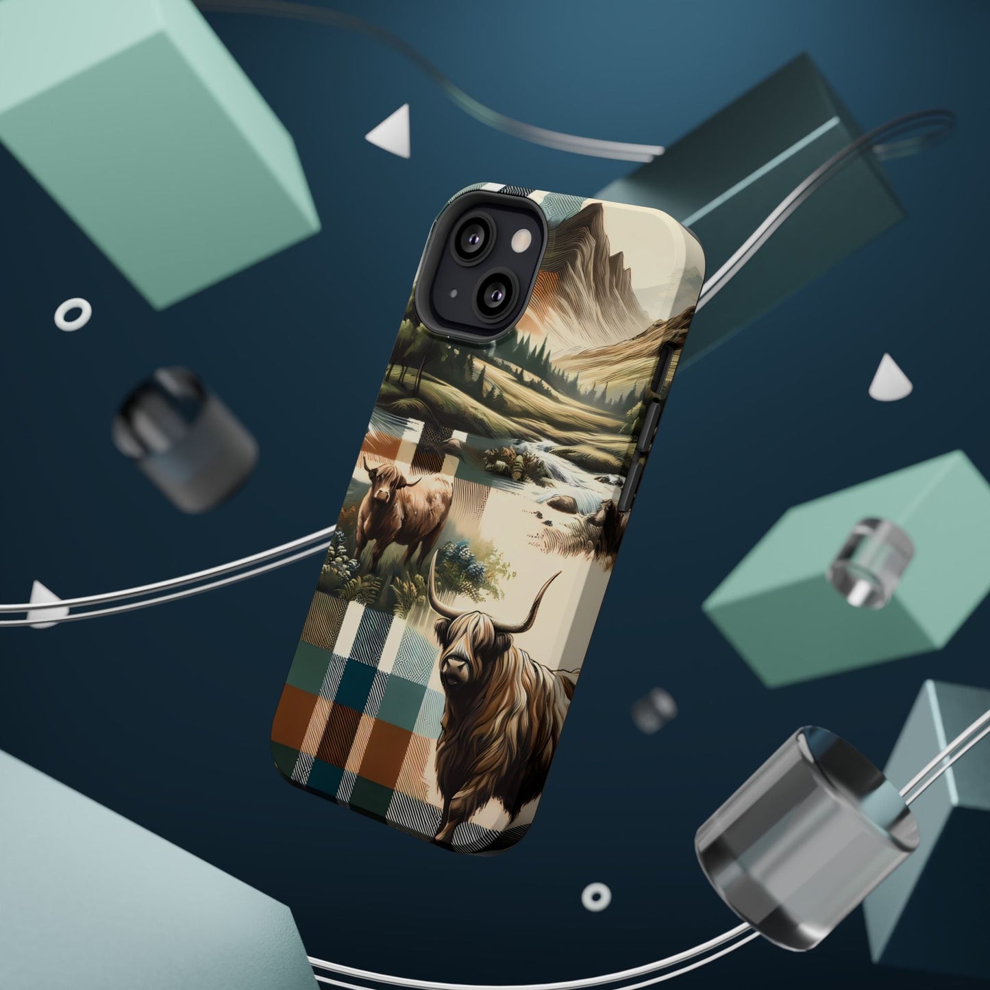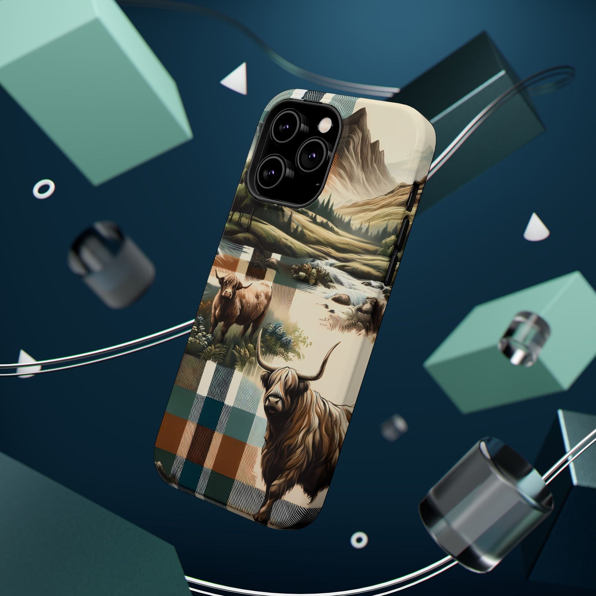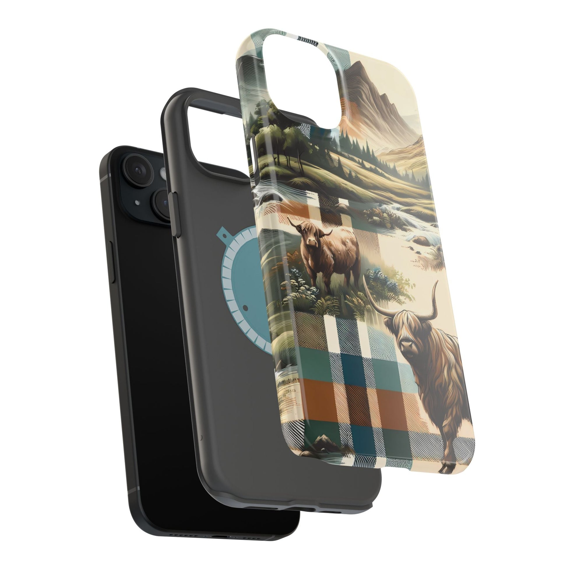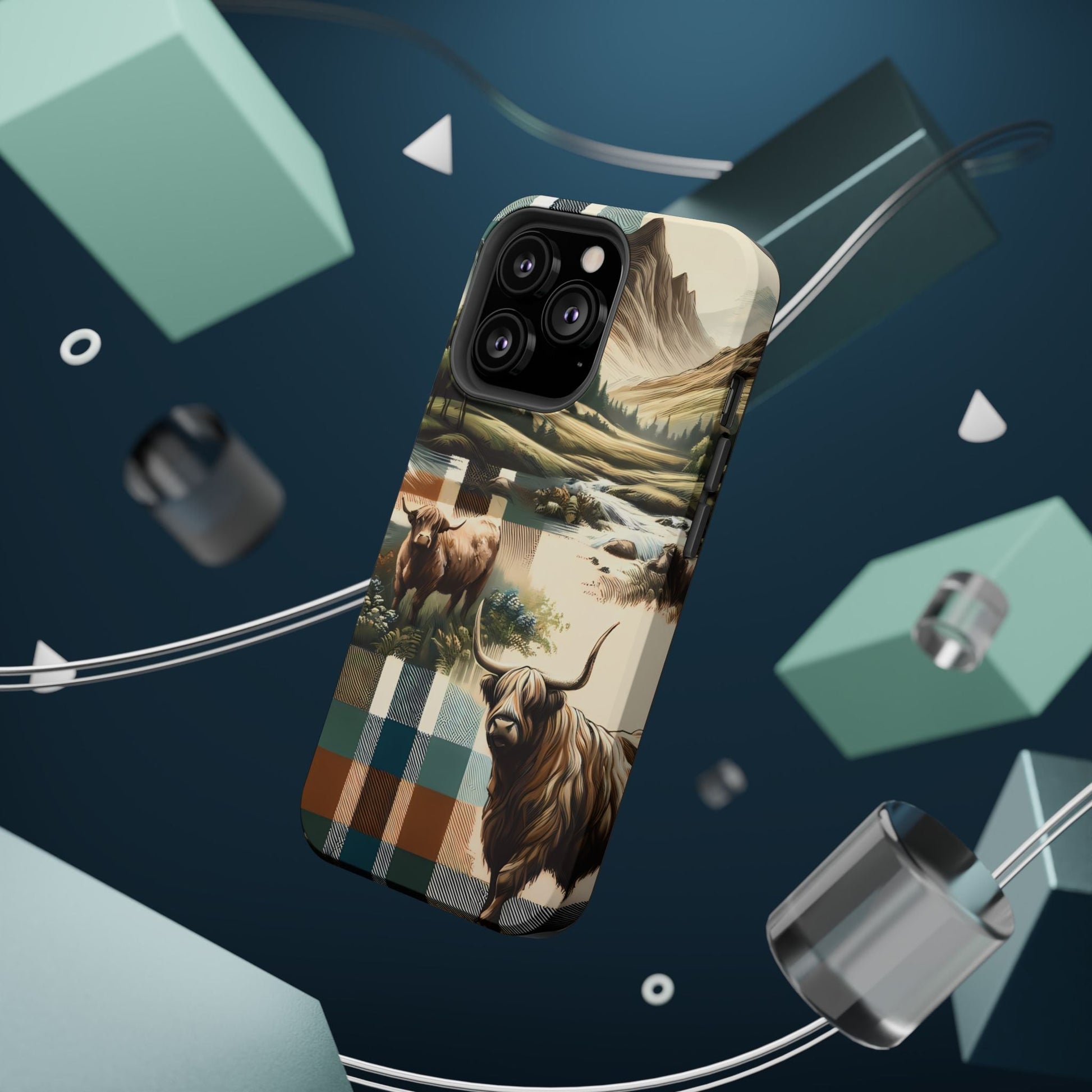 Rustic Highland Cow In Plaid - MagSafe Compatible Case