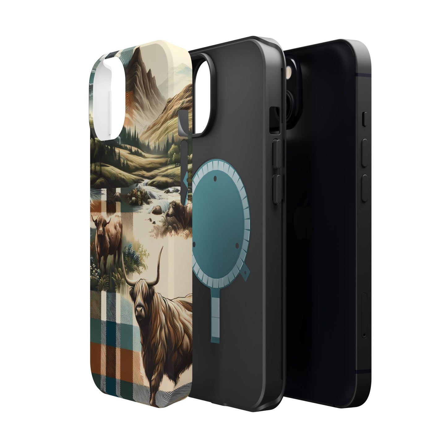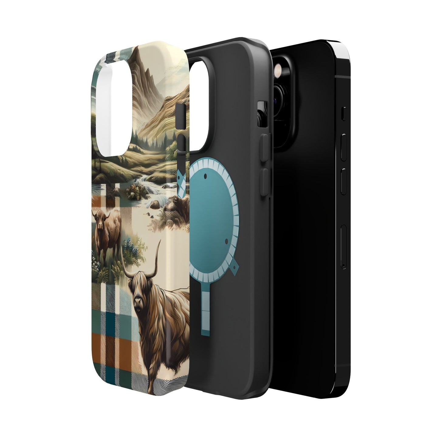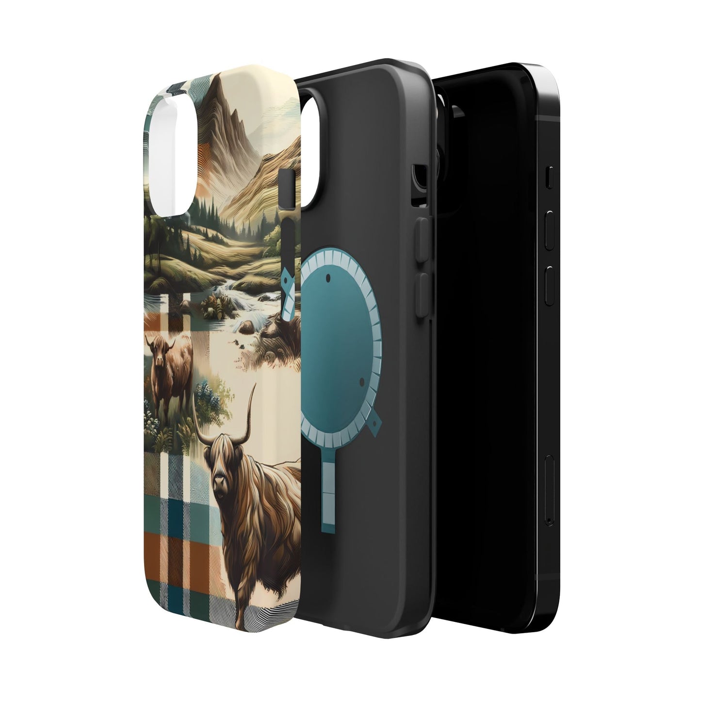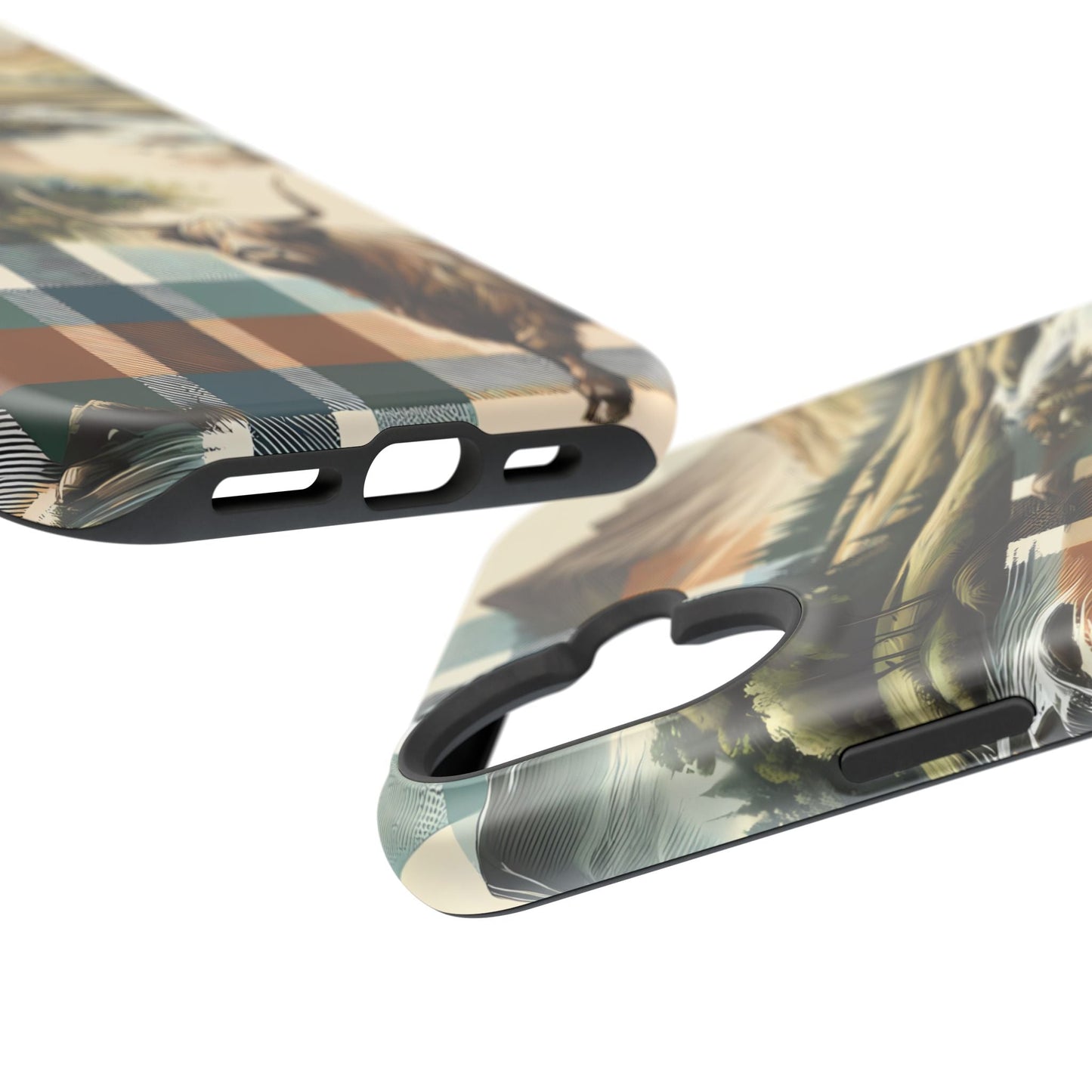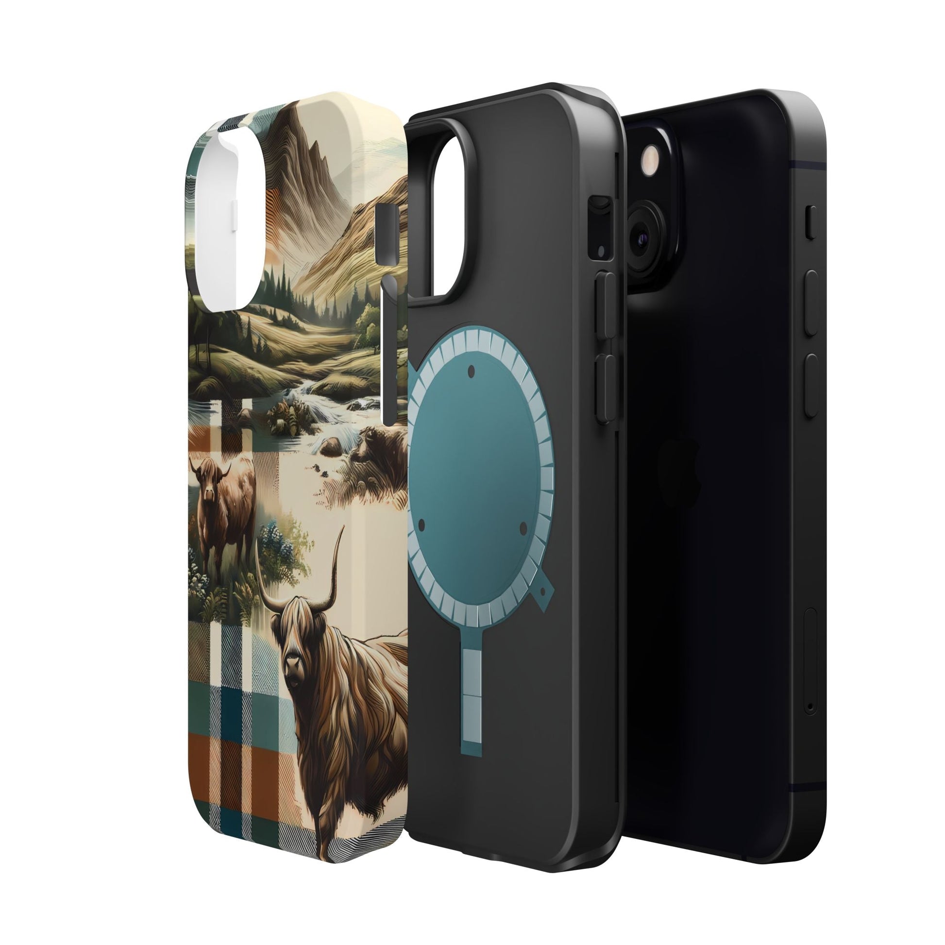 Rustic Highland Cow In Plaid - MagSafe Compatible Case