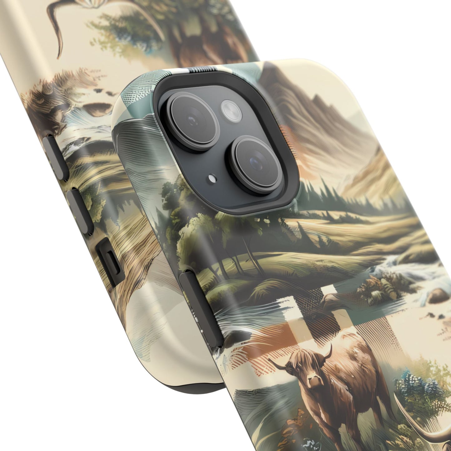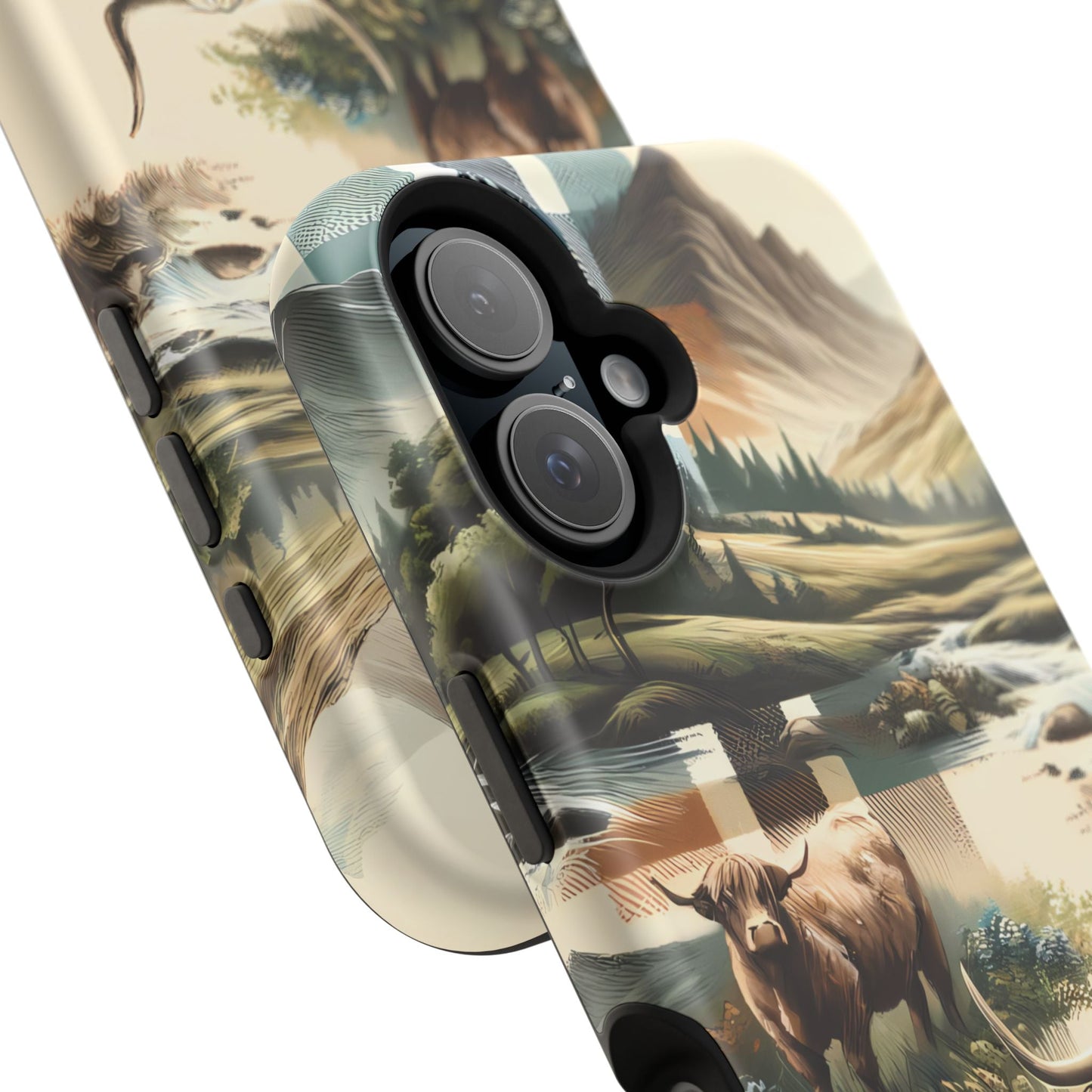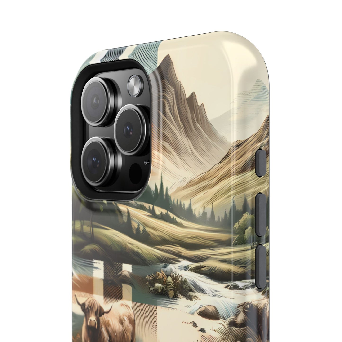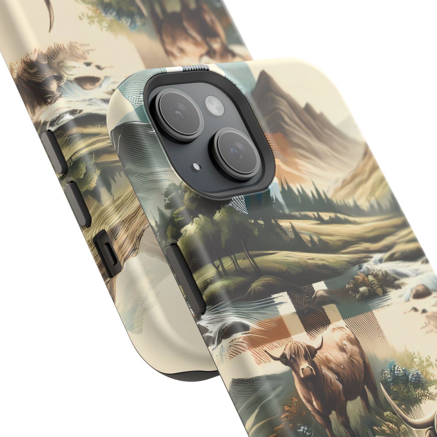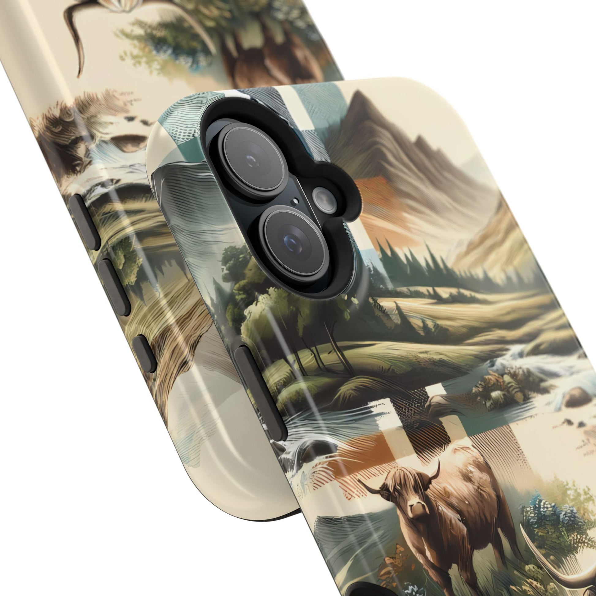 Celebrate the beauty of the countryside with this stunning Highland cow iPhone case. Featuring serene pastures, majestic mountains, and rustic plaid accents in warm earthy tones, this design captures a cozy, farmhouse aesthetic. Perfect for lovers of rural charm and nature-inspired style, this case provides top-notch protection for your phone while showcasing your personality. MagSafe-compatible, it’s as functional as it is fashionable, making it the perfect blend of practicality and charm.