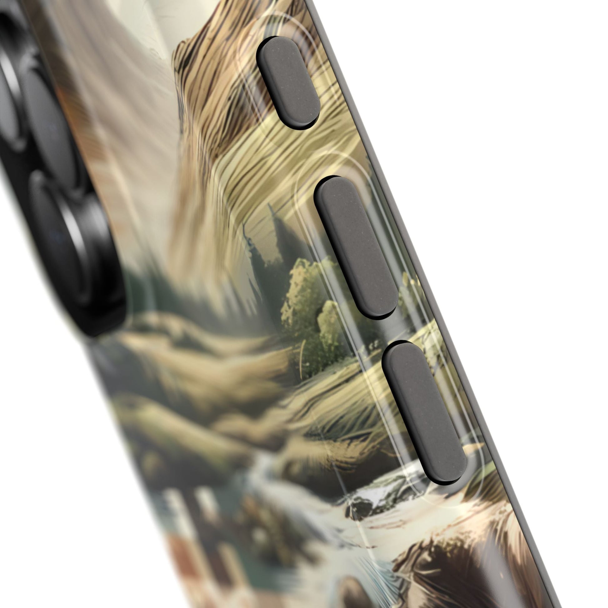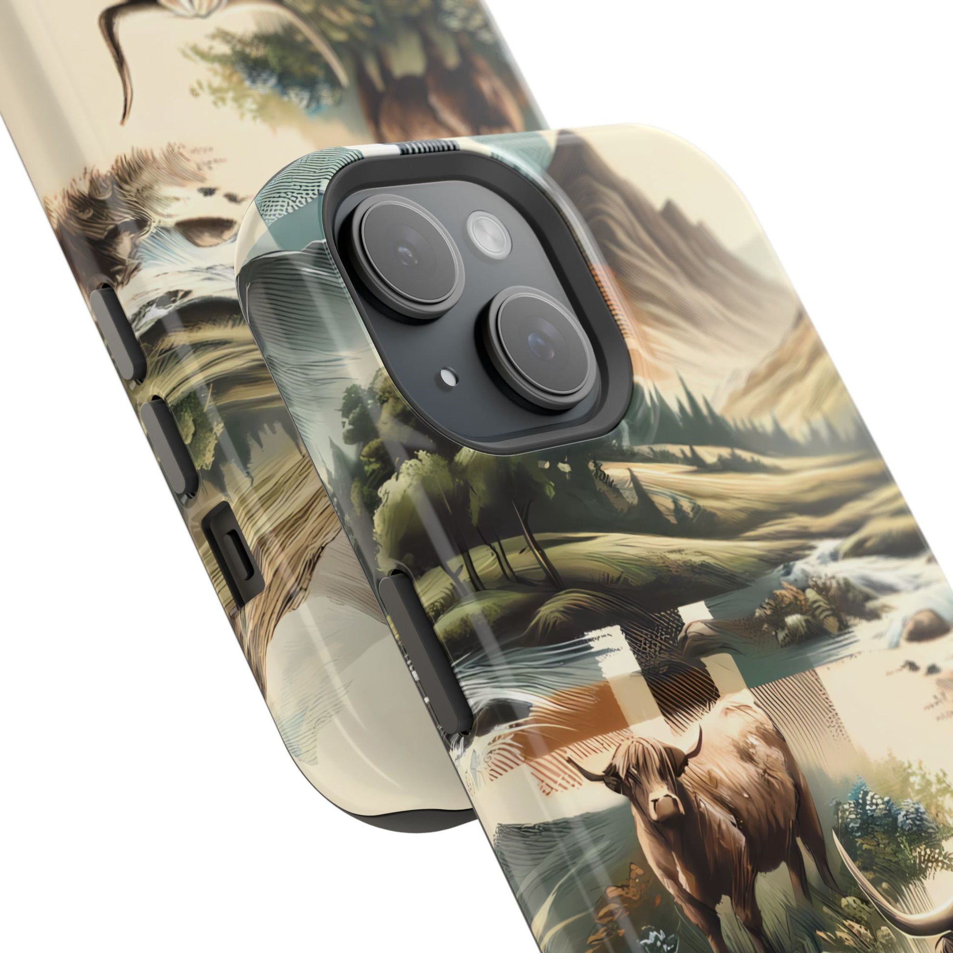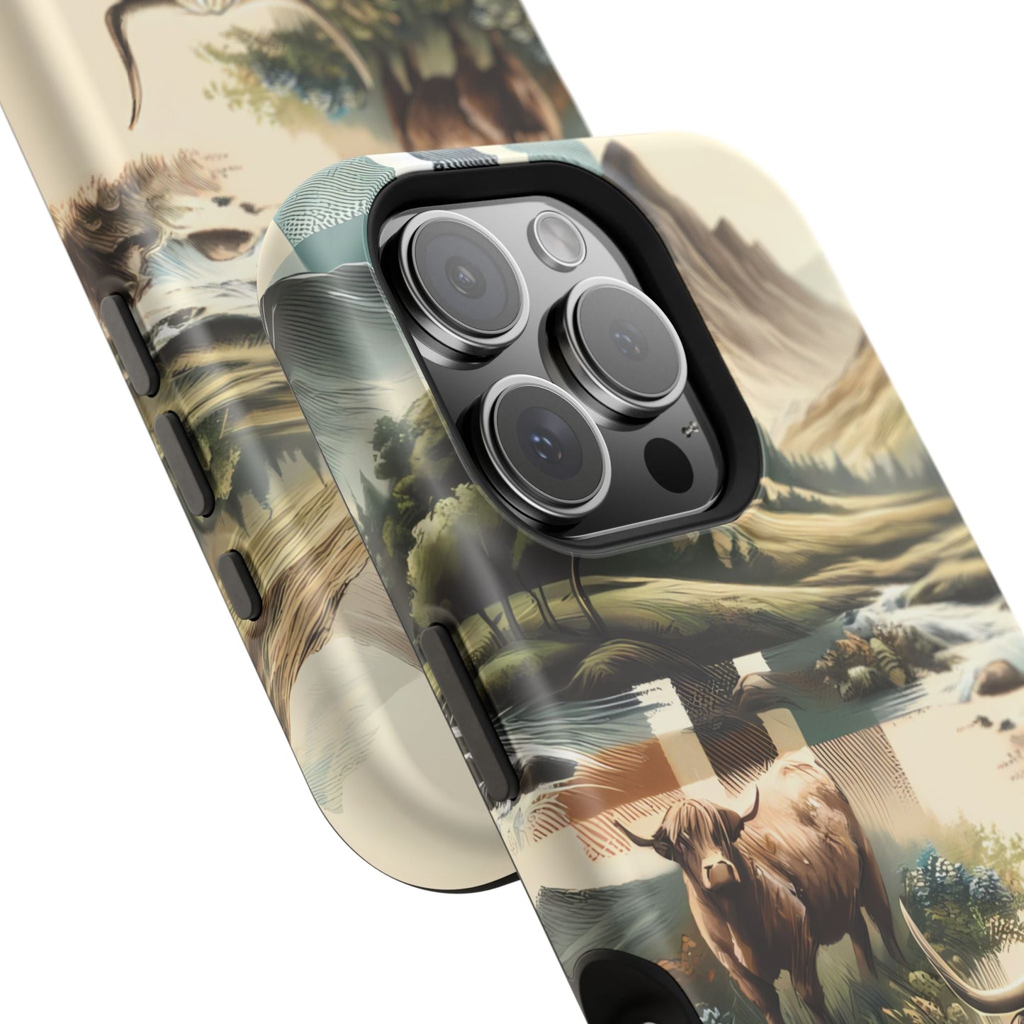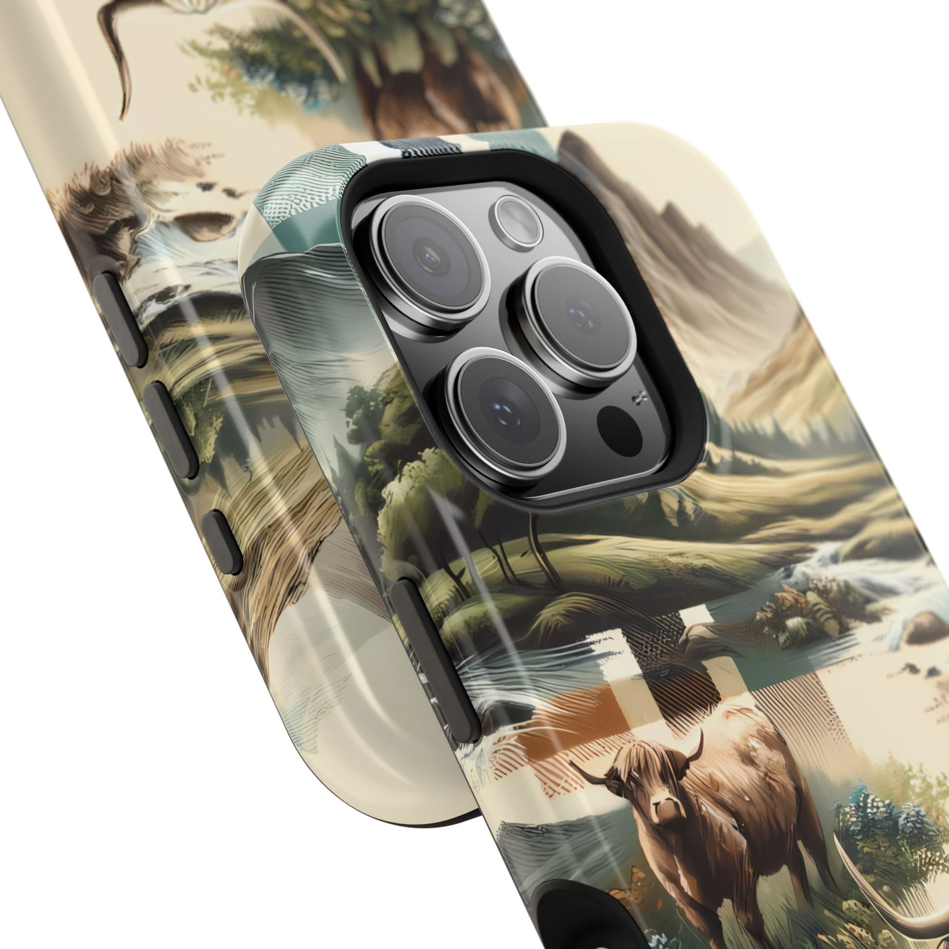 Celebrate the beauty of the countryside with this stunning Highland cow iPhone case. Featuring serene pastures, majestic mountains, and rustic plaid accents in warm earthy tones, this design captures a cozy, farmhouse aesthetic. Perfect for lovers of rural charm and nature-inspired style, this case provides top-notch protection for your phone while showcasing your personality. MagSafe-compatible, it’s as functional as it is fashionable, making it the perfect blend of practicality and charm.