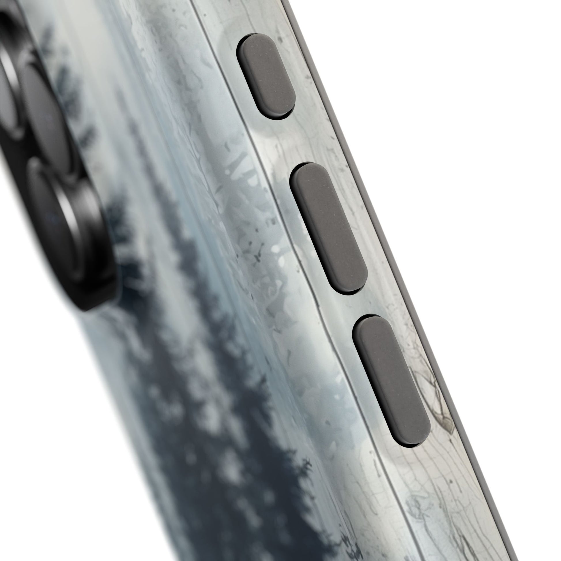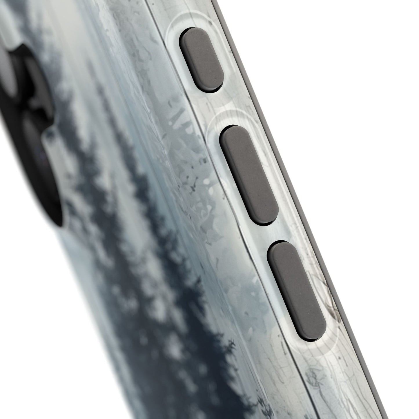 Rustic Pine Forest MagSafe iPhone Case - Blue Toned Woodland Design