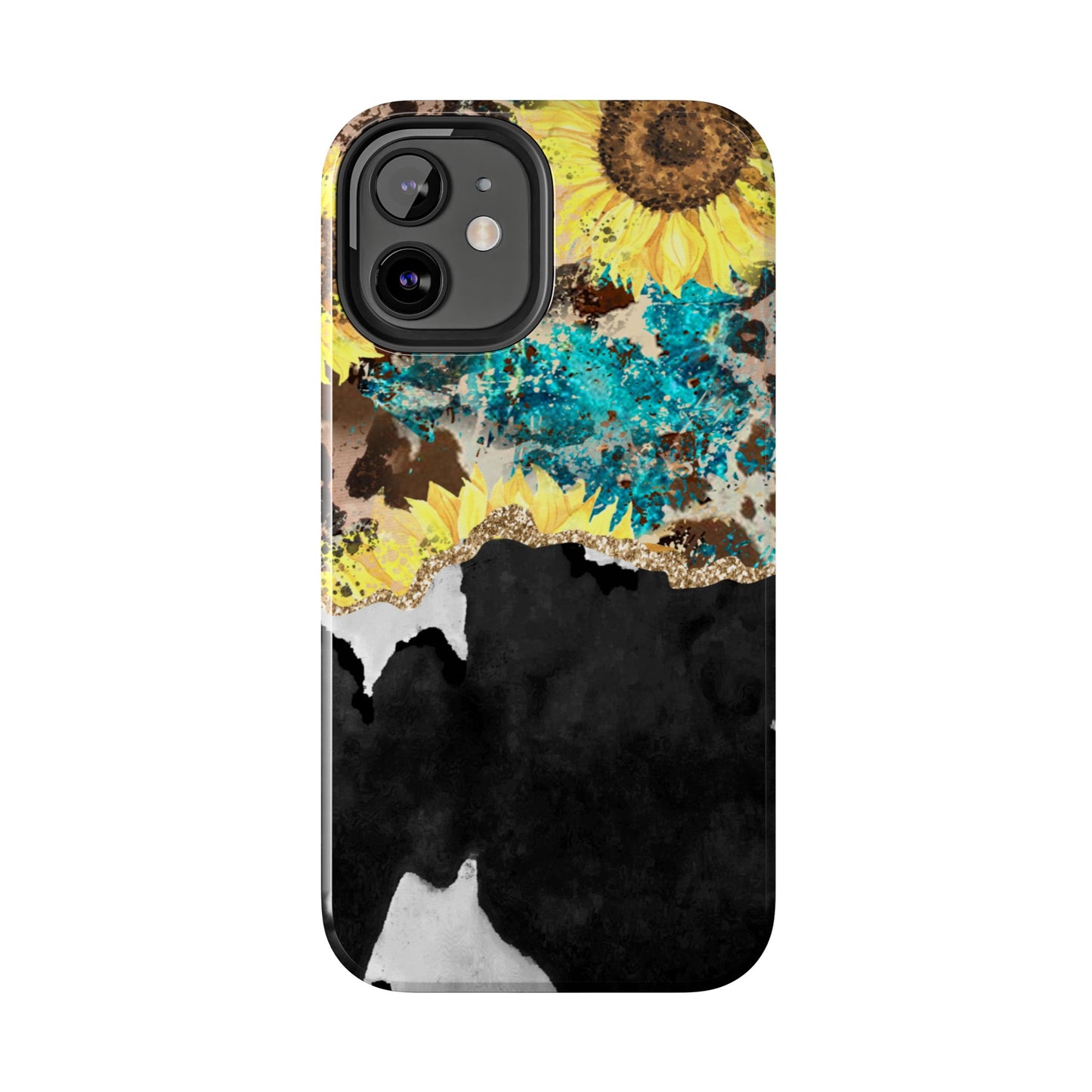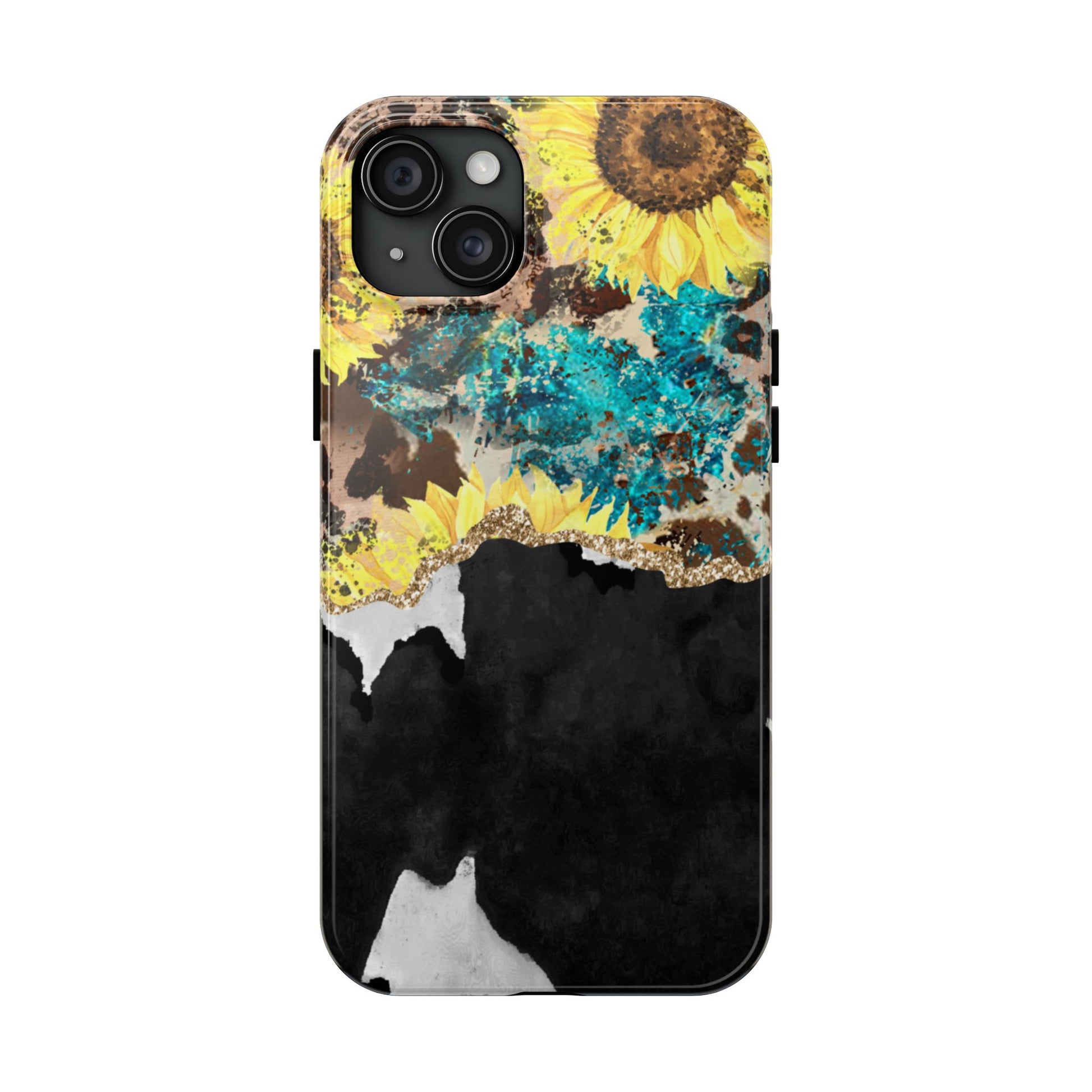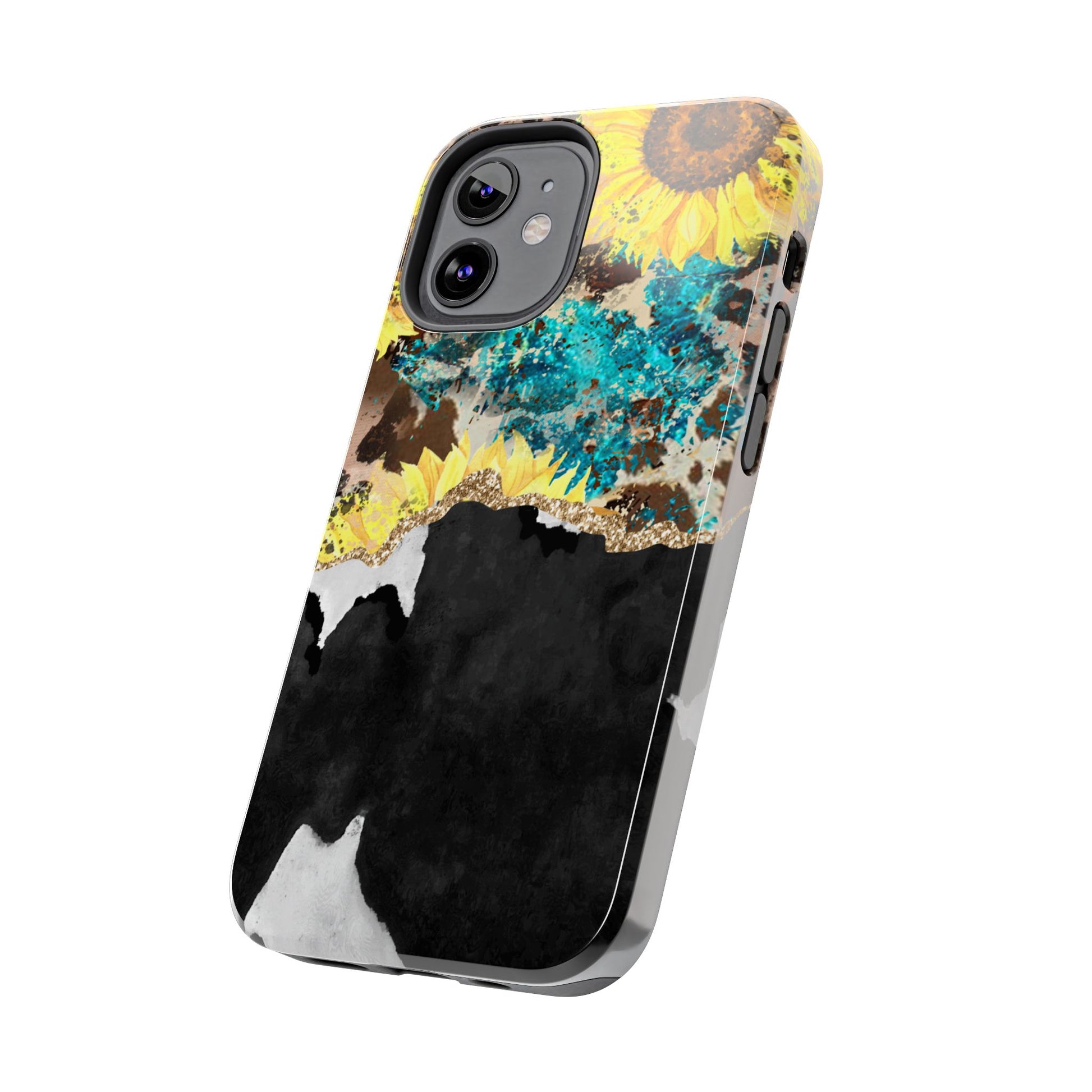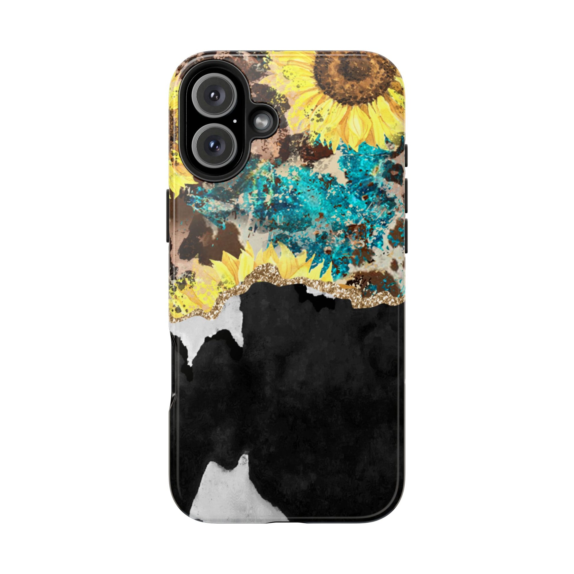 Embrace rustic elegance with our Rustic Sunflower Leopard Glam iPhone Case! This striking design combines wild leopard print with vibrant sunflowers, turquoise splashes, and a chic black-and-gold glitter accent for an edgy, layered look. The combination of textures and colors gives off a boho-glam vibe, perfect for those who love a unique, artistic style. Made with a tough polycarbonate shell and cushioned TPU liner, this case protects your phone while letting your personality shine. It’s the ideal accessory for anyone with a bold and adventurous spirit!