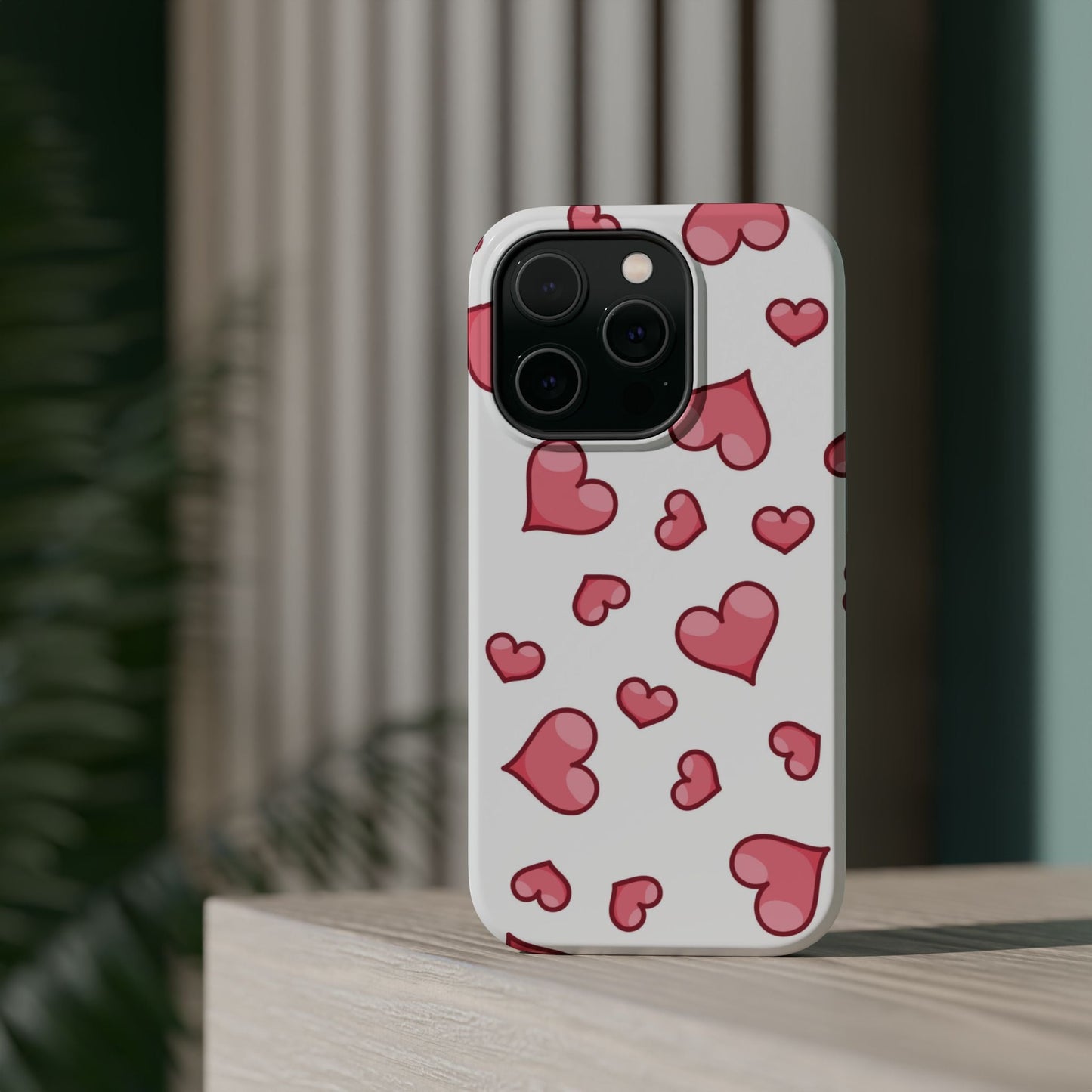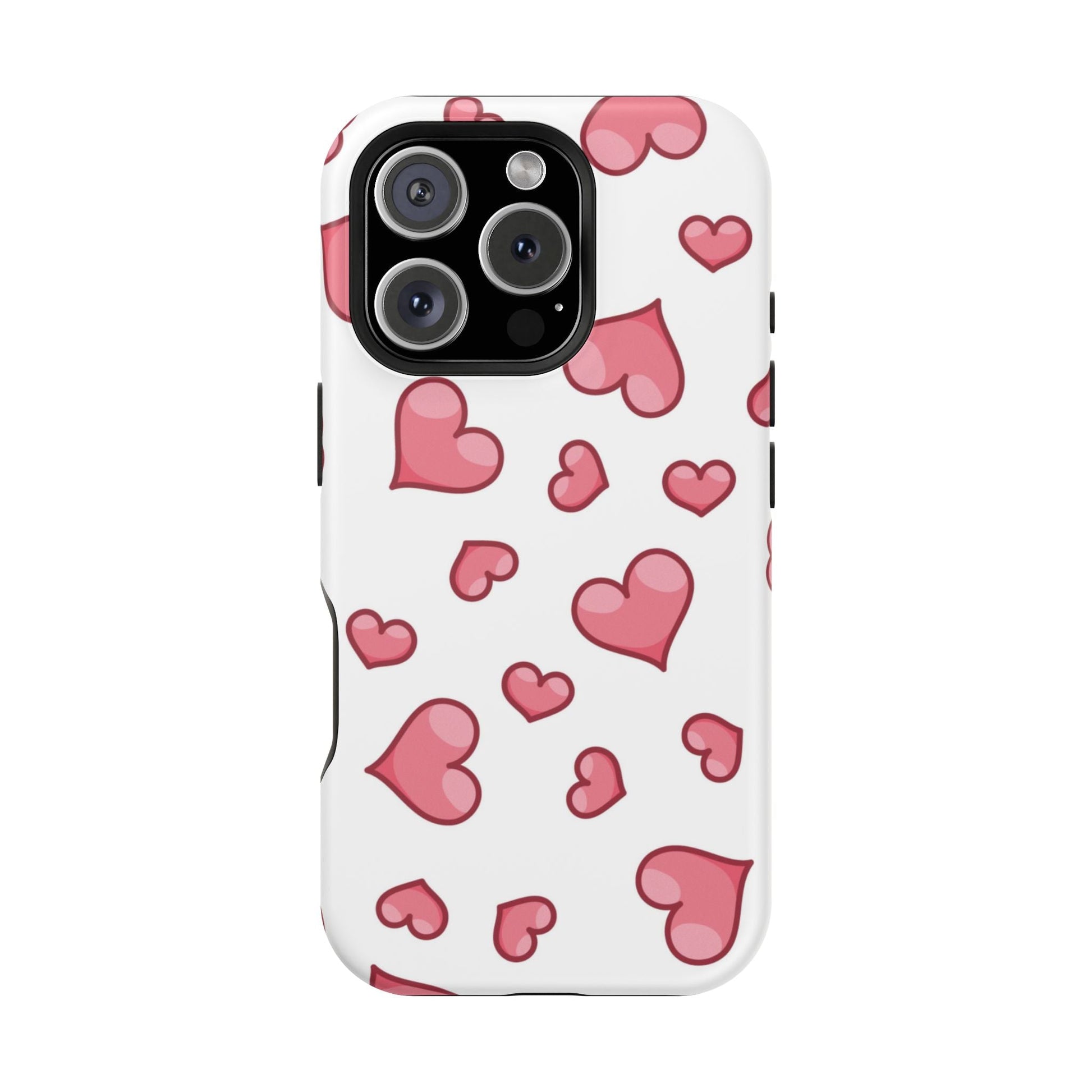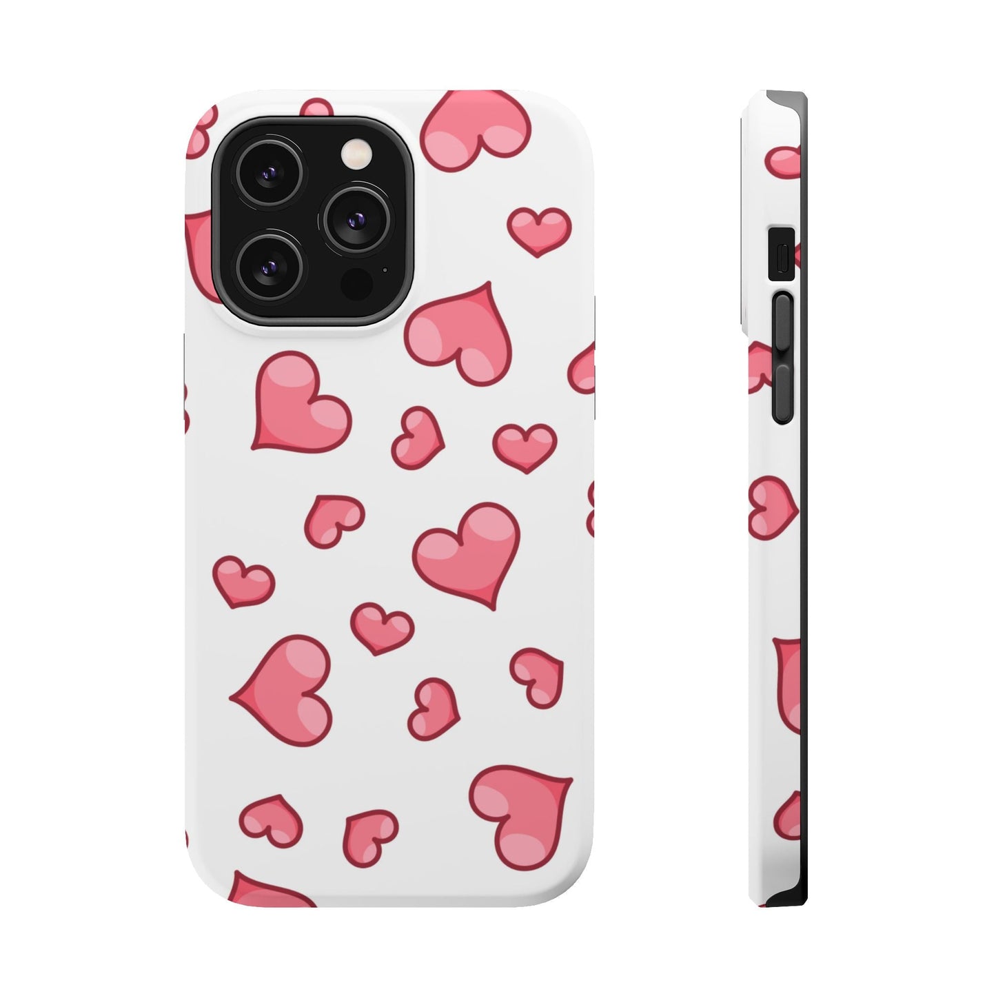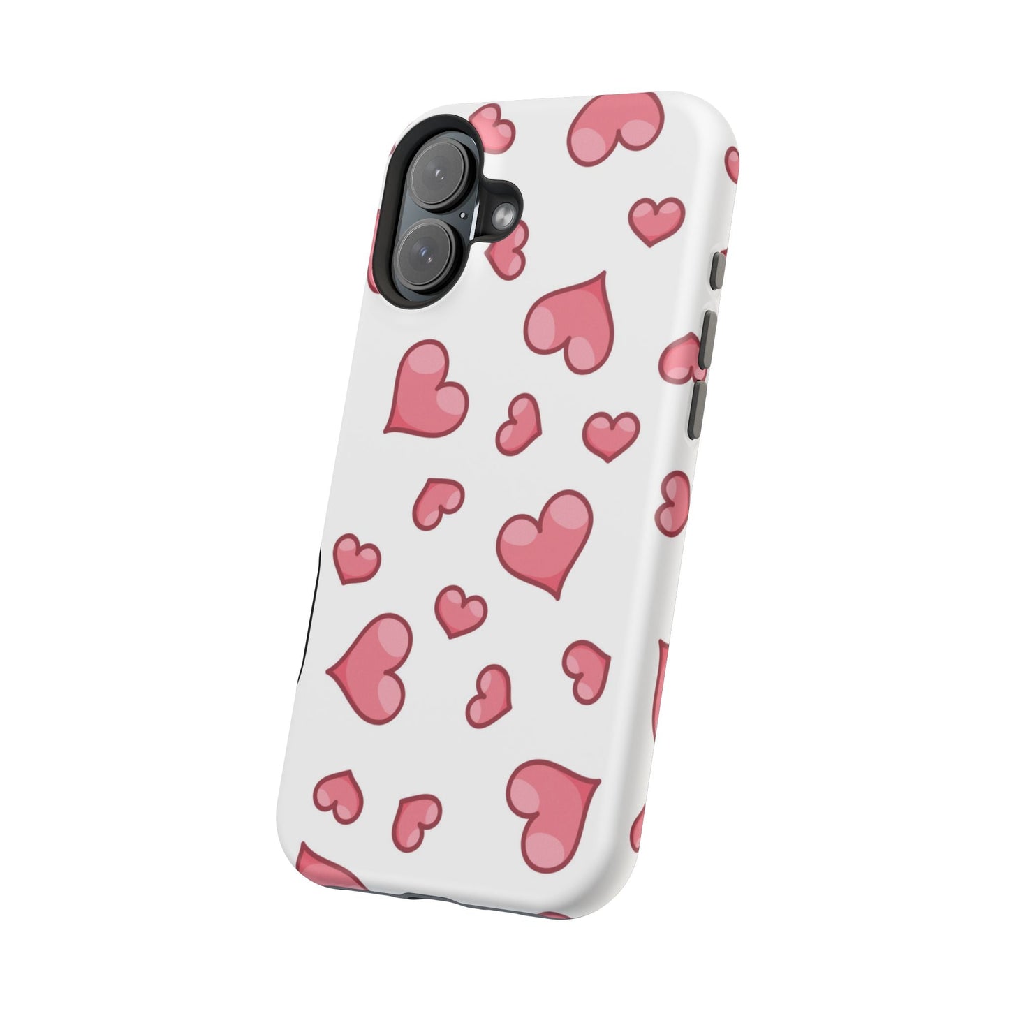 Let your heart flutter with our Scattered Hearts MagSafe iPhone Case! This charming design features a playful pattern of scattered pink hearts of various sizes, creating a romantic and cheerful vibe. It's the perfect case for those who love all things cute and gir...