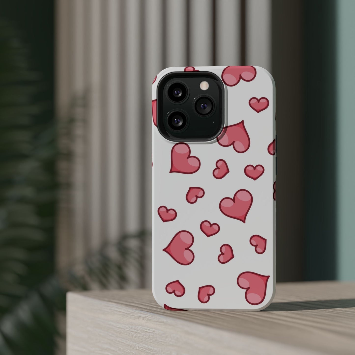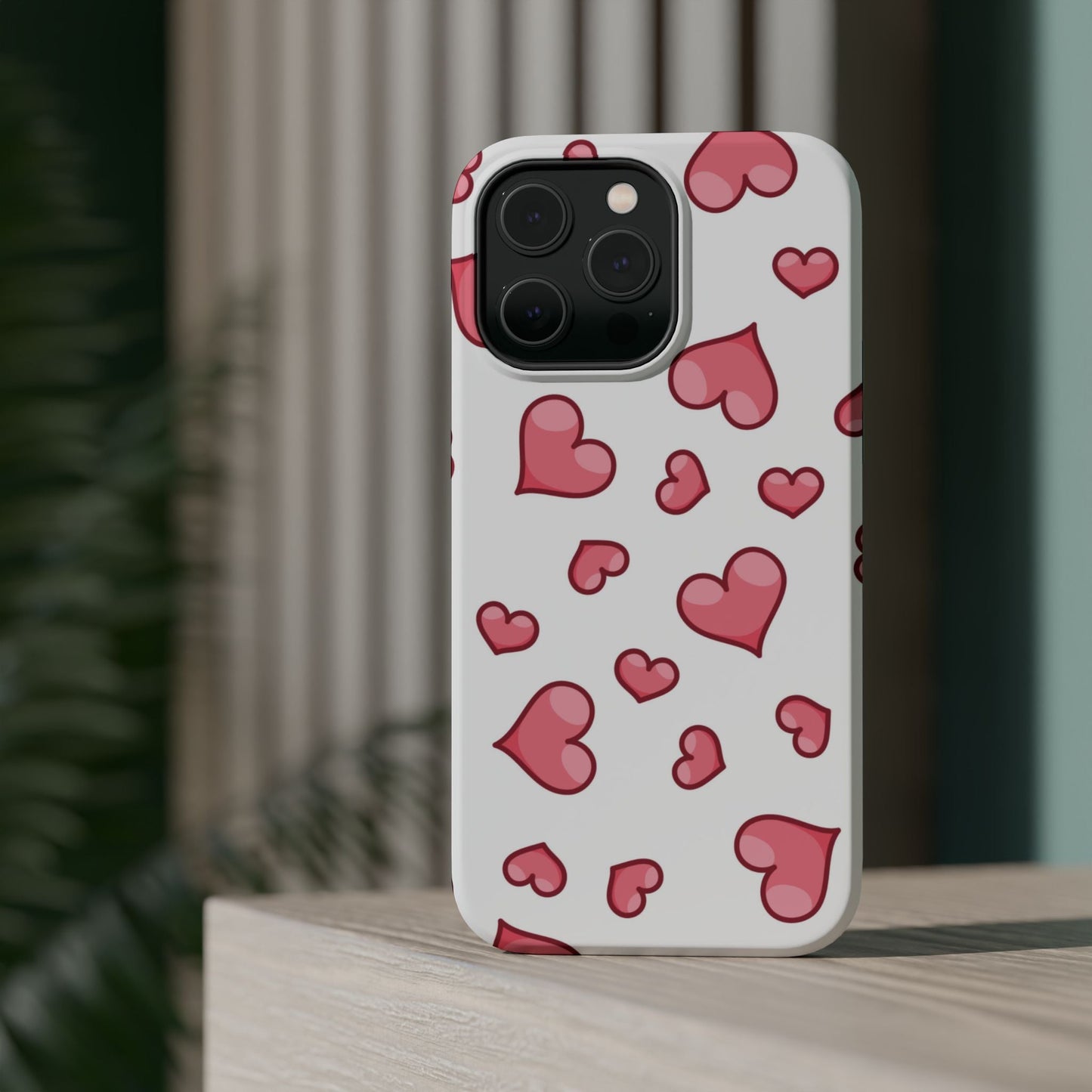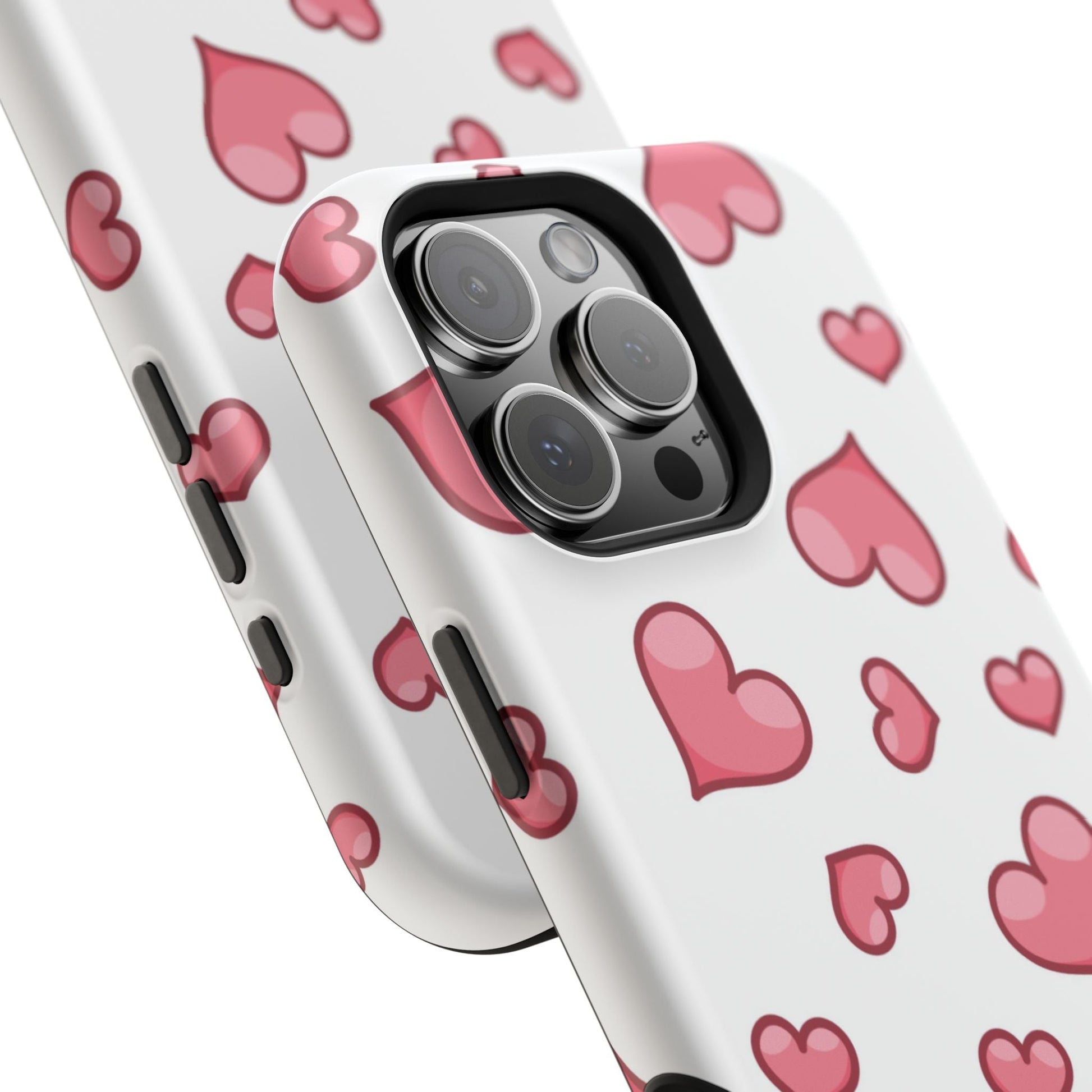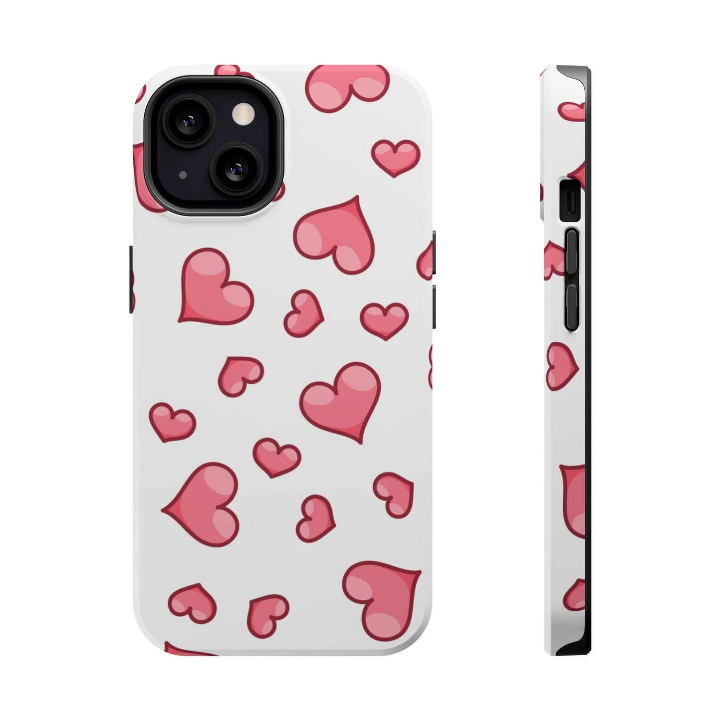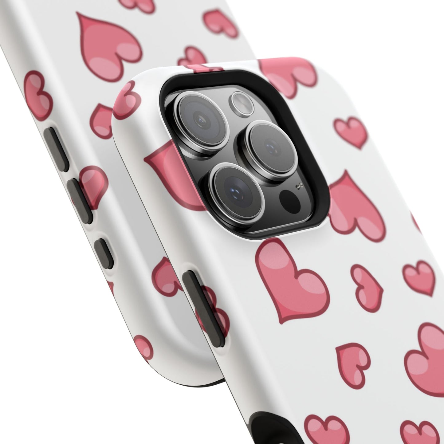 Let your heart flutter with our Scattered Hearts MagSafe iPhone Case! This charming design features a playful pattern of scattered pink hearts of various sizes, creating a romantic and cheerful vibe. It's the perfect case for those who love all things cute and gir...