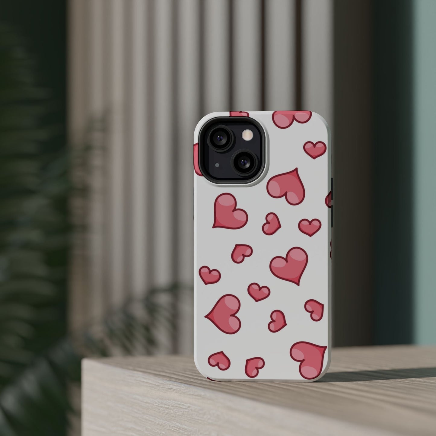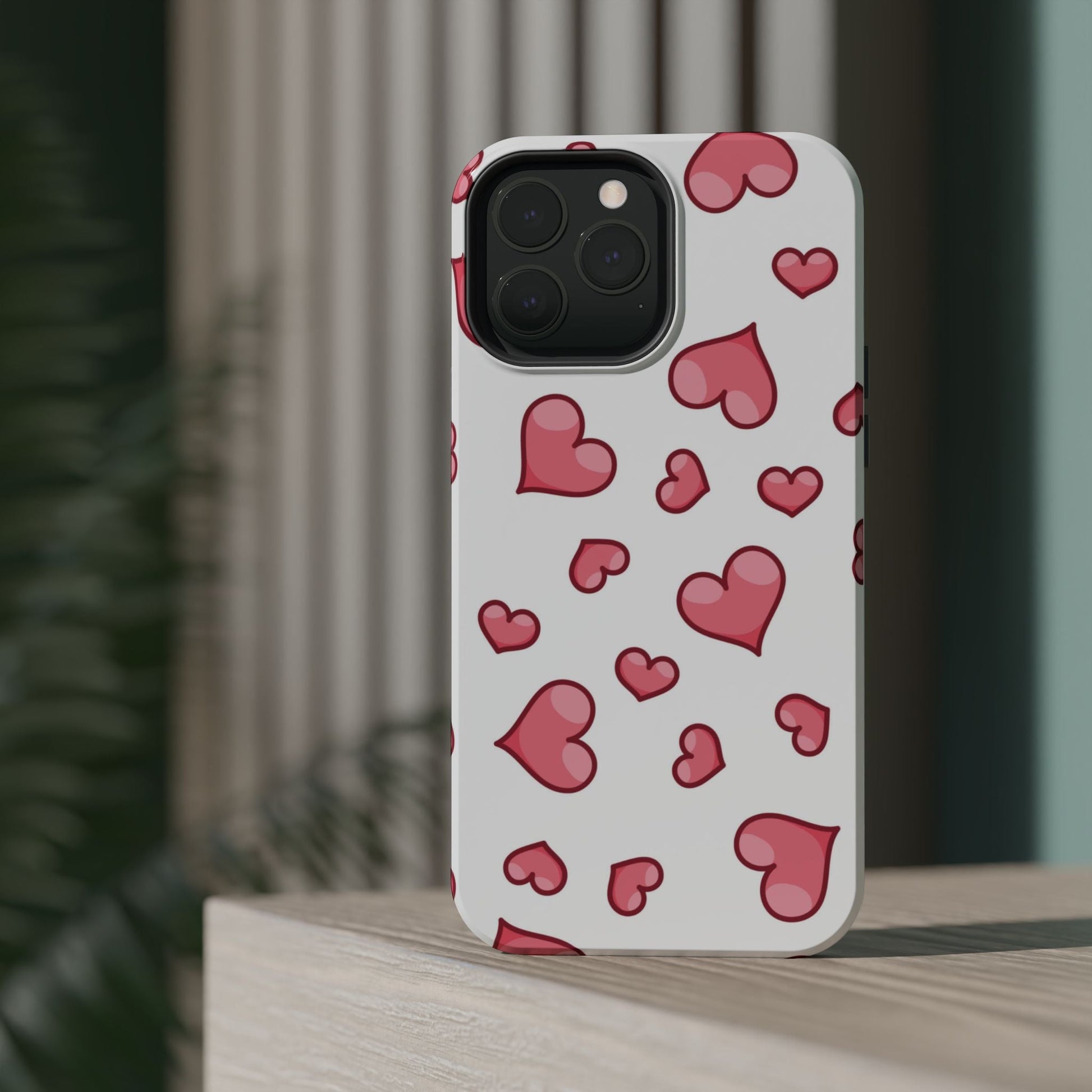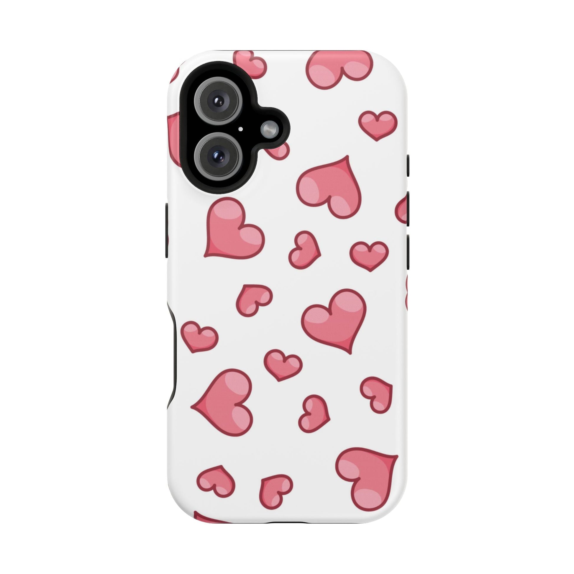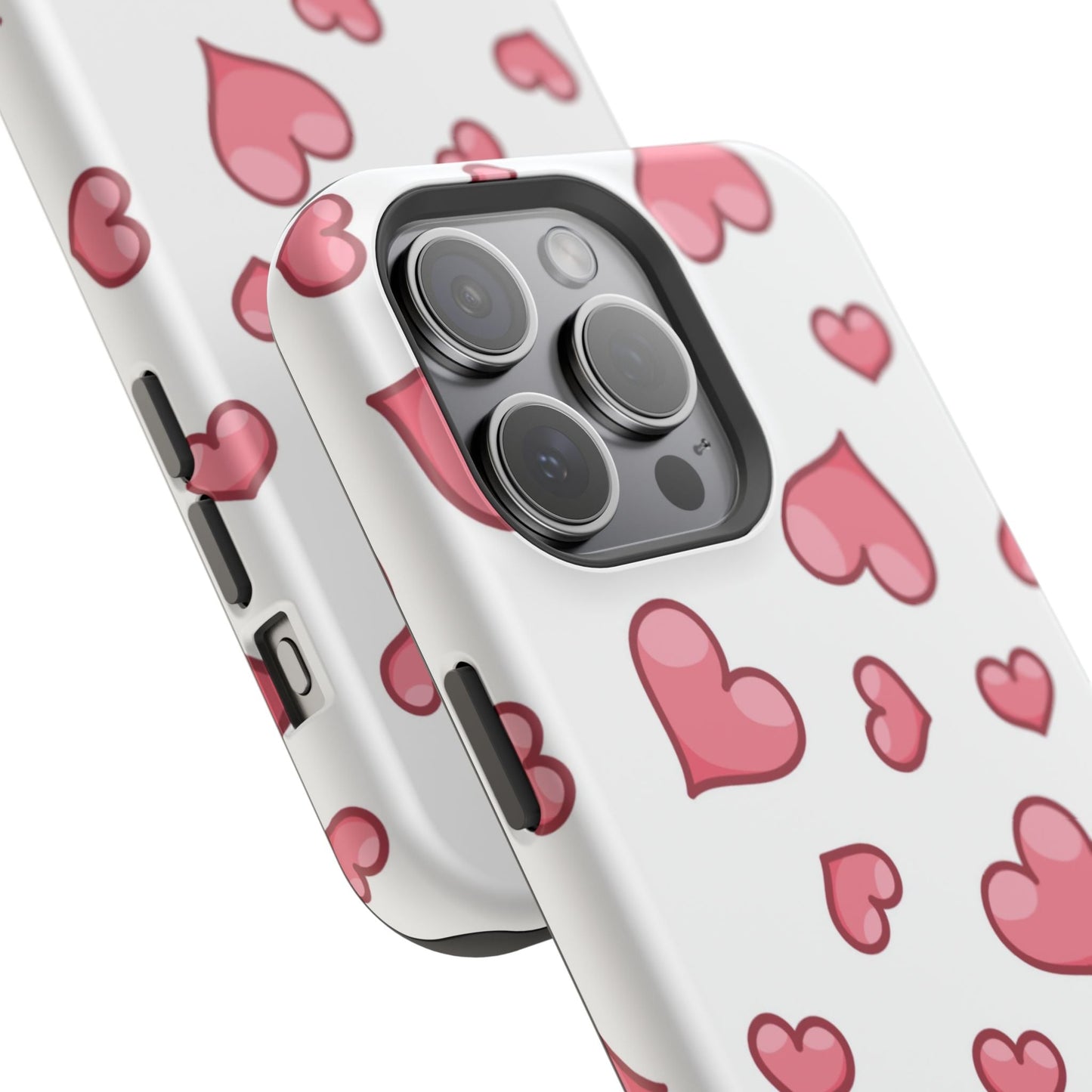 Let your heart flutter with our Scattered Hearts MagSafe iPhone Case! This charming design features a playful pattern of scattered pink hearts of various sizes, creating a romantic and cheerful vibe. It's the perfect case for those who love all things cute and gir...