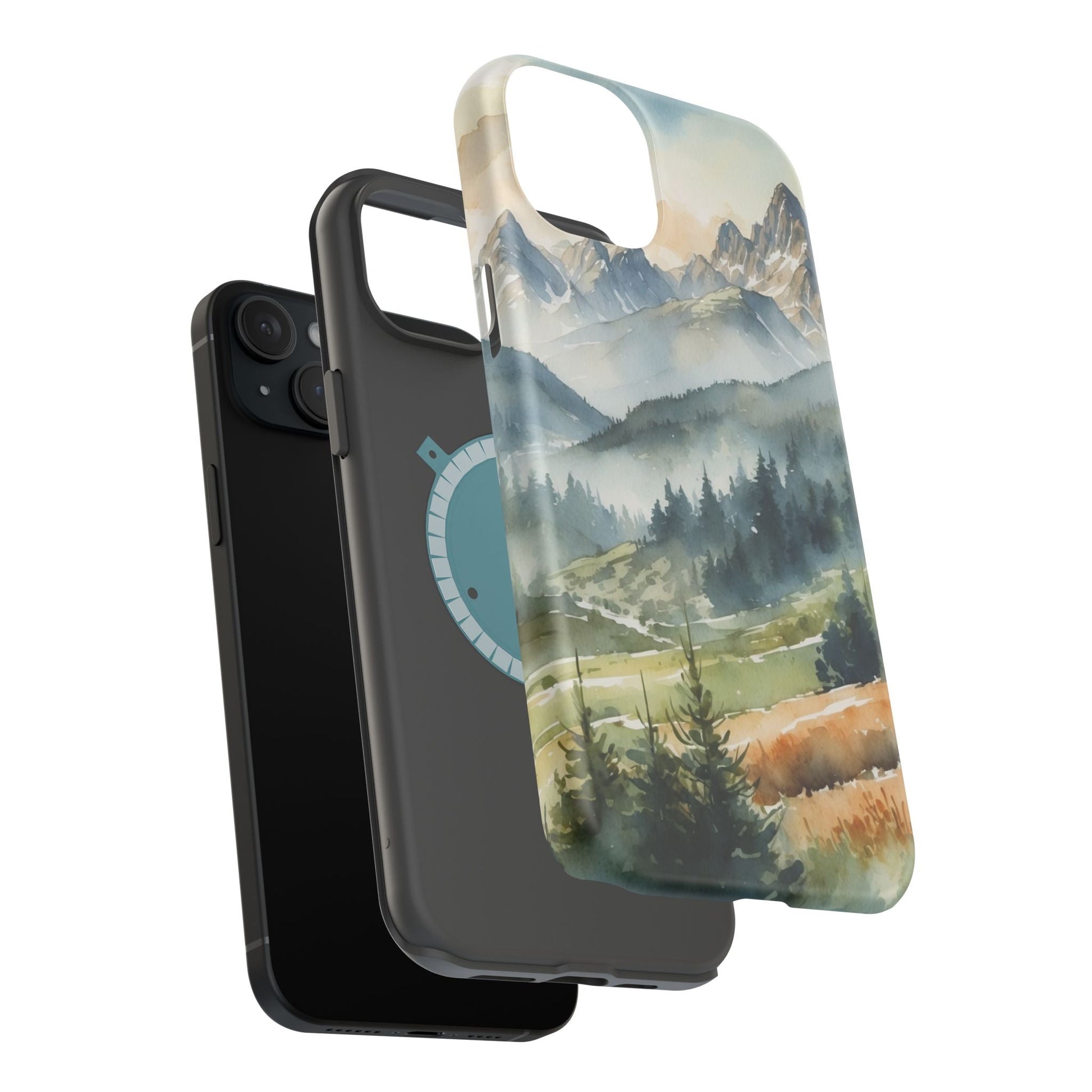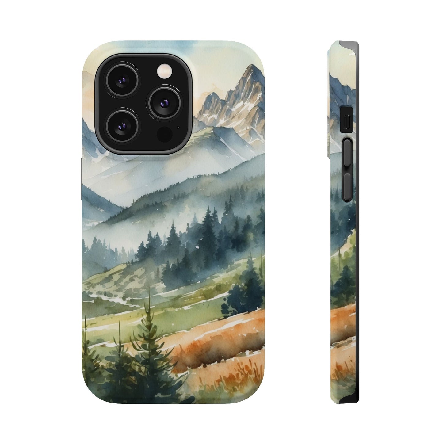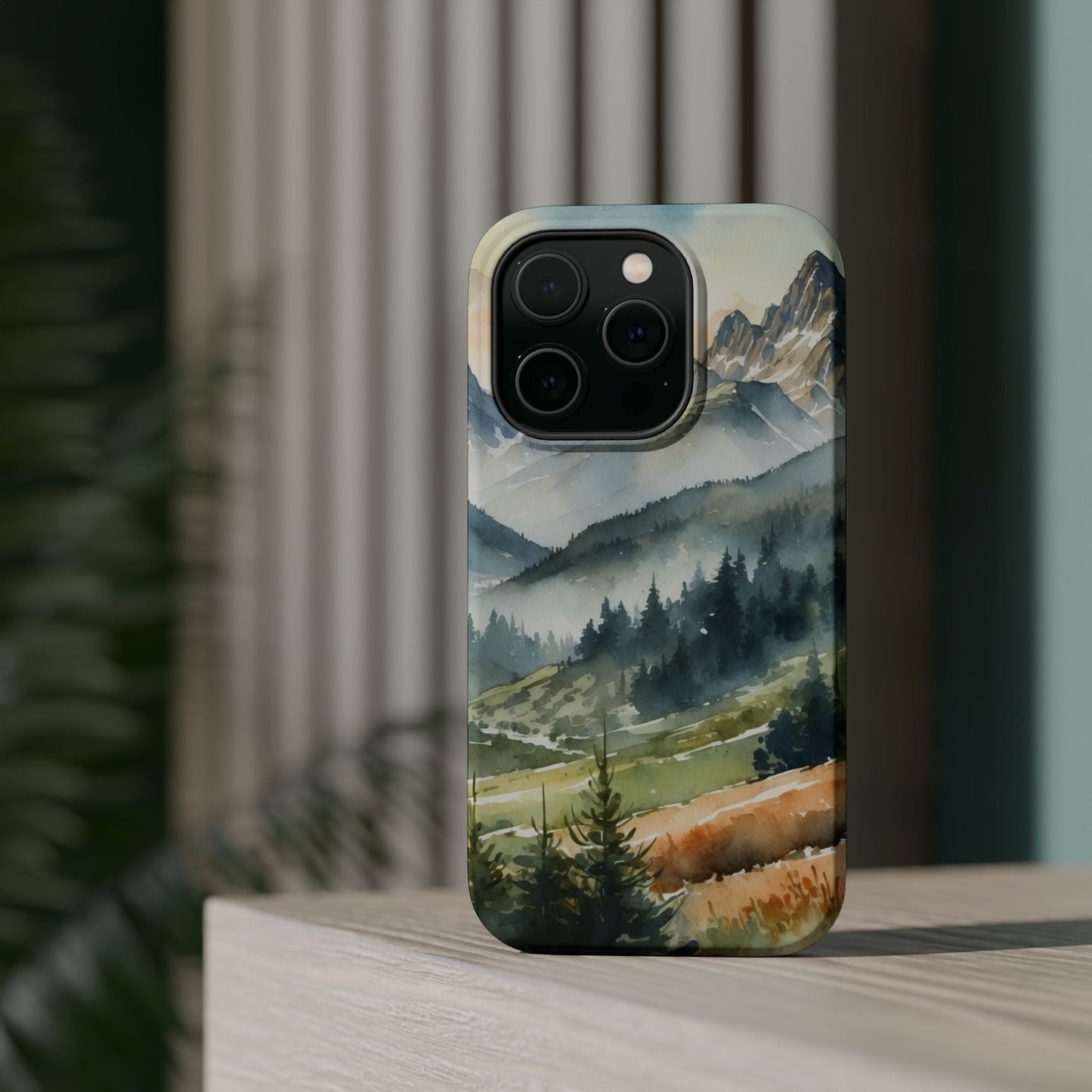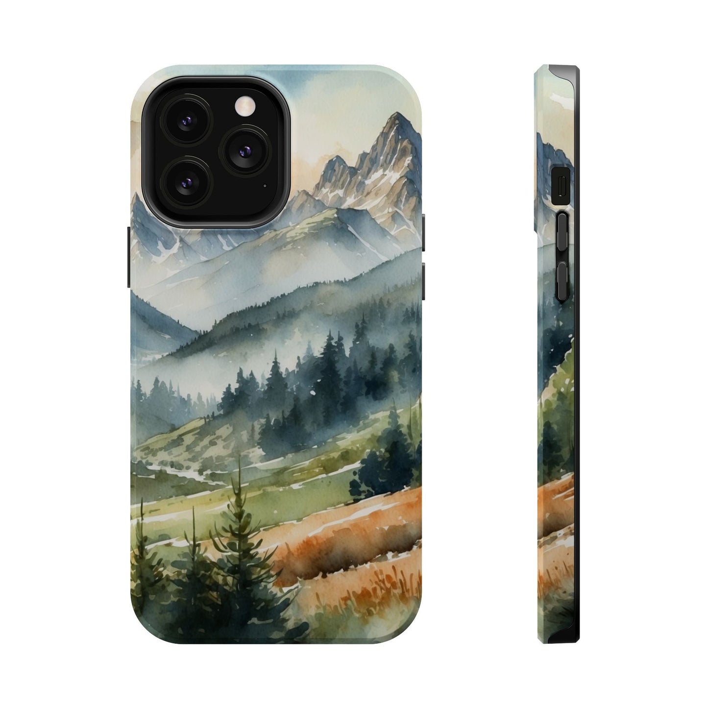 Description: Experience effortless functionality with the Serene Alpine Forest MagSafe iPhone case. This elegant design features breathtaking mountain views and lush green forests, blending natural beauty with modern practicality.