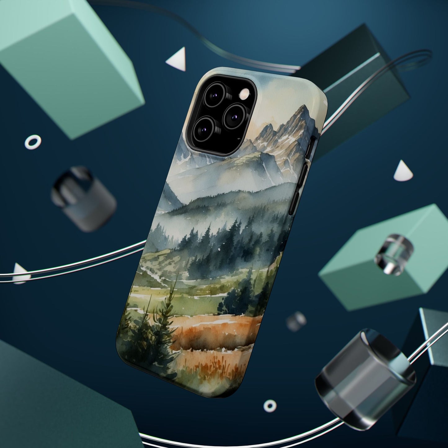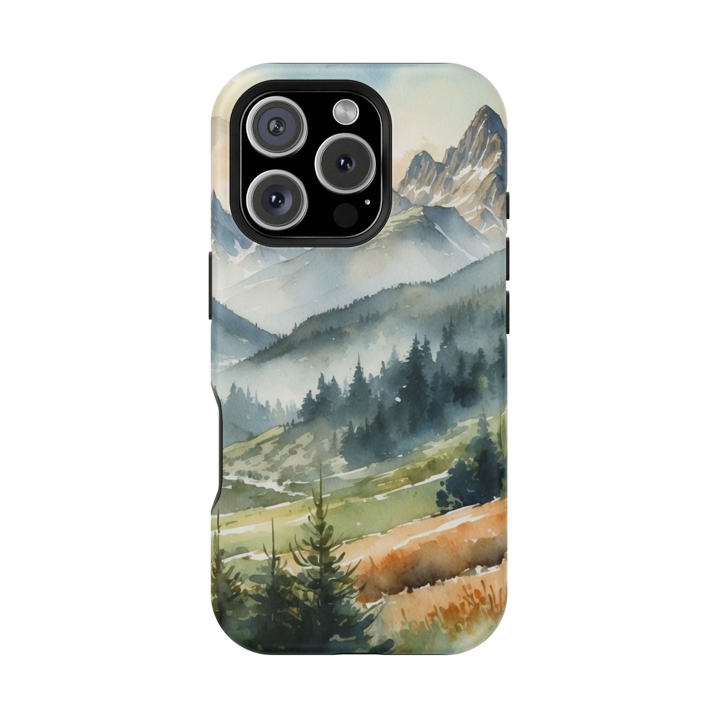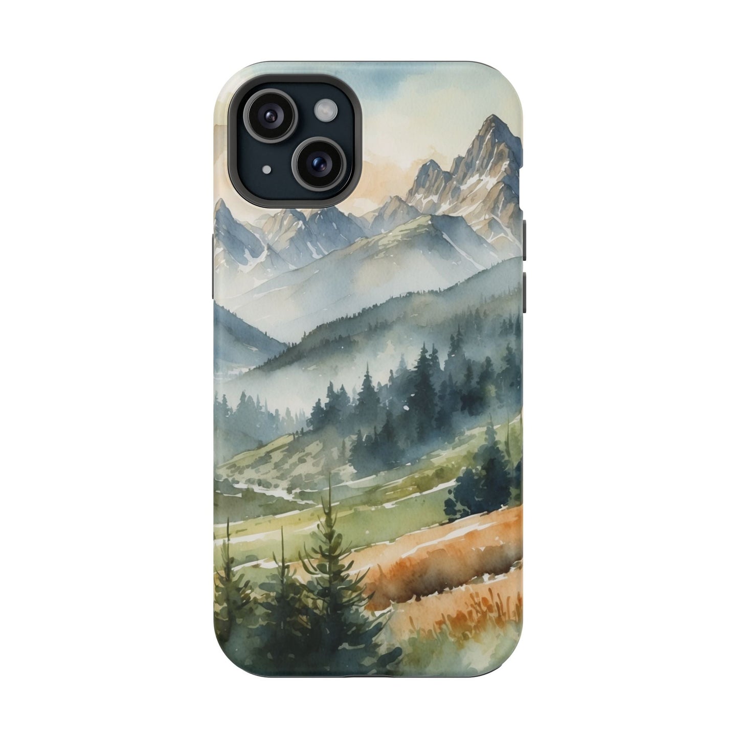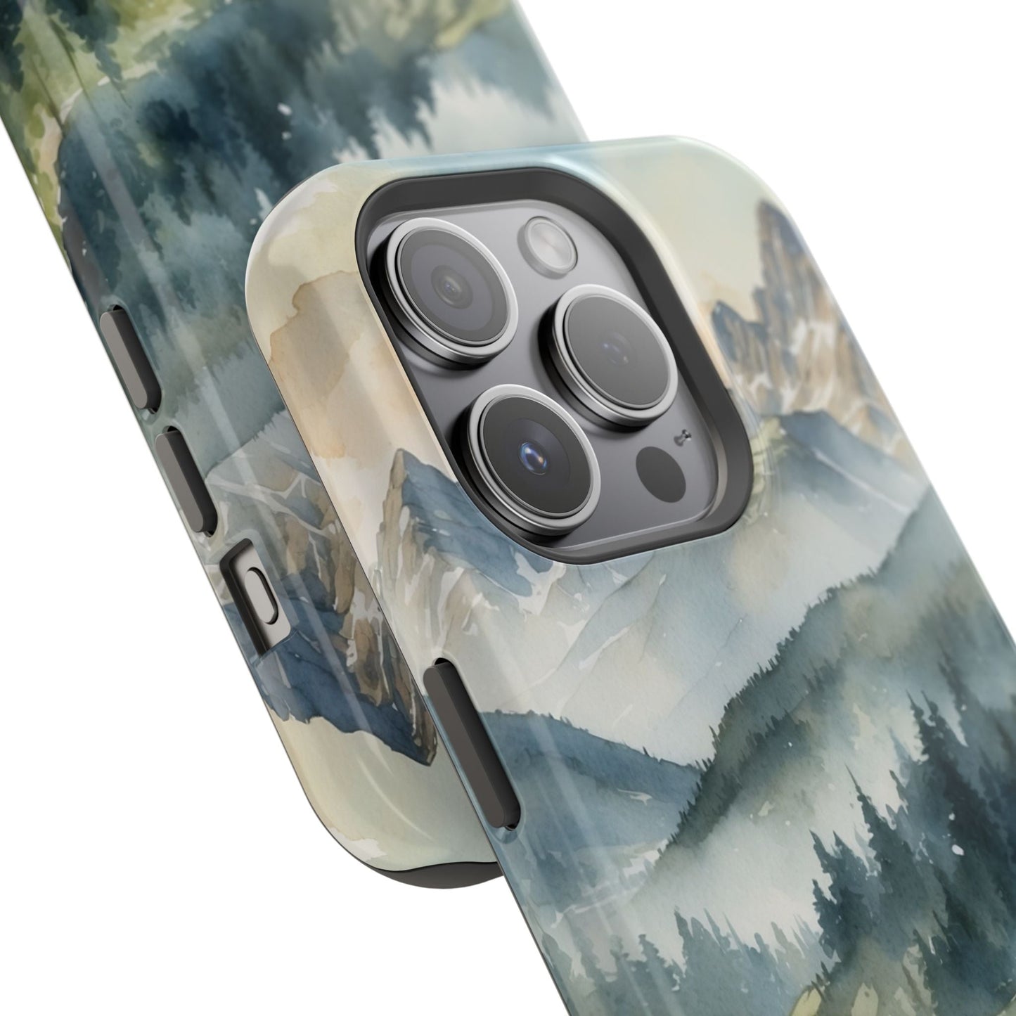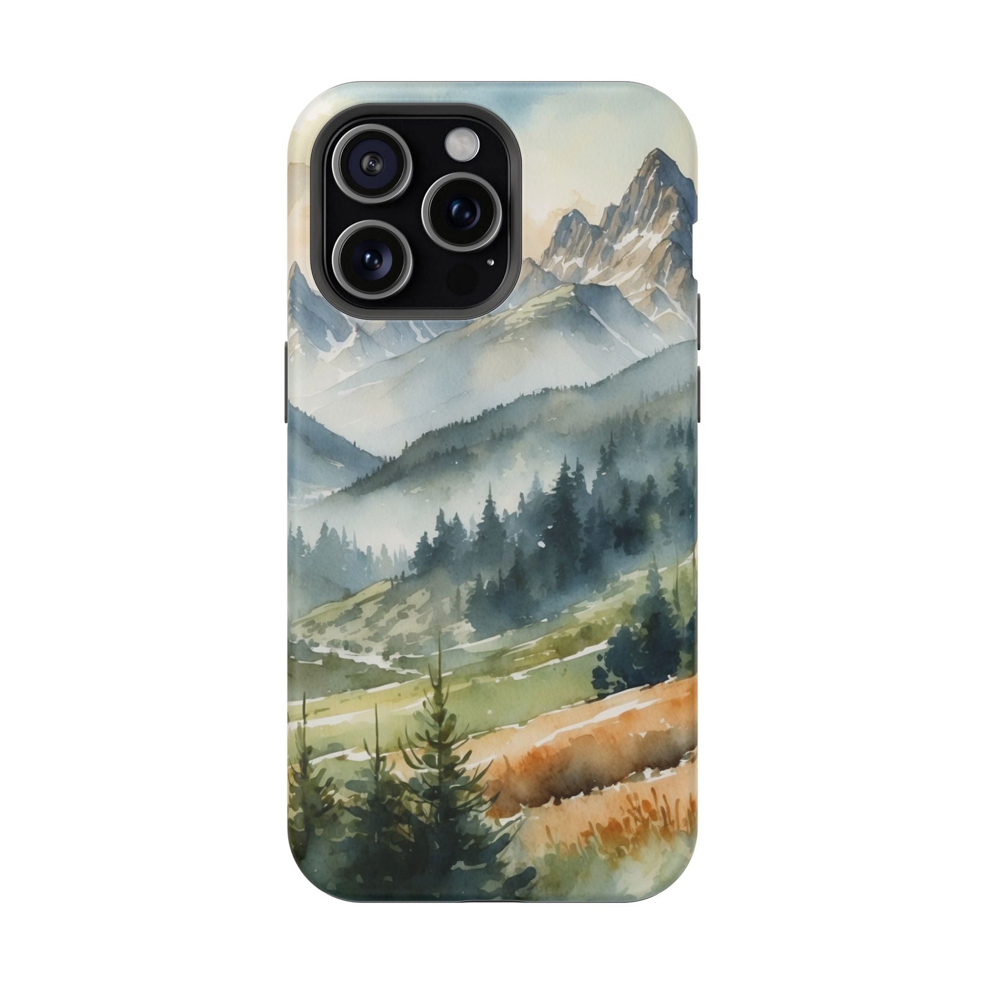 Description: Experience effortless functionality with the Serene Alpine Forest MagSafe iPhone case. This elegant design features breathtaking mountain views and lush green forests, blending natural beauty with modern practicality.