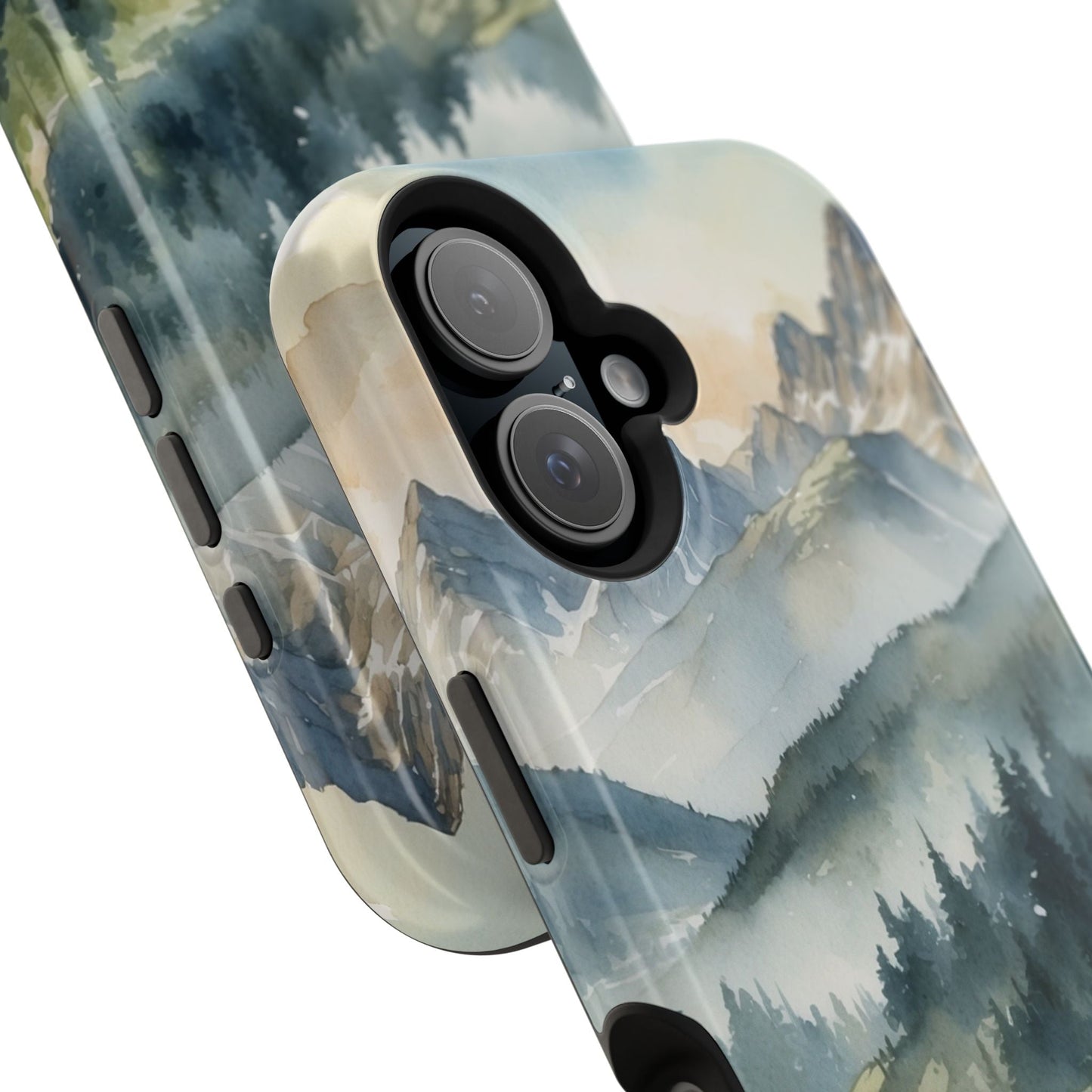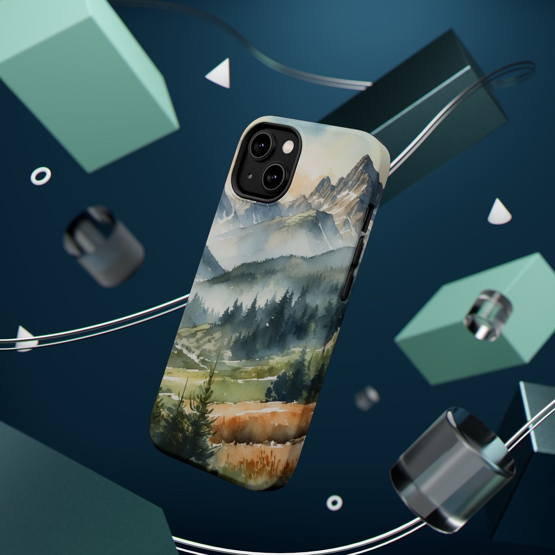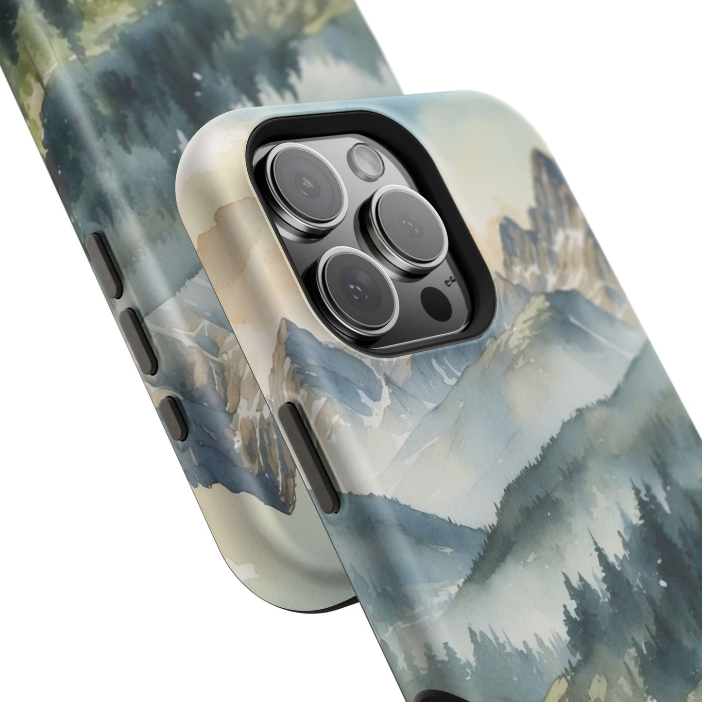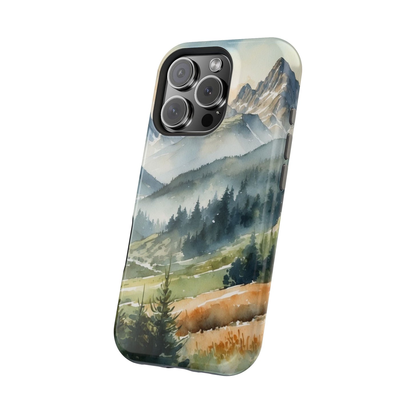 Description: Experience effortless functionality with the Serene Alpine Forest MagSafe iPhone case. This elegant design features breathtaking mountain views and lush green forests, blending natural beauty with modern practicality.
