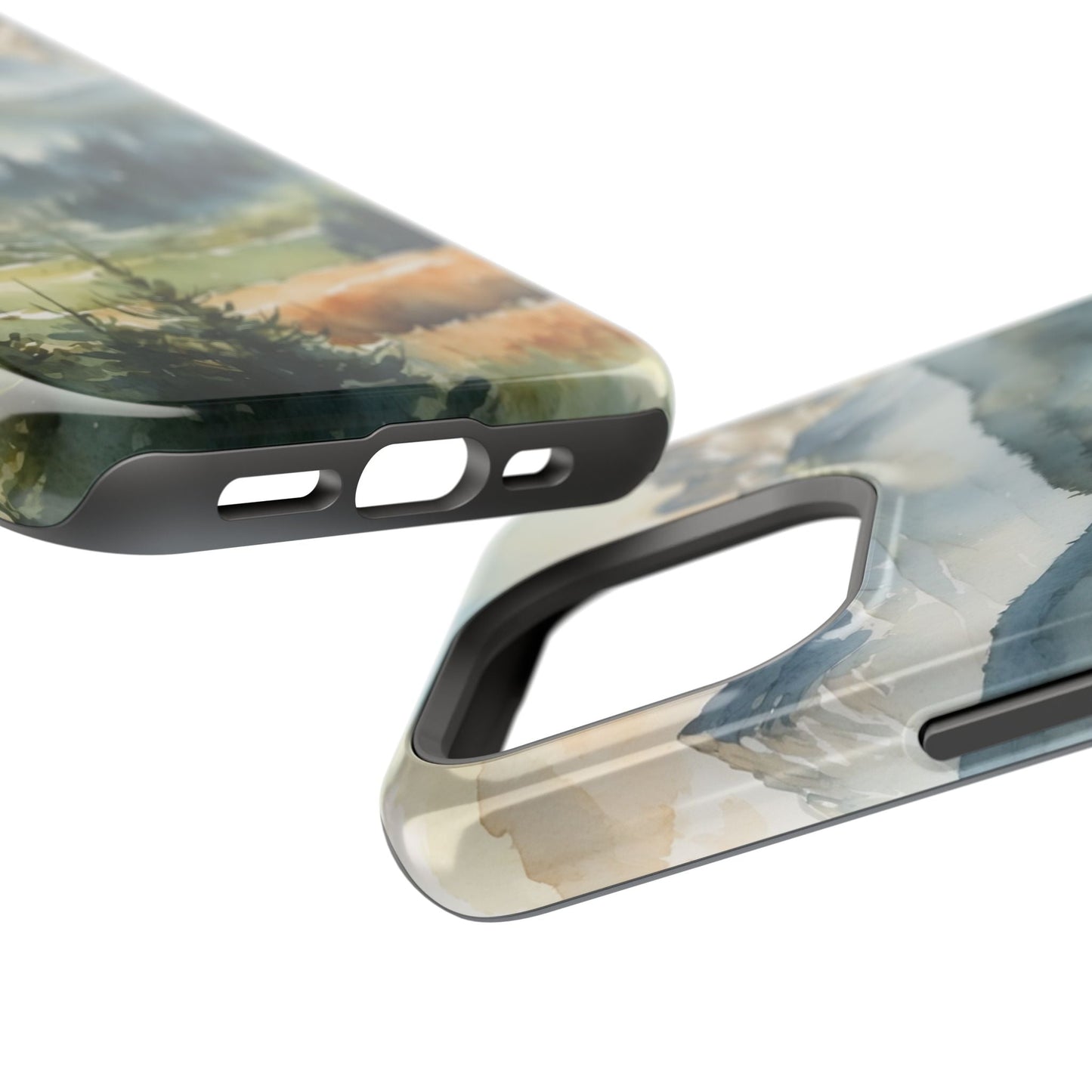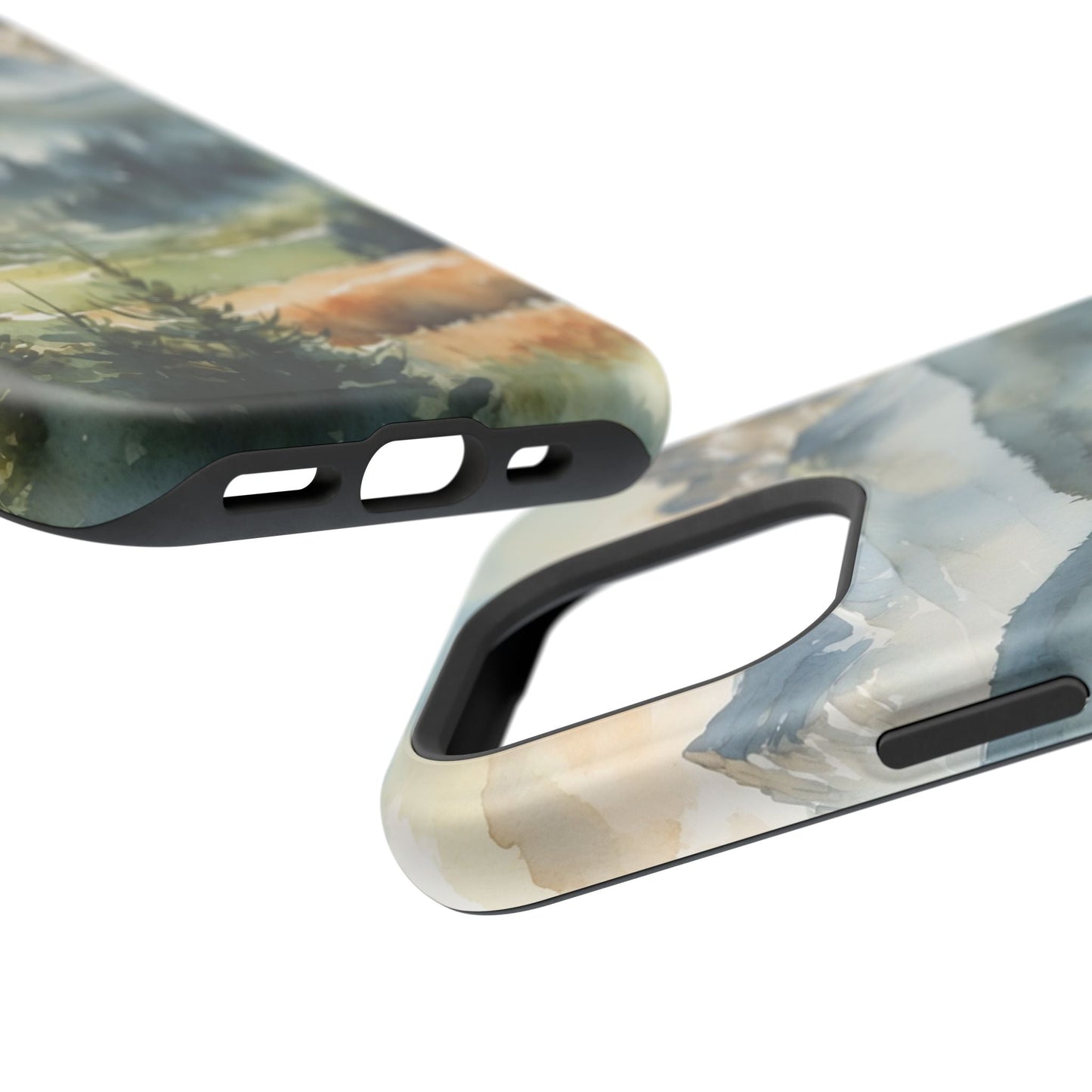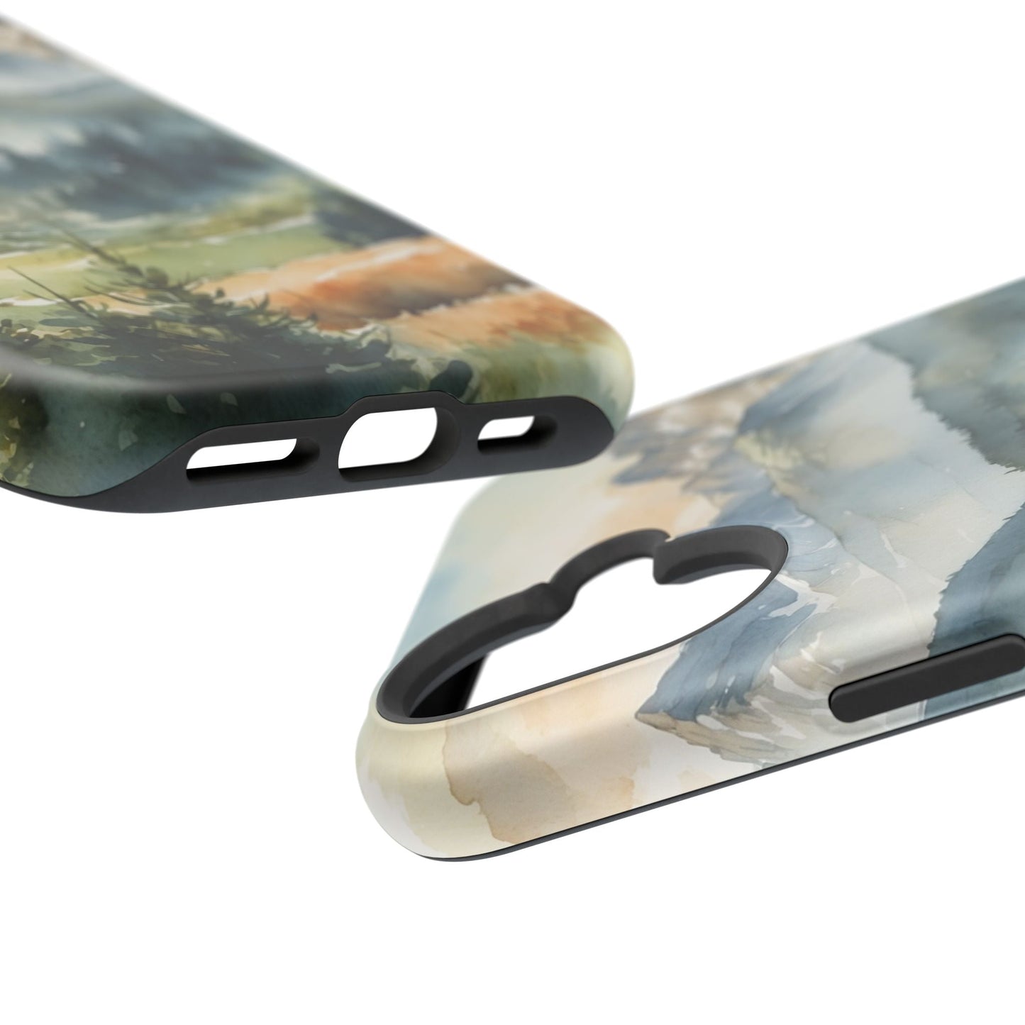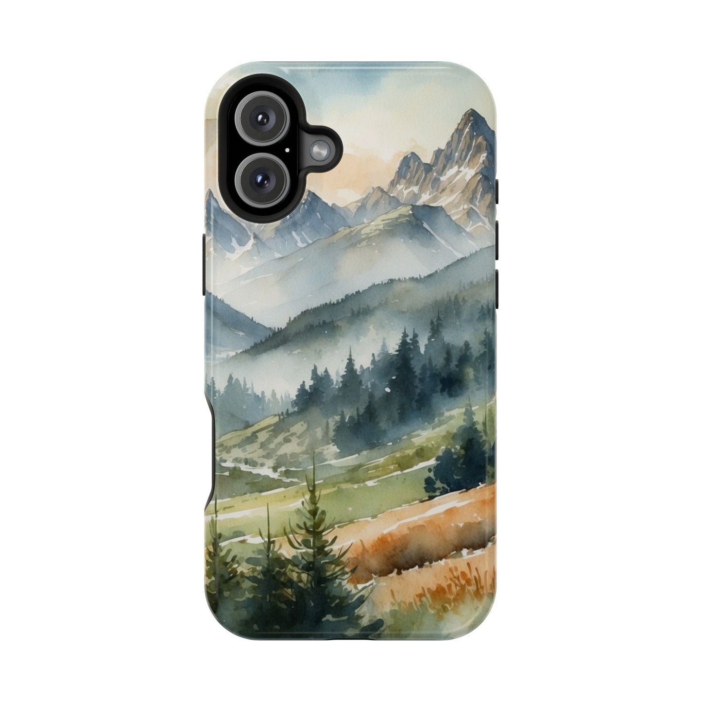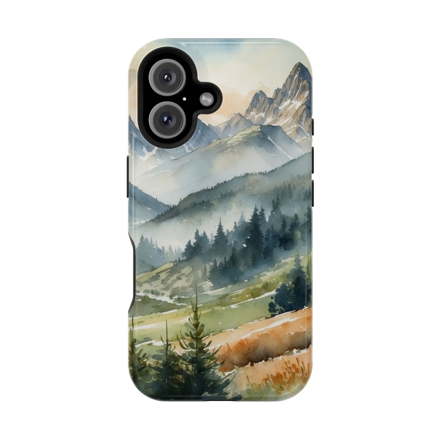 Description: Experience effortless functionality with the Serene Alpine Forest MagSafe iPhone case. This elegant design features breathtaking mountain views and lush green forests, blending natural beauty with modern practicality.