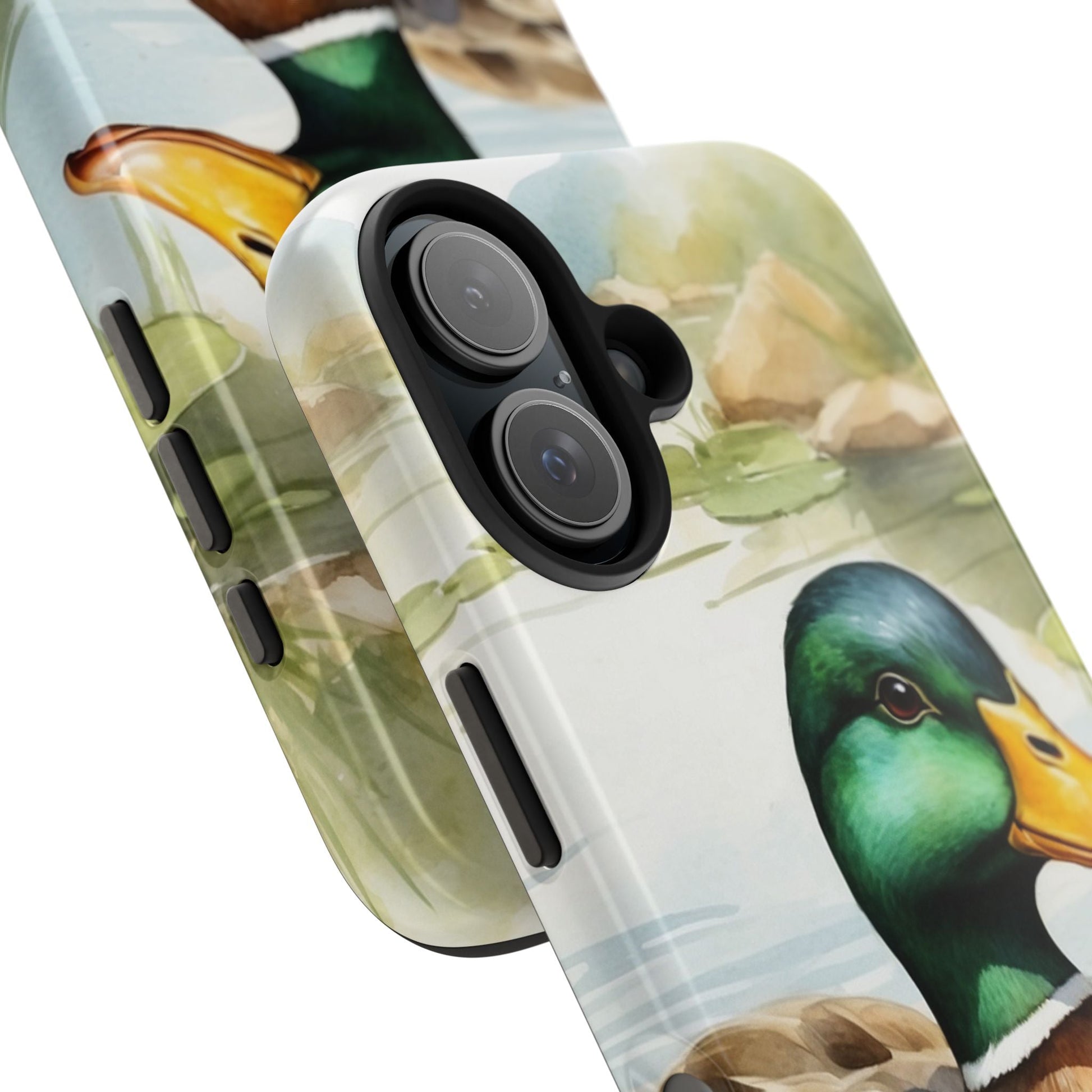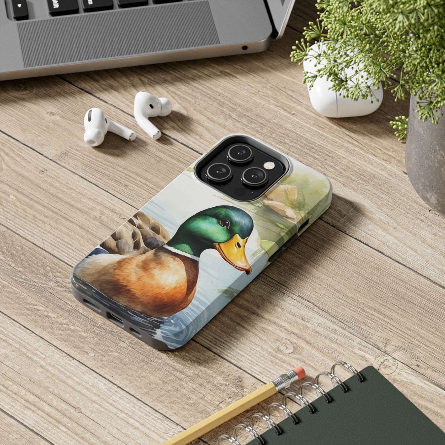 Description: Embrace the tranquility of nature with the Serene Duck Reflection iPhone Case. Featuring a vibrant illustration of a duck mirrored on still waters, this case is designed for those who cherish elegance and functionality. Lightweight yet sturdy, it keeps your iPhone safe while turning heads with its stunning design.