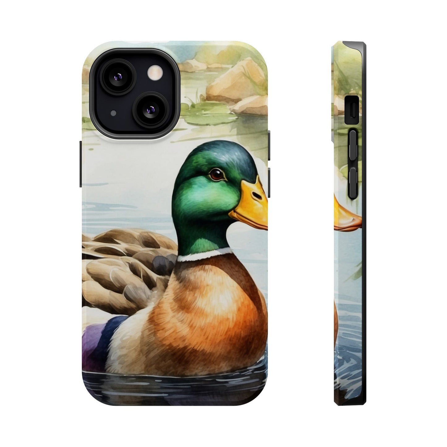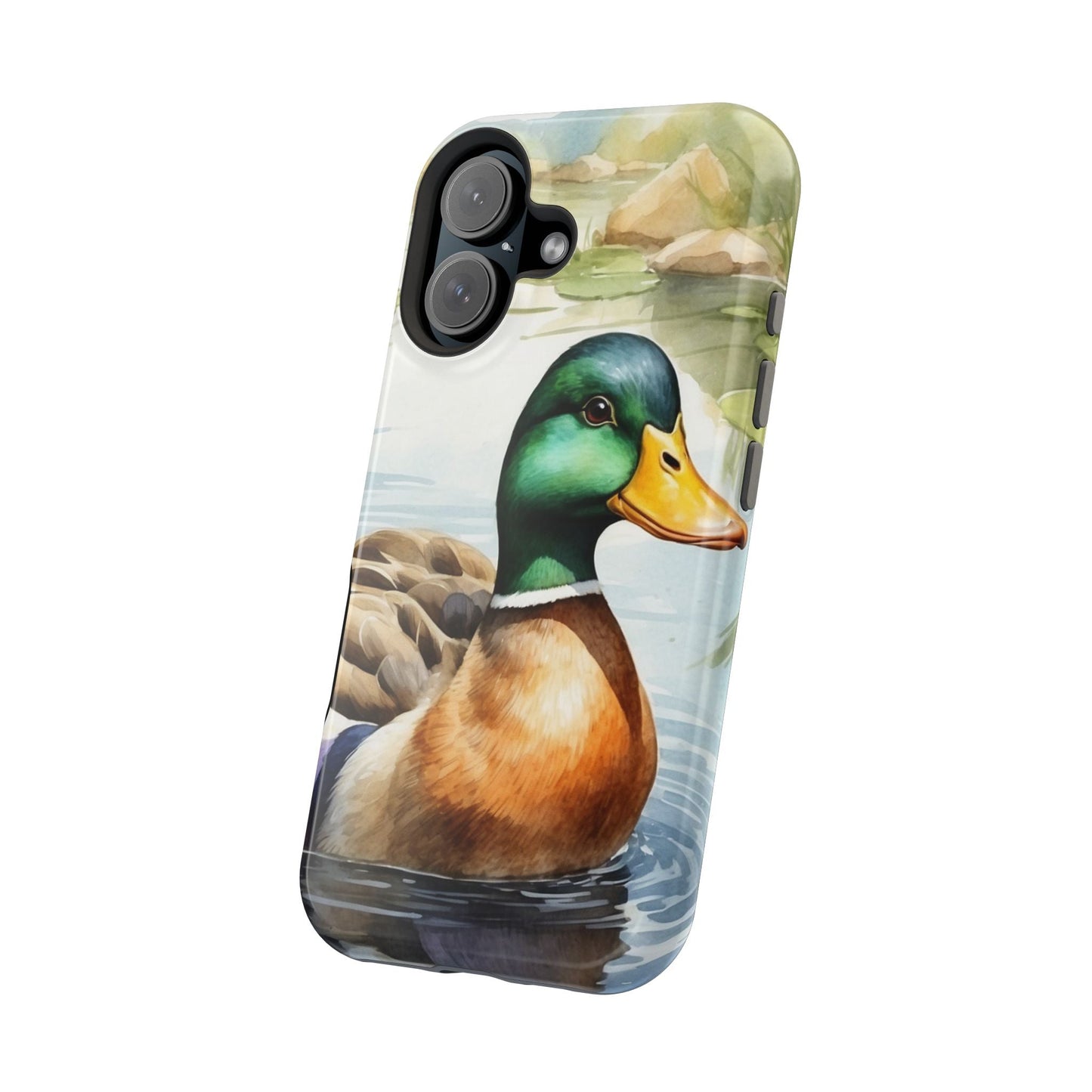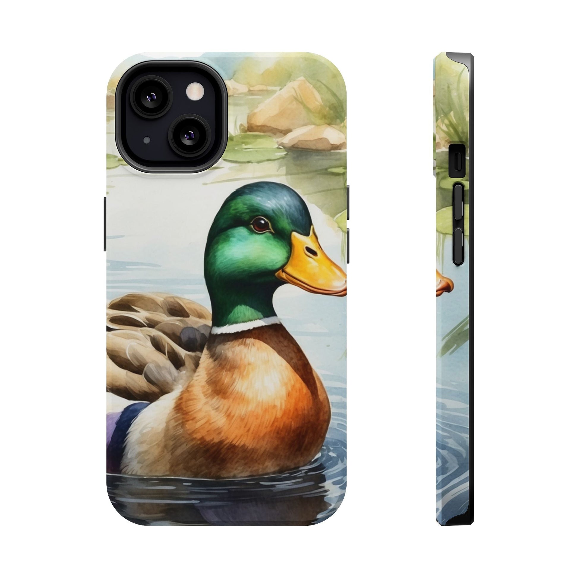 Description: Experience a blend of artistic beauty and modern convenience with the Serene Duck Reflection MagSafe Case. Featuring an elegant duck artwork, this case is perfect for nature lovers who want seamless MagSafe functionality alongside stunning design.