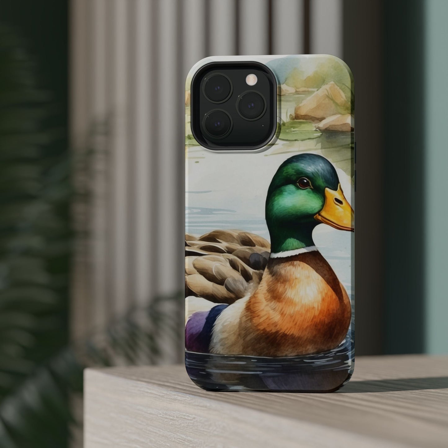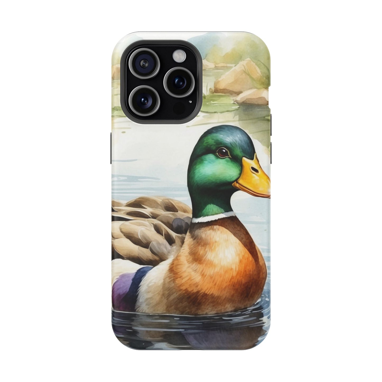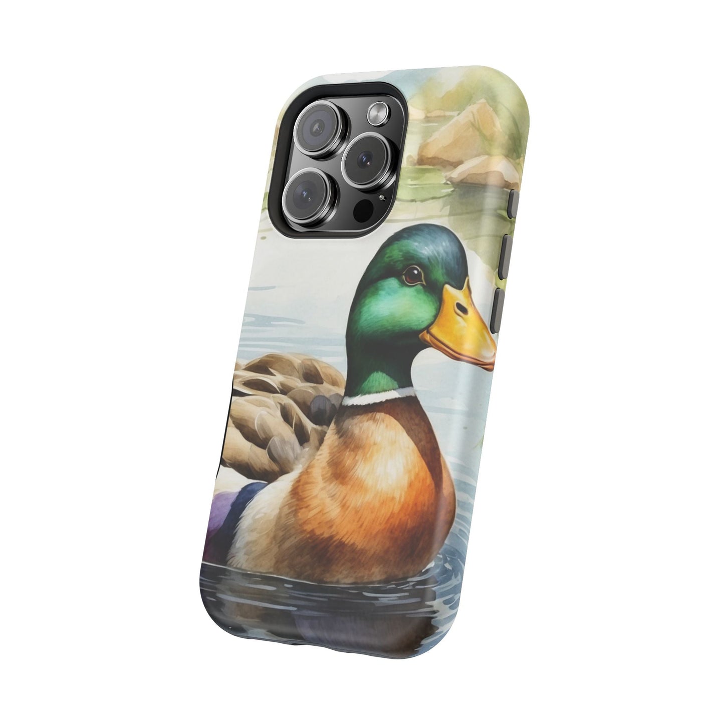 Description: Experience a blend of artistic beauty and modern convenience with the Serene Duck Reflection MagSafe Case. Featuring an elegant duck artwork, this case is perfect for nature lovers who want seamless MagSafe functionality alongside stunning design.