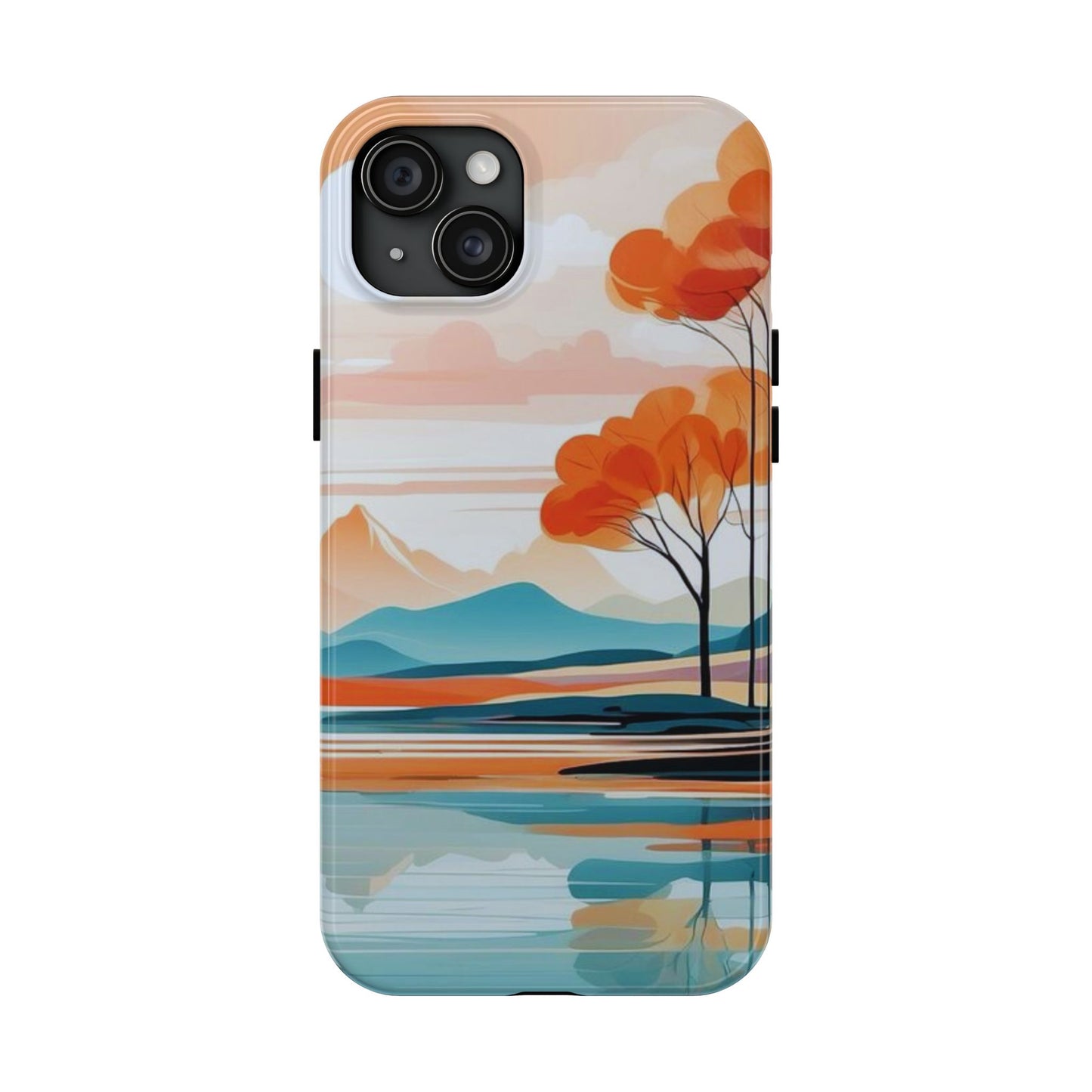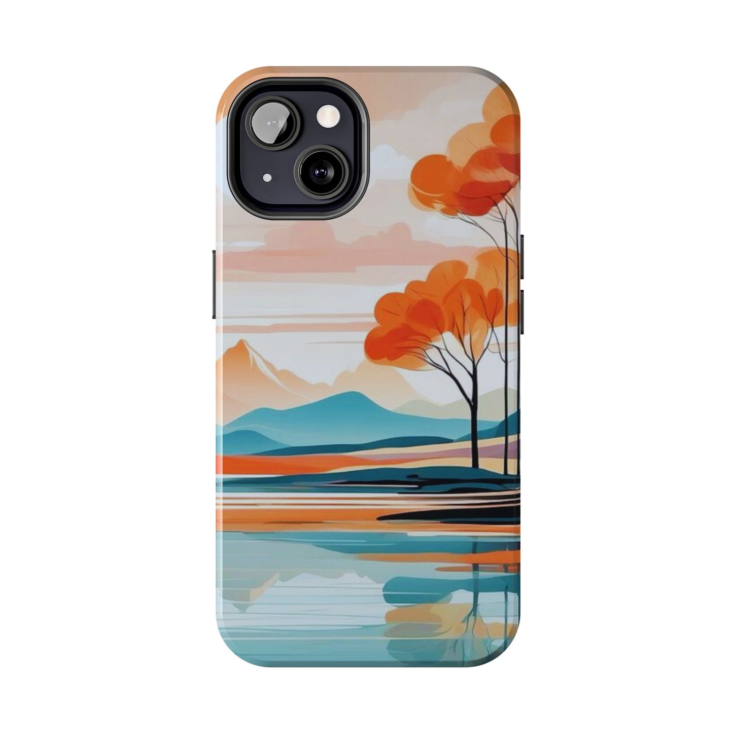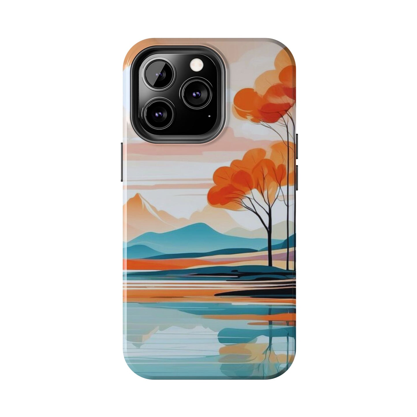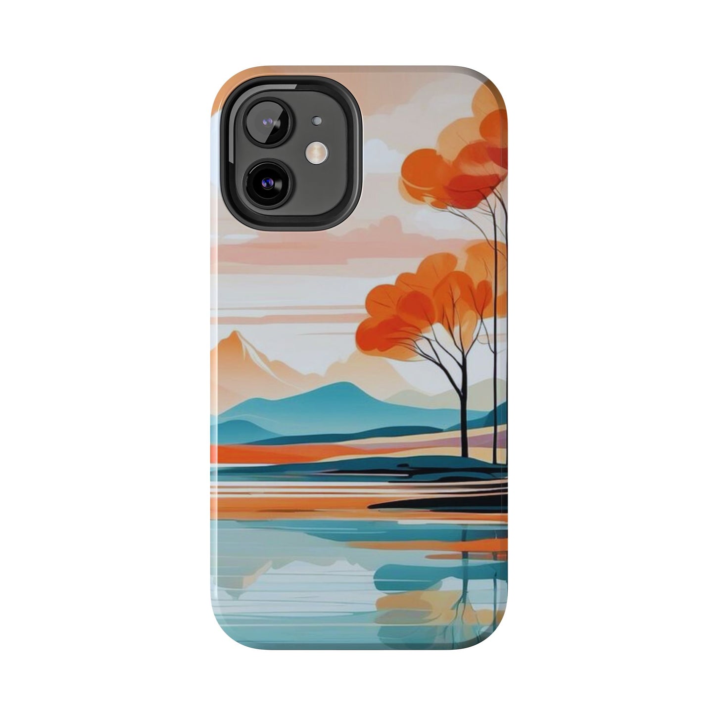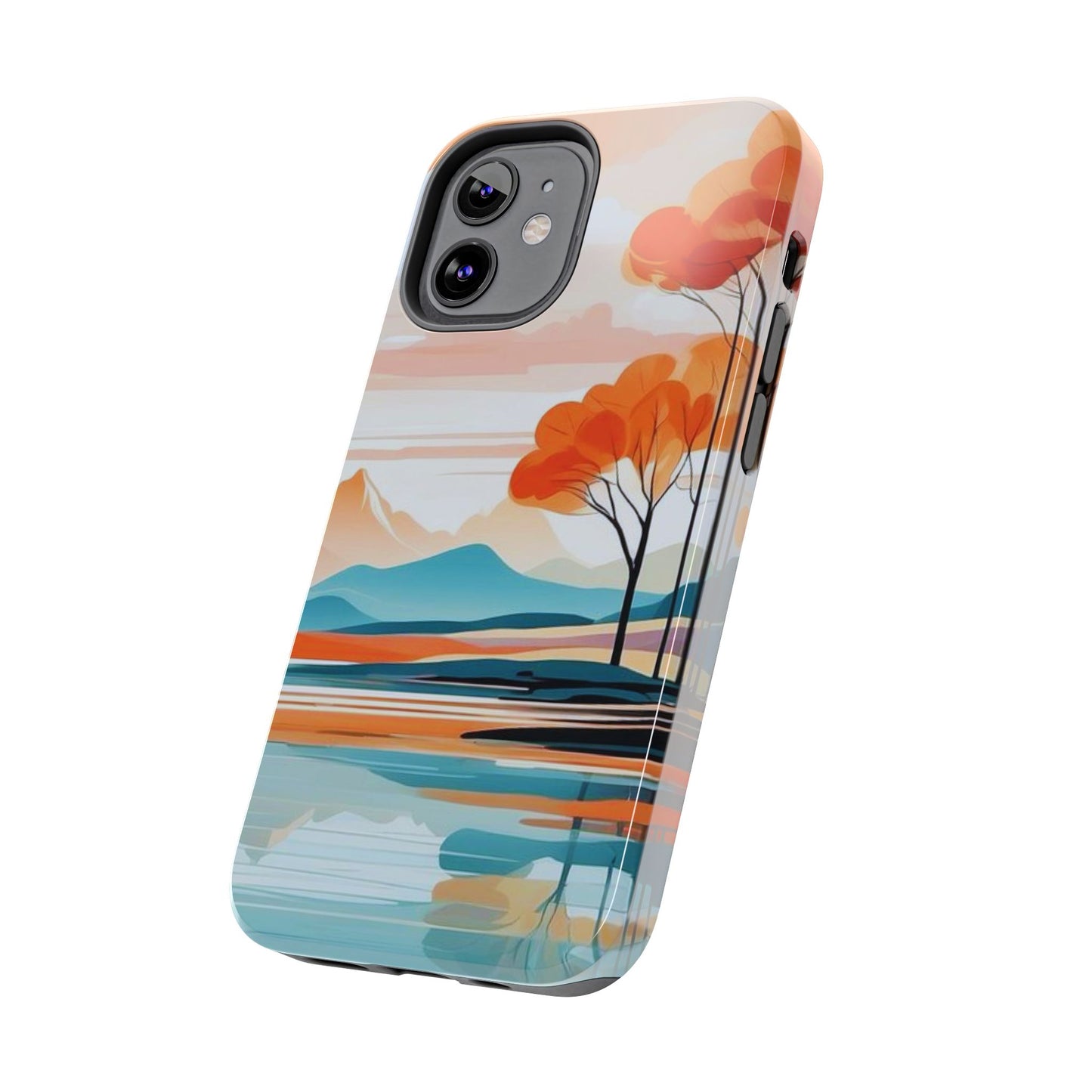 Elevate your phone’s style with the calming beauty of our Serene Sunset Lake iPhone Case. This design features a minimalist landscape of tranquil waters, warm orange trees, and softly glowing mountains, all under a pale sun. The soft pastel colors and clean lines make it perfect for those who appreciate a peaceful, modern aesthetic.