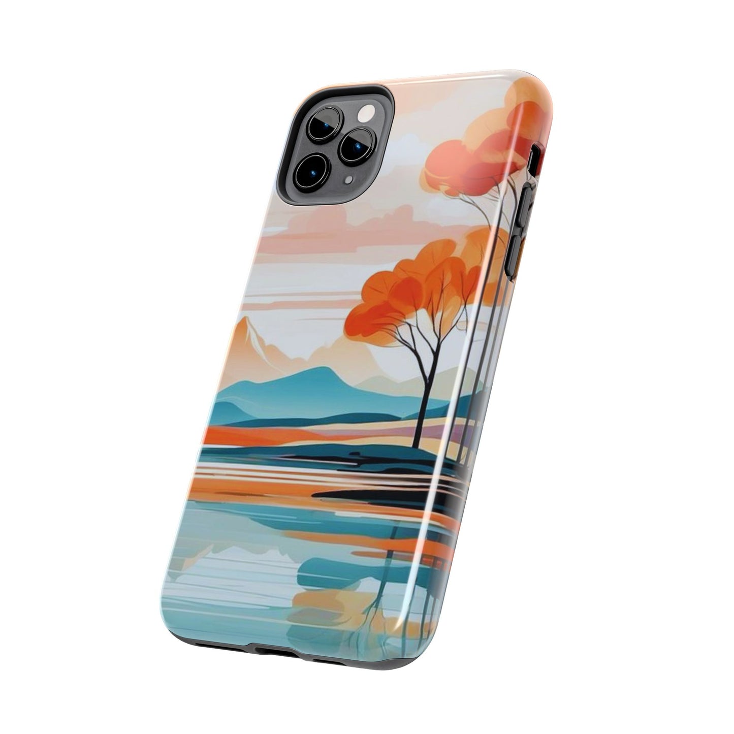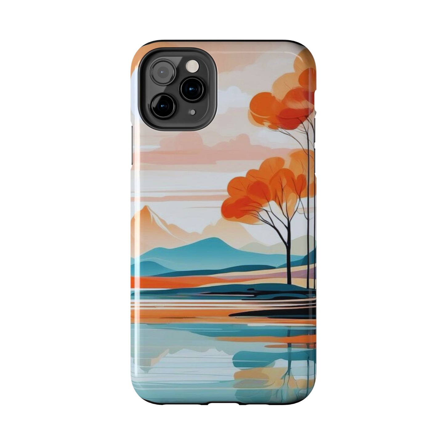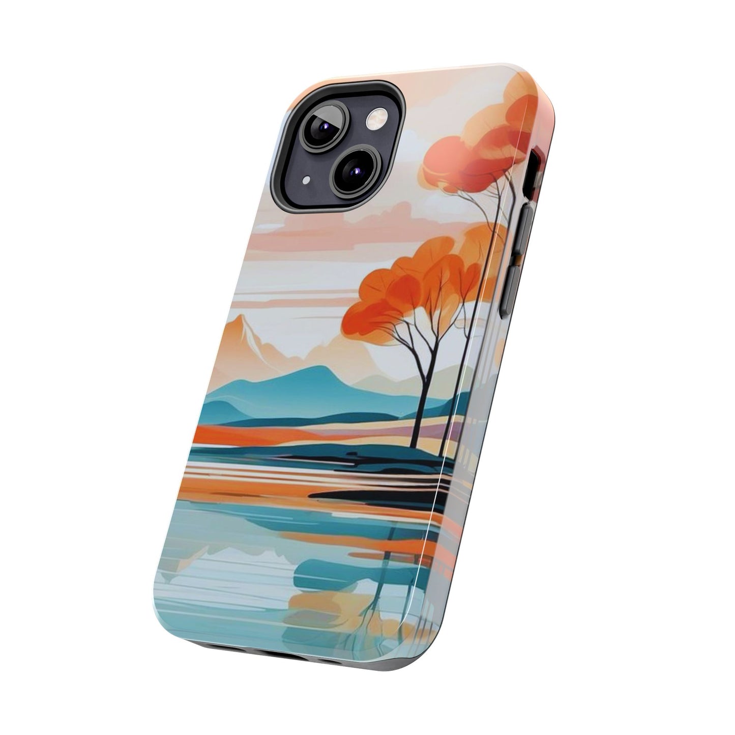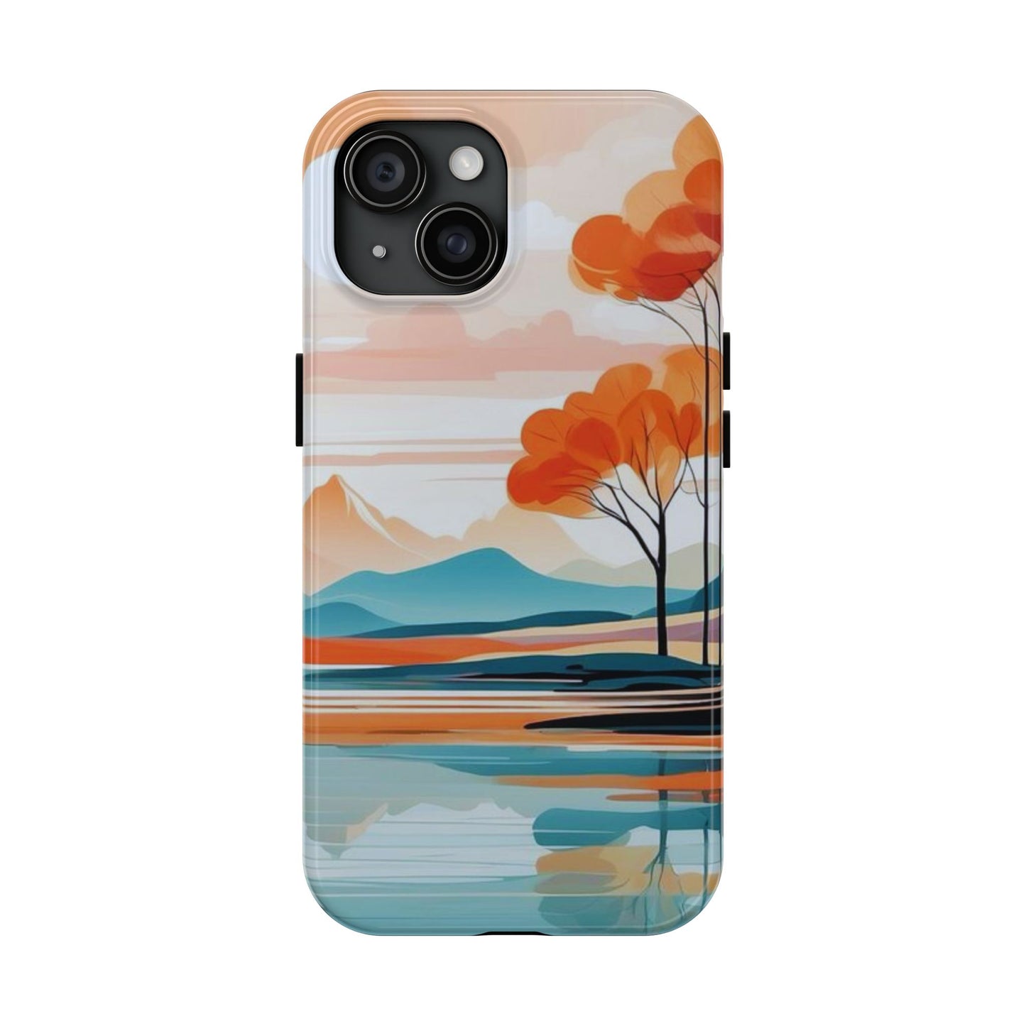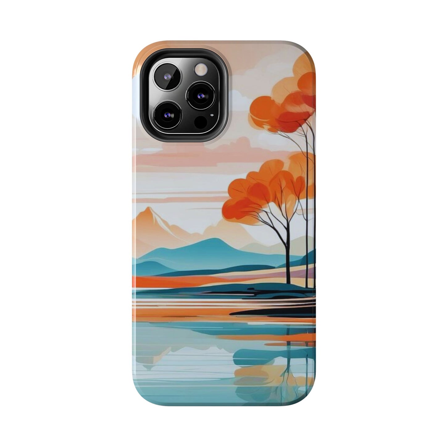 Elevate your phone’s style with the calming beauty of our Serene Sunset Lake iPhone Case. This design features a minimalist landscape of tranquil waters, warm orange trees, and softly glowing mountains, all under a pale sun. The soft pastel colors and clean lines make it perfect for those who appreciate a peaceful, modern aesthetic.